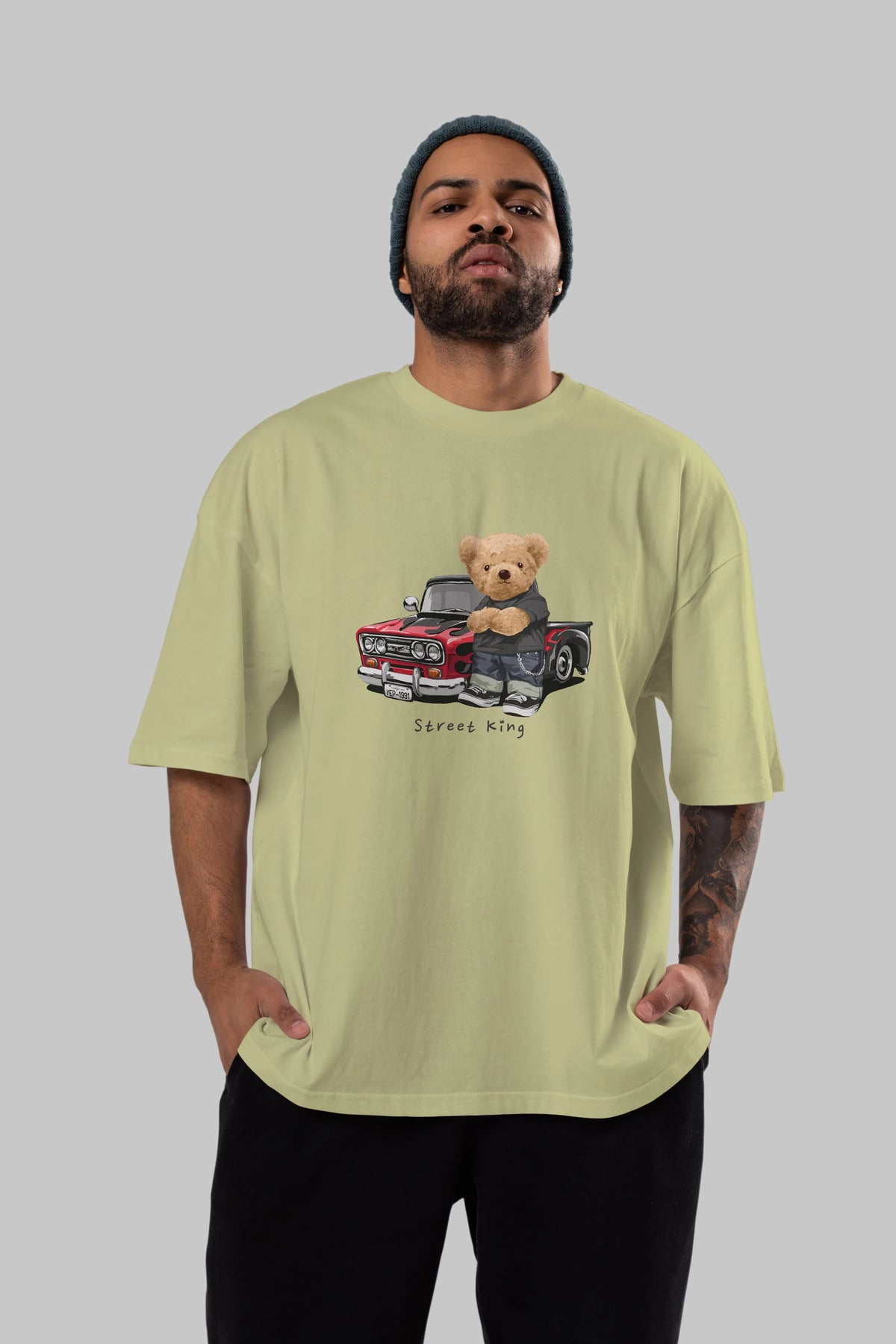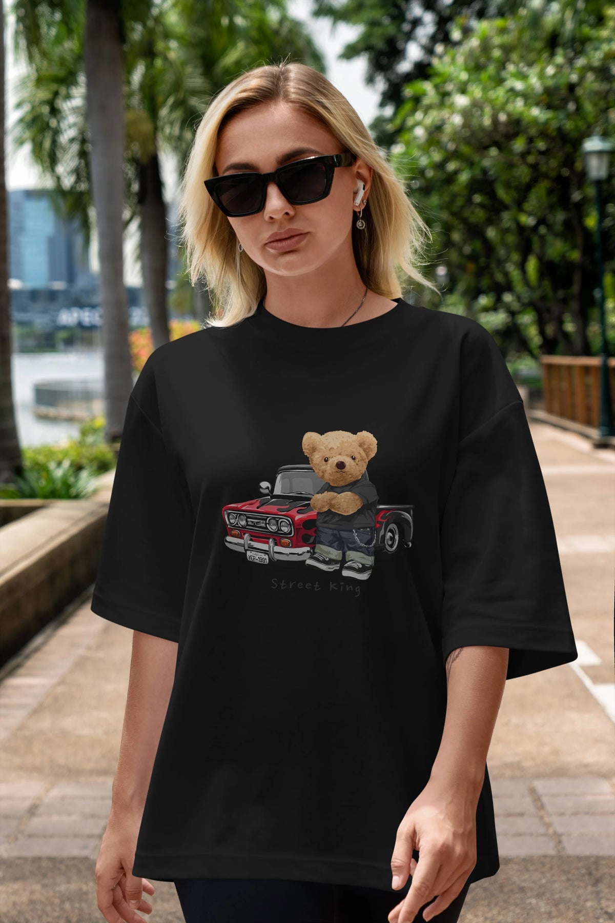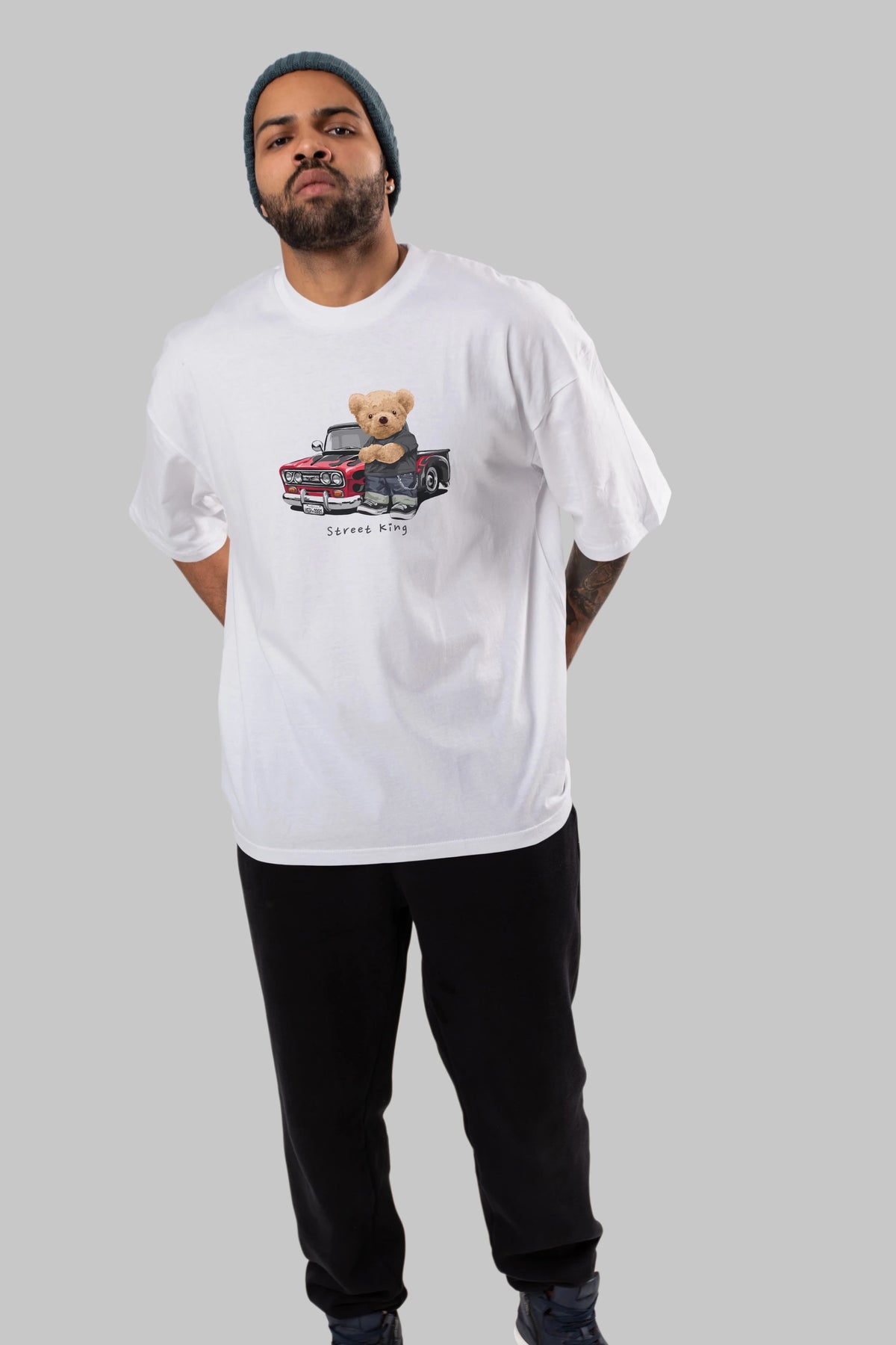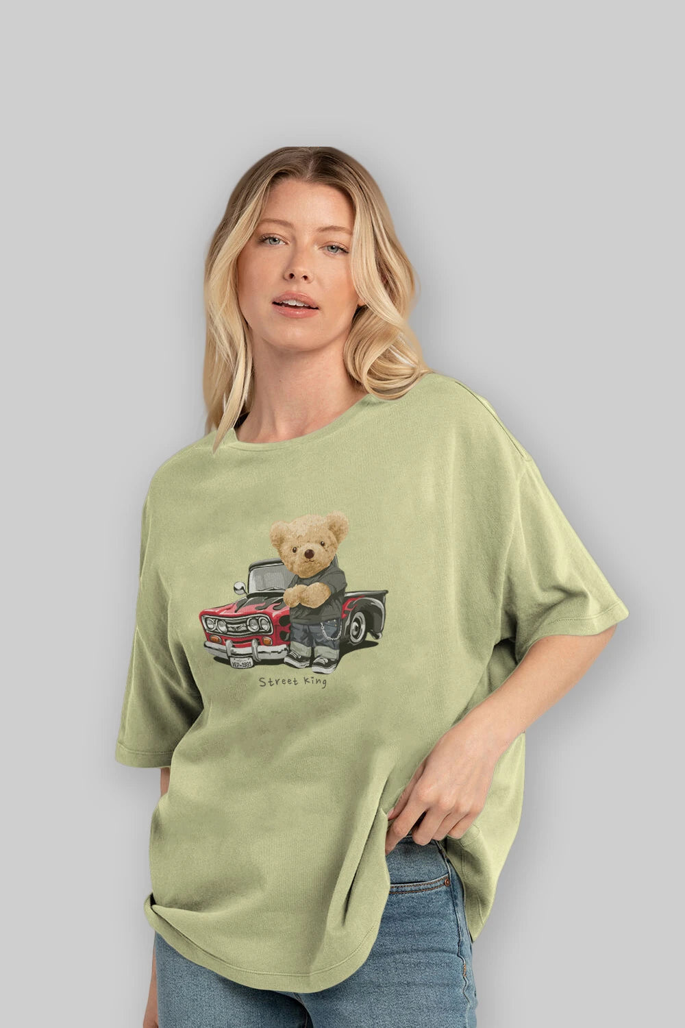 Teddy Bear Street King Ön Baskılı Oversize t-shirt Erkek Kadın Unisex %100 Pamuk