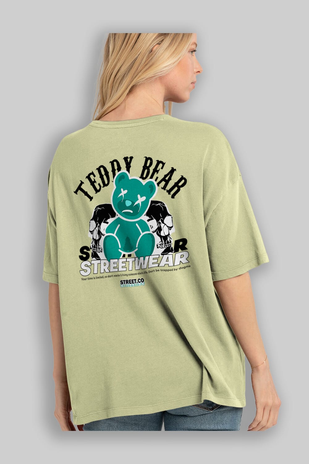 Teddy Bear Streetwear 2 Arka Baskılı Oversize t-shirt Erkek Kadın Unisex