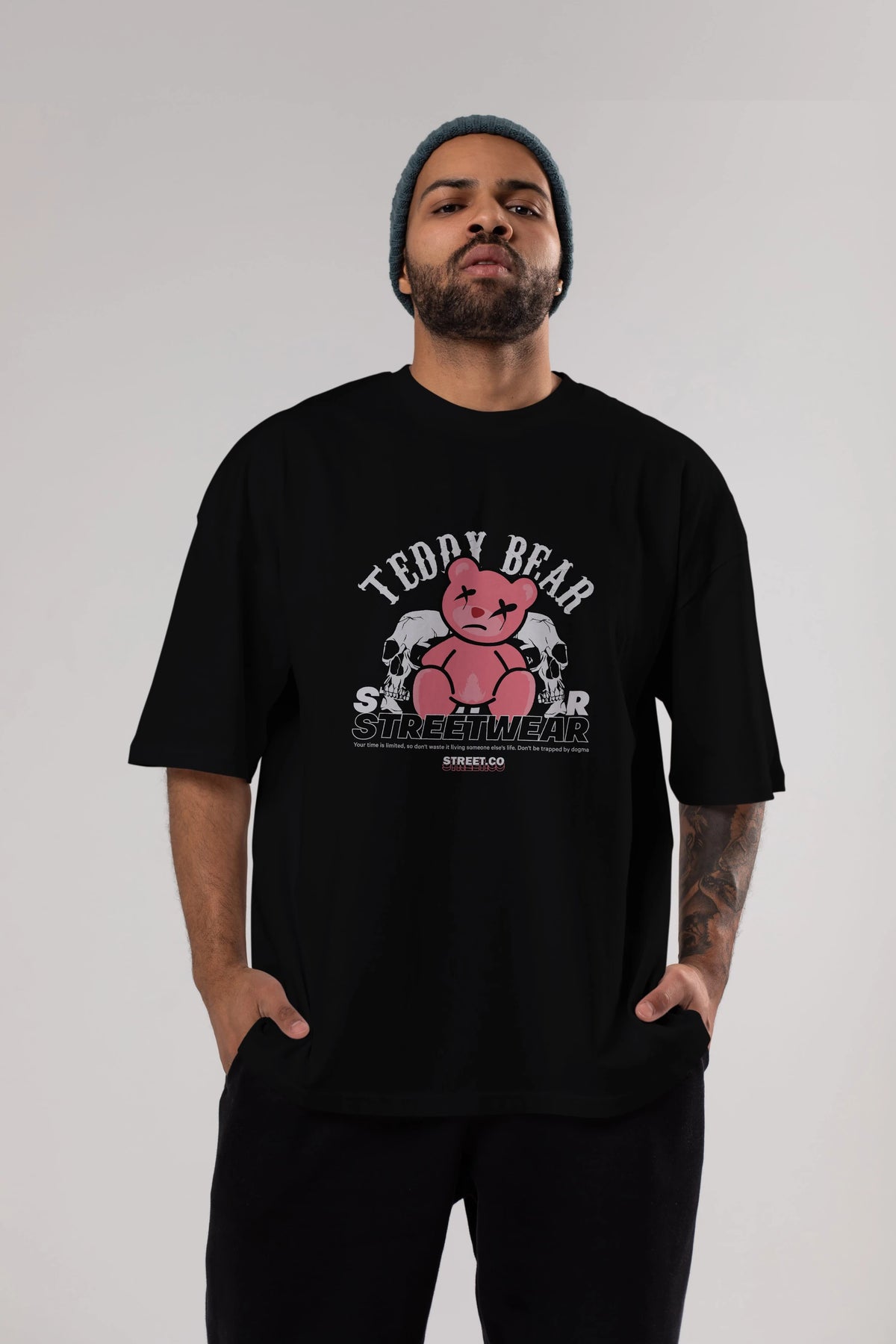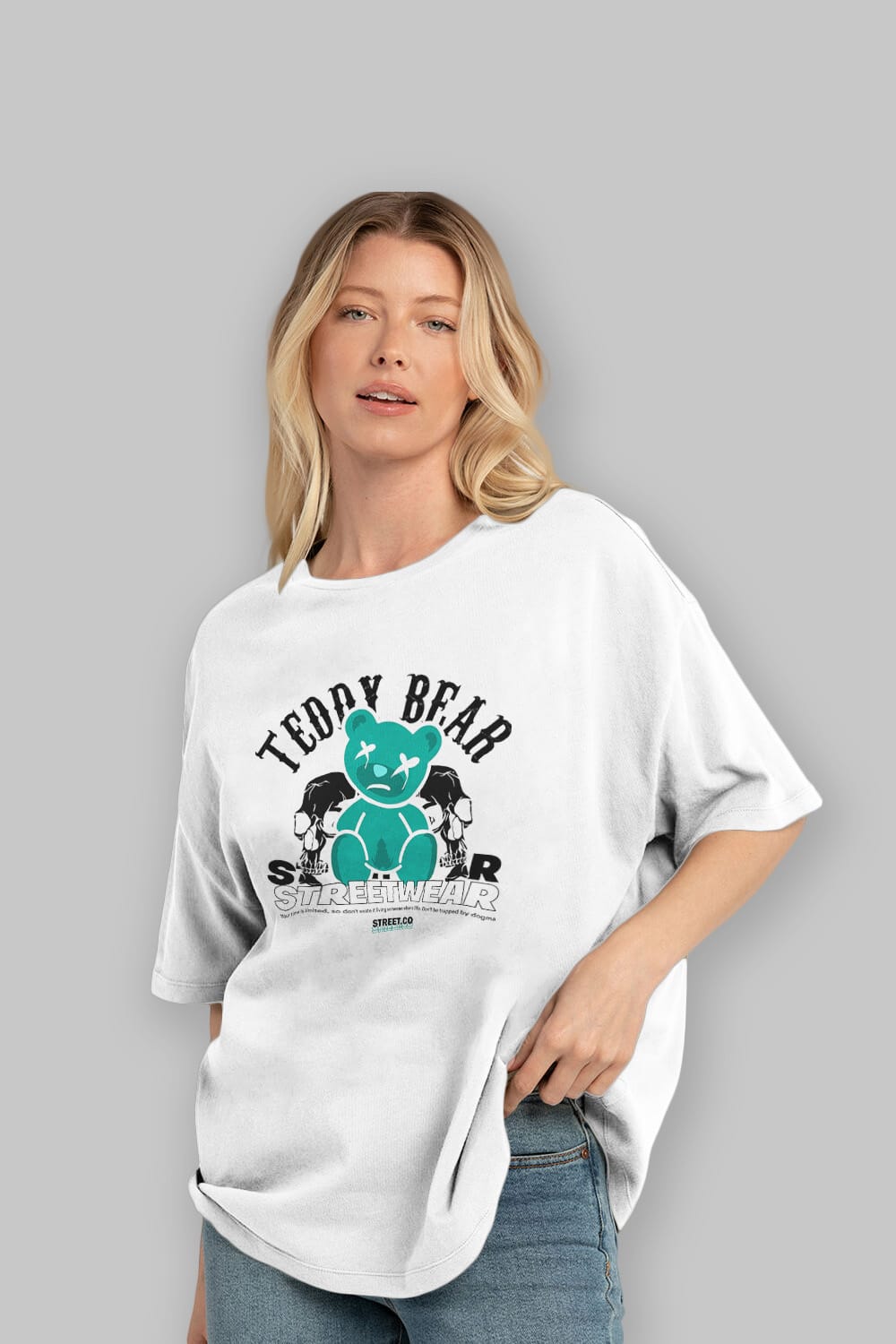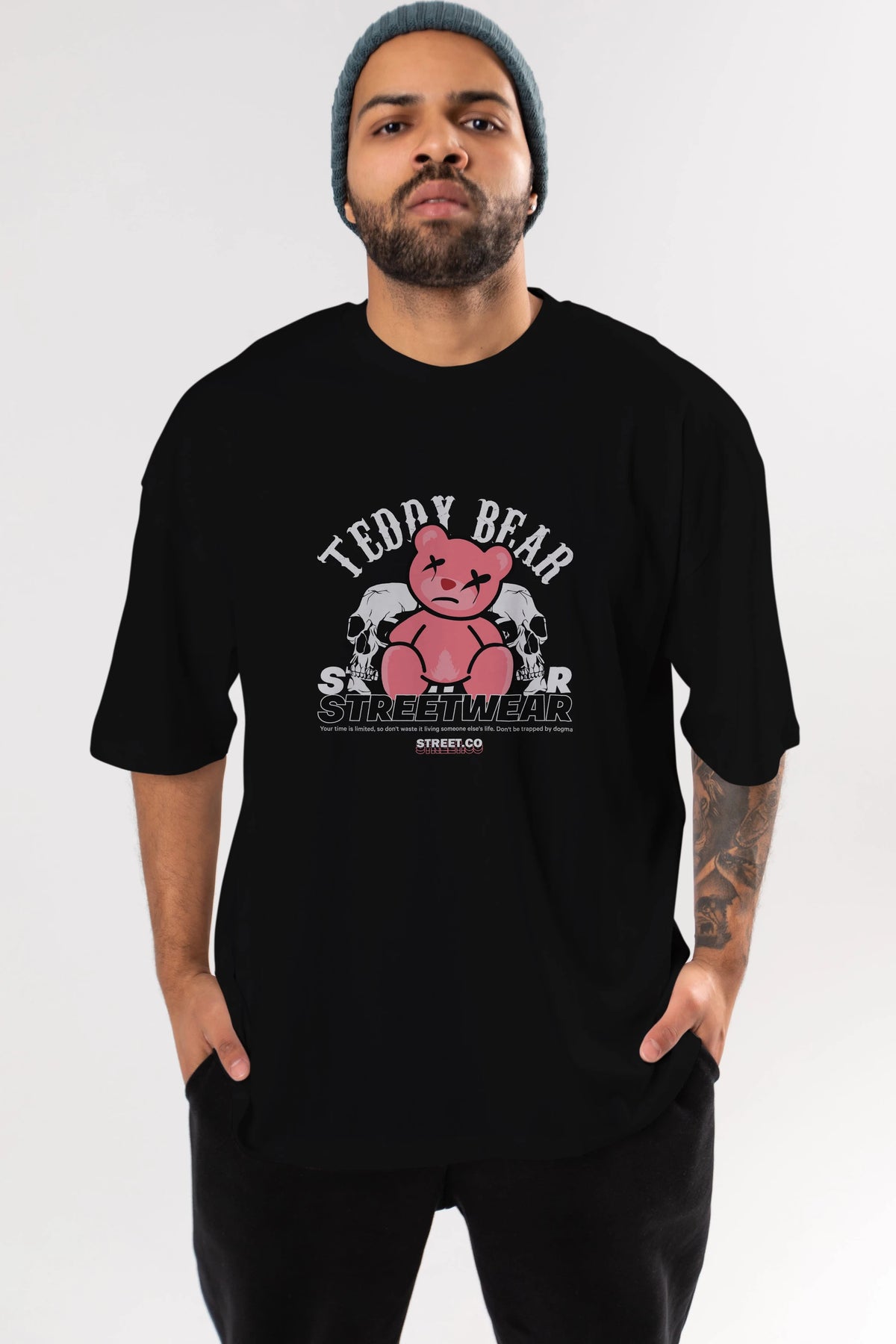 Teddy Bear Streetwear 2 Ön Baskılı Oversize t-shirt Erkek Kadın Unisex