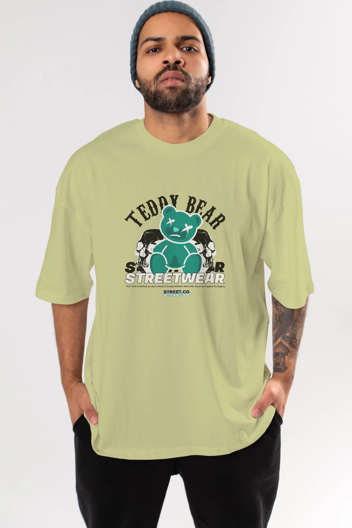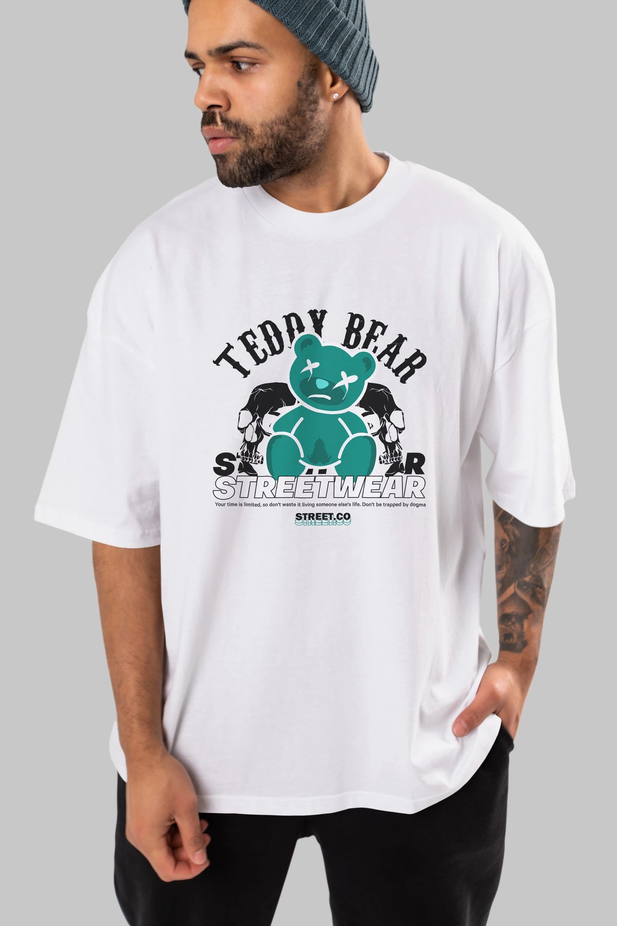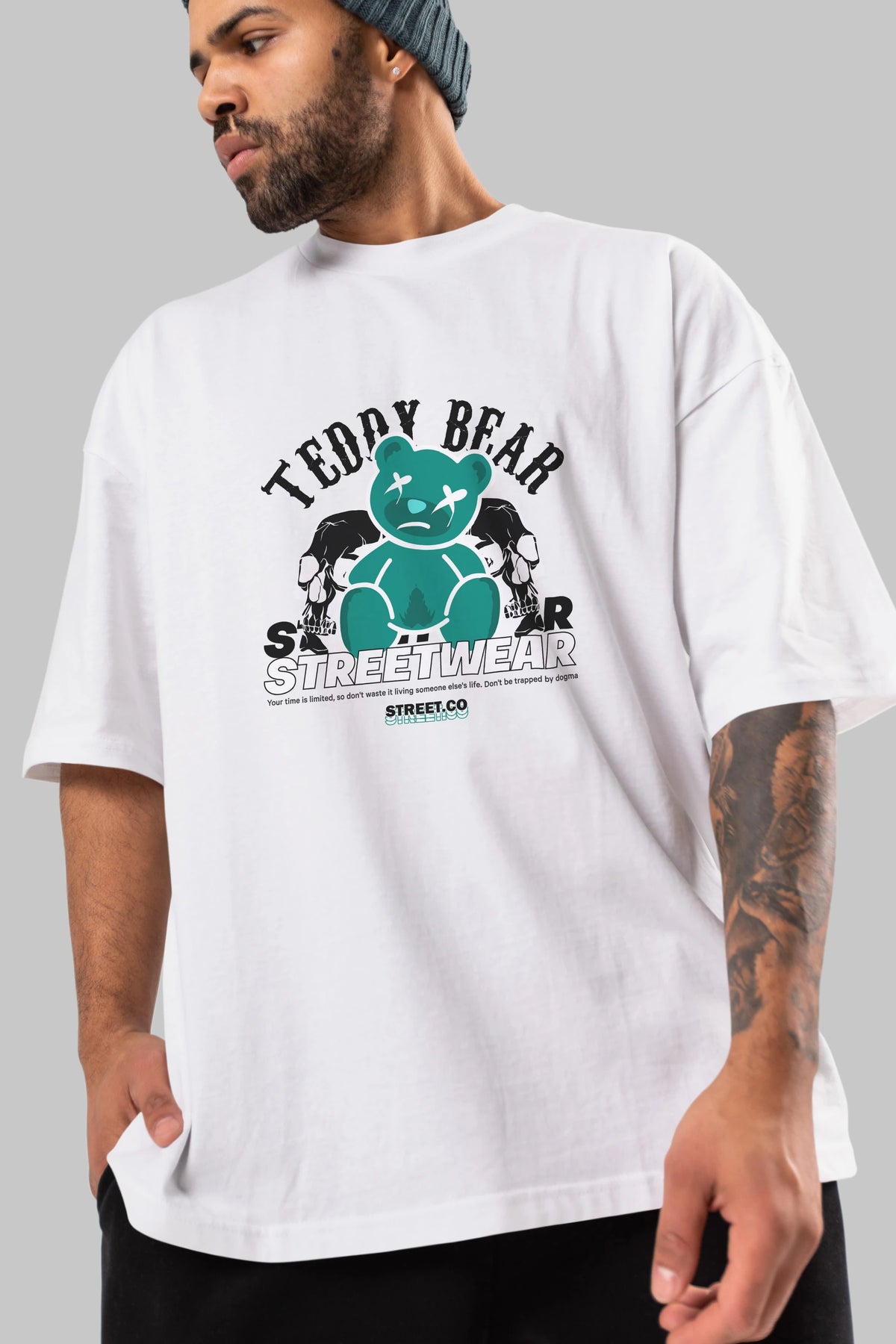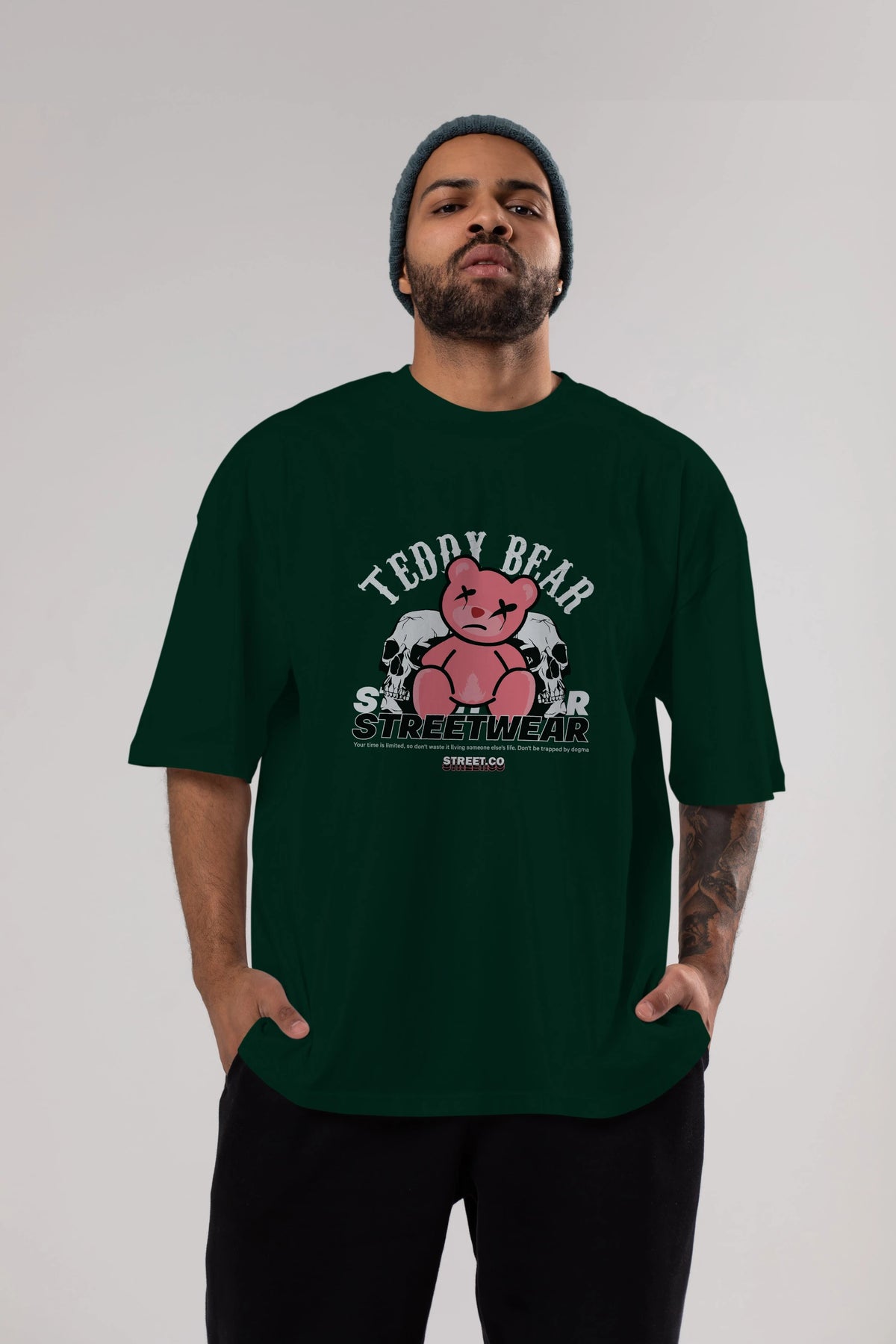 Teddy Bear Streetwear 2 Ön Baskılı Oversize t-shirt Erkek Kadın Unisex