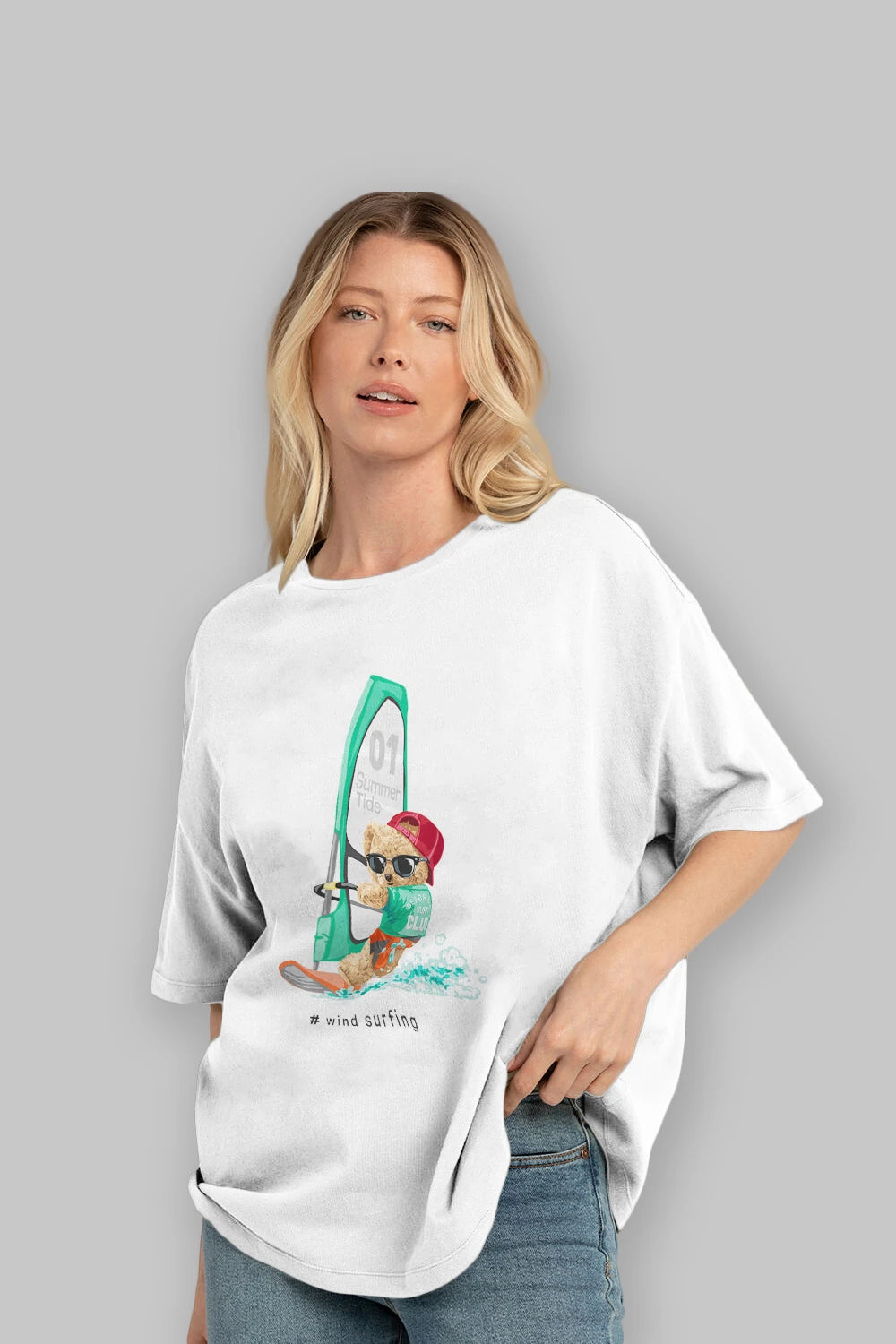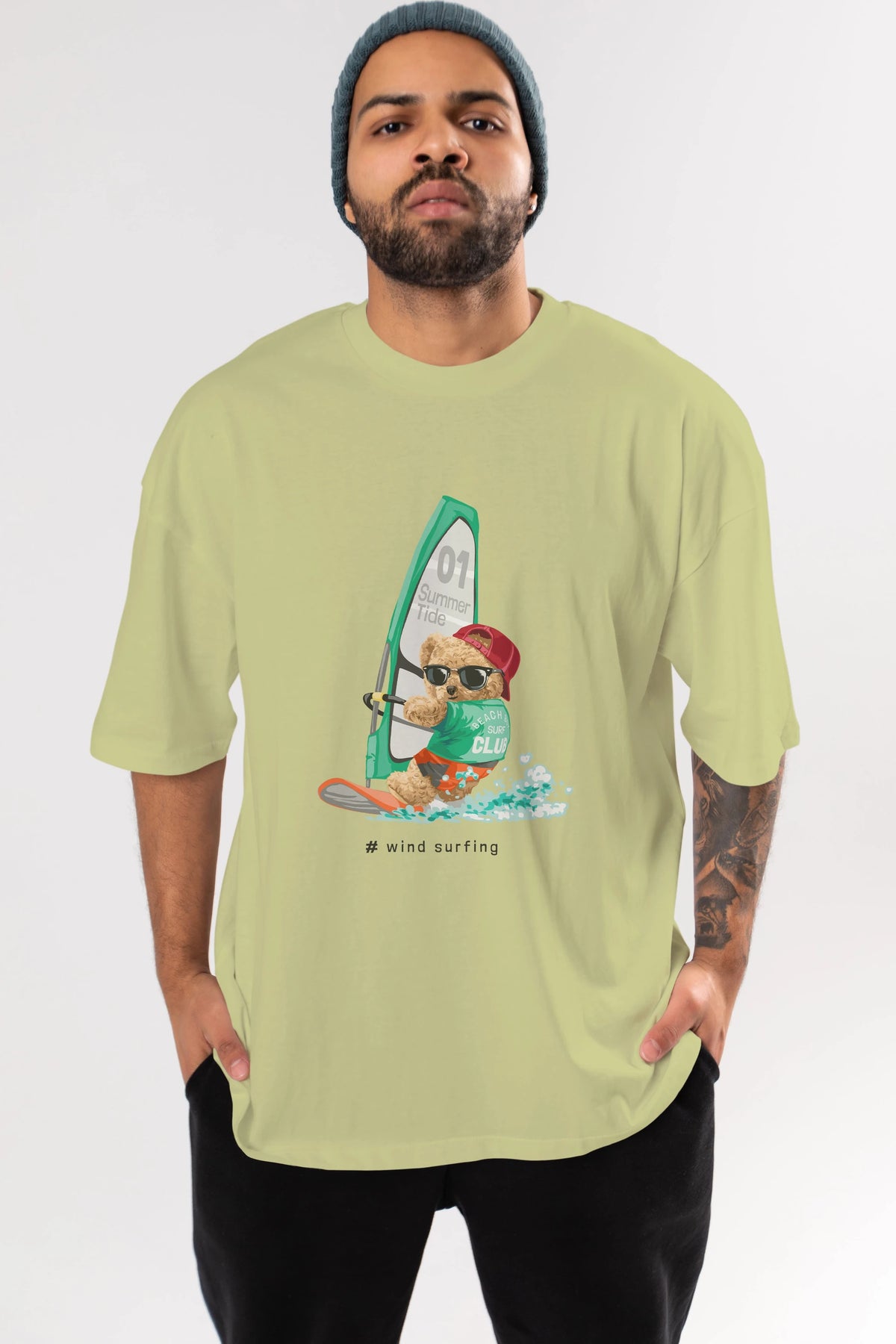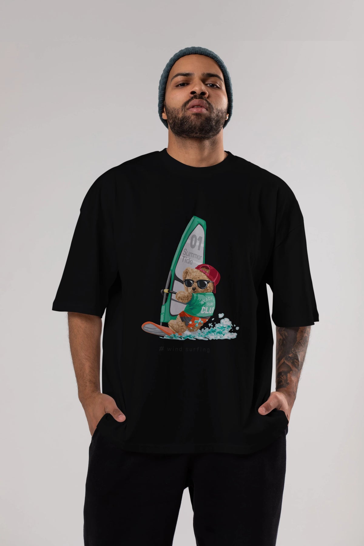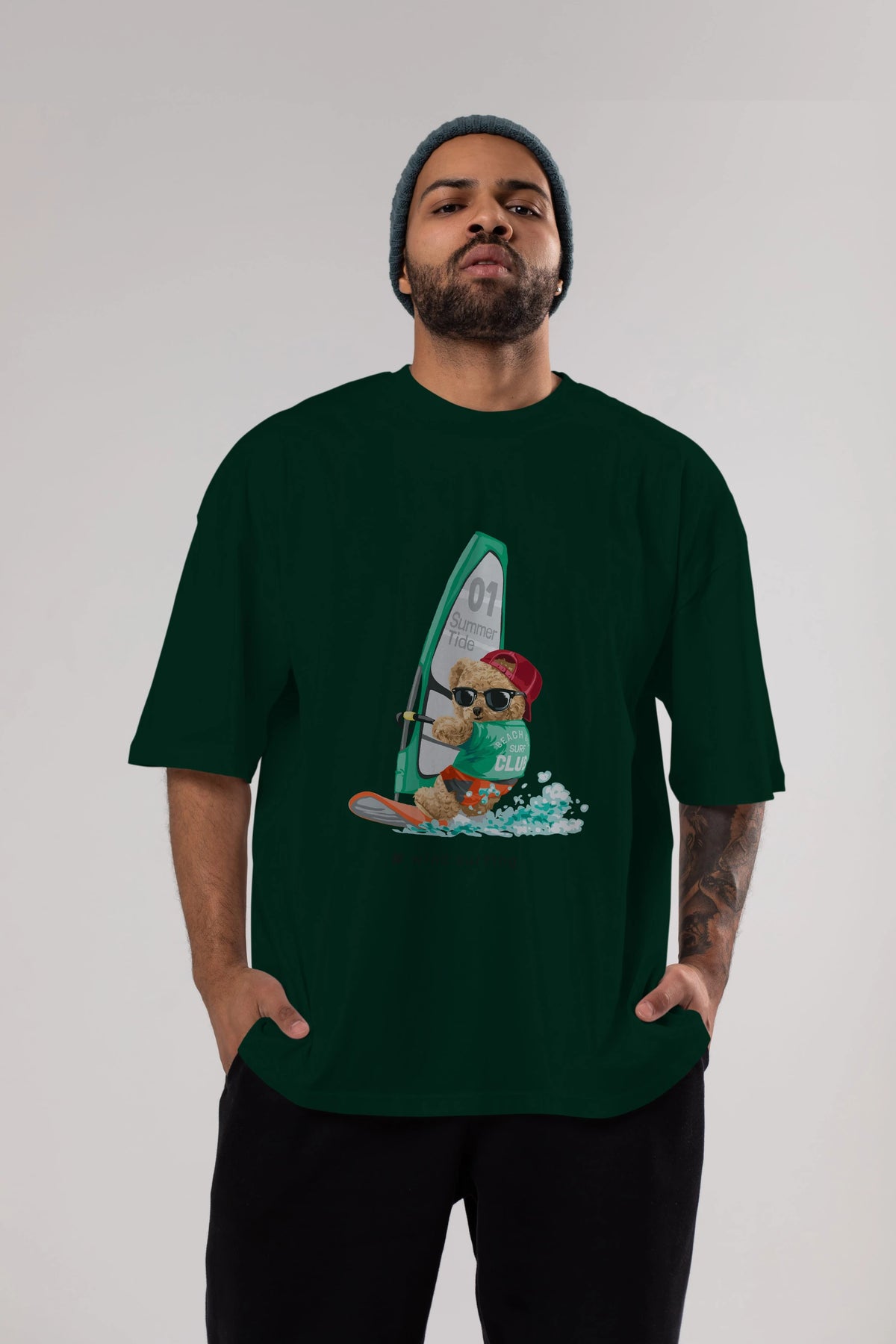 Teddy Bear Summer Tide Ön Baskılı Oversize t-shirt Erkek Kadın Unisex %100 Pamuk