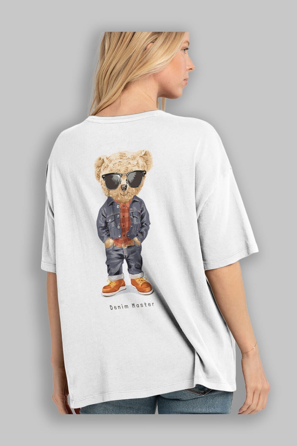 Teddy Bear Tarz Arka Baskılı Oversize t-shirt Erkek Kadın Unisex %100 Pamuk