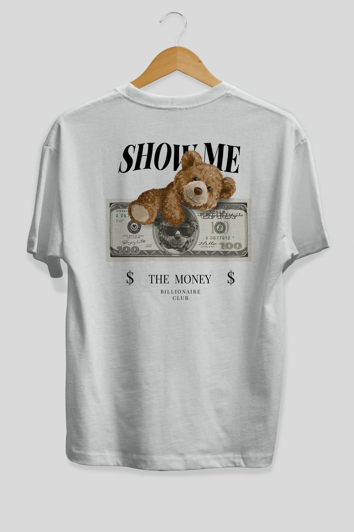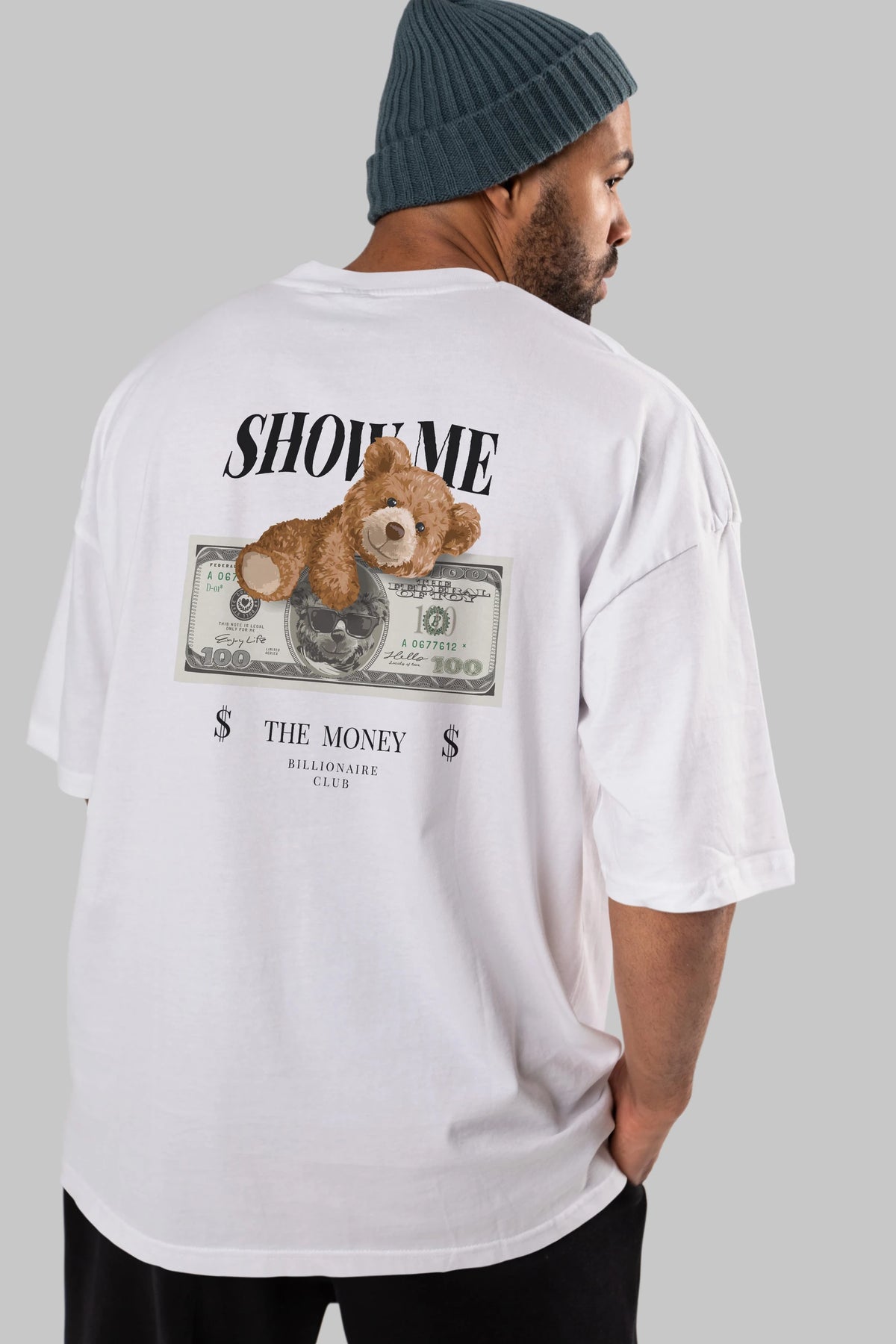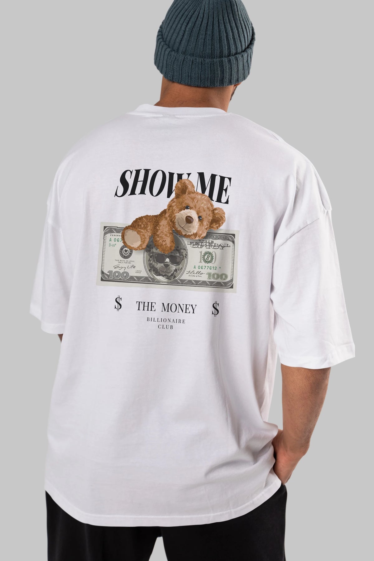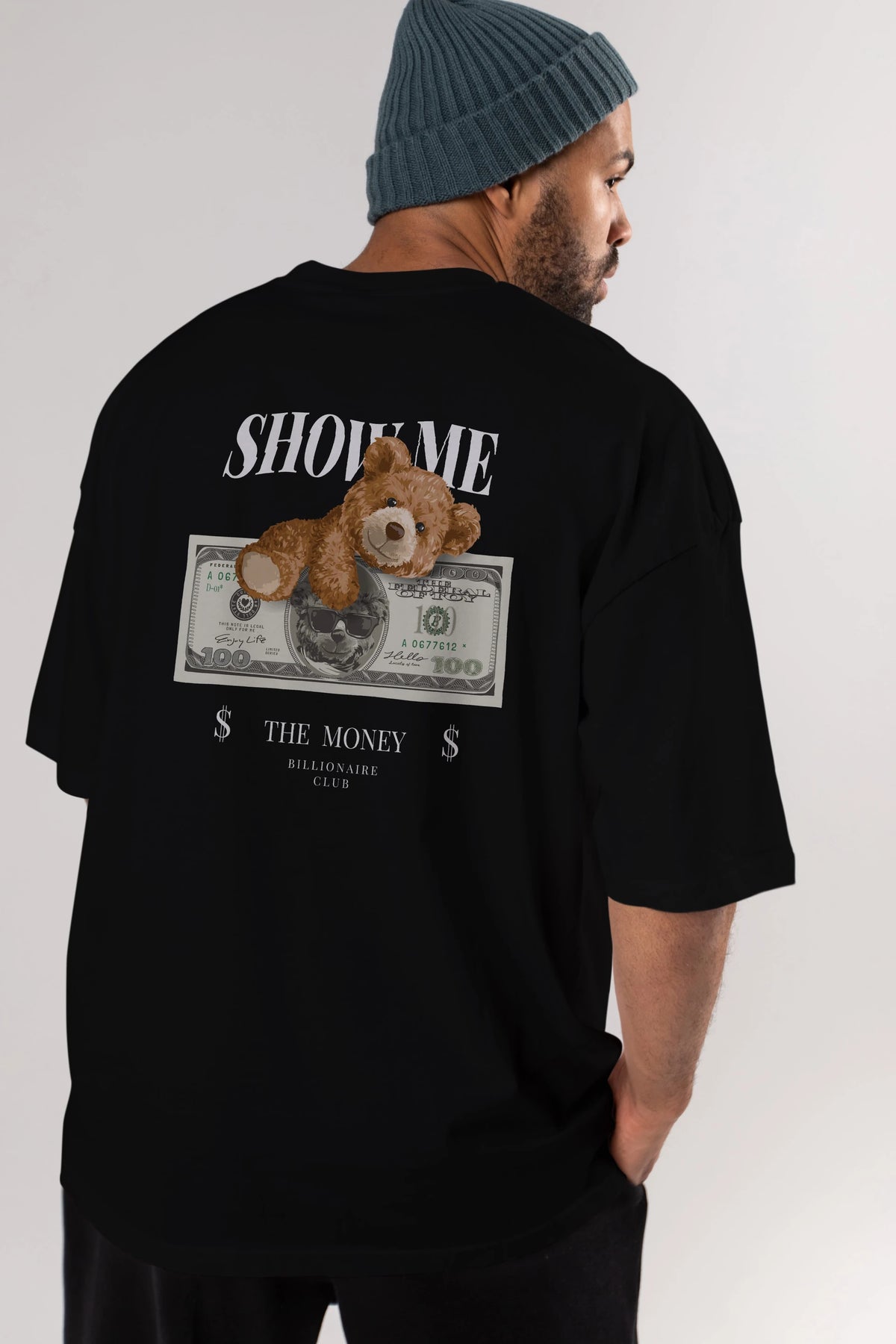 Teddy Bear The Money Arka Baskılı Oversize t-shirt Erkek Kadın Unisex %100 Pamuk