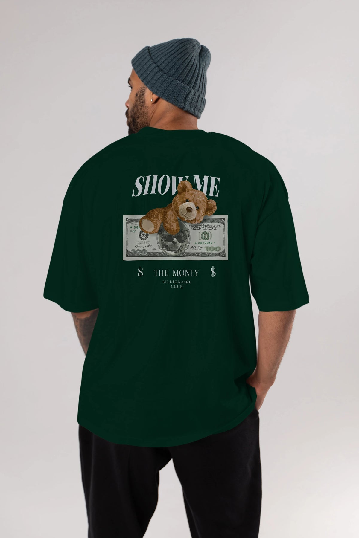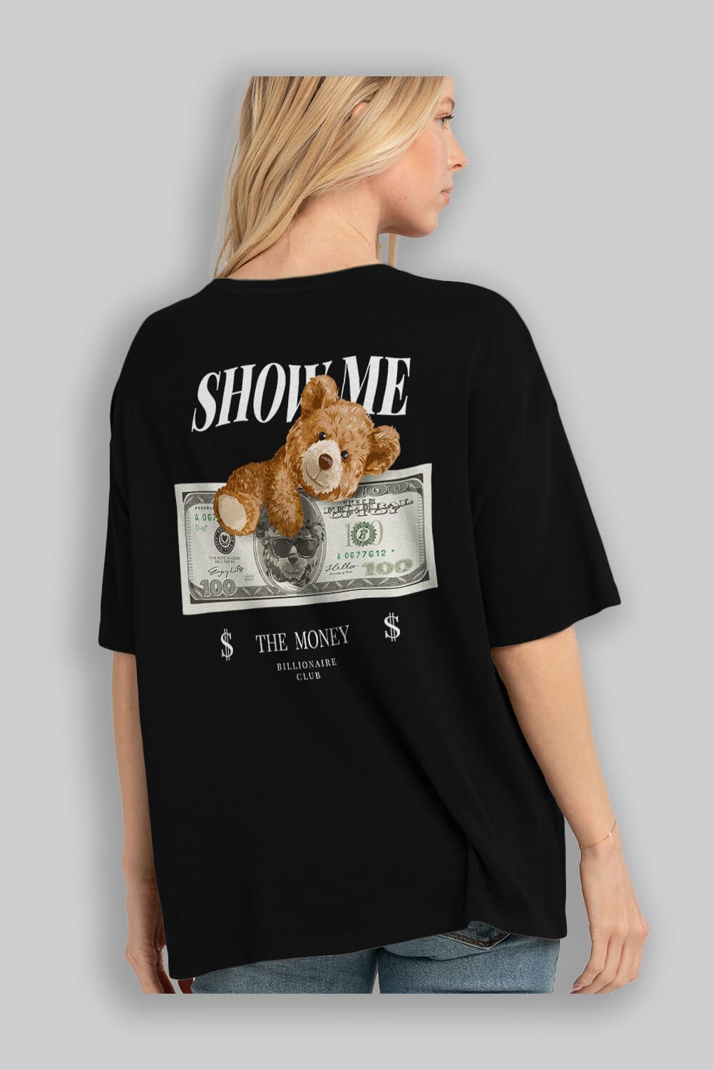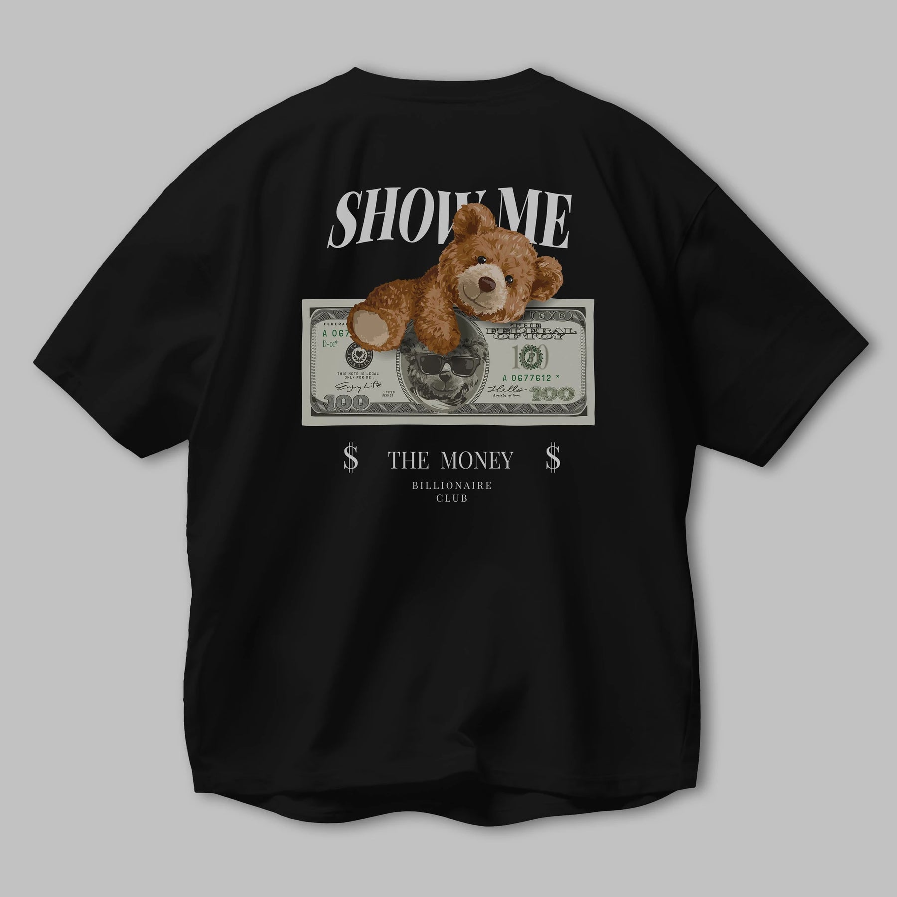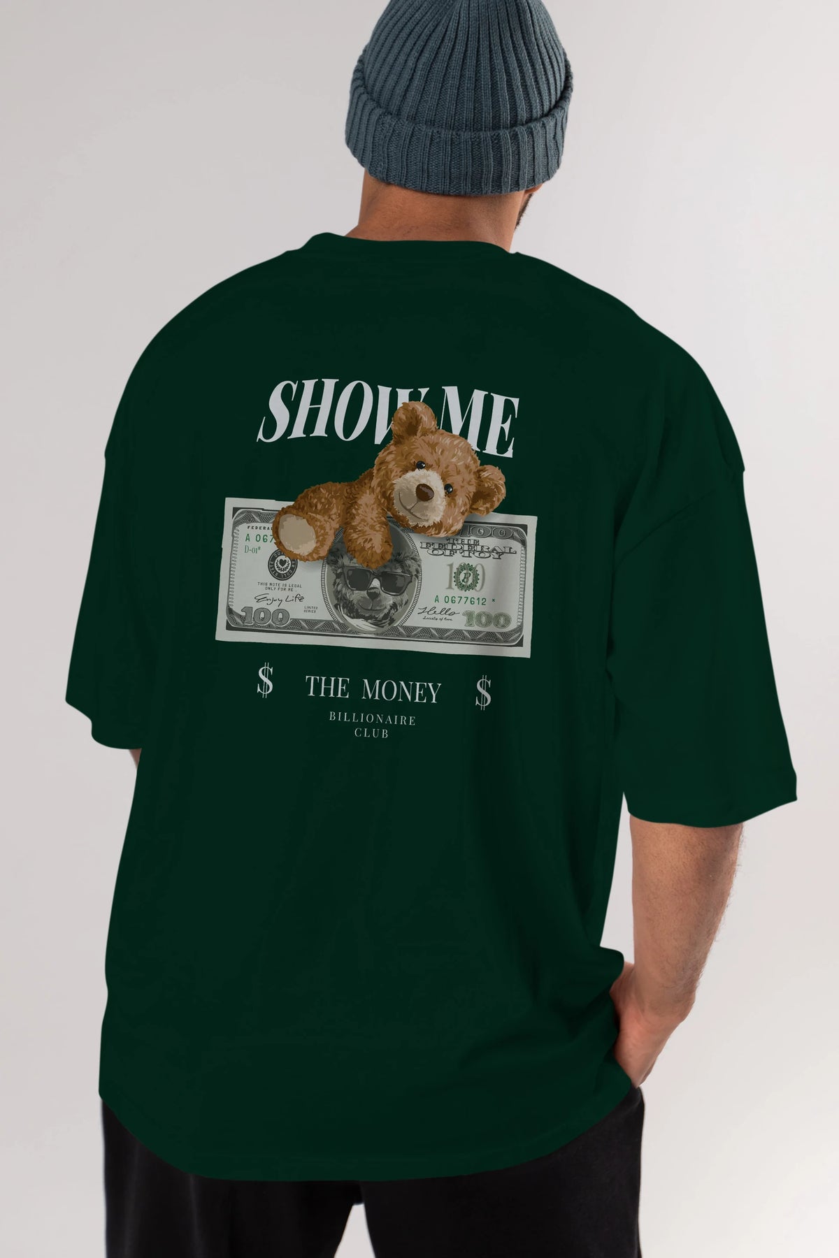 Teddy Bear The Money Arka Baskılı Oversize t-shirt Erkek Kadın Unisex %100 Pamuk