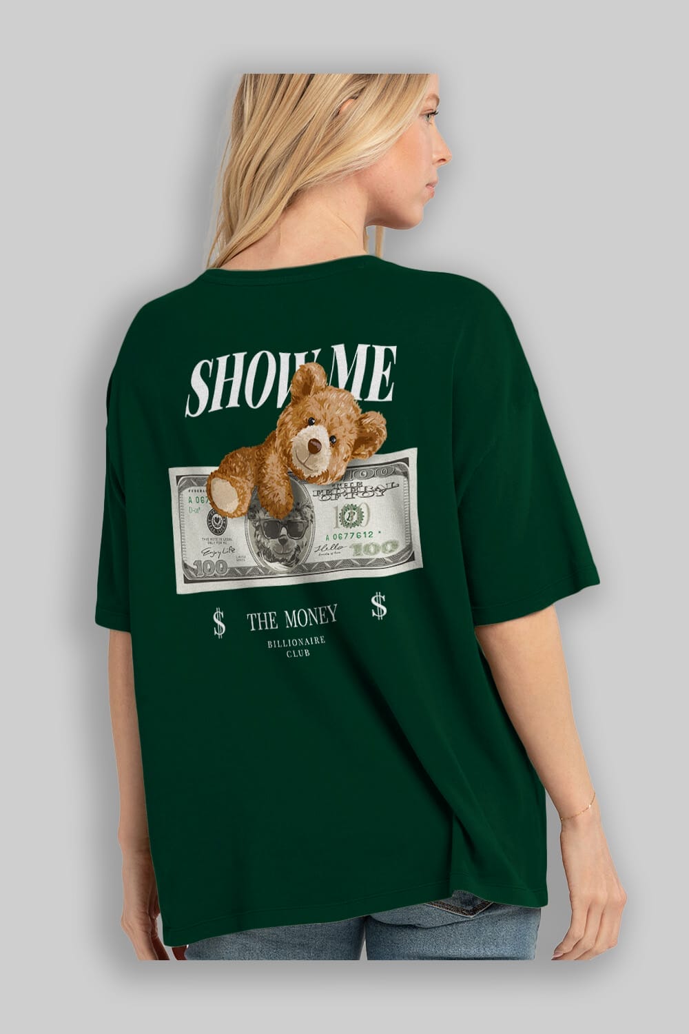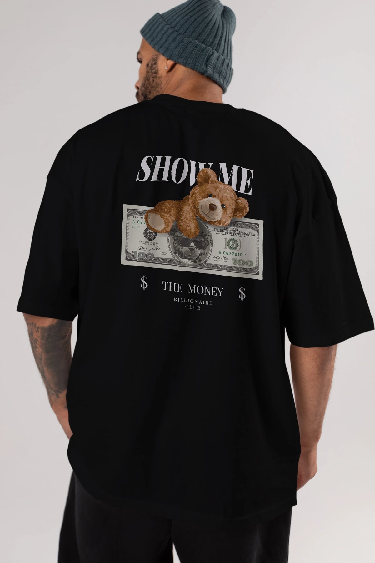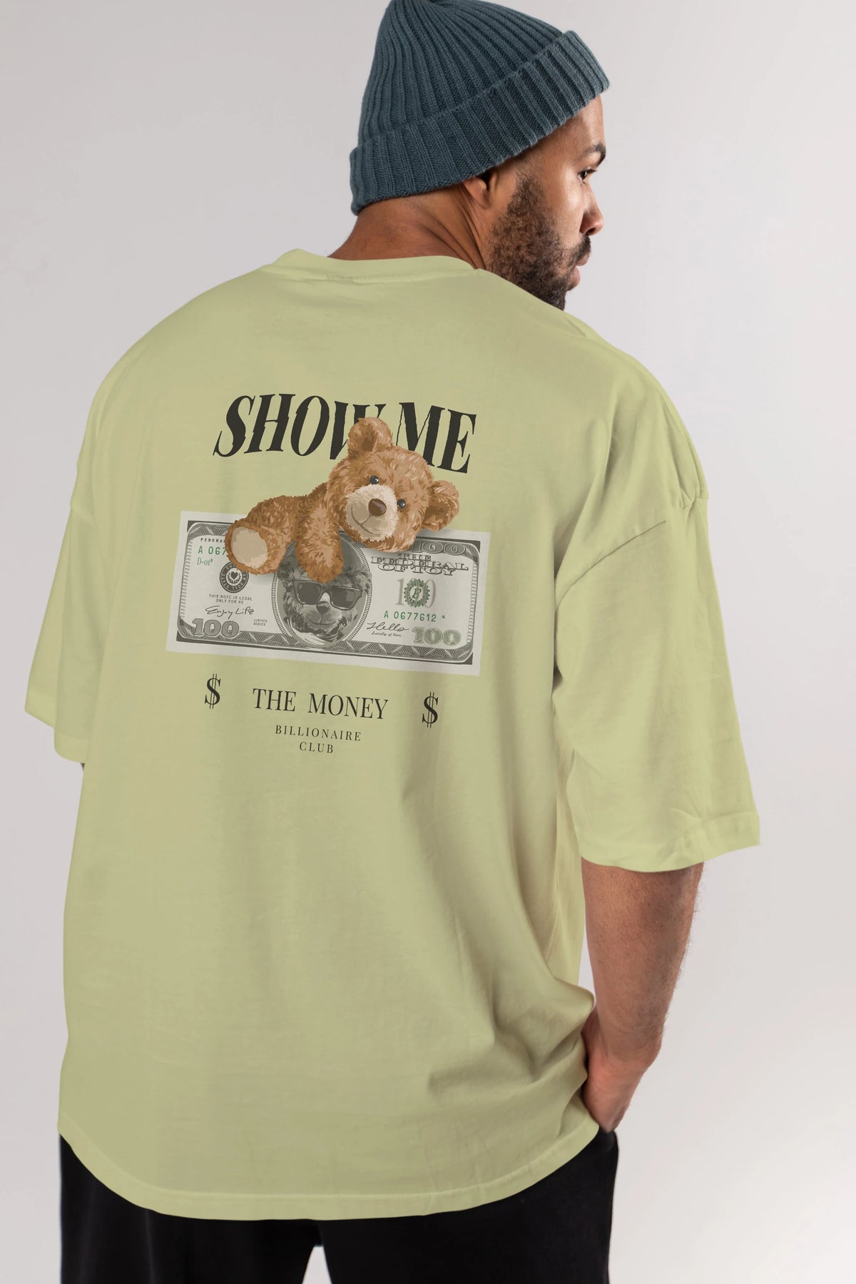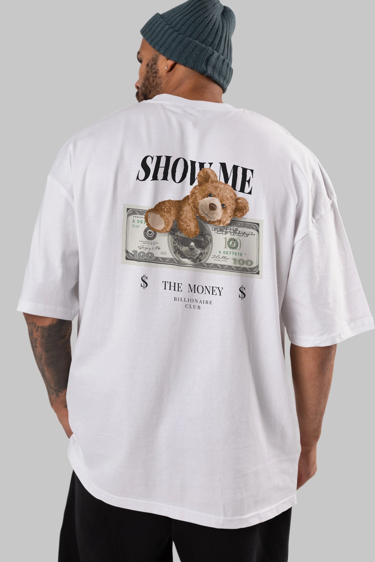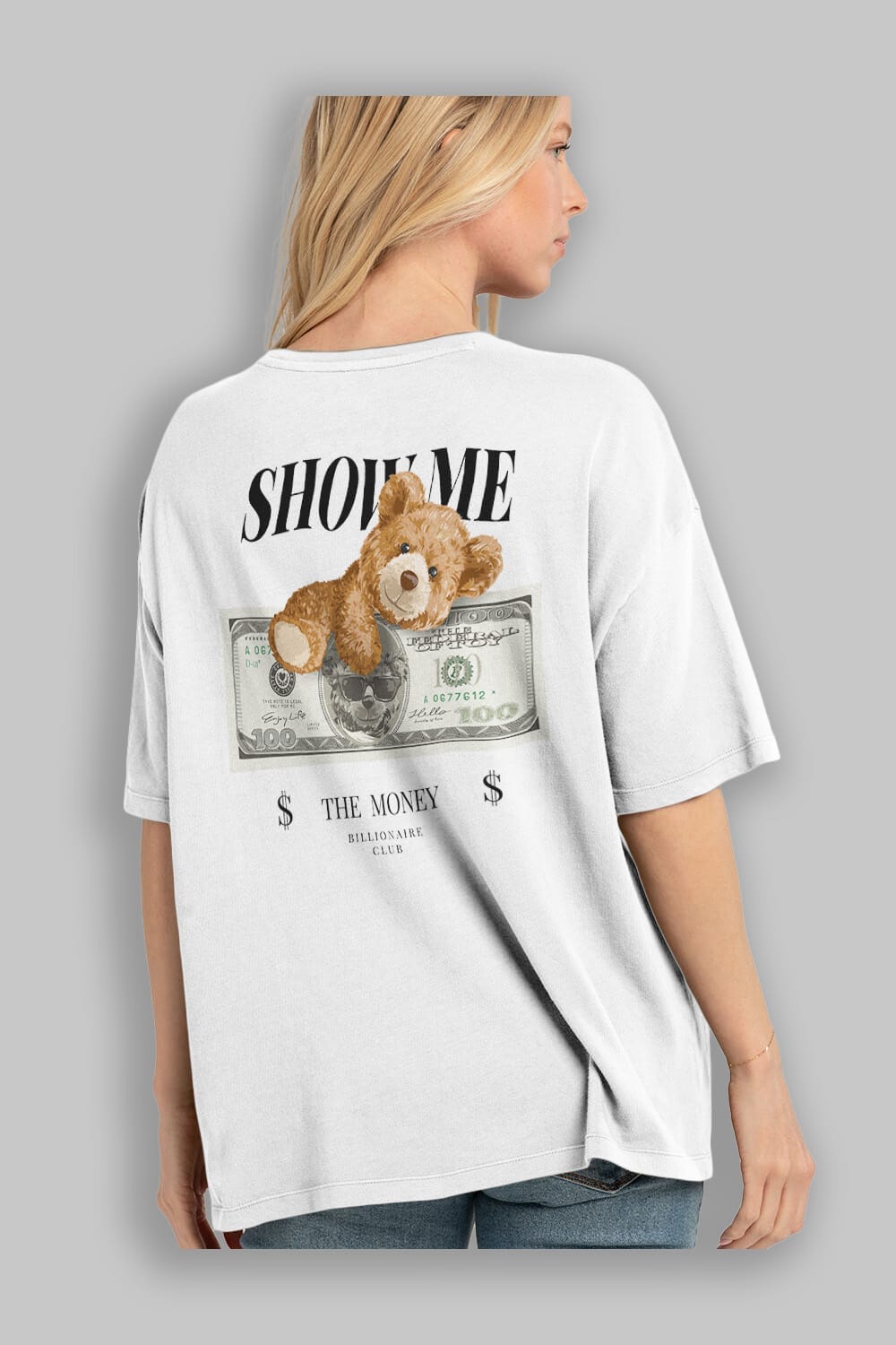 Teddy Bear The Money Arka Baskılı Oversize t-shirt Erkek Kadın Unisex %100 Pamuk