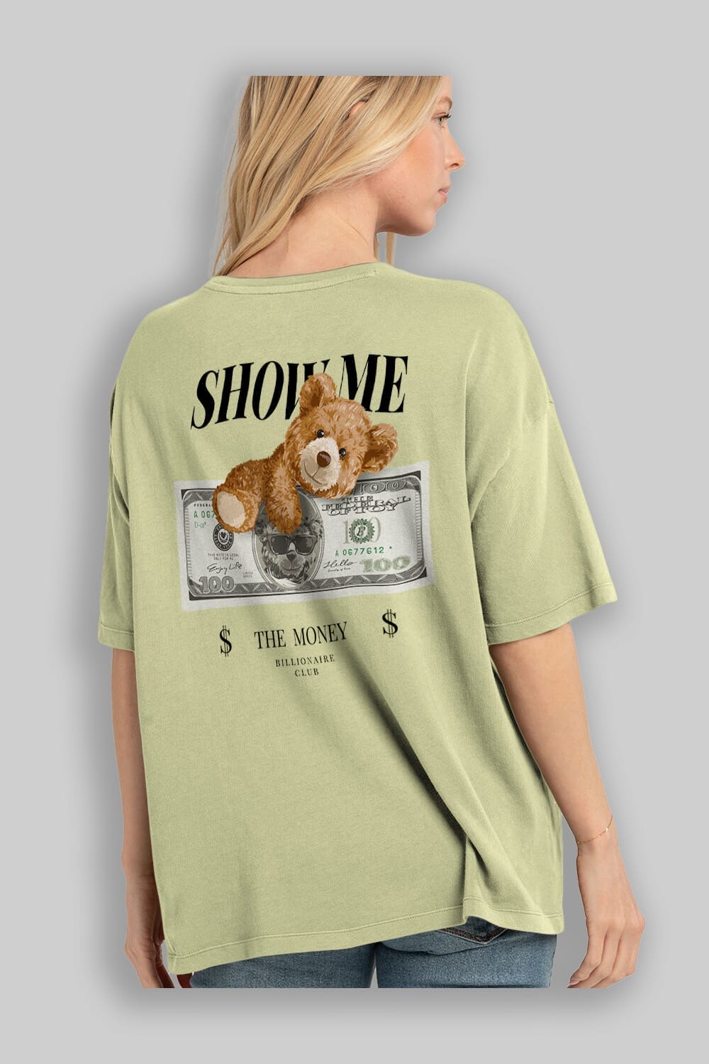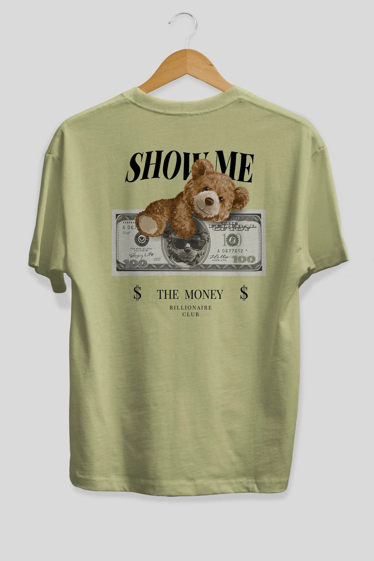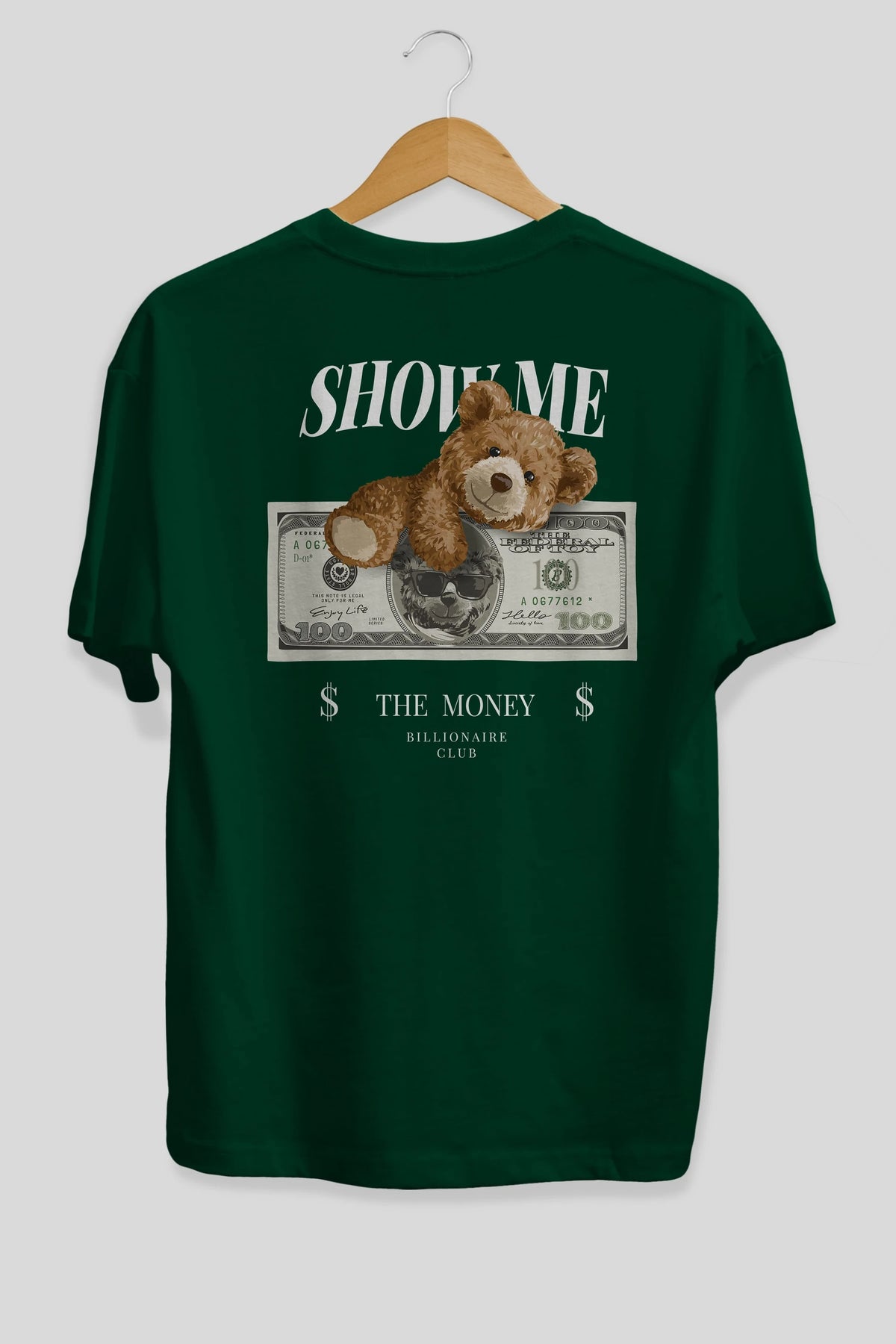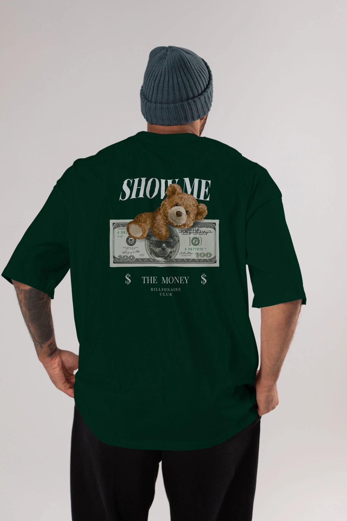 Teddy Bear The Money Arka Baskılı Oversize t-shirt Erkek Kadın Unisex %100 Pamuk