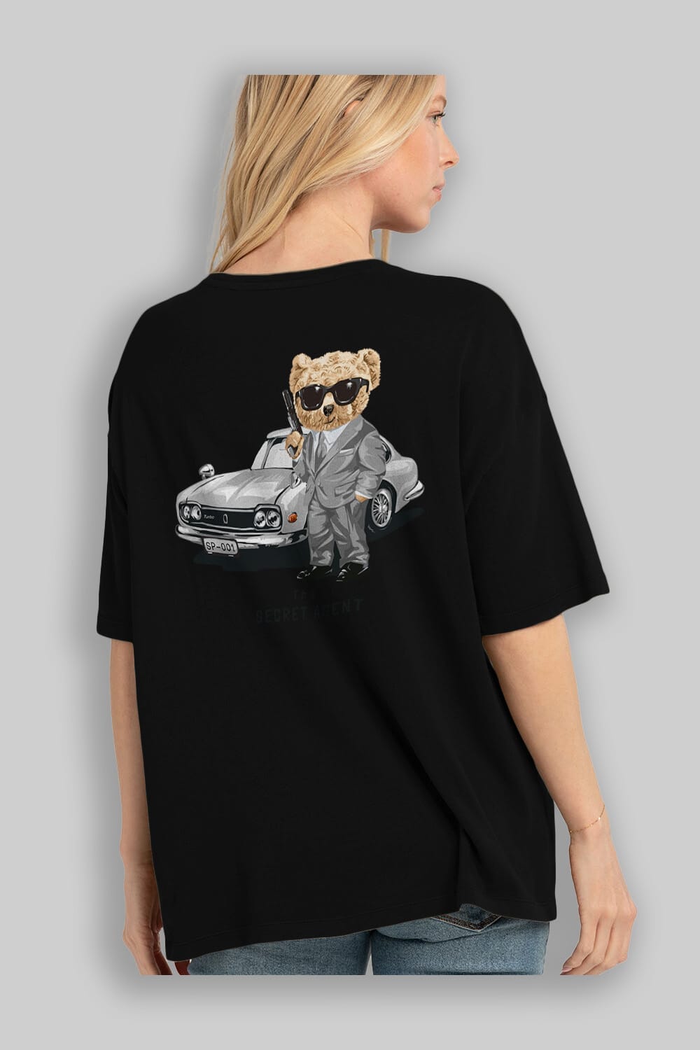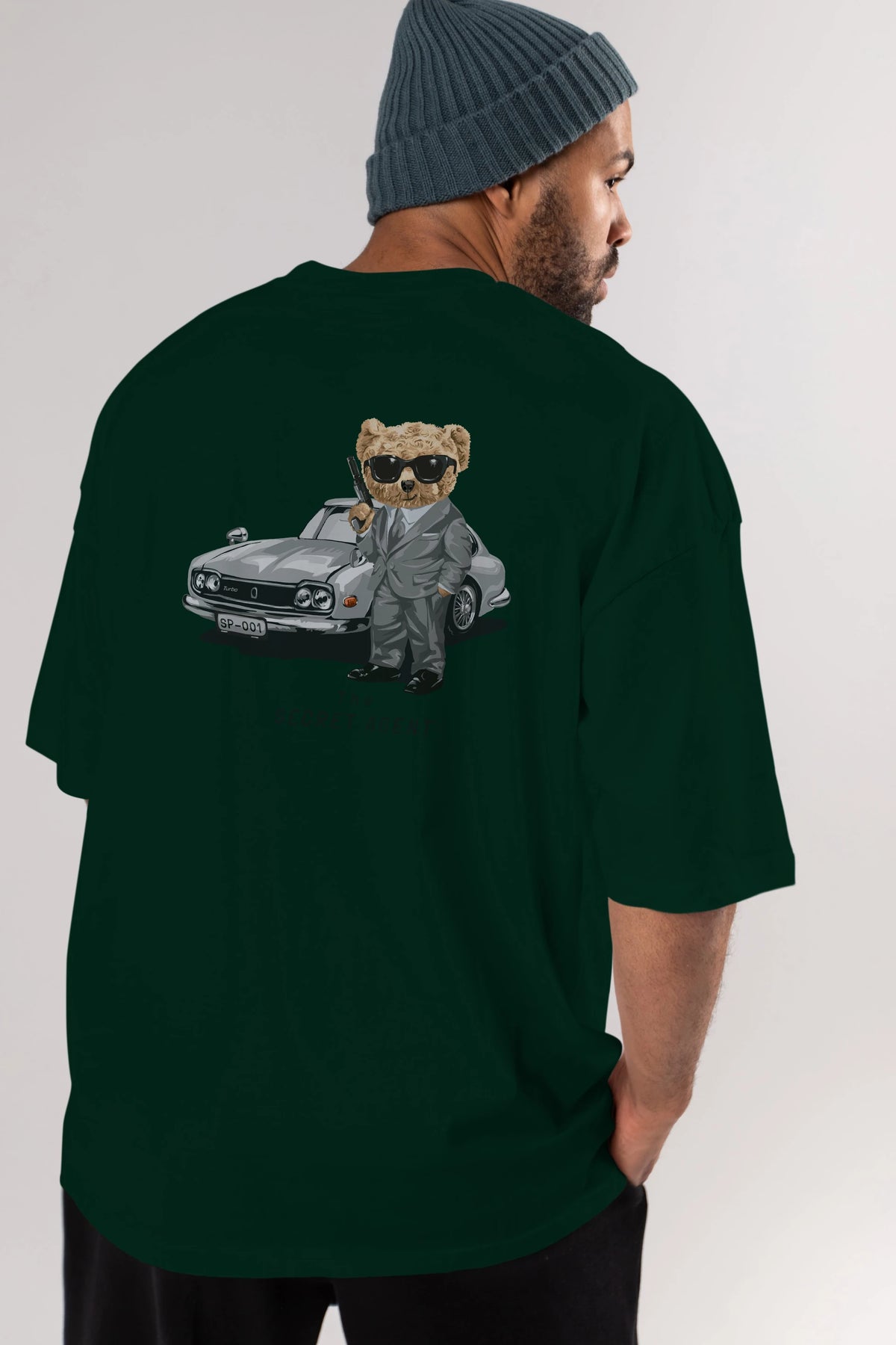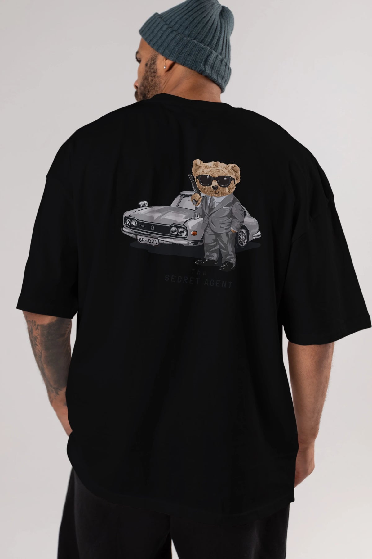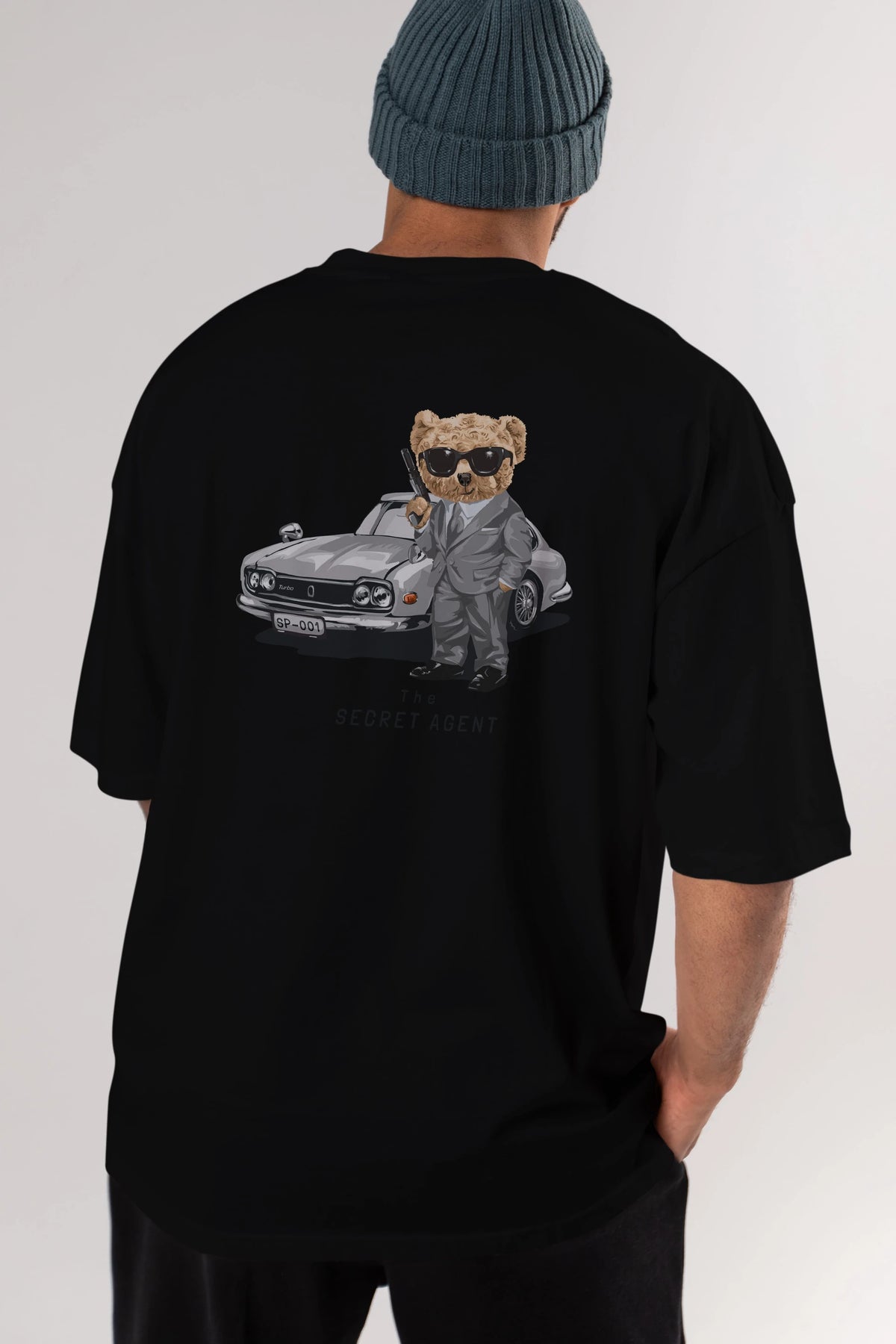 Teddy Bear The Secret Agent Arka Baskılı Oversize t-shirt Erkek Kadın Unisex %100 Pamuk