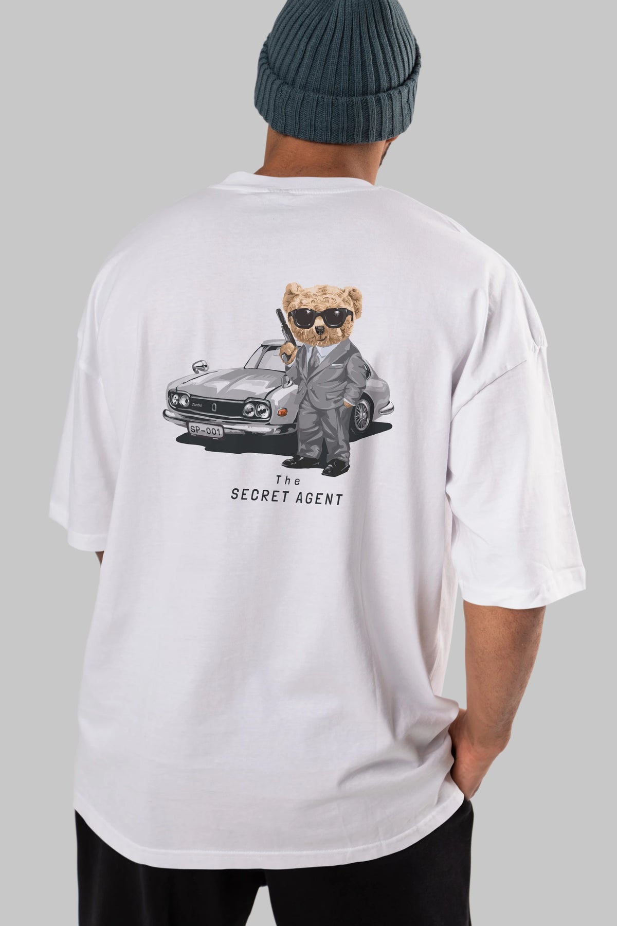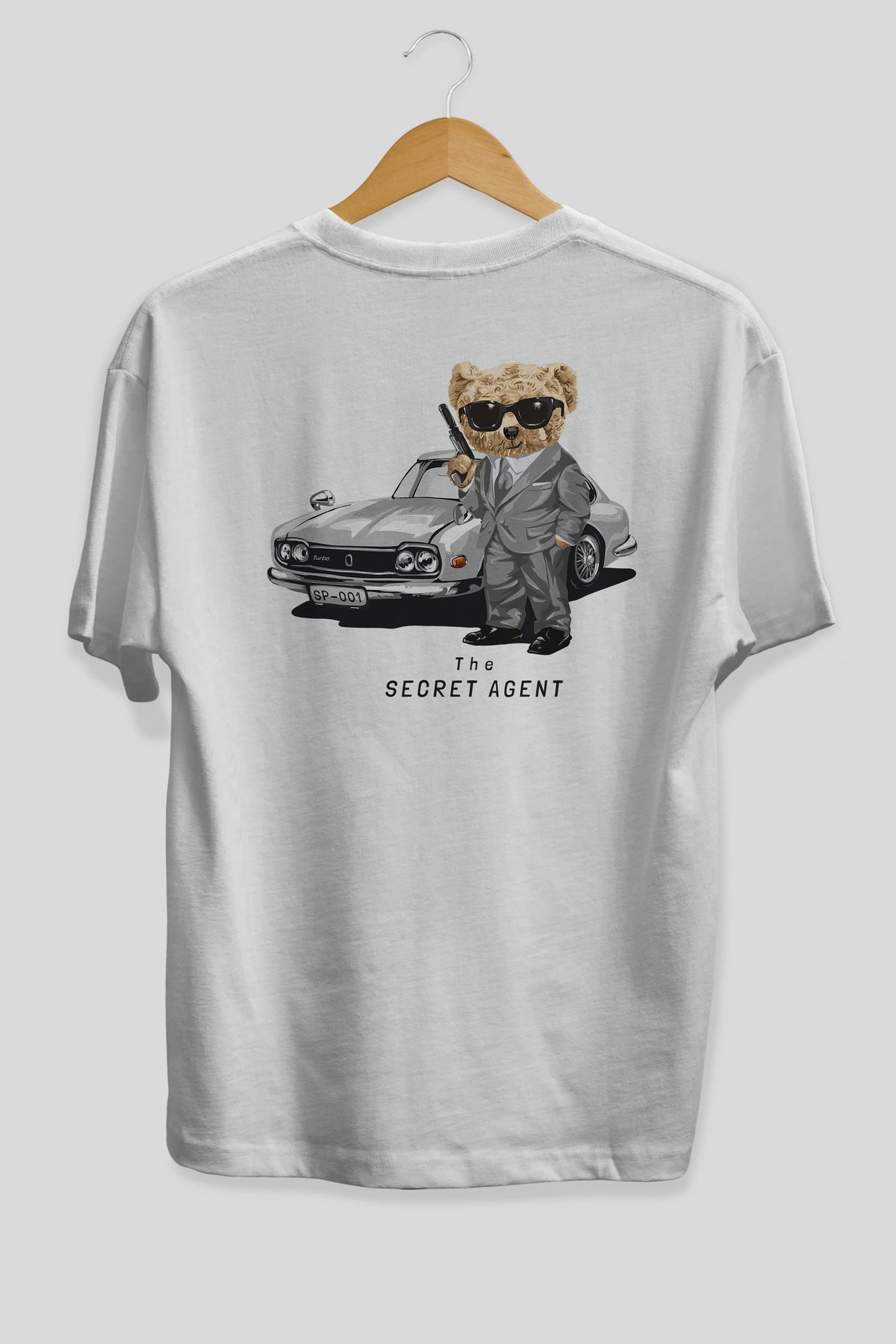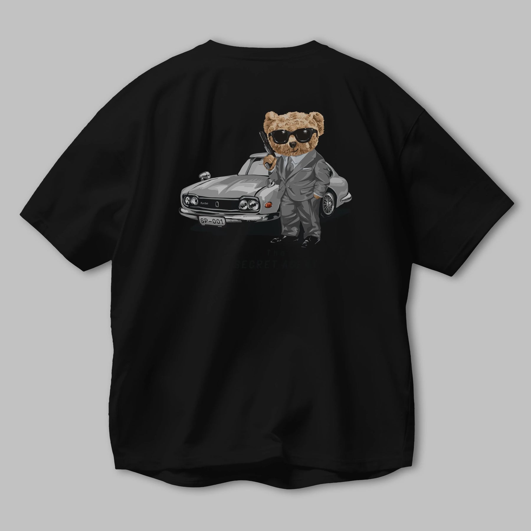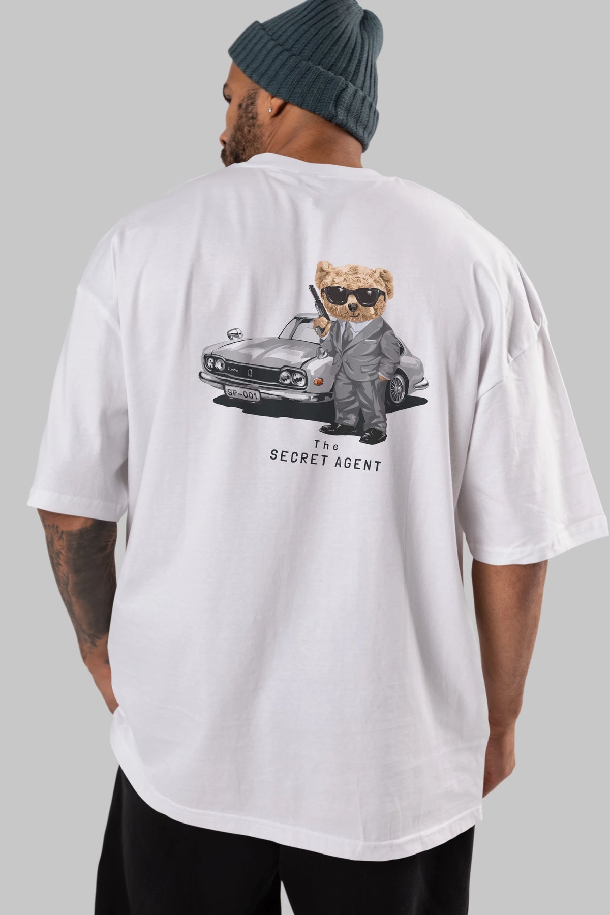 Teddy Bear The Secret Agent Arka Baskılı Oversize t-shirt Erkek Kadın Unisex %100 Pamuk