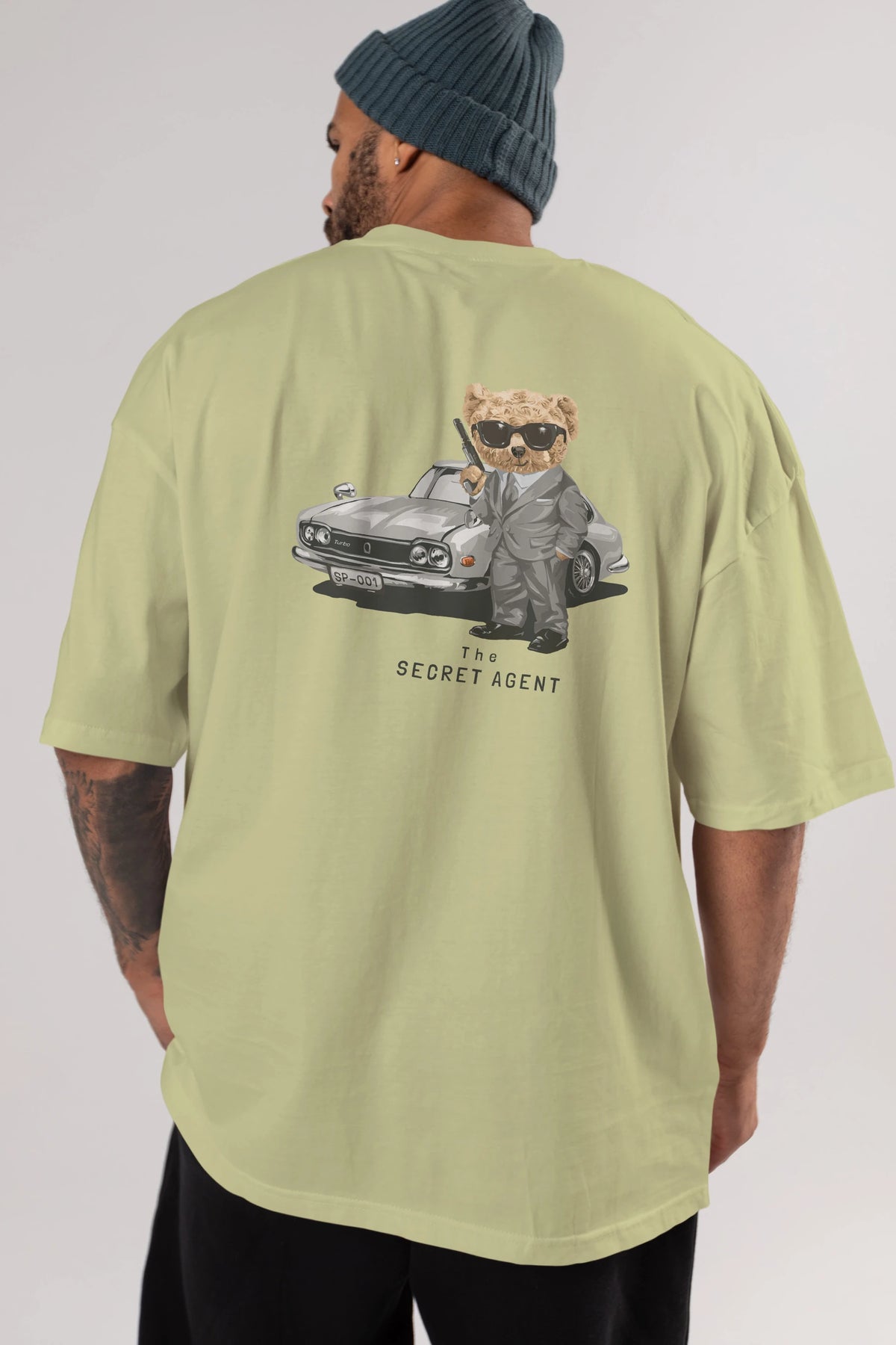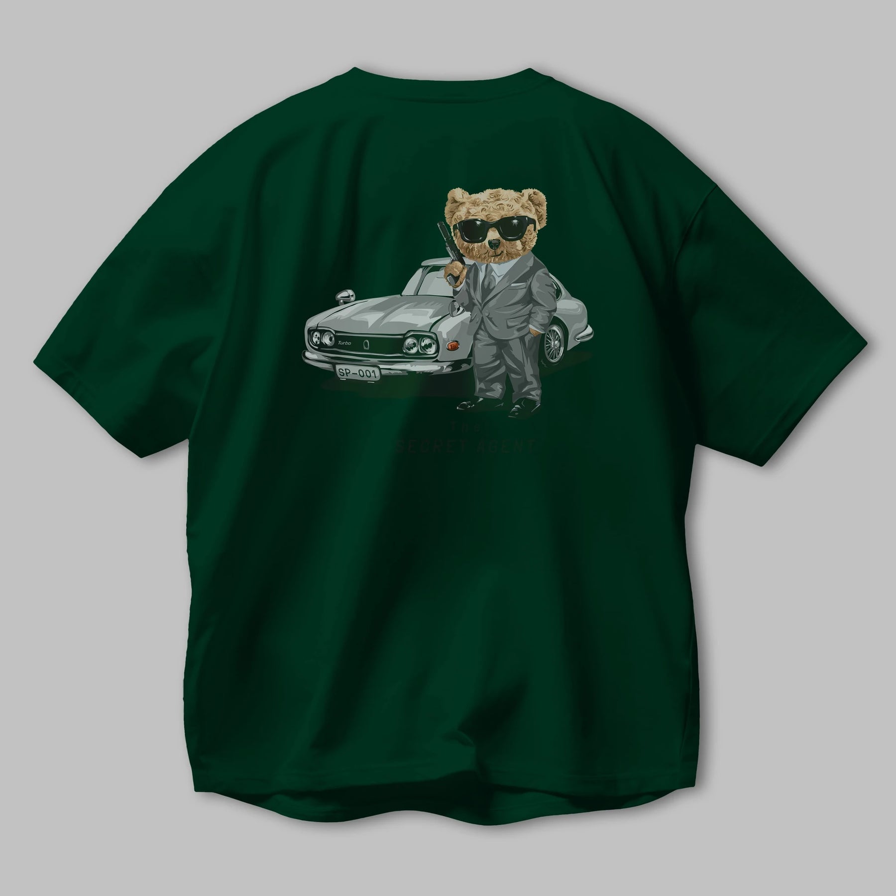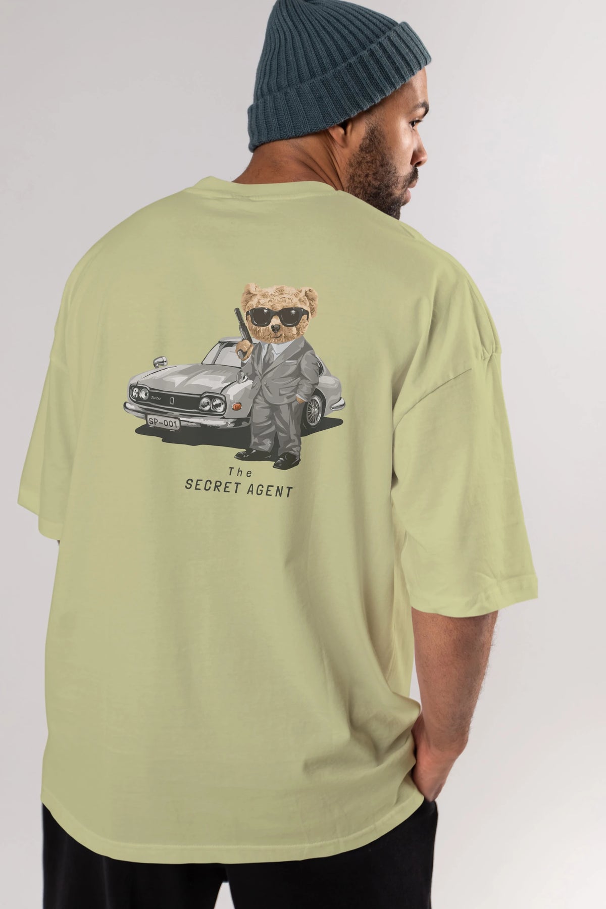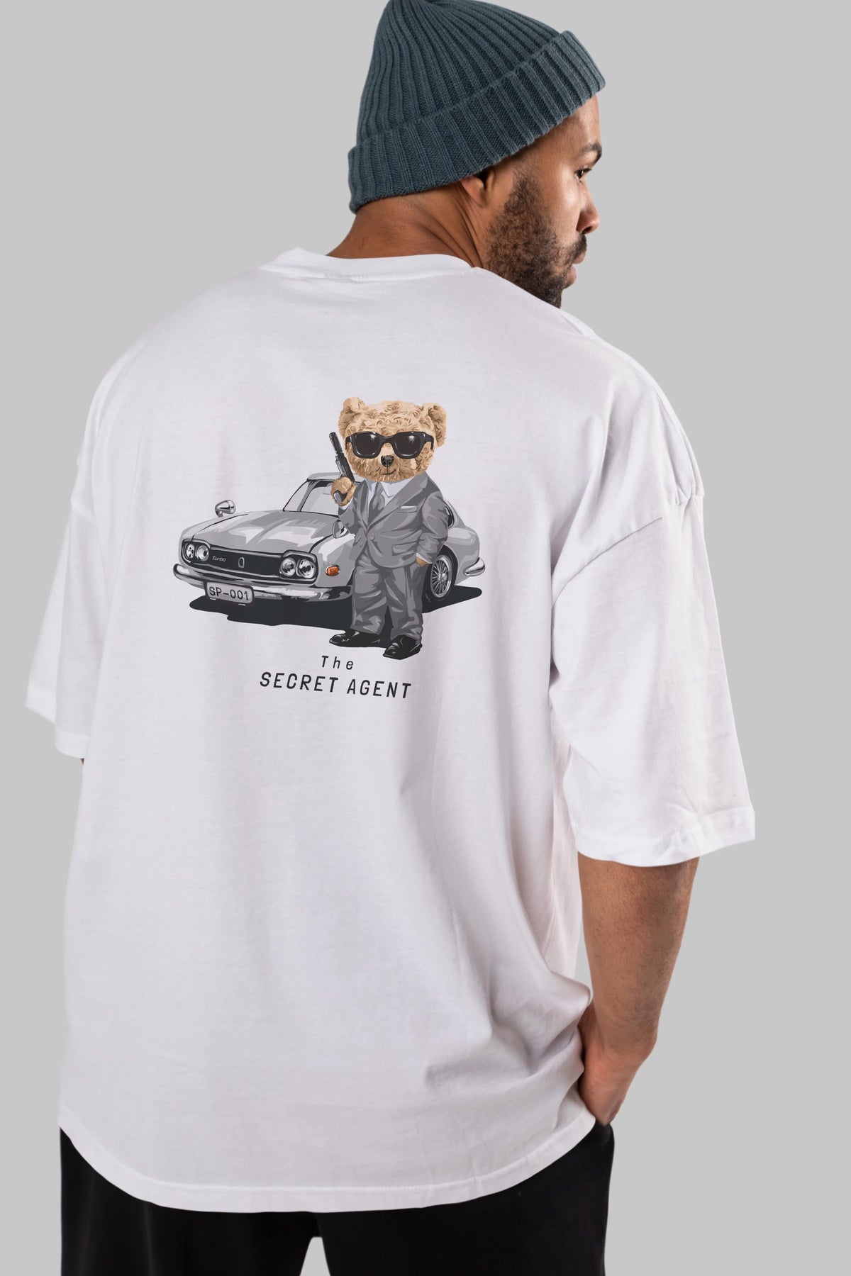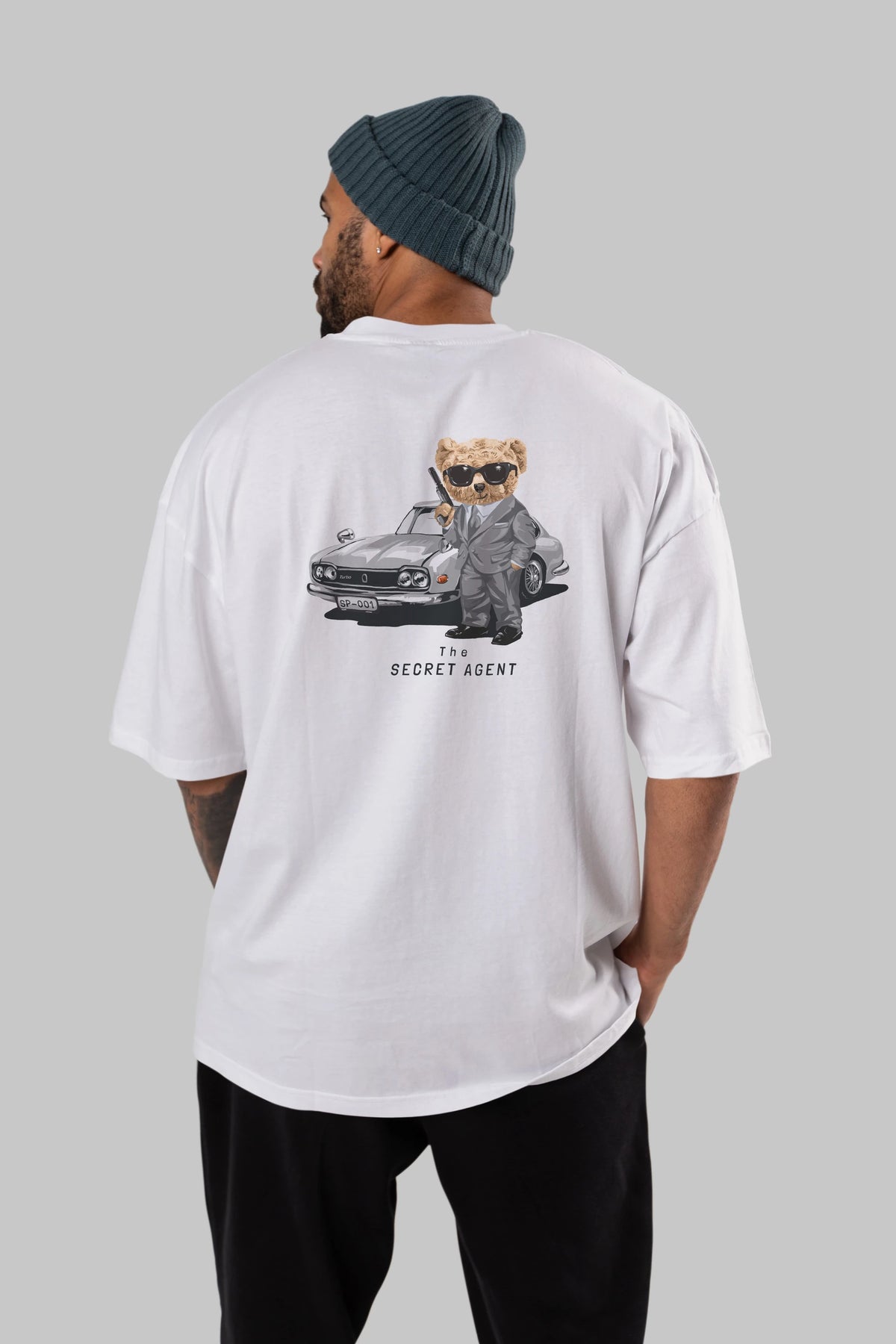 Teddy Bear The Secret Agent Arka Baskılı Oversize t-shirt Erkek Kadın Unisex %100 Pamuk