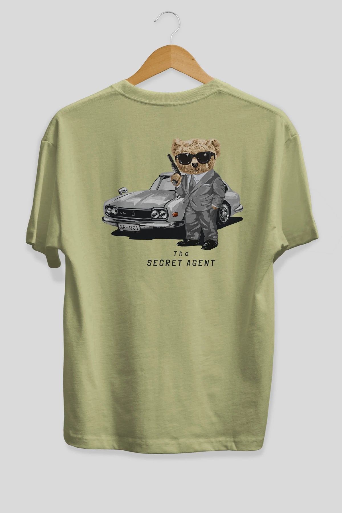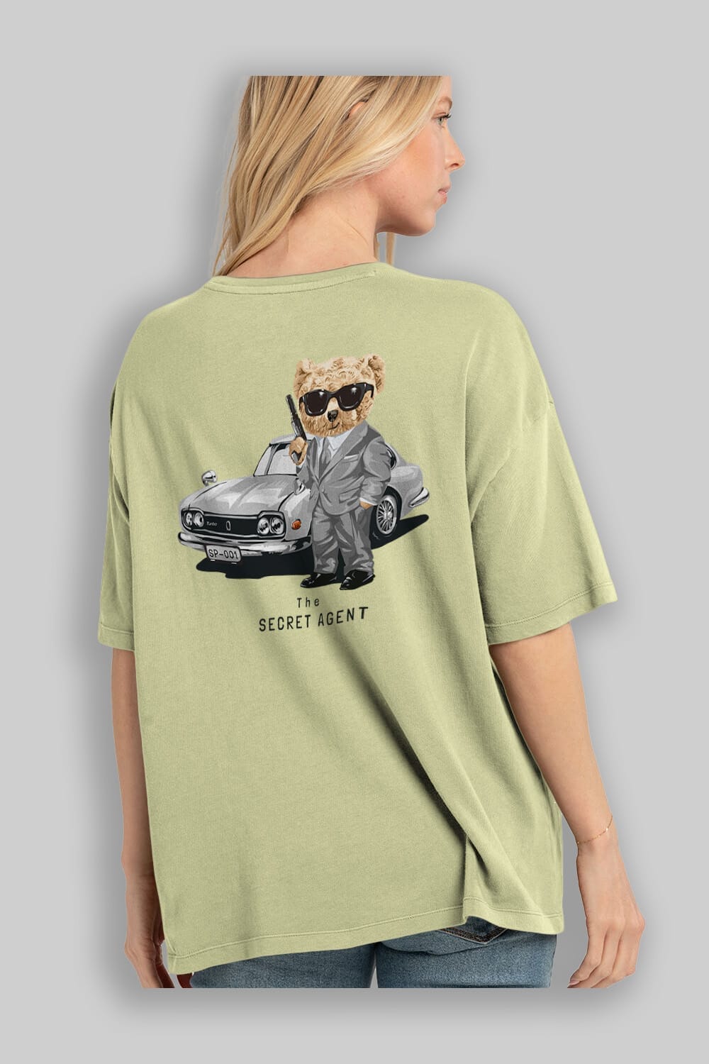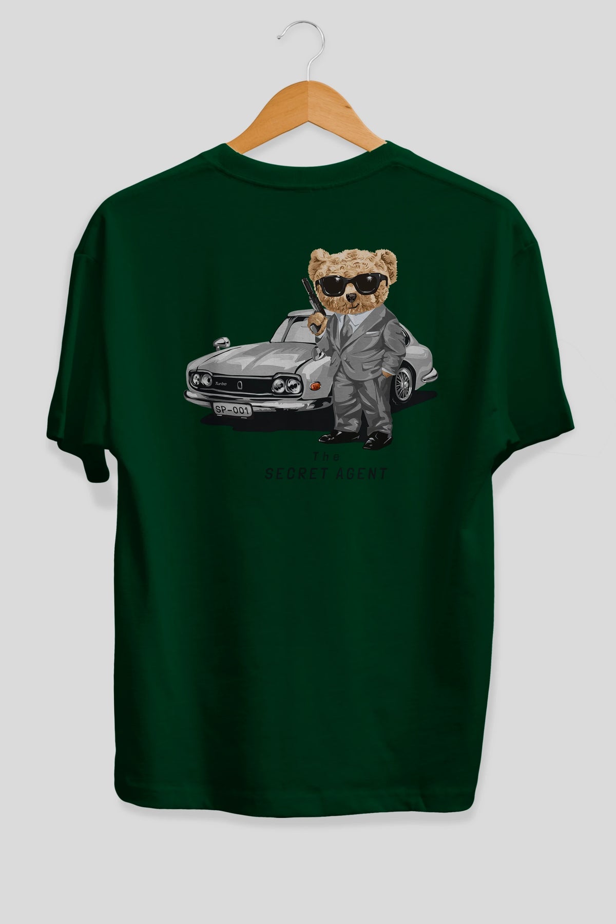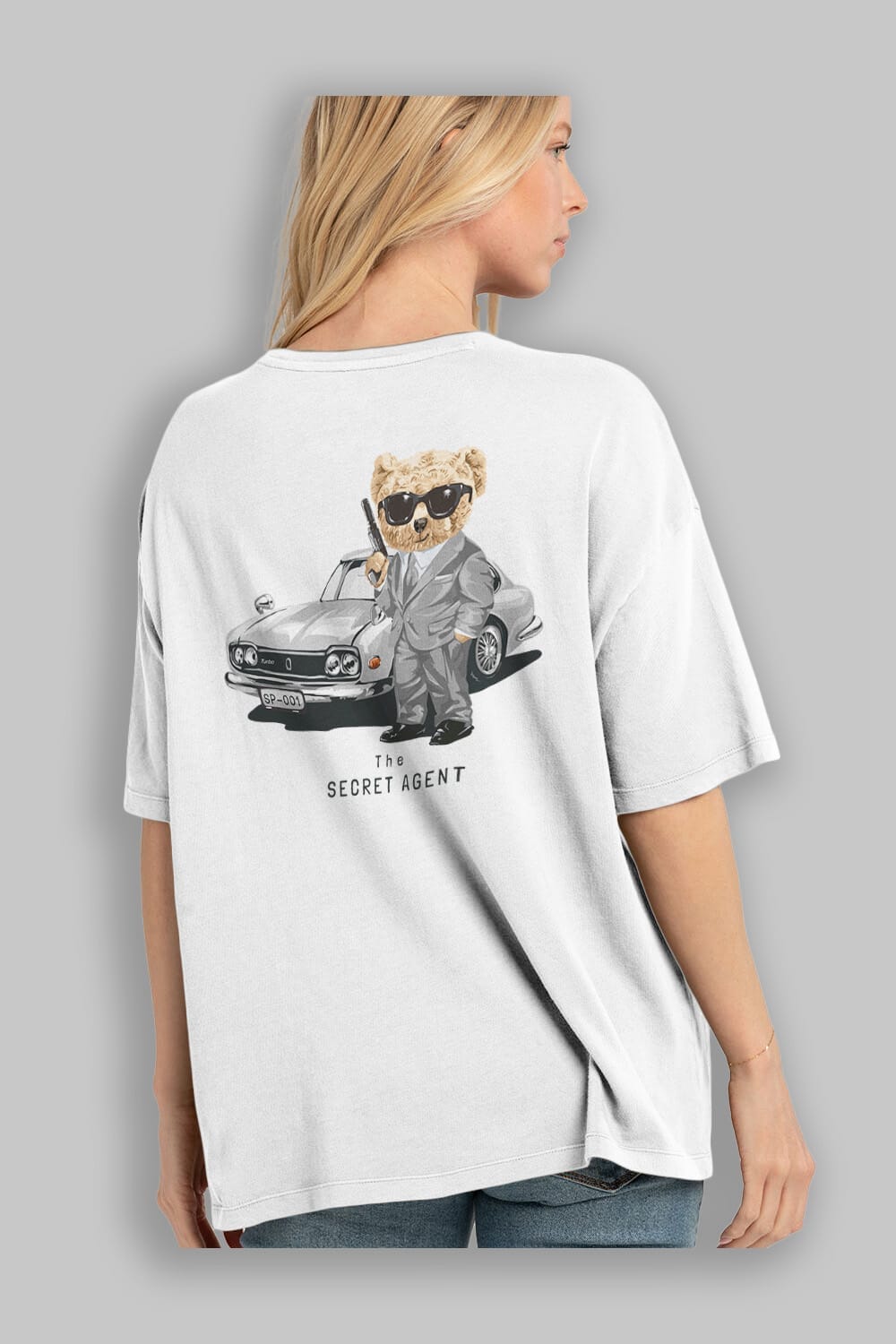 Teddy Bear The Secret Agent Arka Baskılı Oversize t-shirt Erkek Kadın Unisex %100 Pamuk