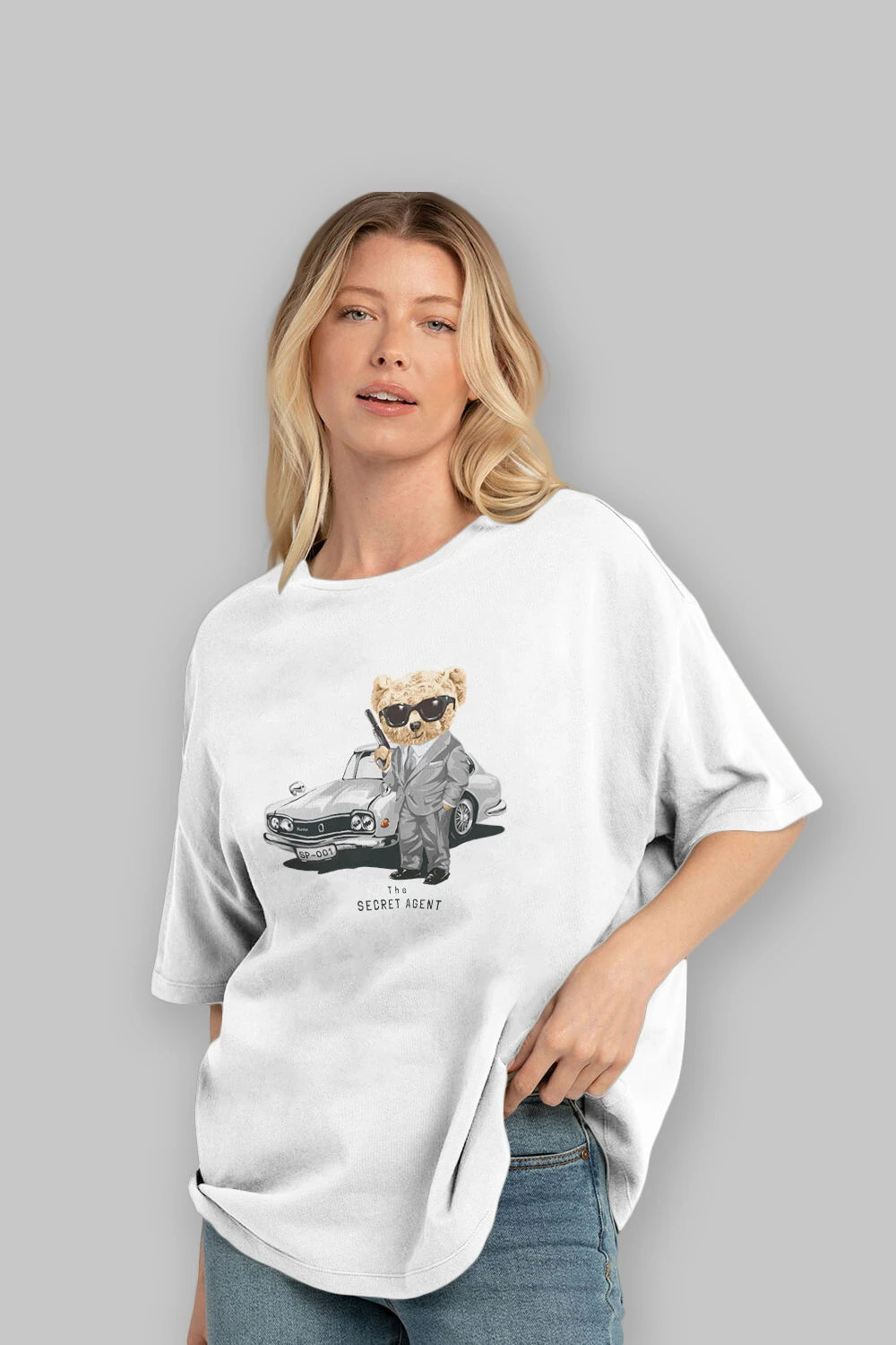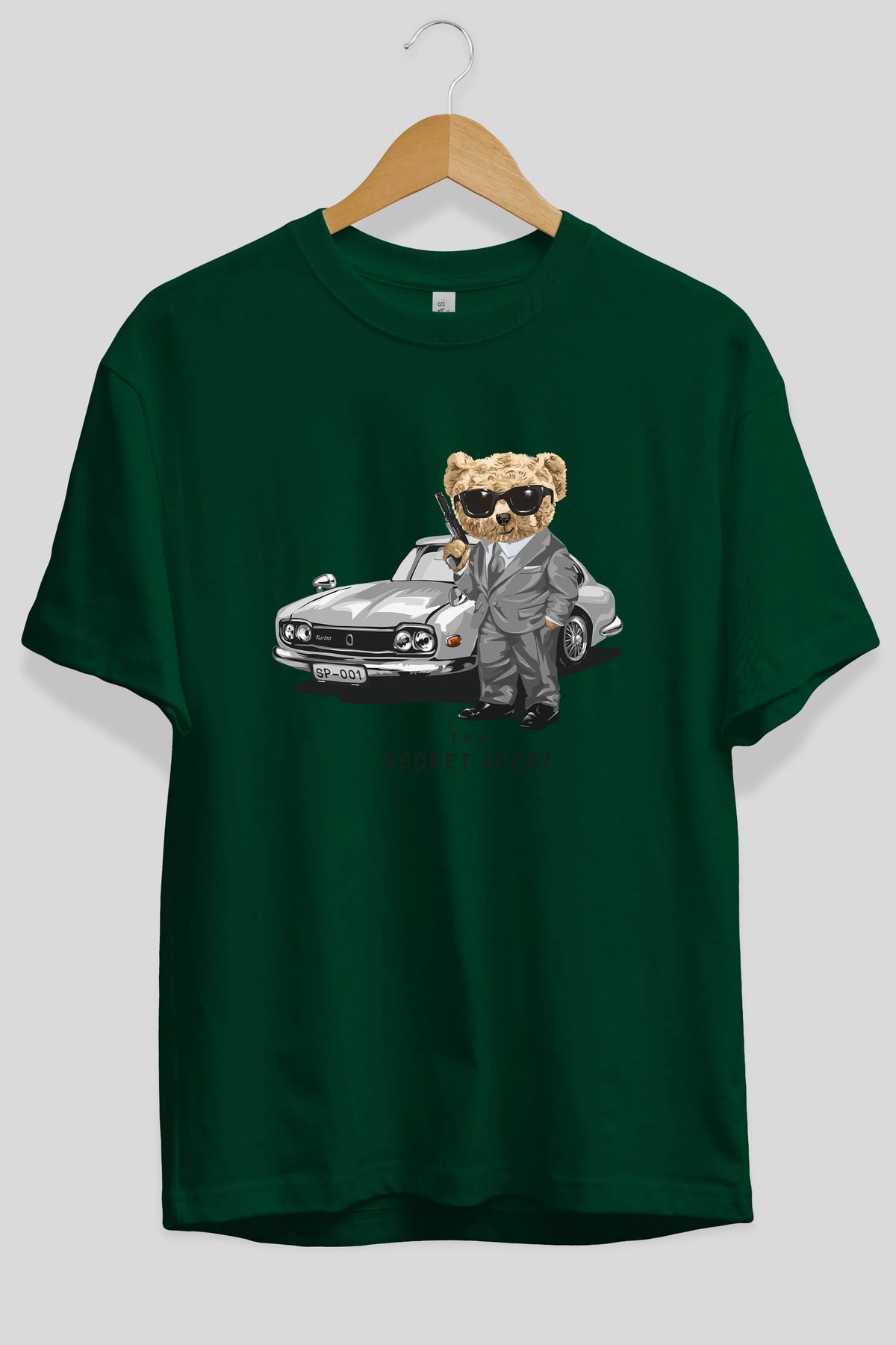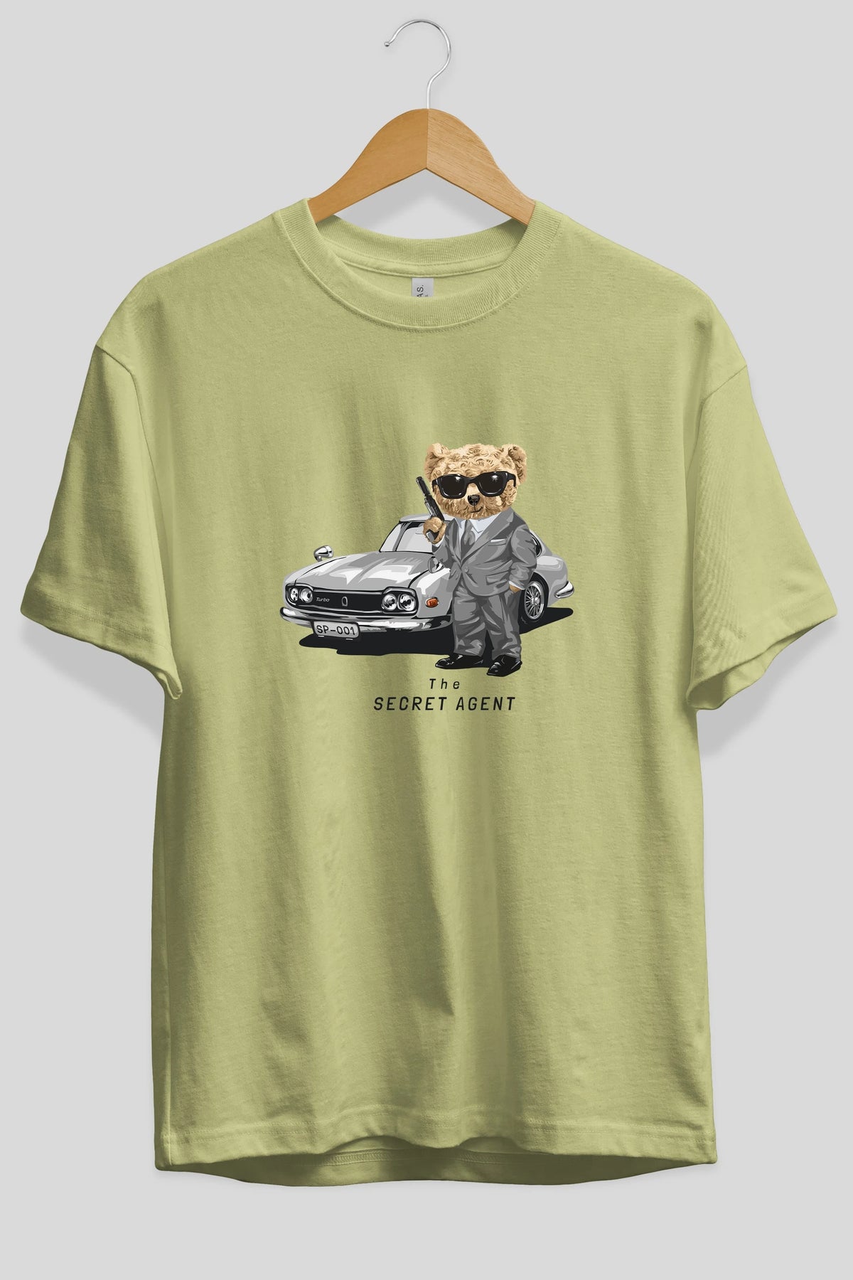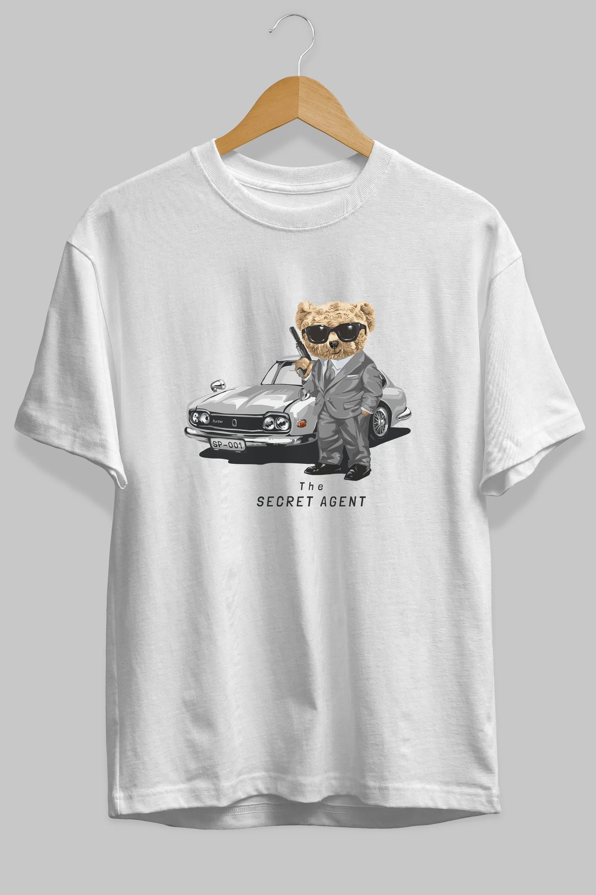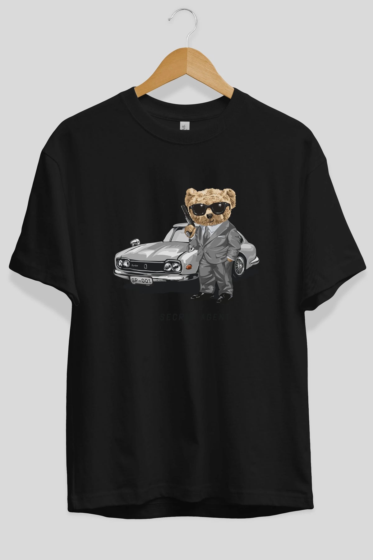 Teddy Bear The Secret Agent Ön Baskılı Oversize t-shirt Erkek Kadın Unisex %100 Pamuk