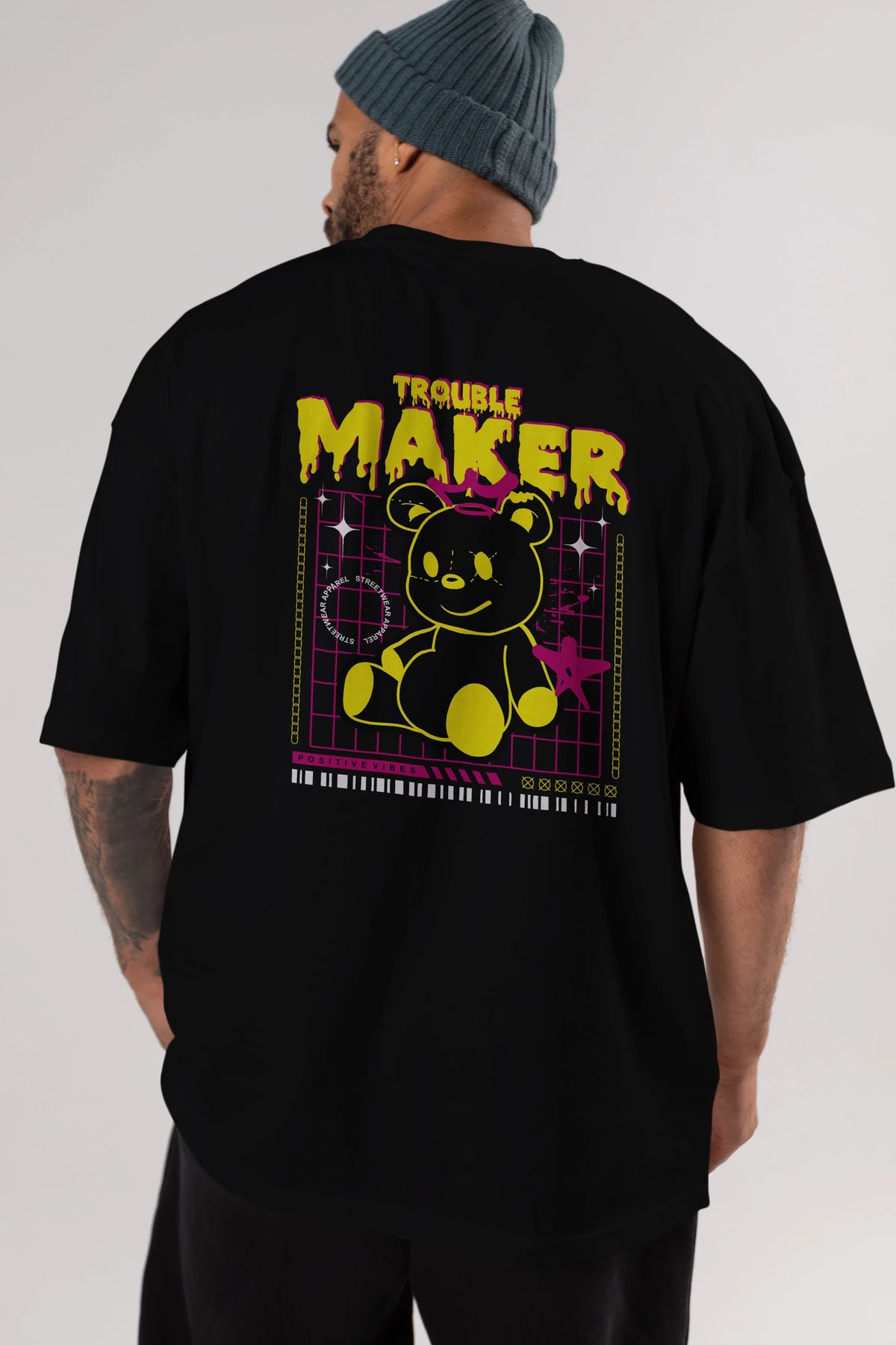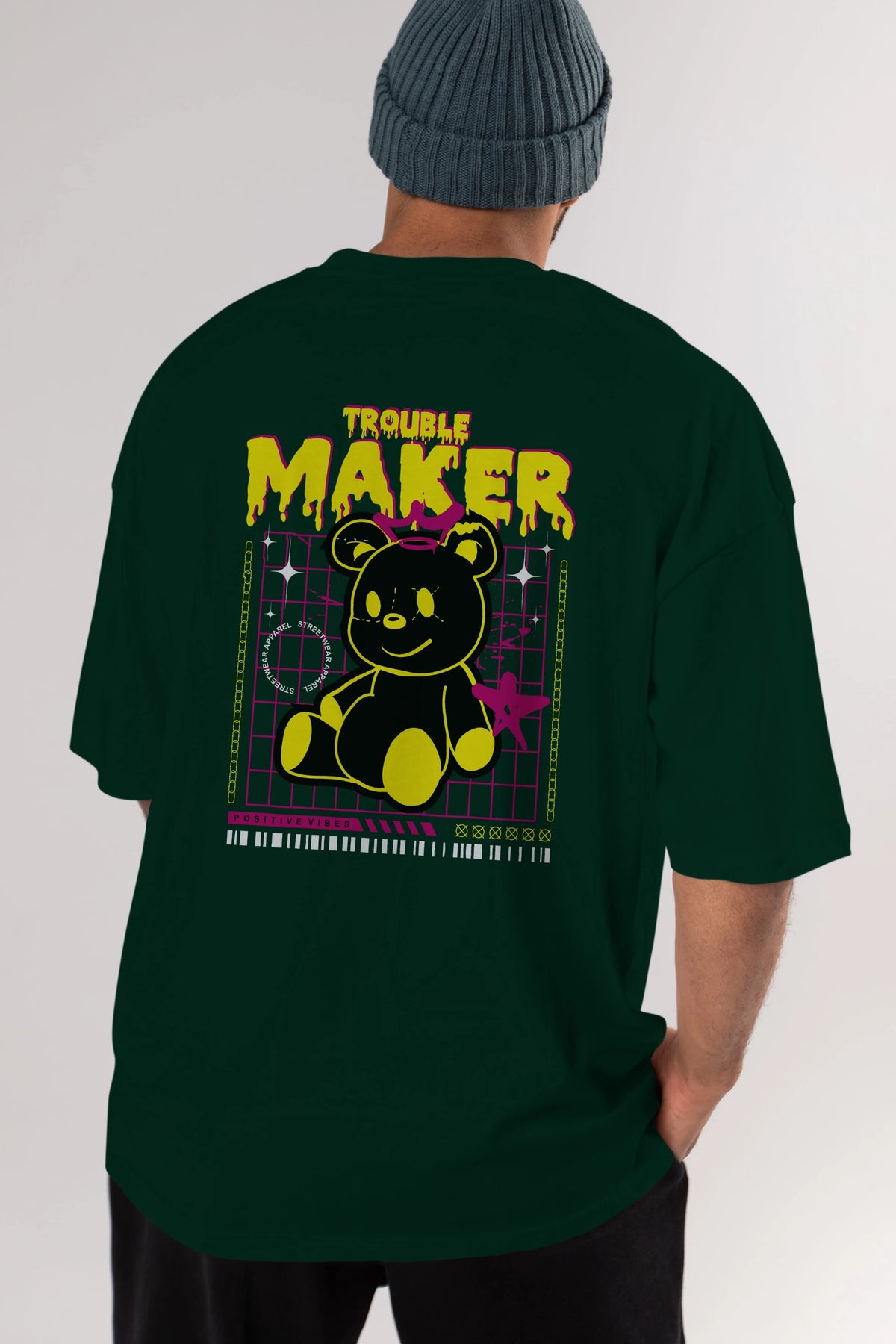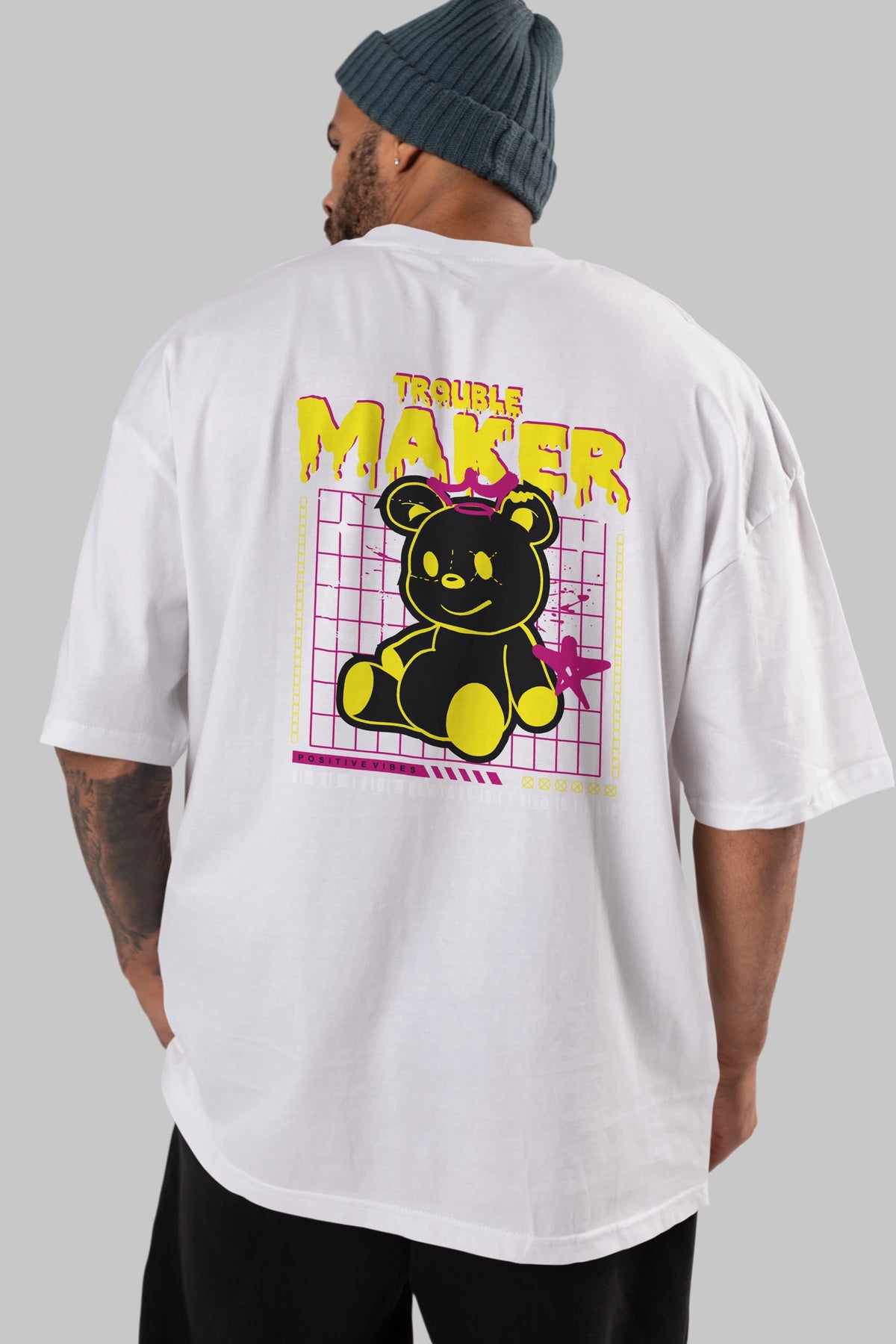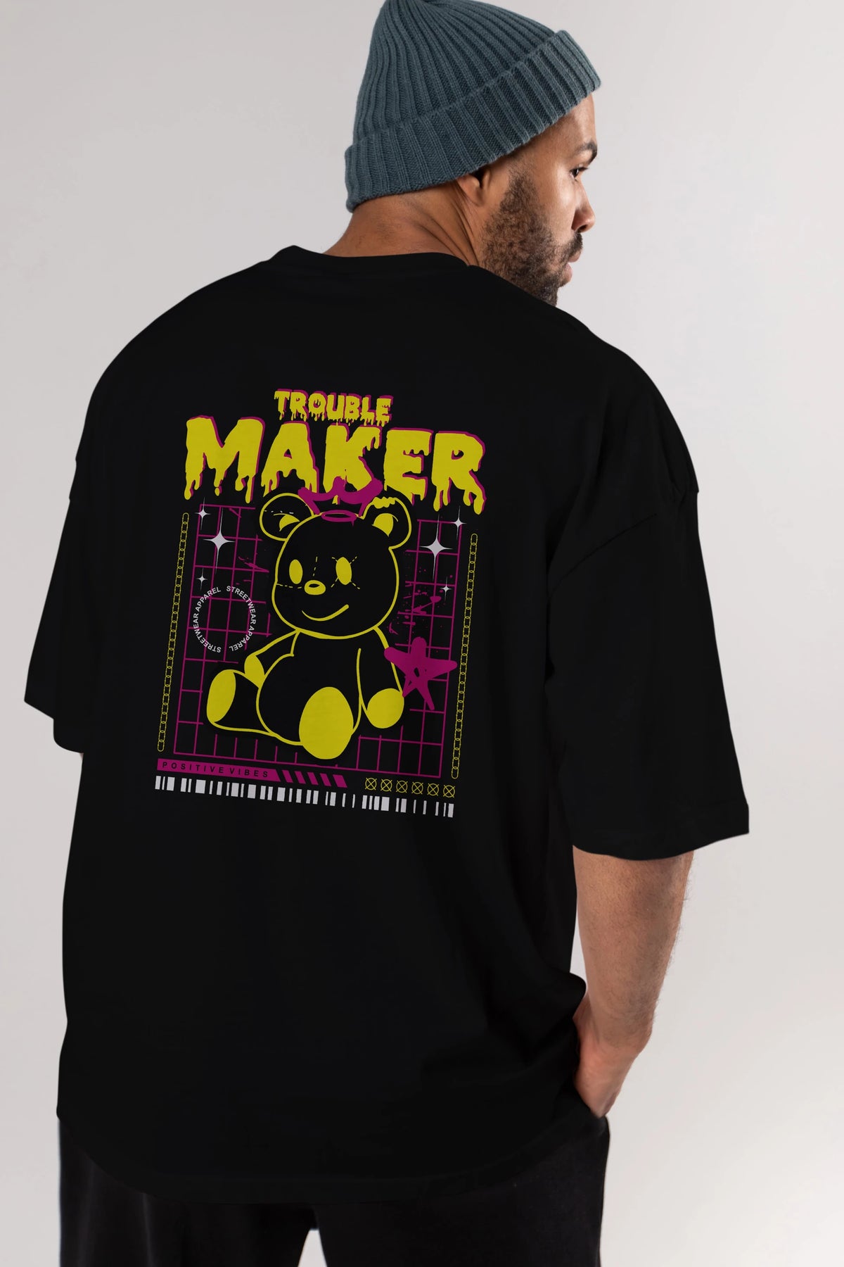Teddy Bear Trouble Maker Arka Baskılı Oversize t-shirt Erkek Kadın Unisex