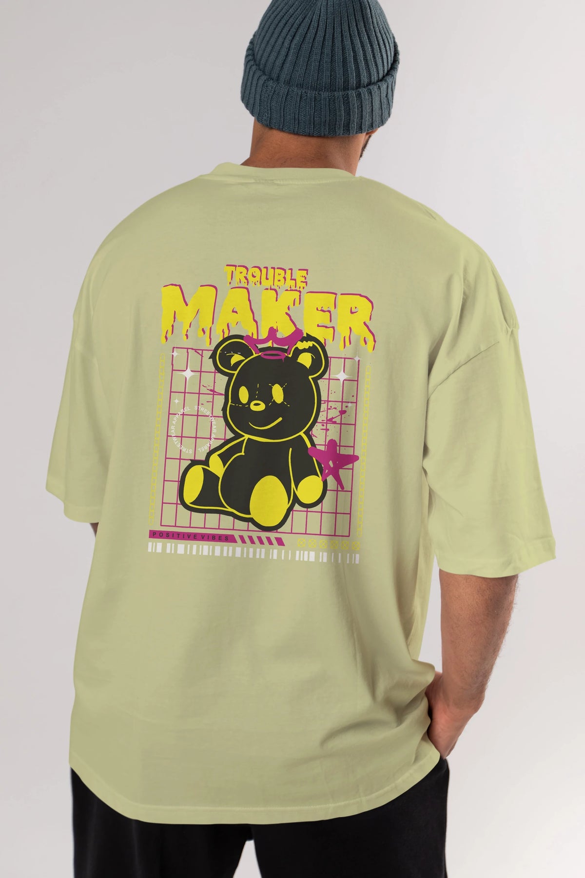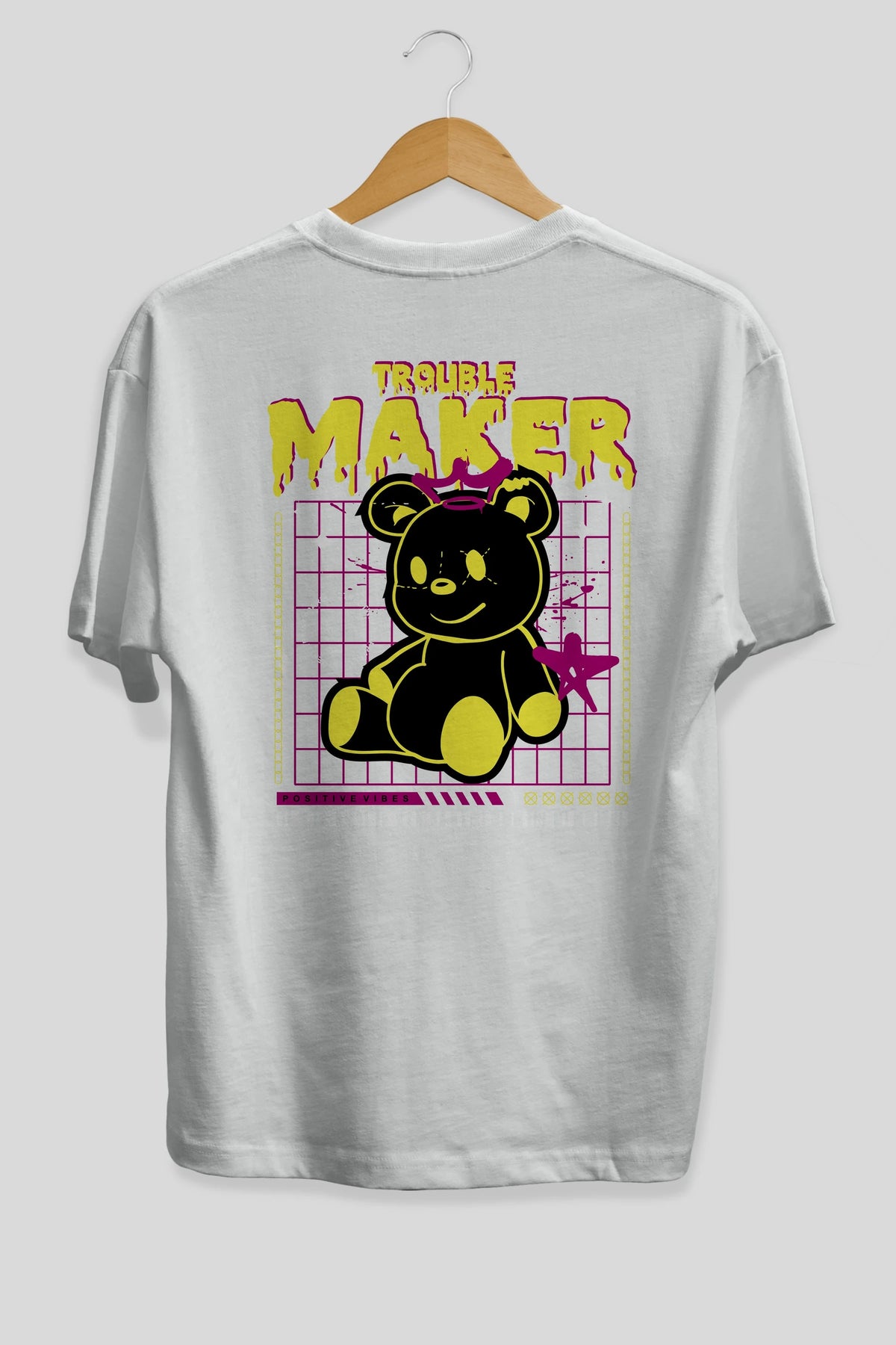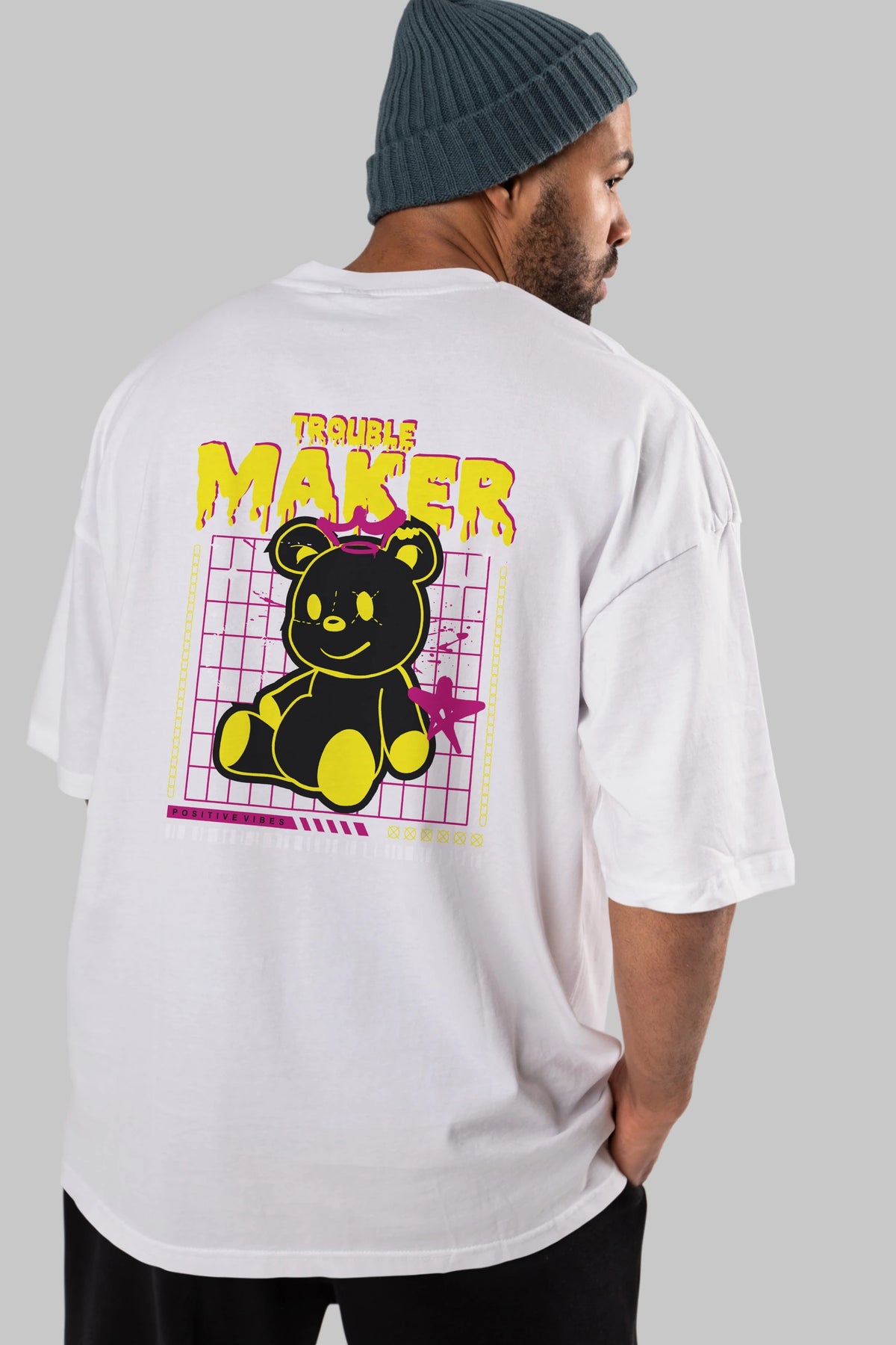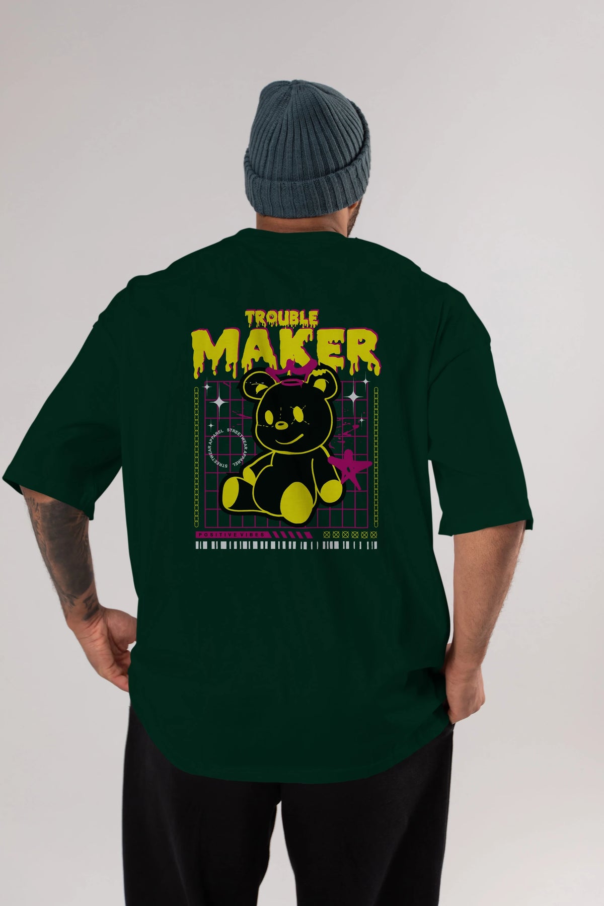 Teddy Bear Trouble Maker Arka Baskılı Oversize t-shirt Erkek Kadın Unisex