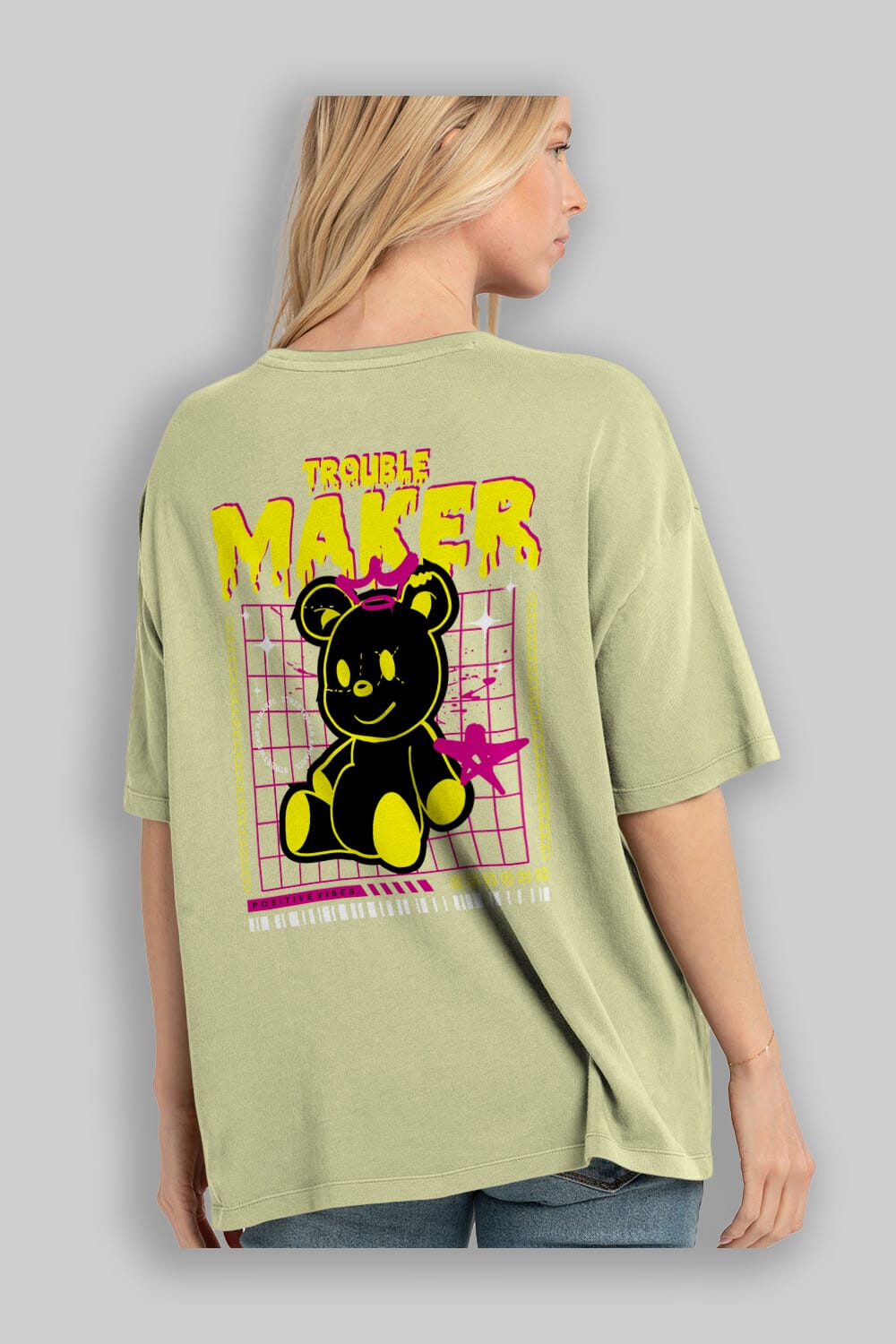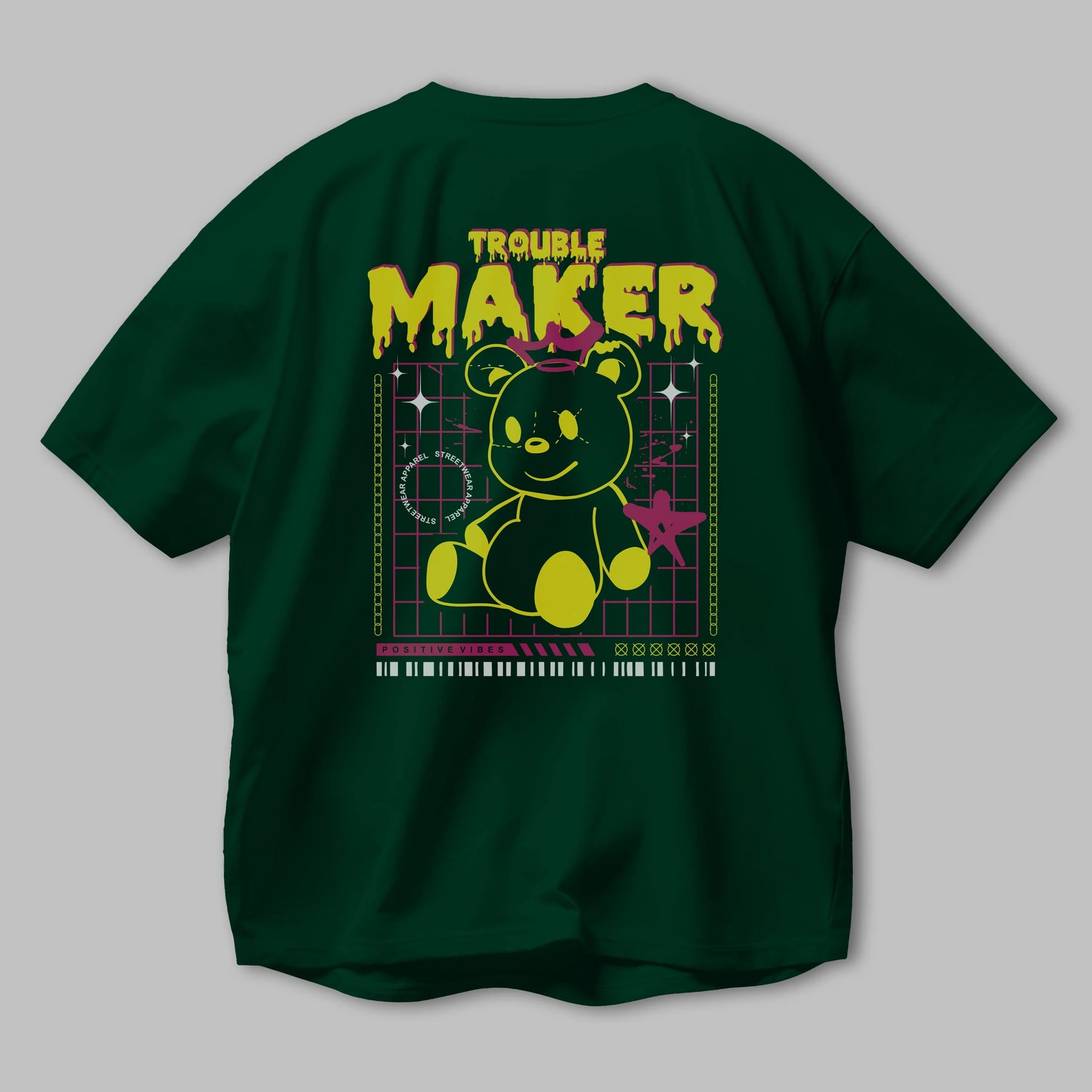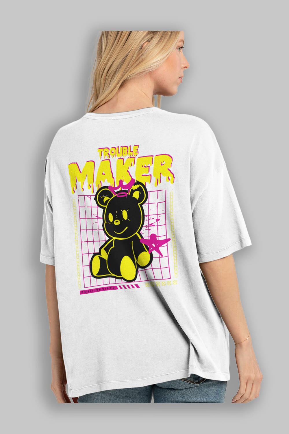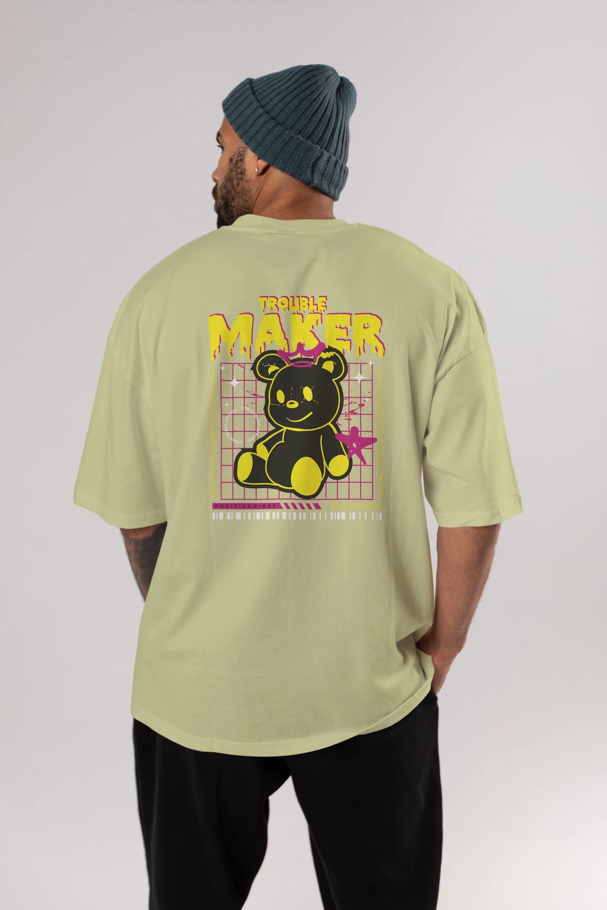 Teddy Bear Trouble Maker Arka Baskılı Oversize t-shirt Erkek Kadın Unisex