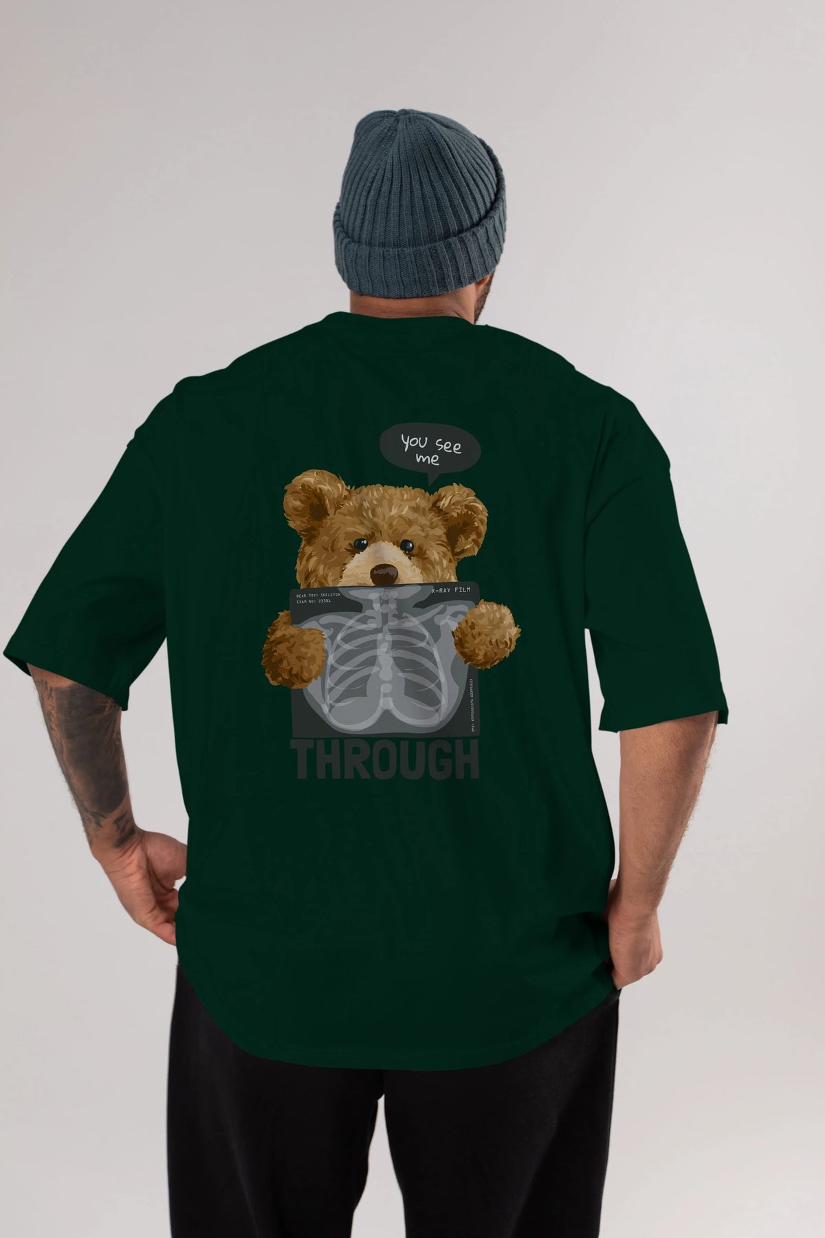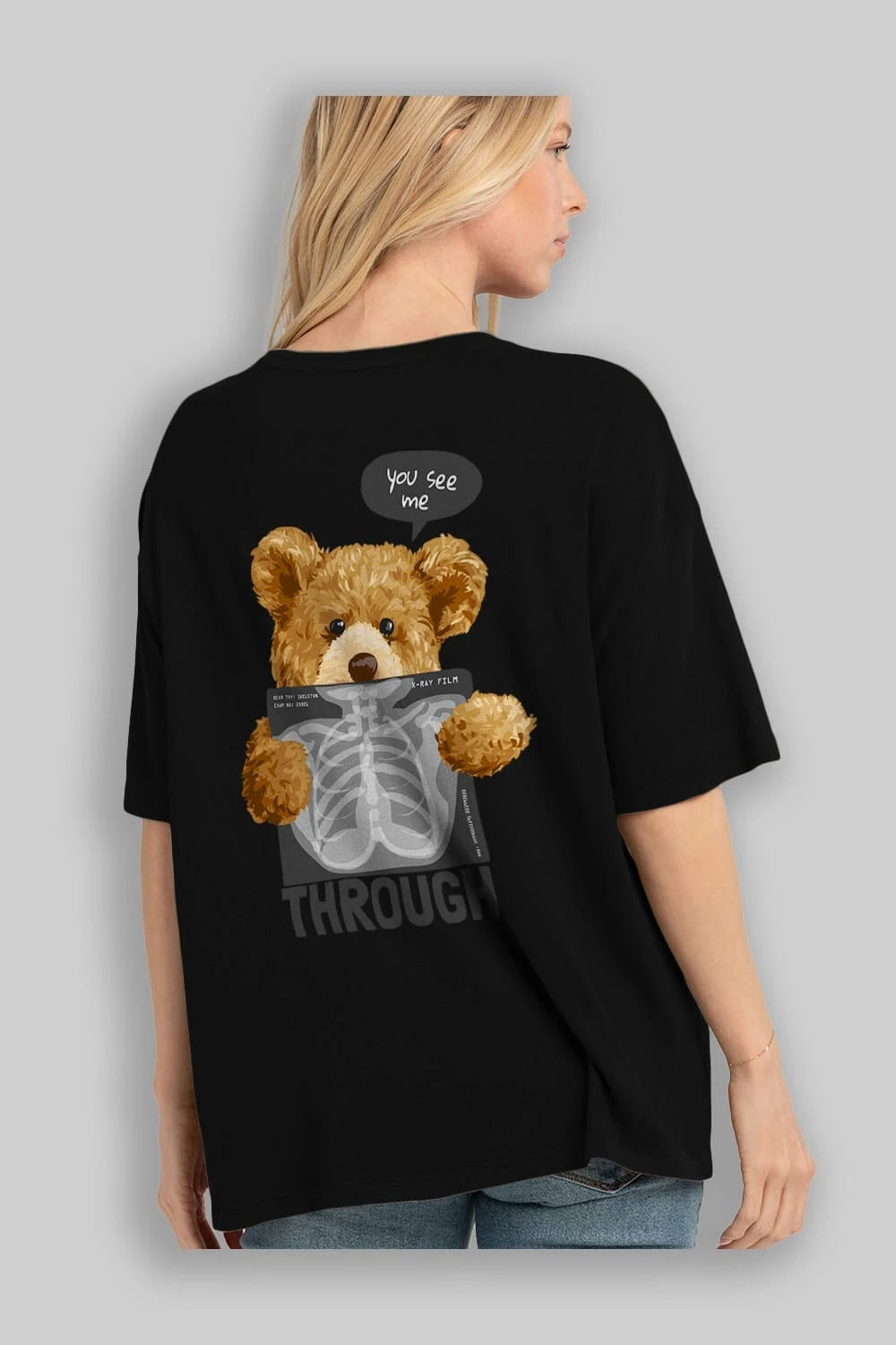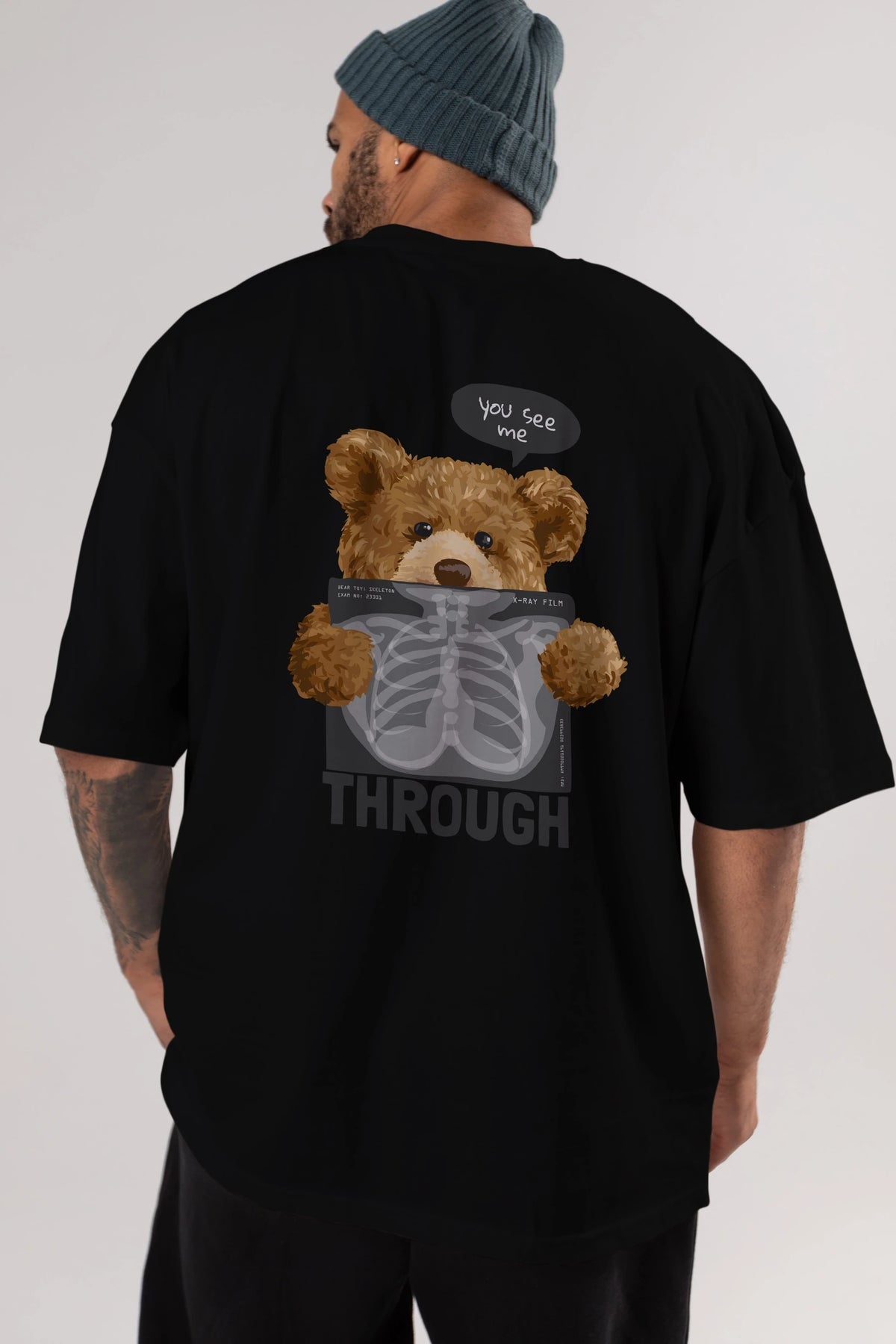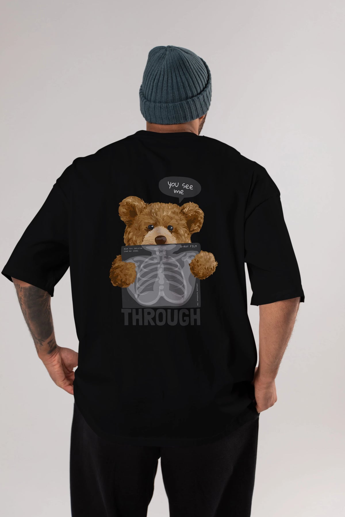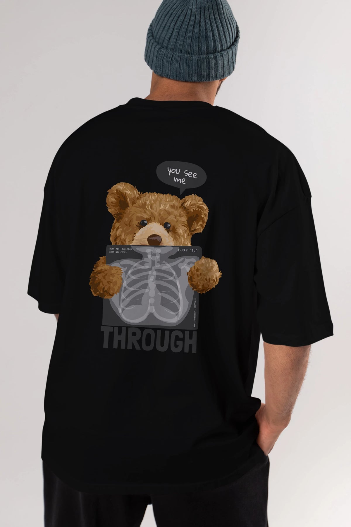 Teddy Bear Trough Arka Baskılı Oversize t-shirt Erkek Kadın Unisex %100 Pamuk