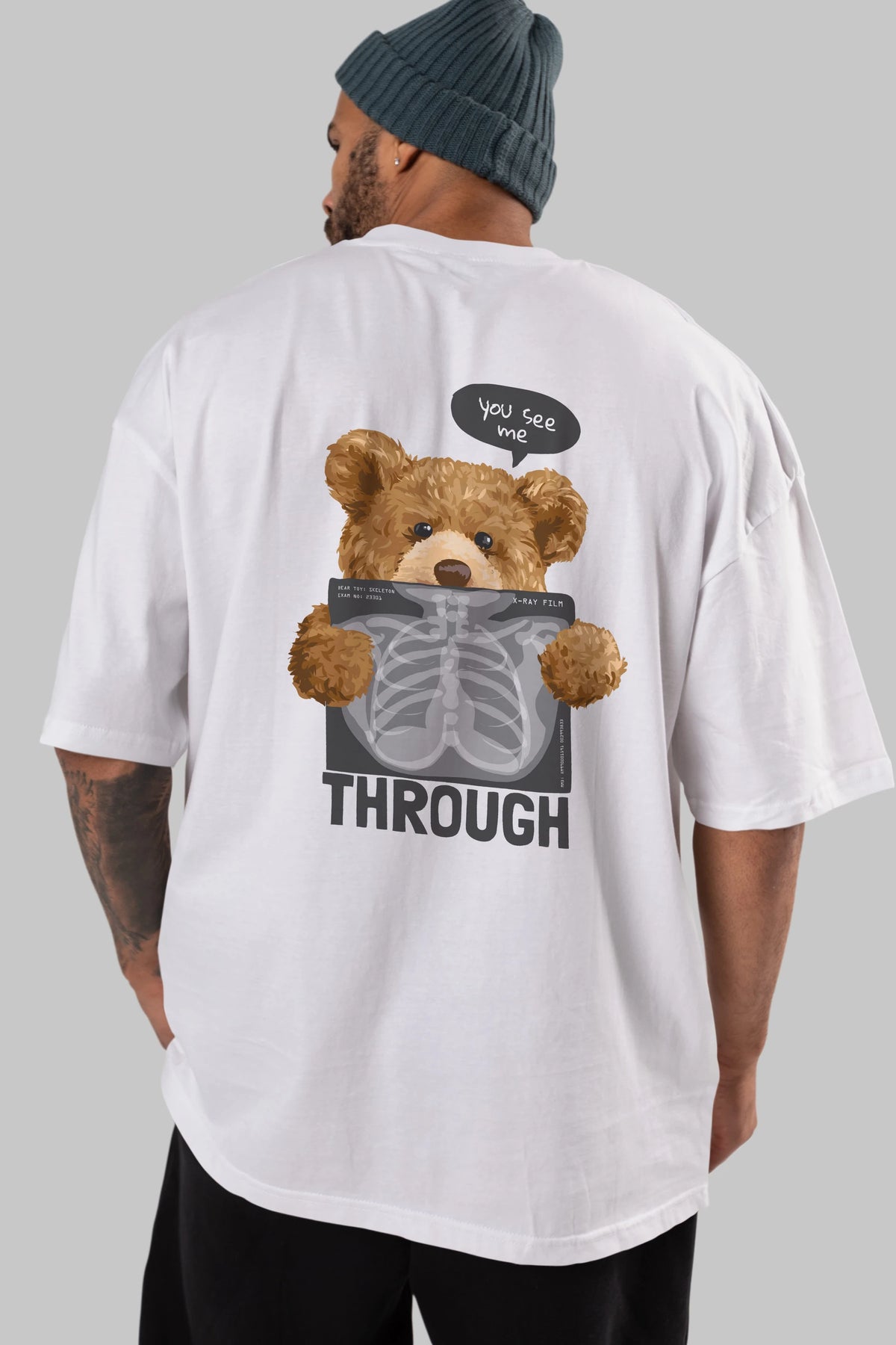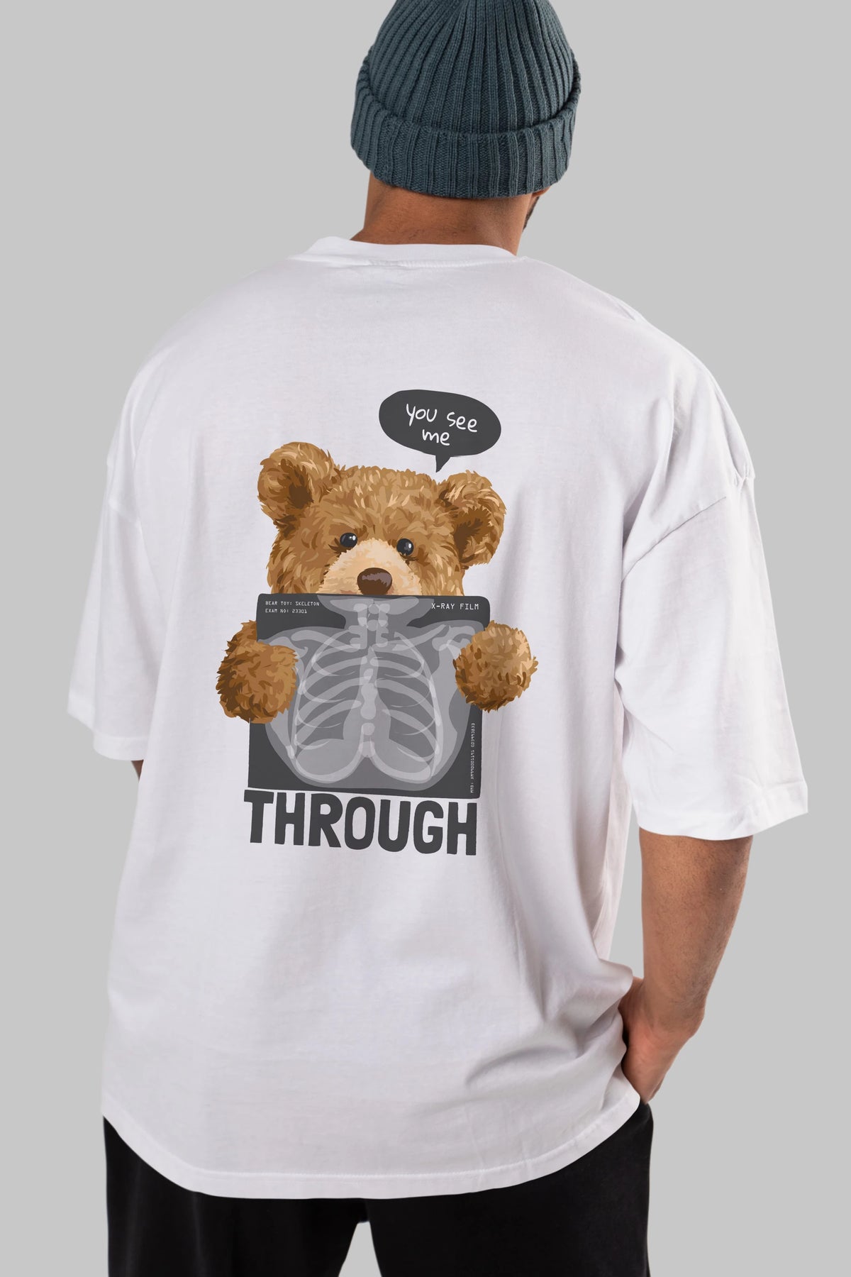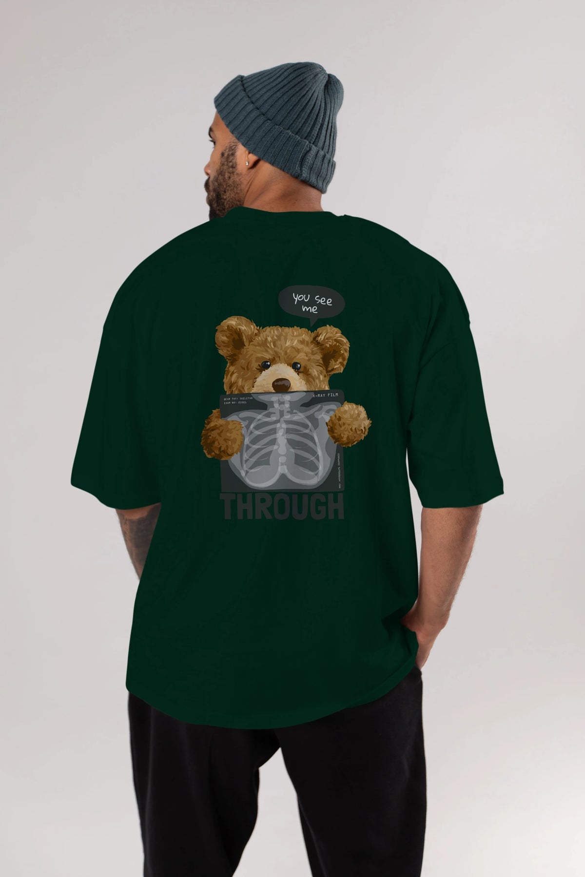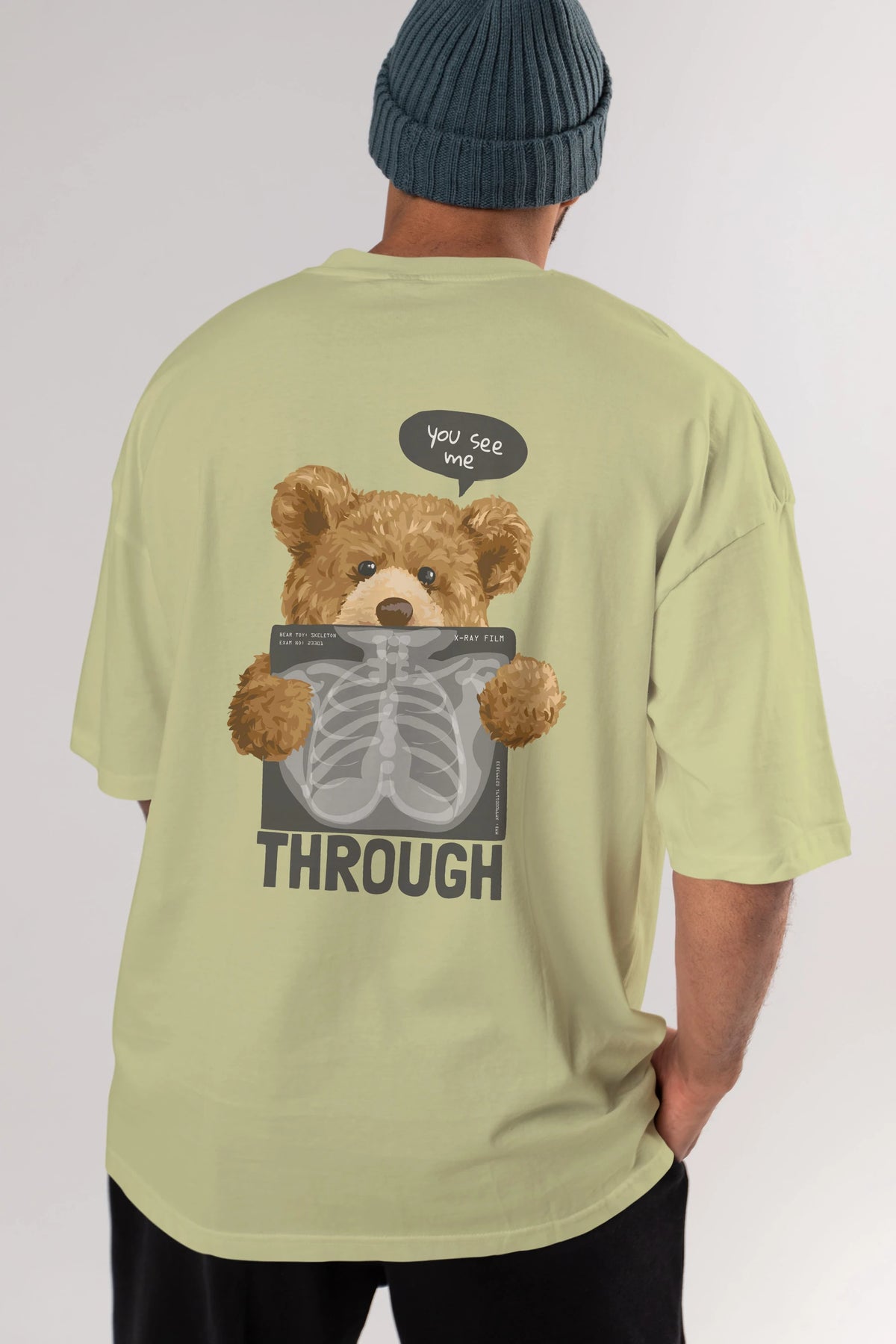 Teddy Bear Trough Arka Baskılı Oversize t-shirt Erkek Kadın Unisex %100 Pamuk