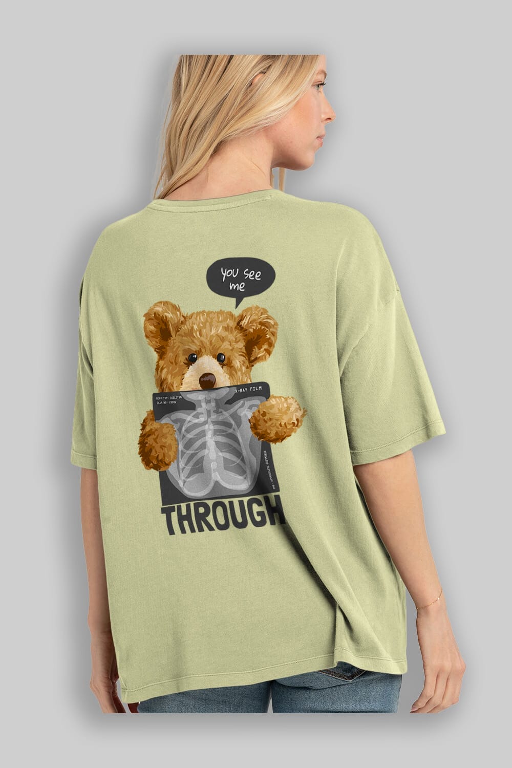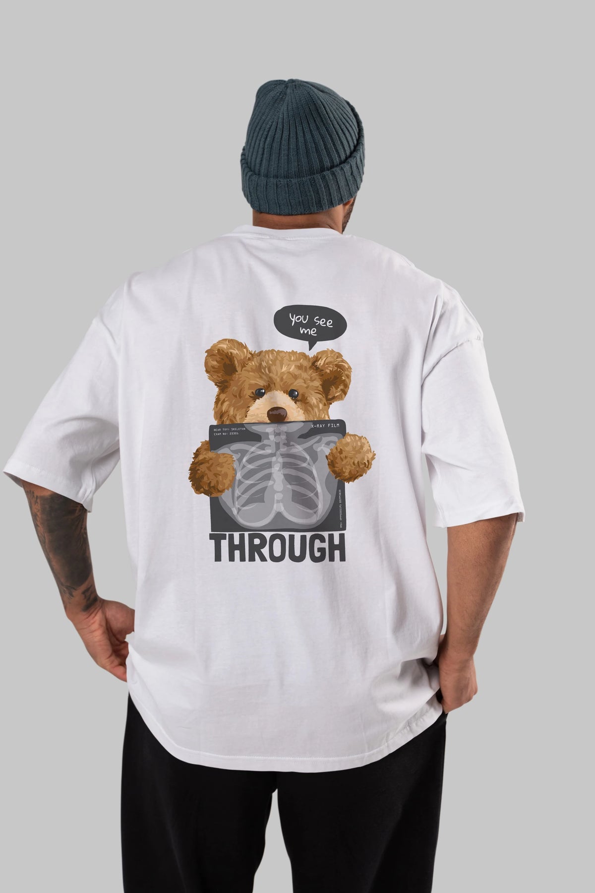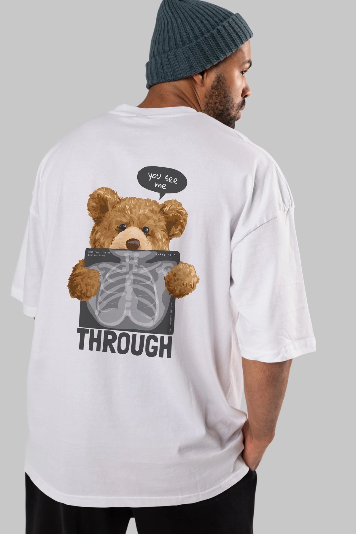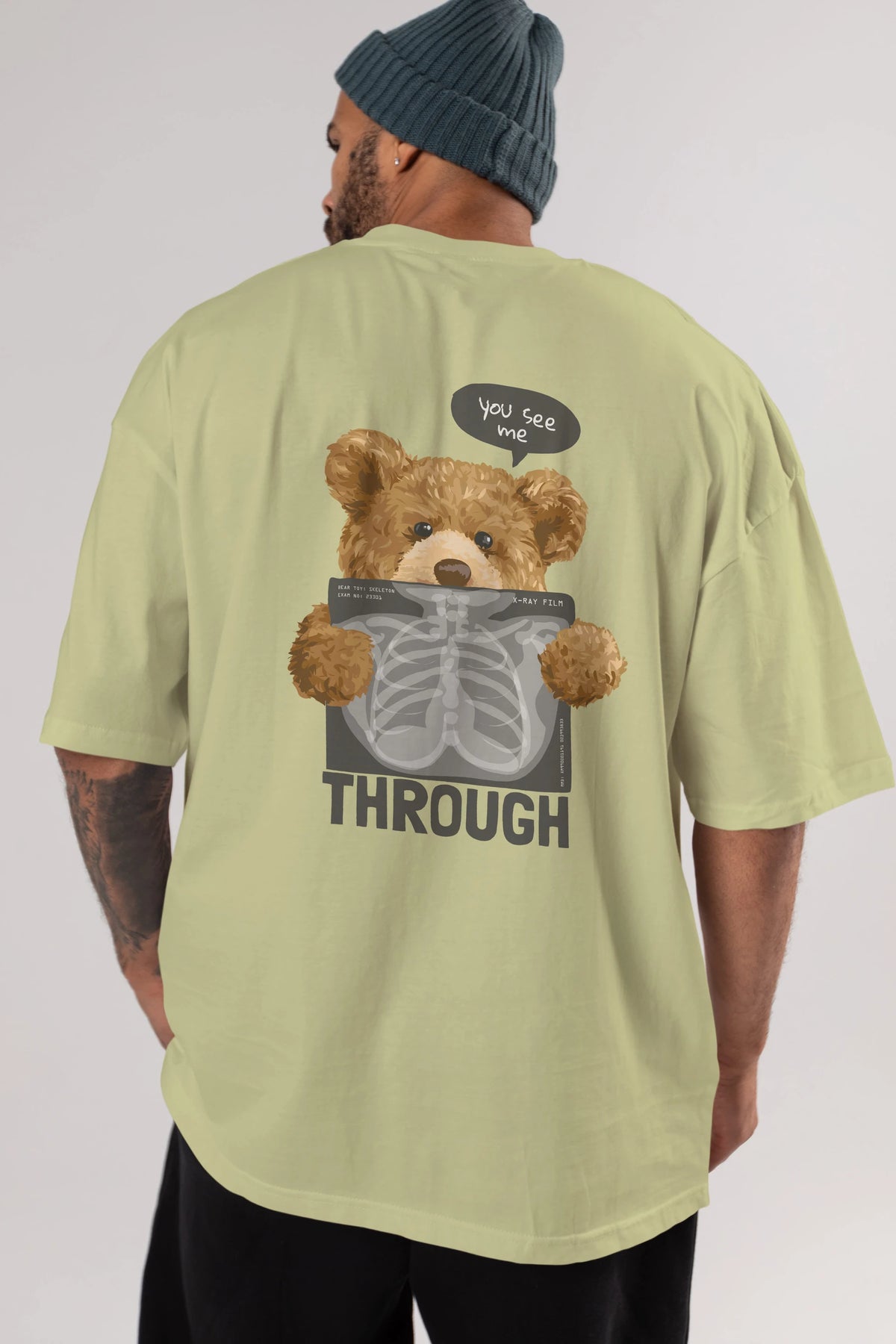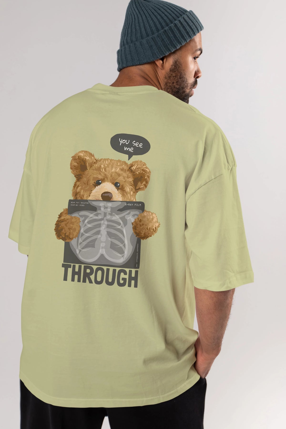 Teddy Bear Trough Arka Baskılı Oversize t-shirt Erkek Kadın Unisex %100 Pamuk
