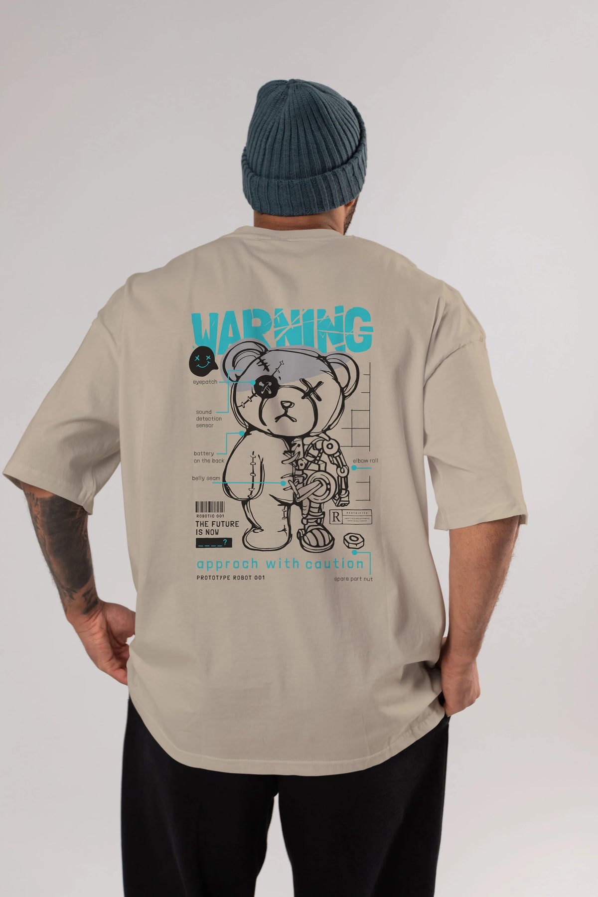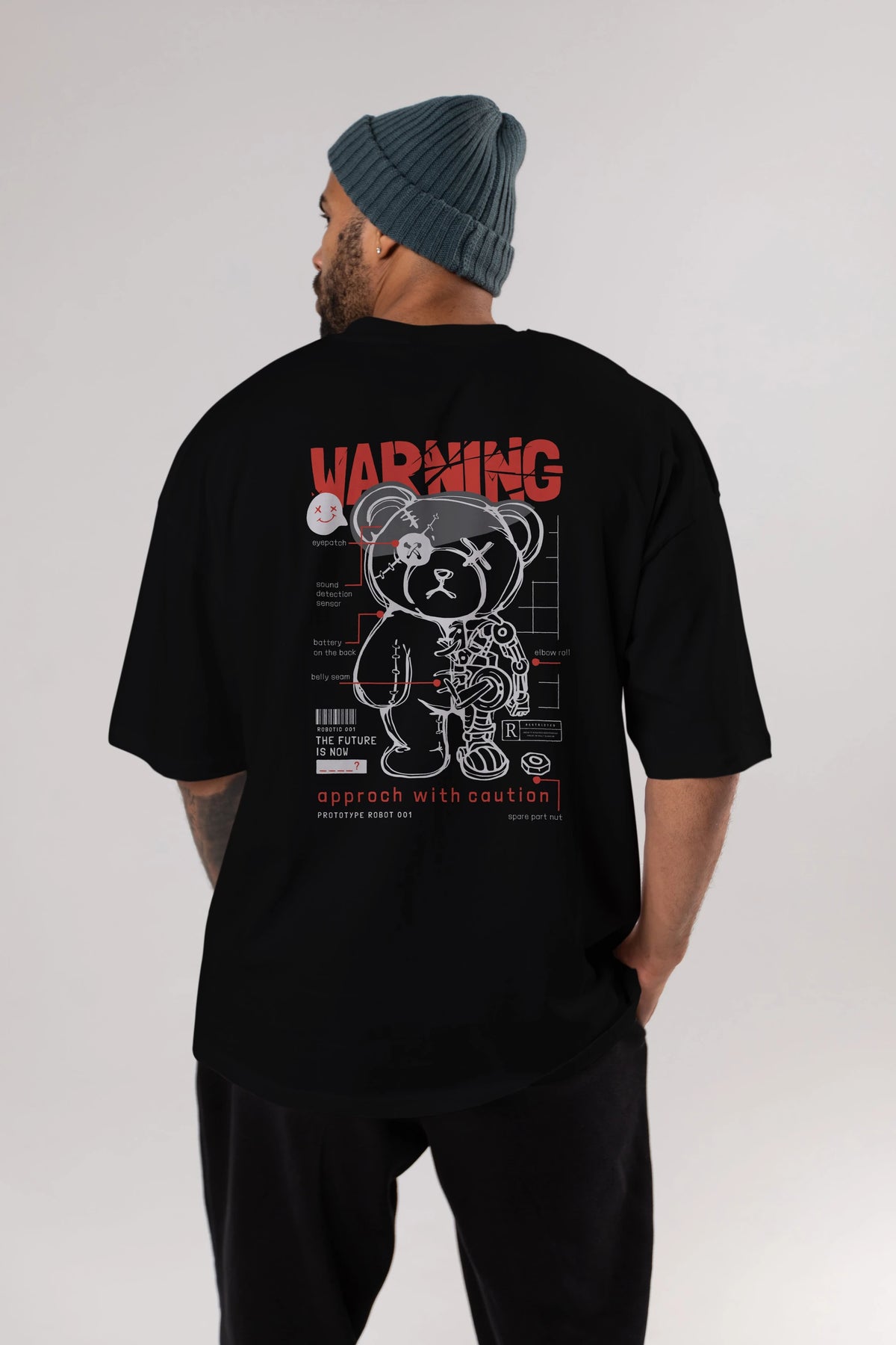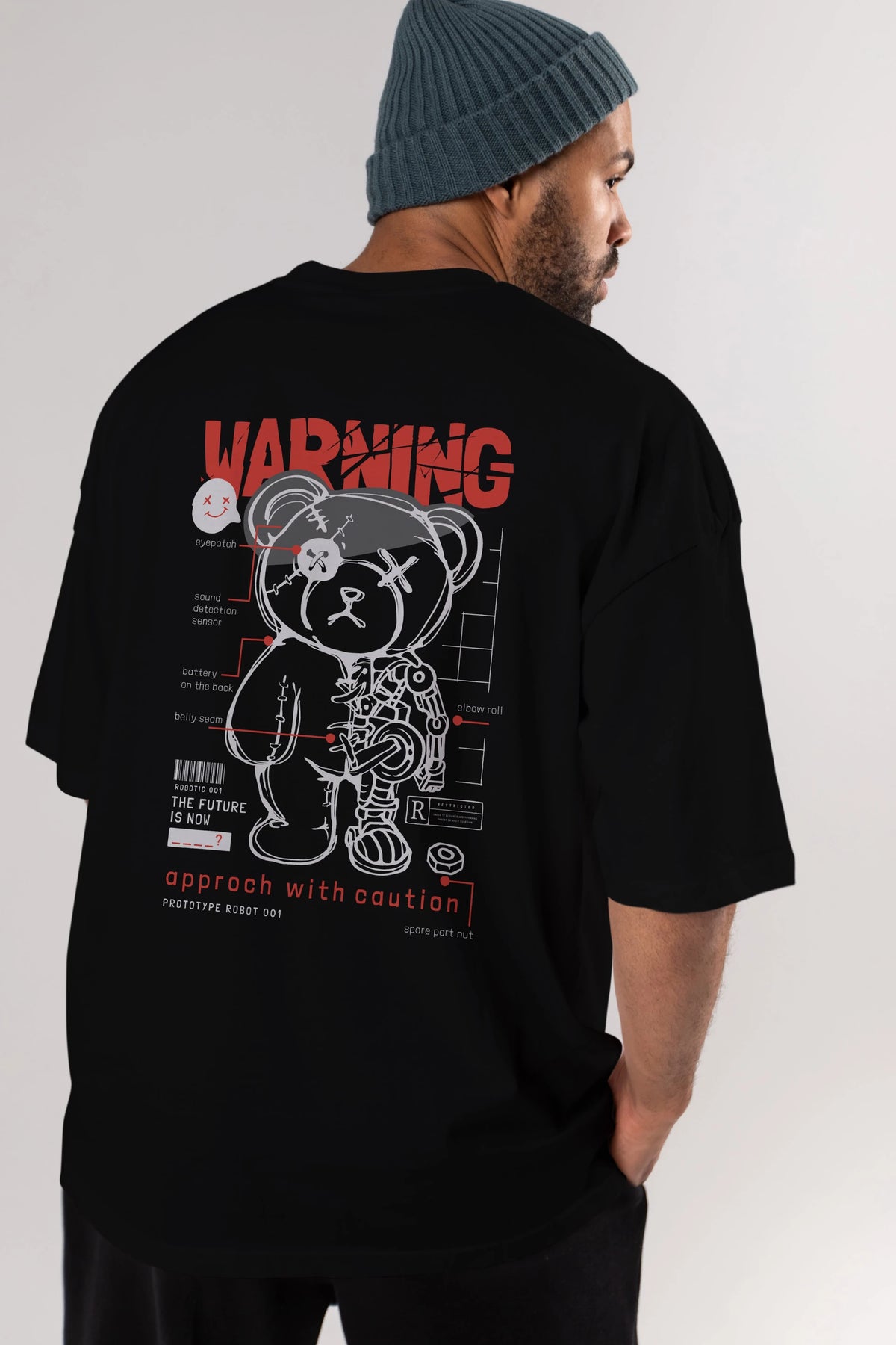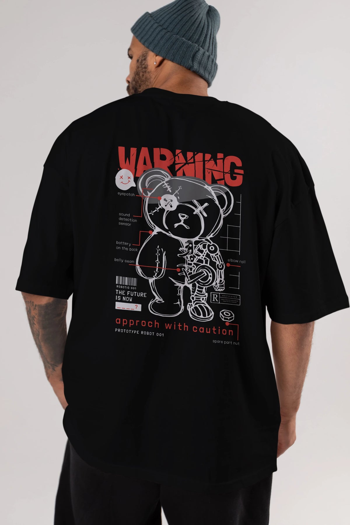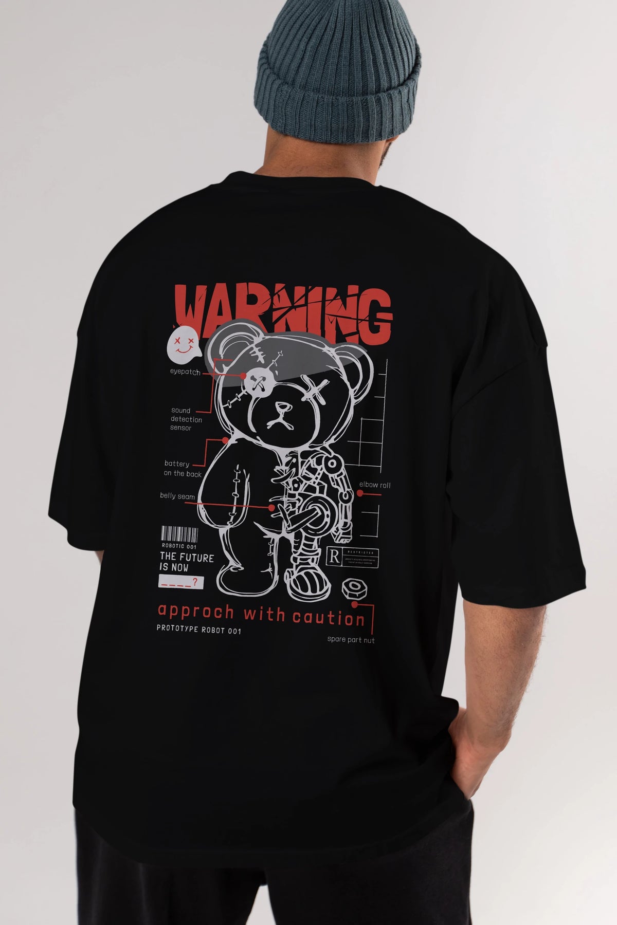 Teddy Bear Warning Arka Baskılı Oversize t-shirt Erkek Kadın Unisex