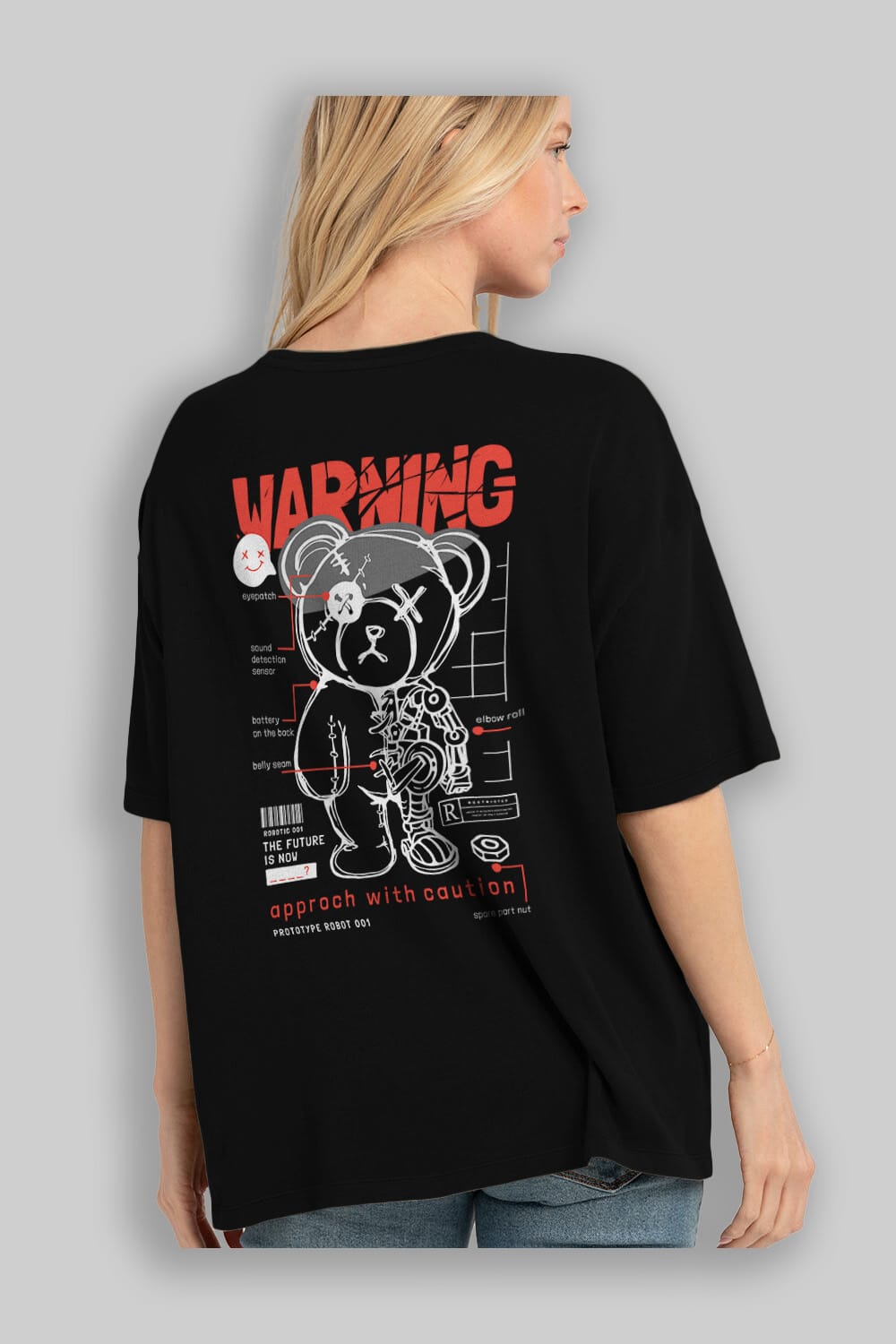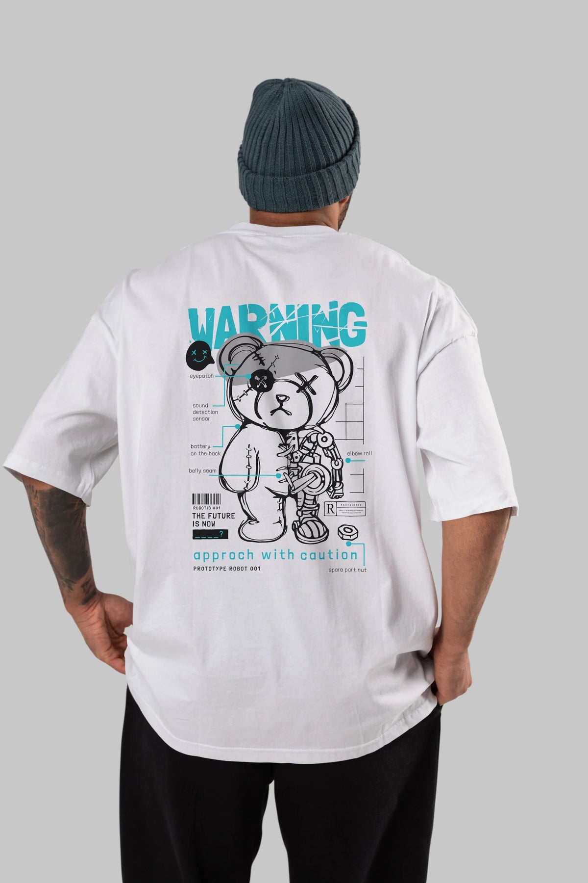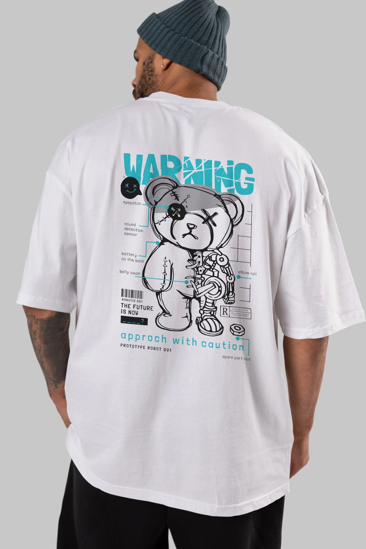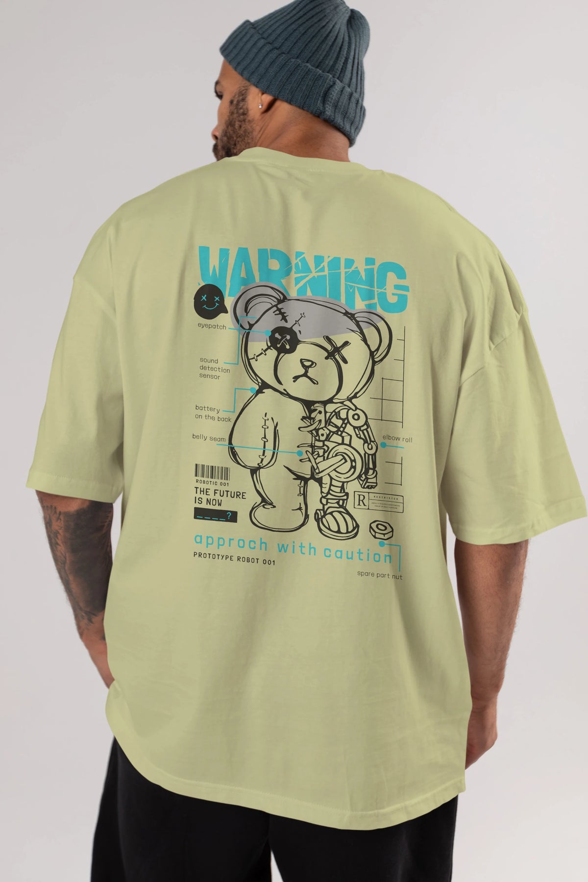 Teddy Bear Warning Arka Baskılı Oversize t-shirt Erkek Kadın Unisex