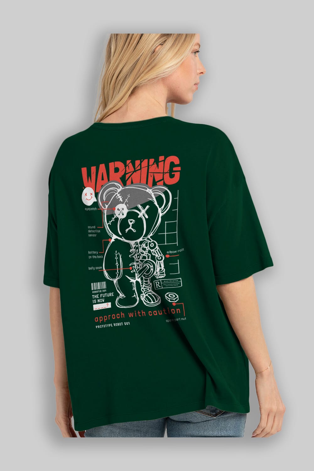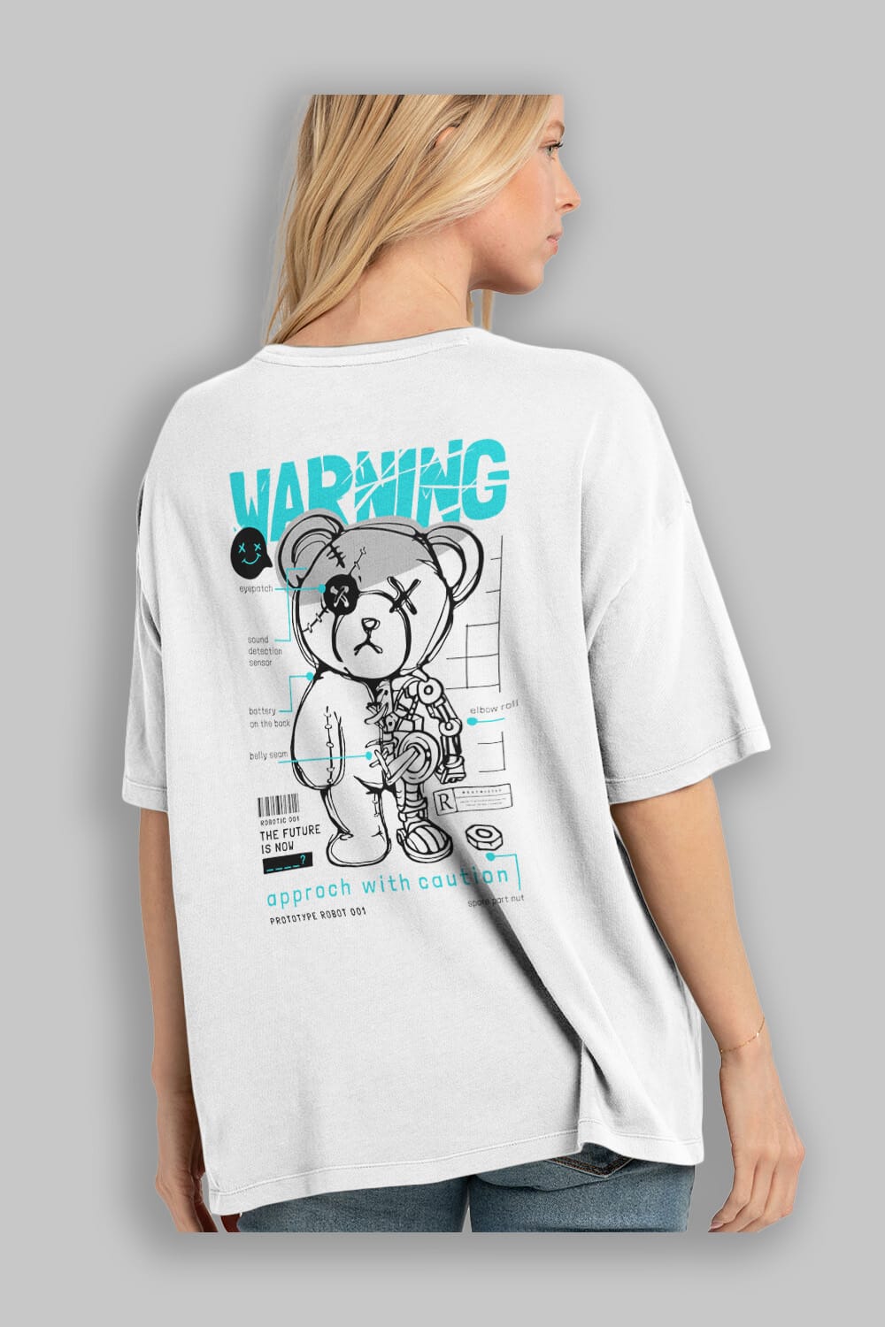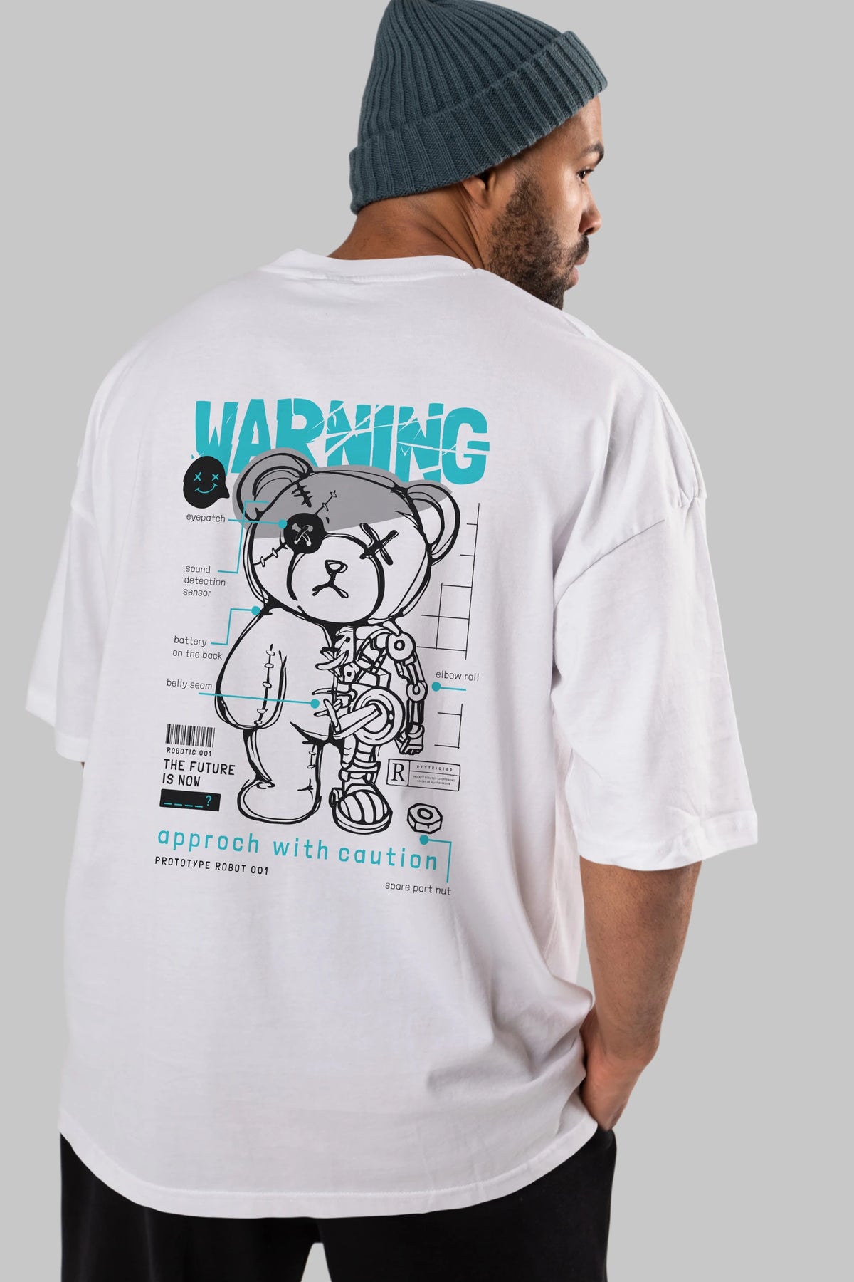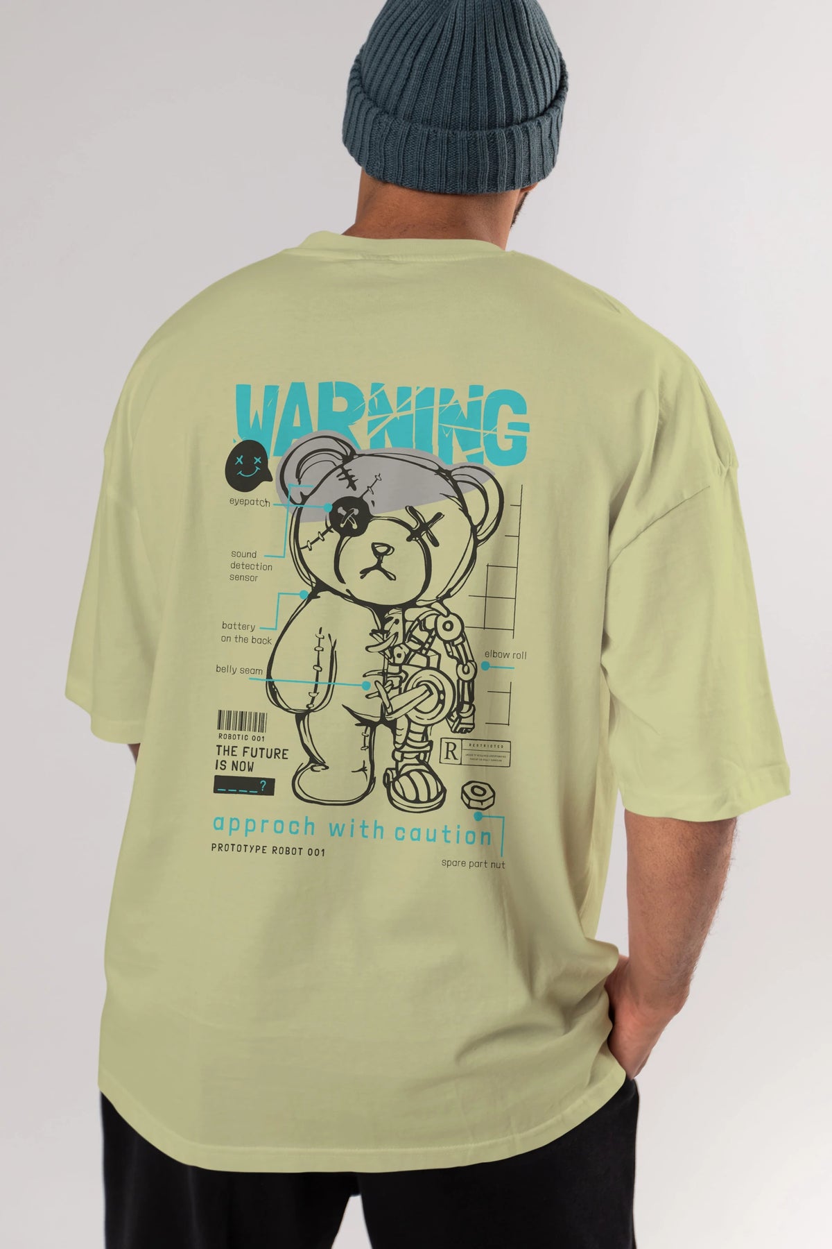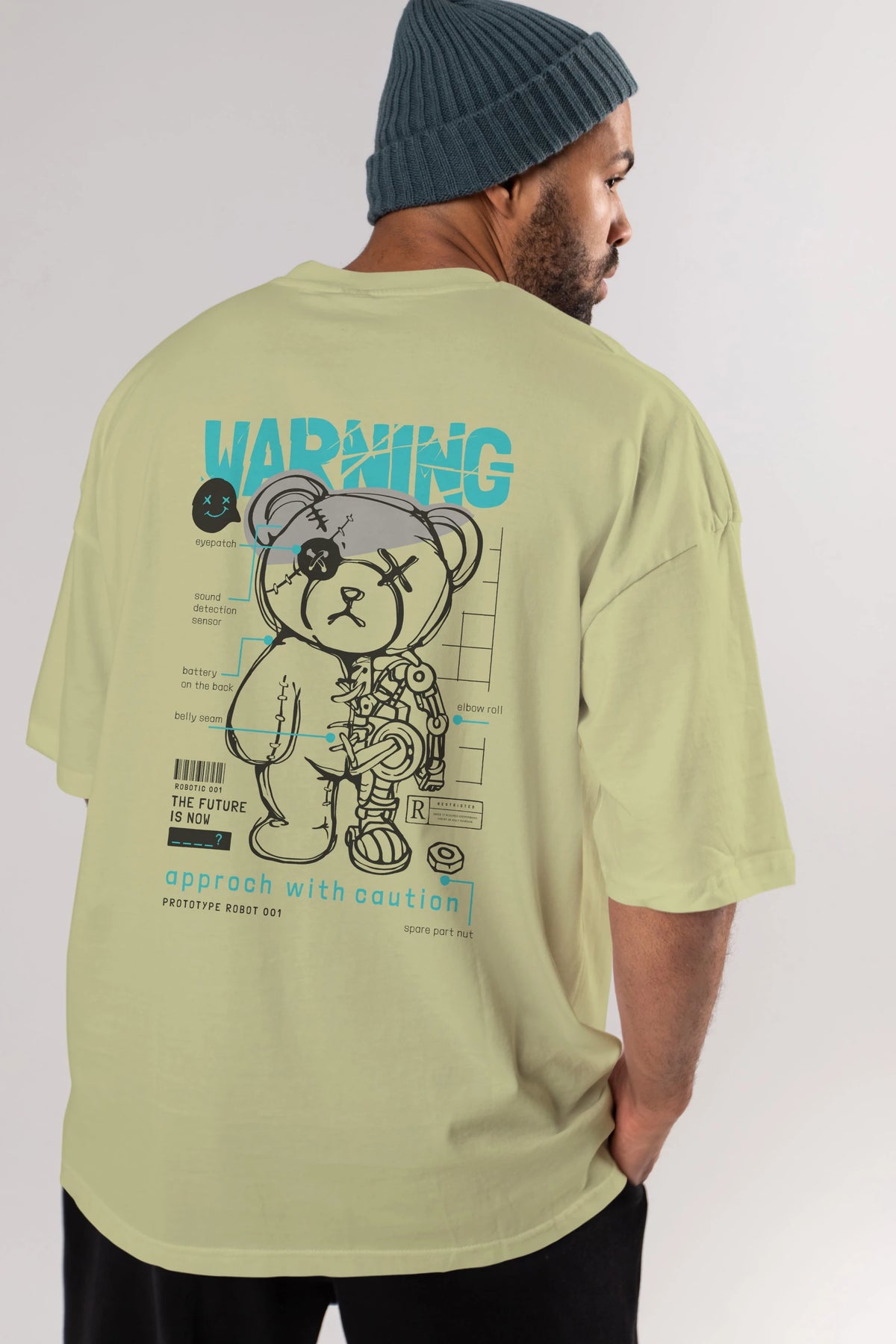 Teddy Bear Warning Arka Baskılı Oversize t-shirt Erkek Kadın Unisex