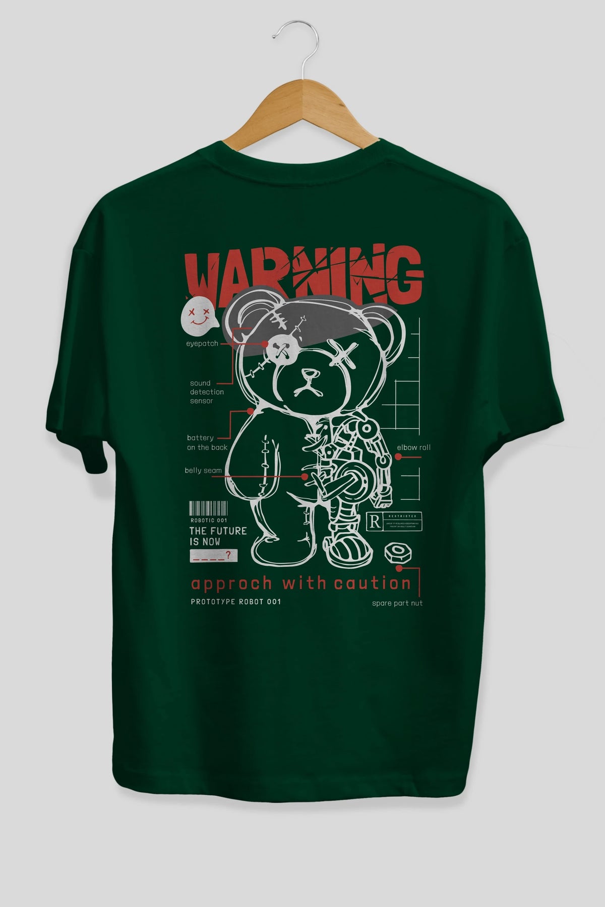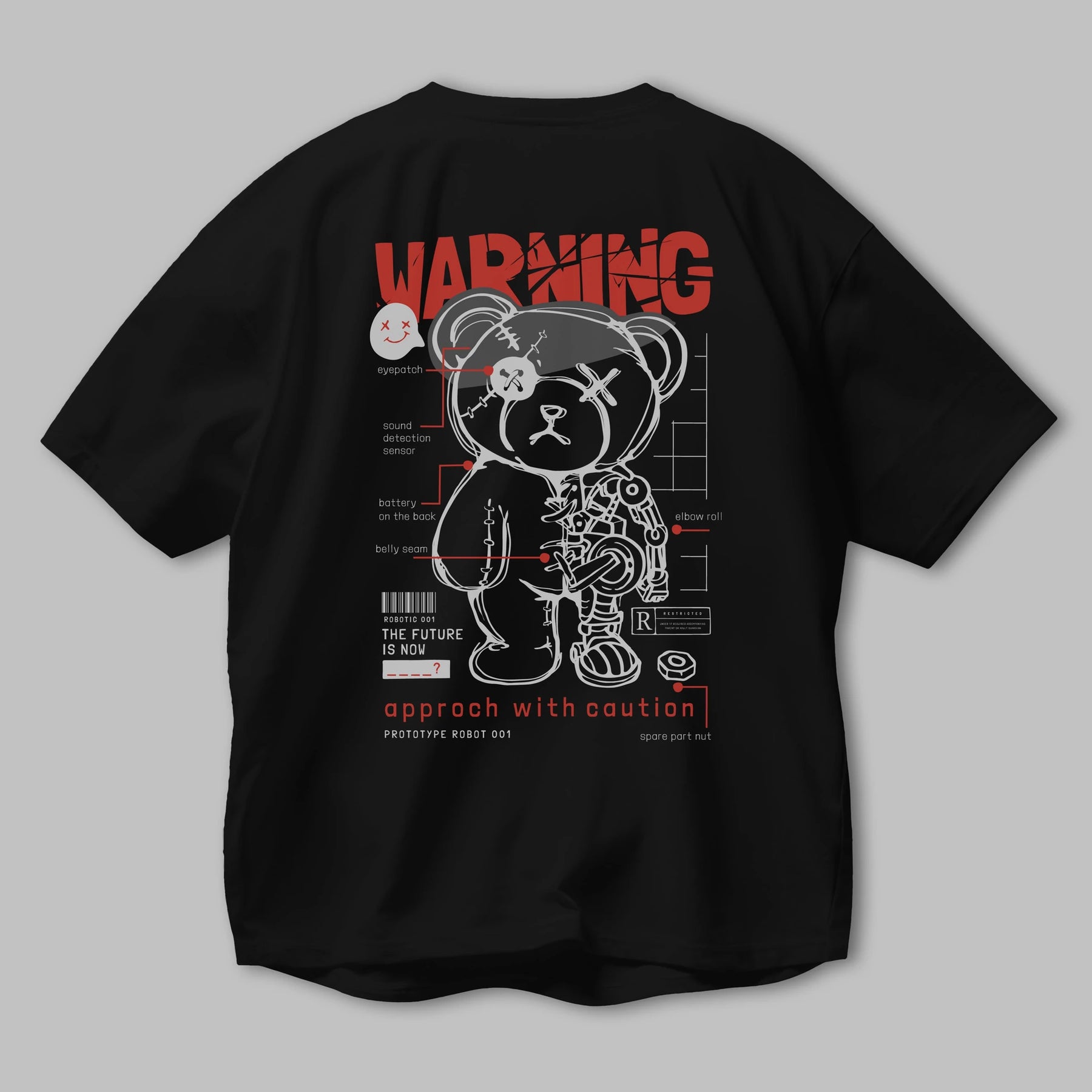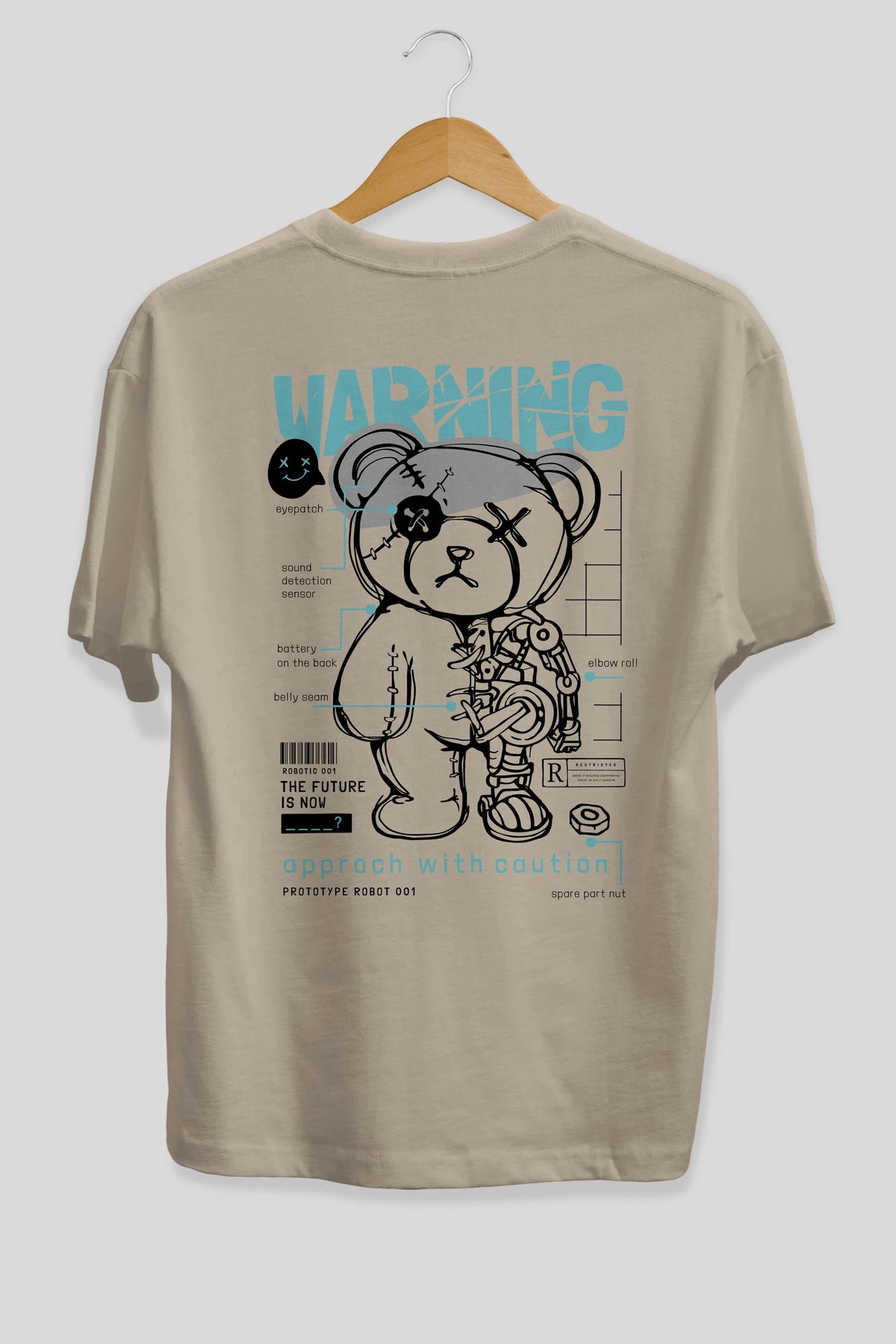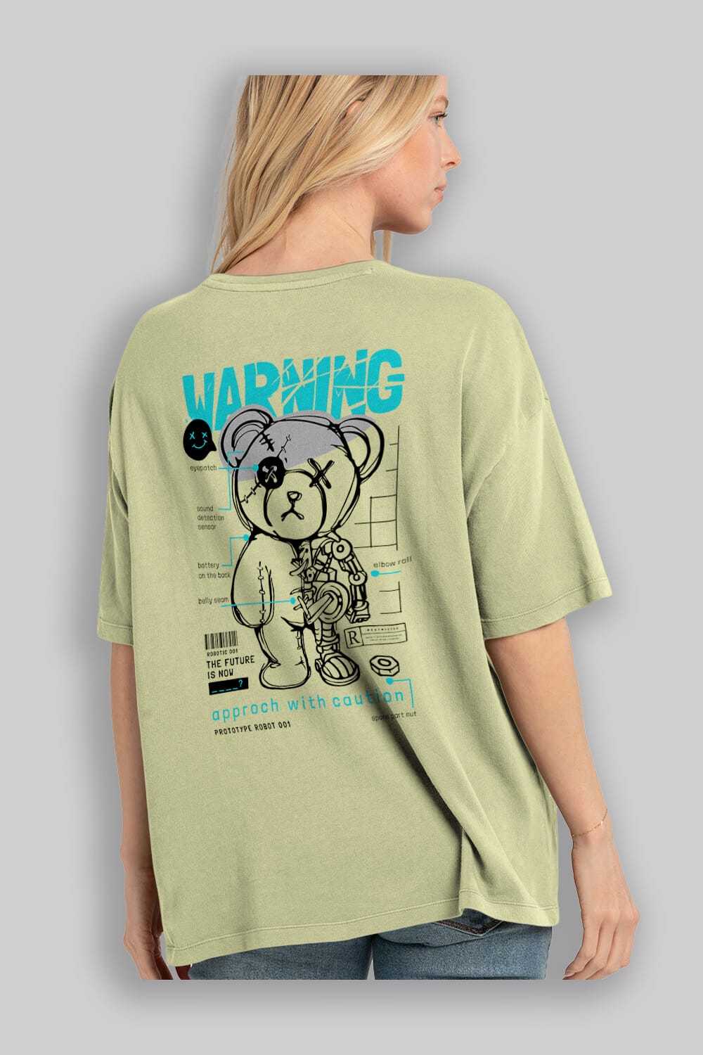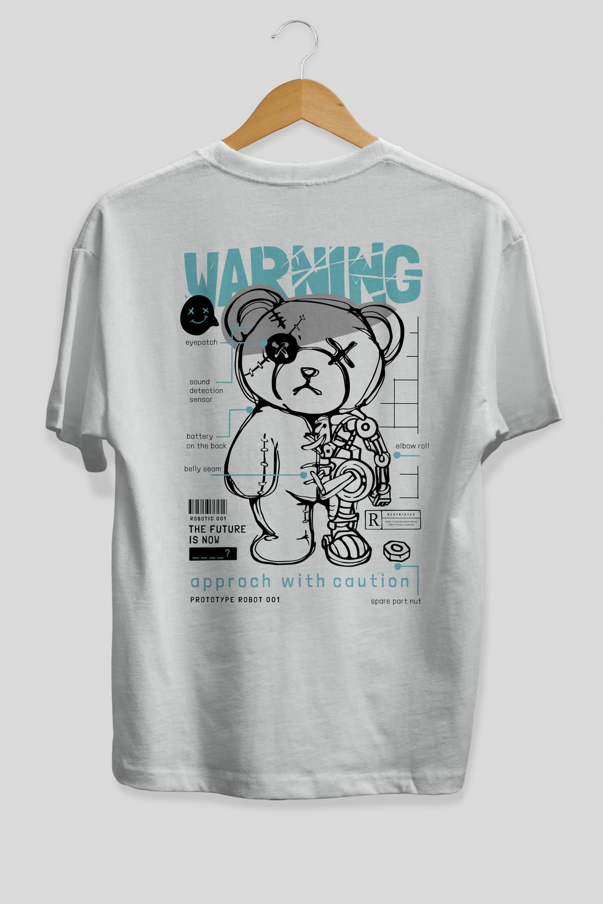 Teddy Bear Warning Arka Baskılı Oversize t-shirt Erkek Kadın Unisex