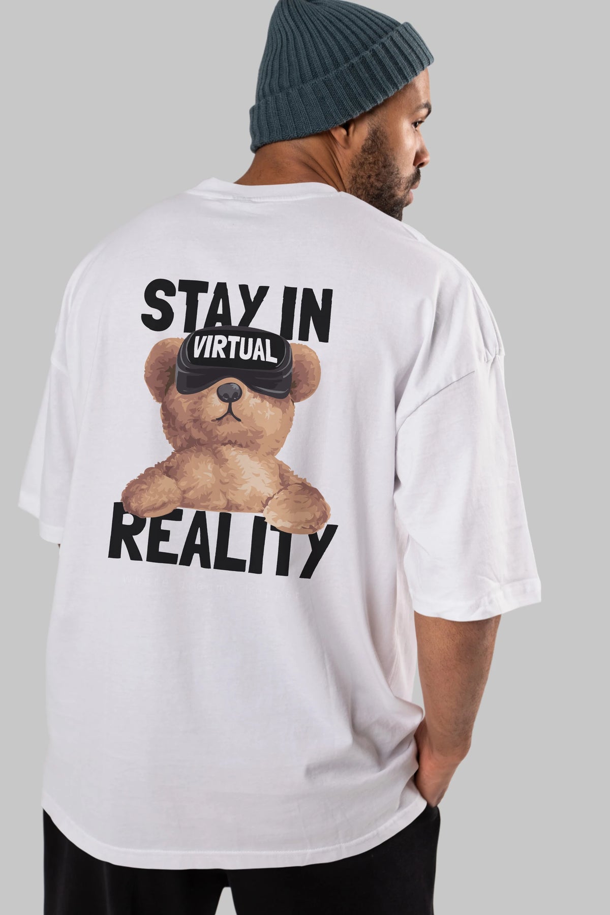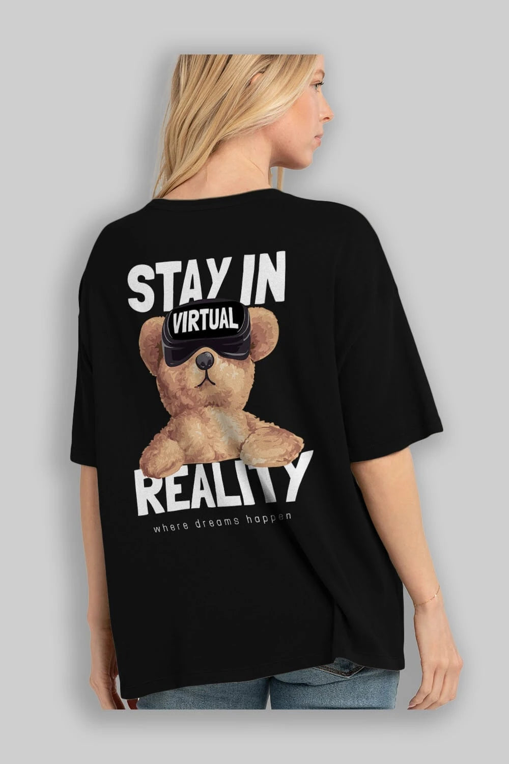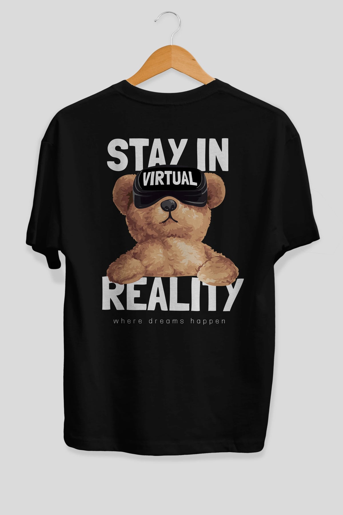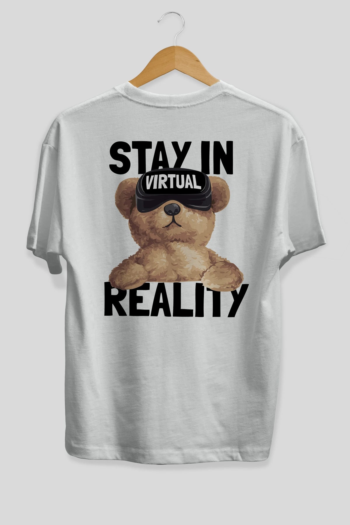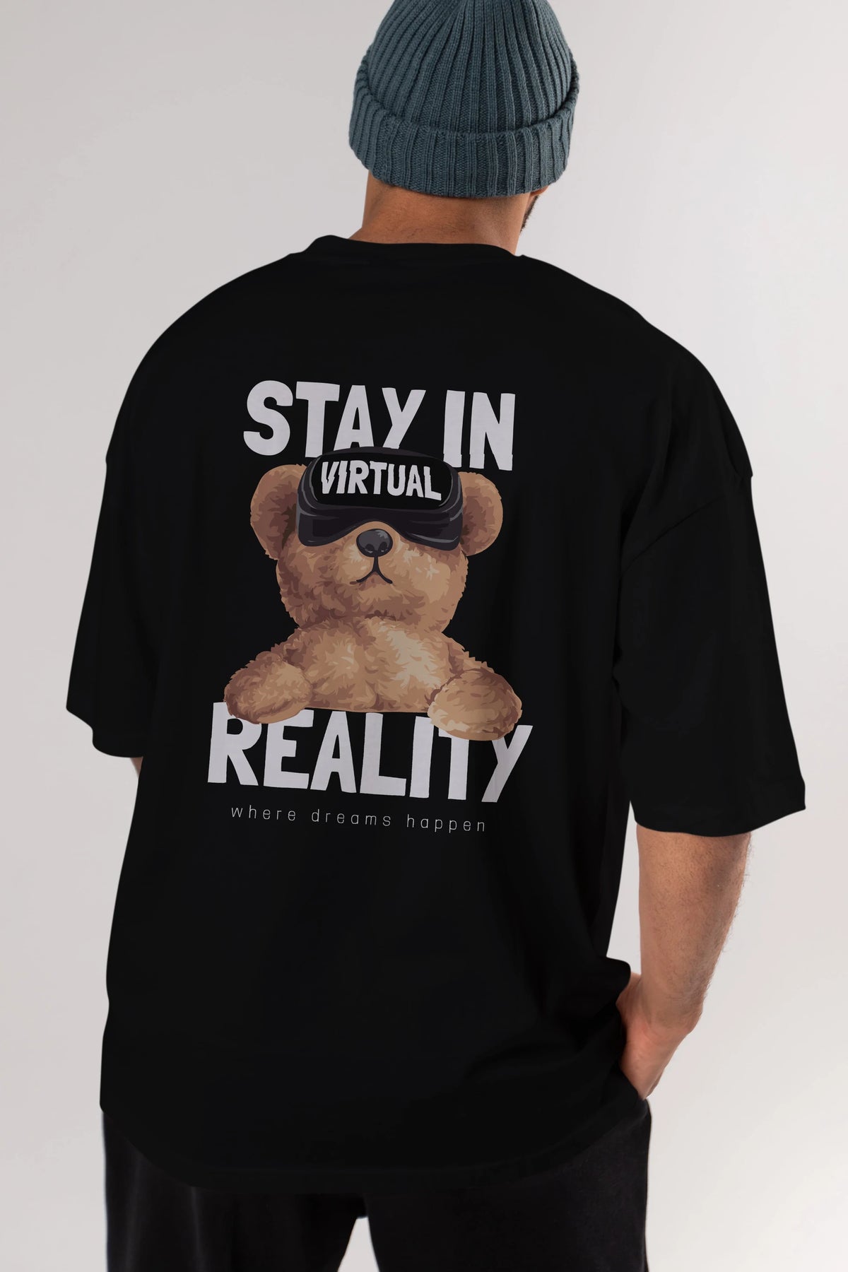 Teddy Stay In Reality Arka Baskılı Oversize t-shirt Erkek Kadın Unisex %100 Pamuk