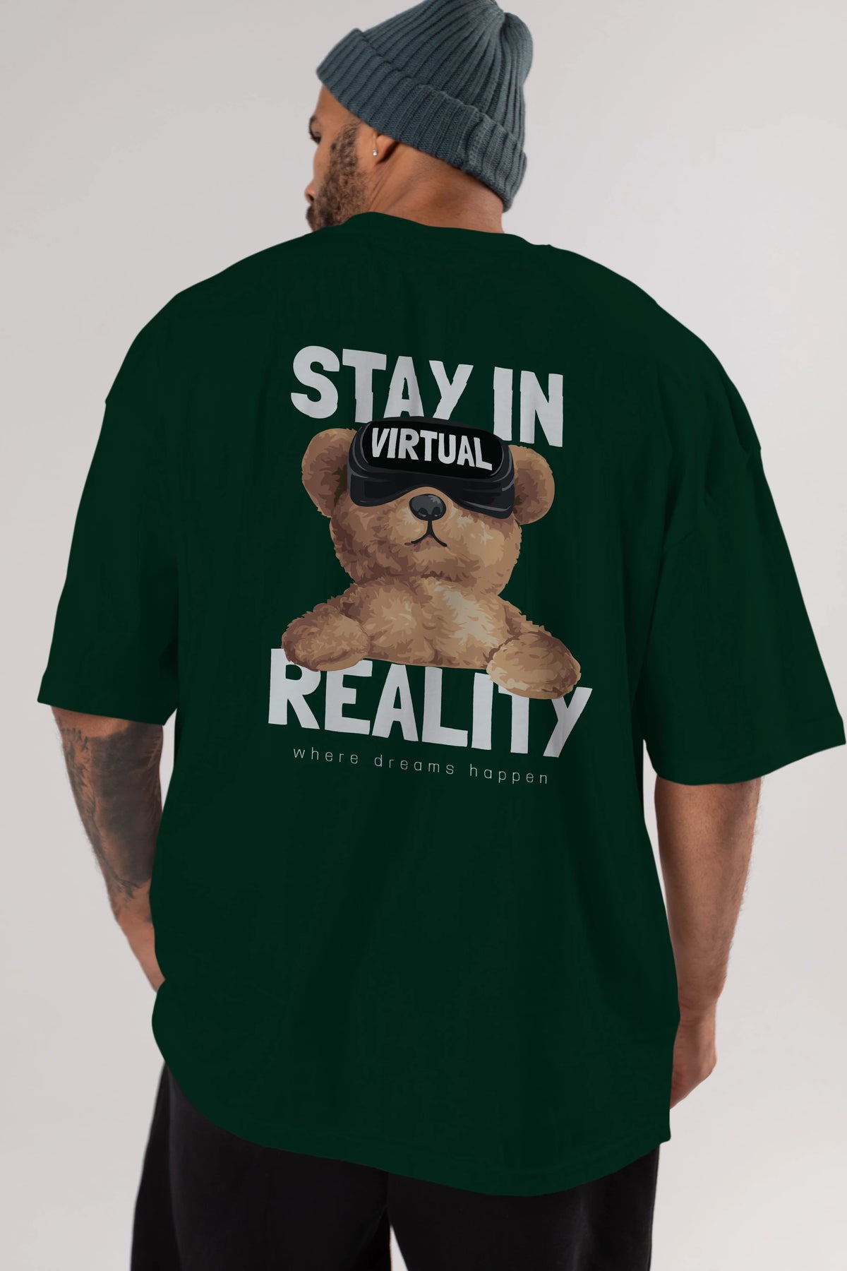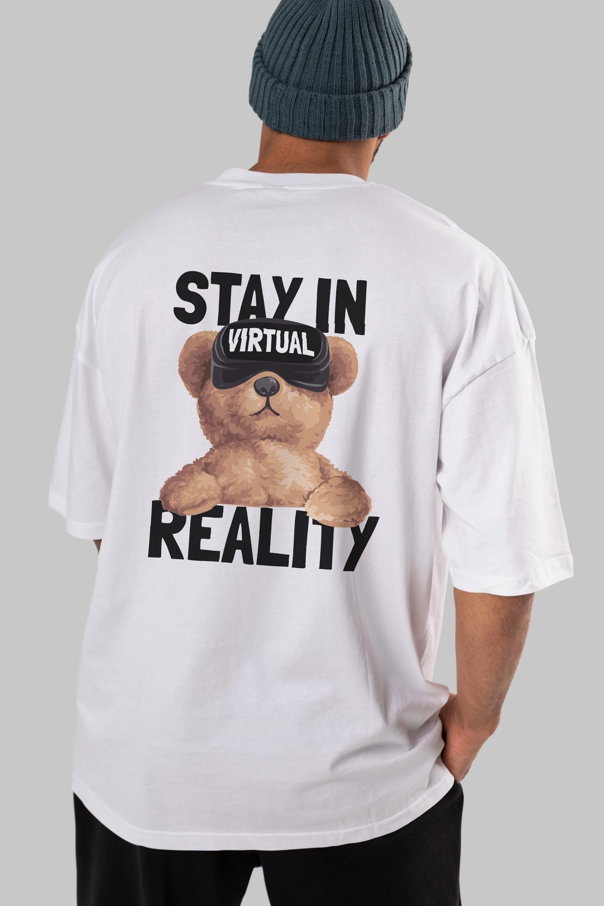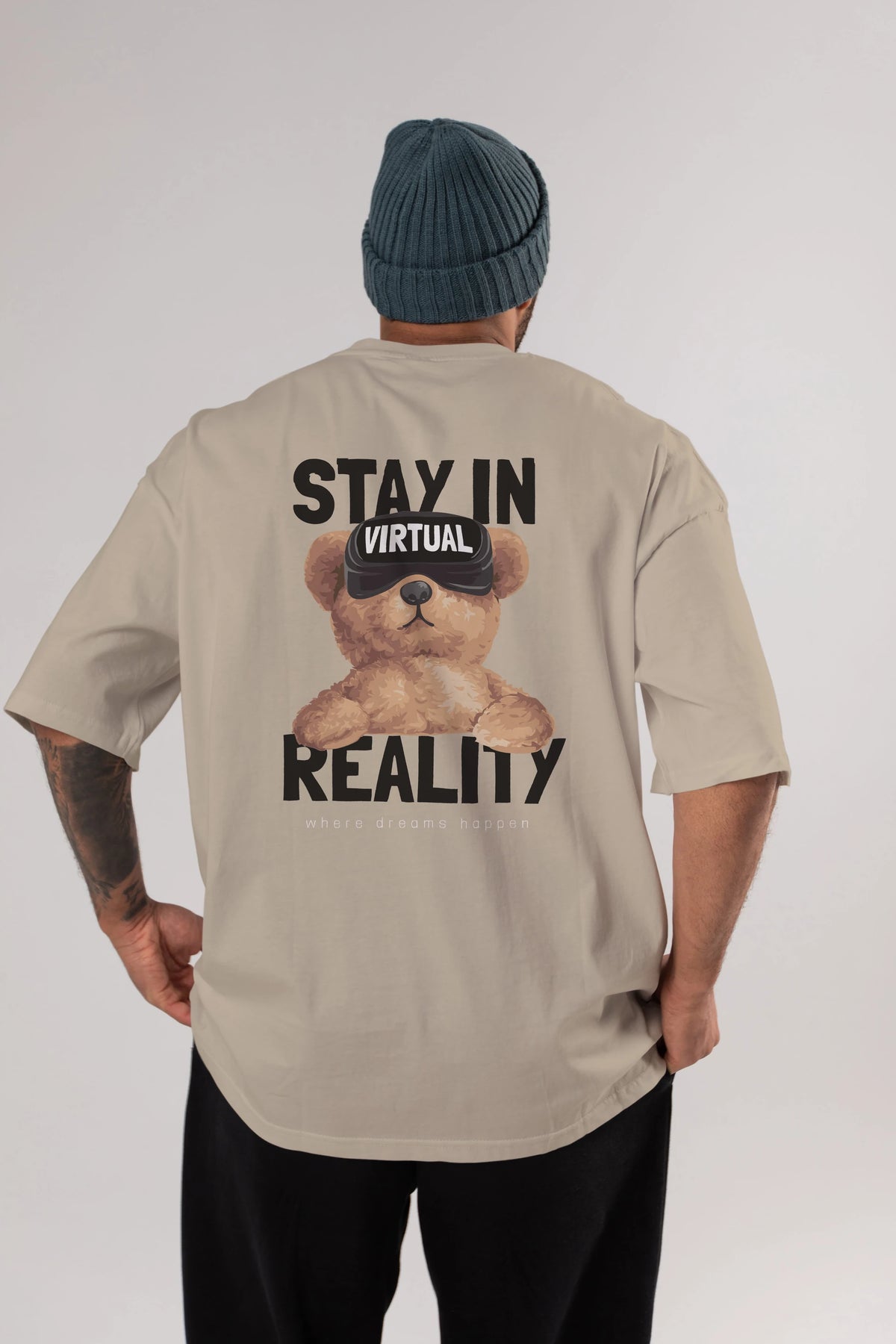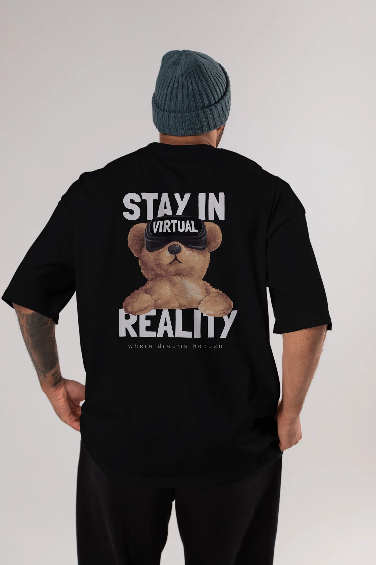 Teddy Stay In Reality Arka Baskılı Oversize t-shirt Erkek Kadın Unisex %100 Pamuk