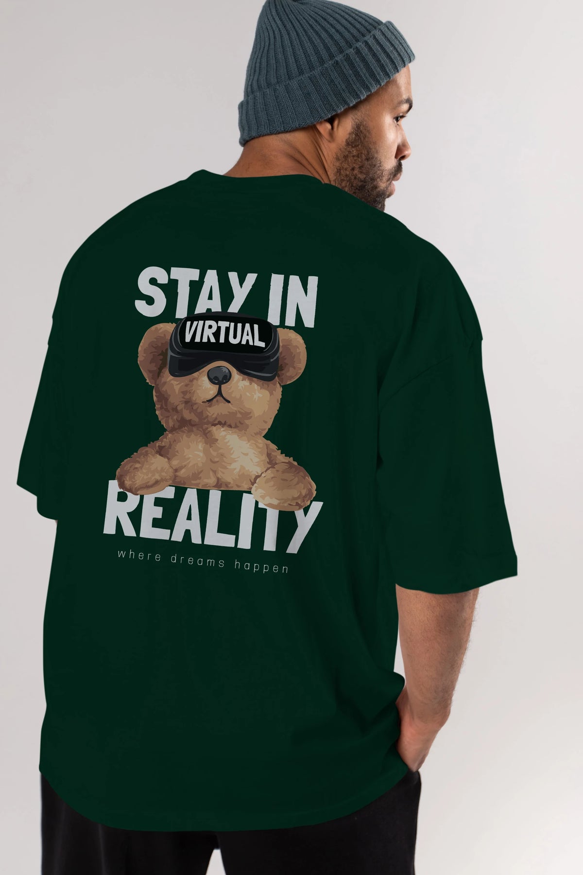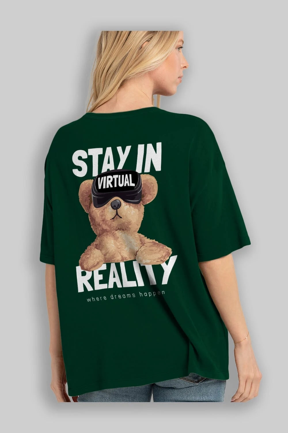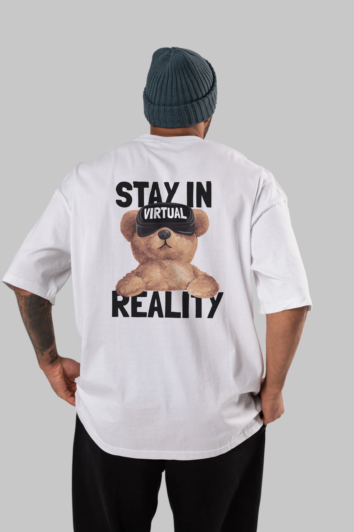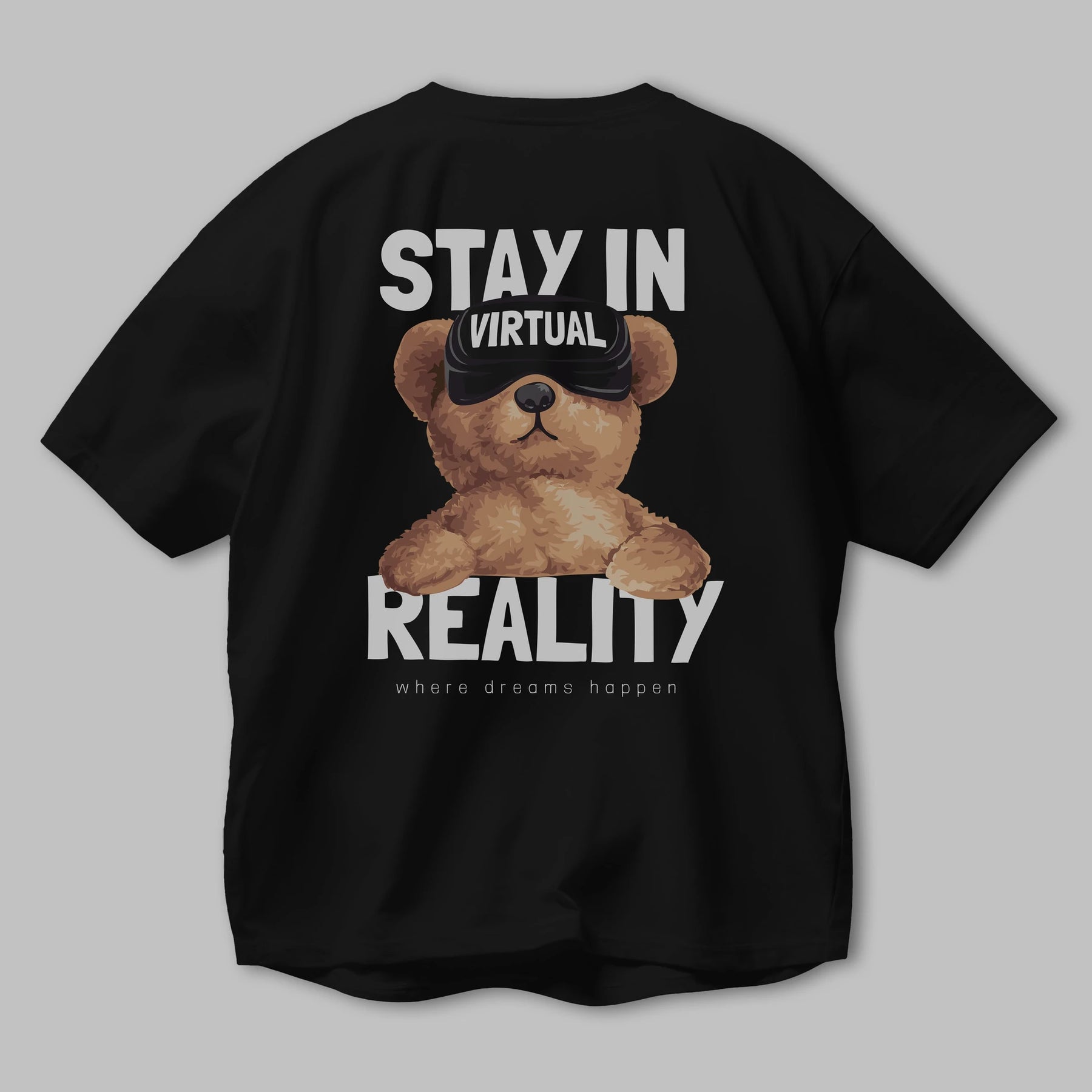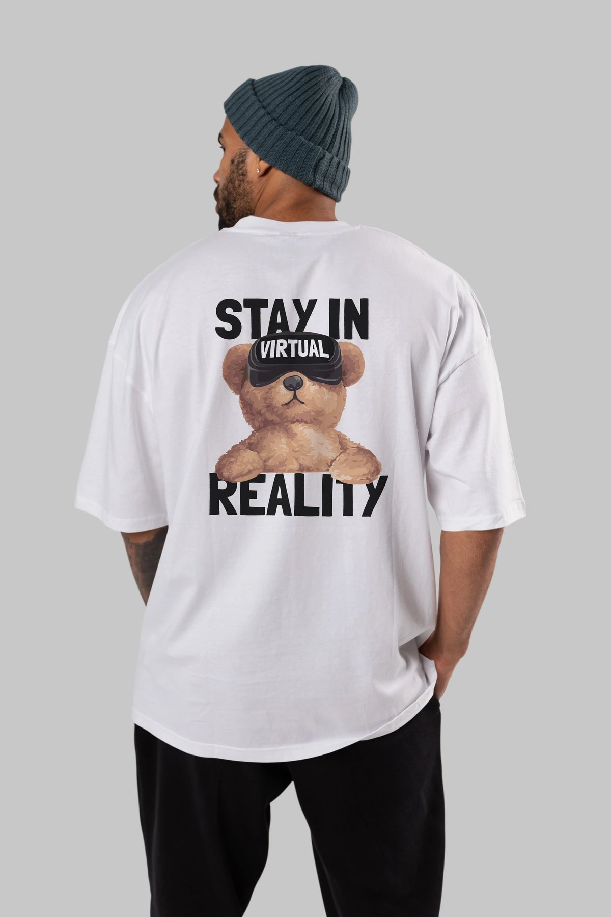 Teddy Stay In Reality Arka Baskılı Oversize t-shirt Erkek Kadın Unisex %100 Pamuk