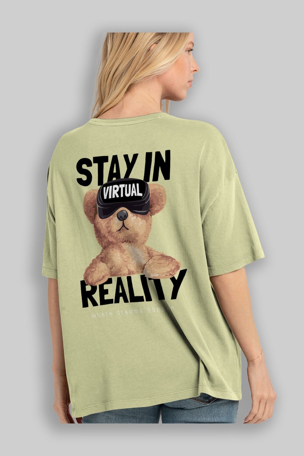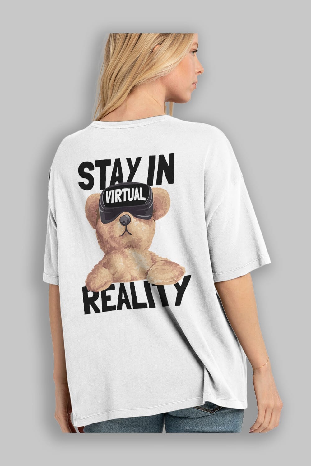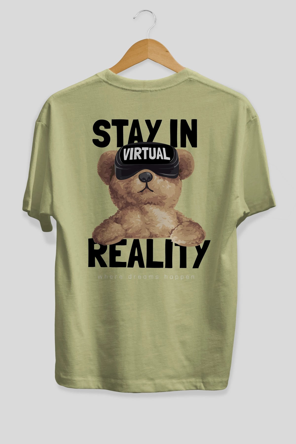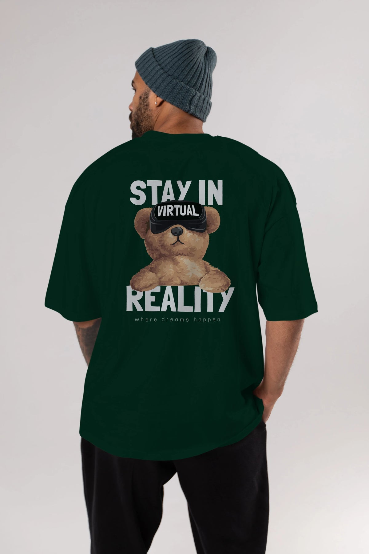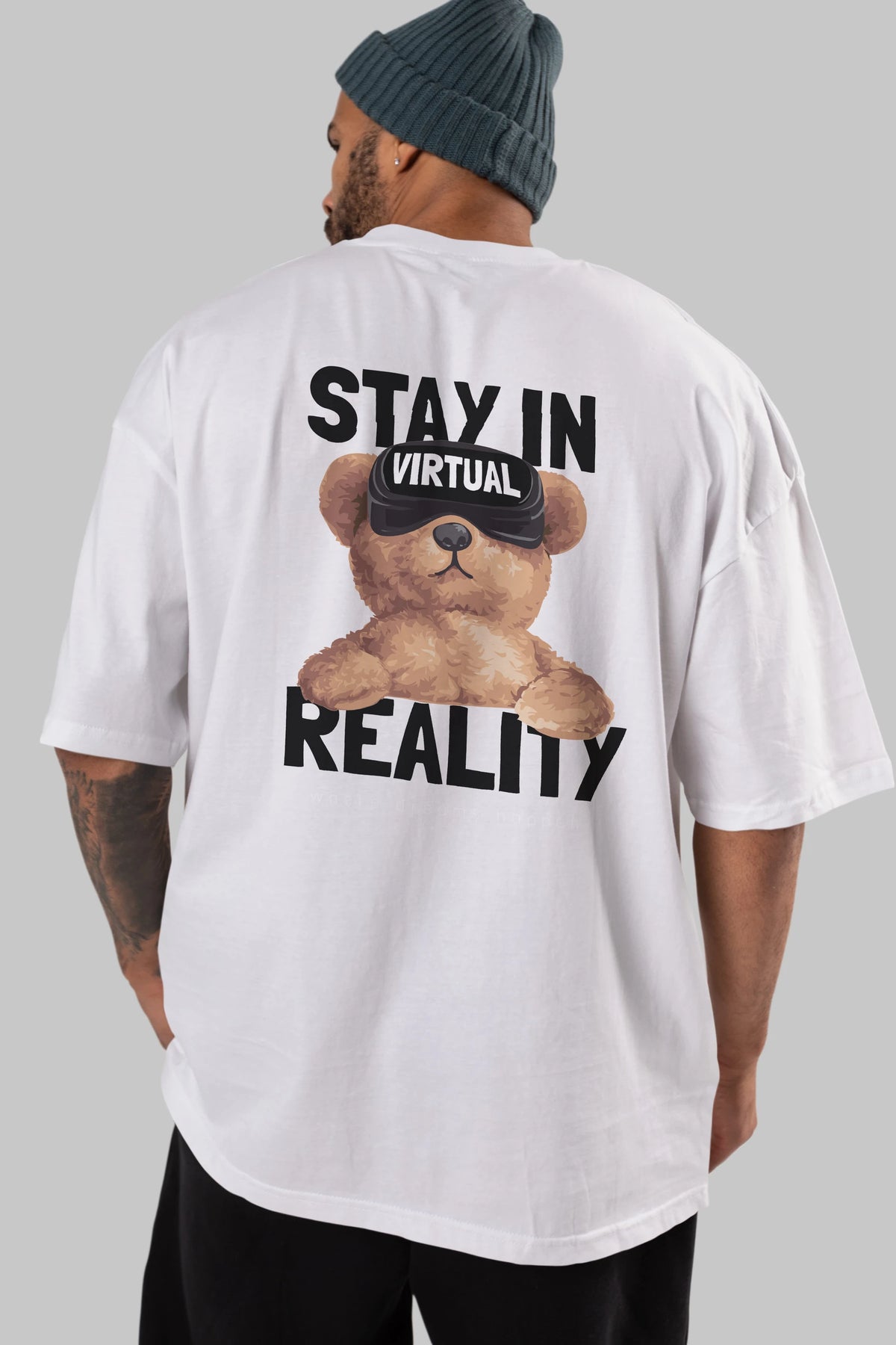 Teddy Stay In Reality Arka Baskılı Oversize t-shirt Erkek Kadın Unisex %100 Pamuk