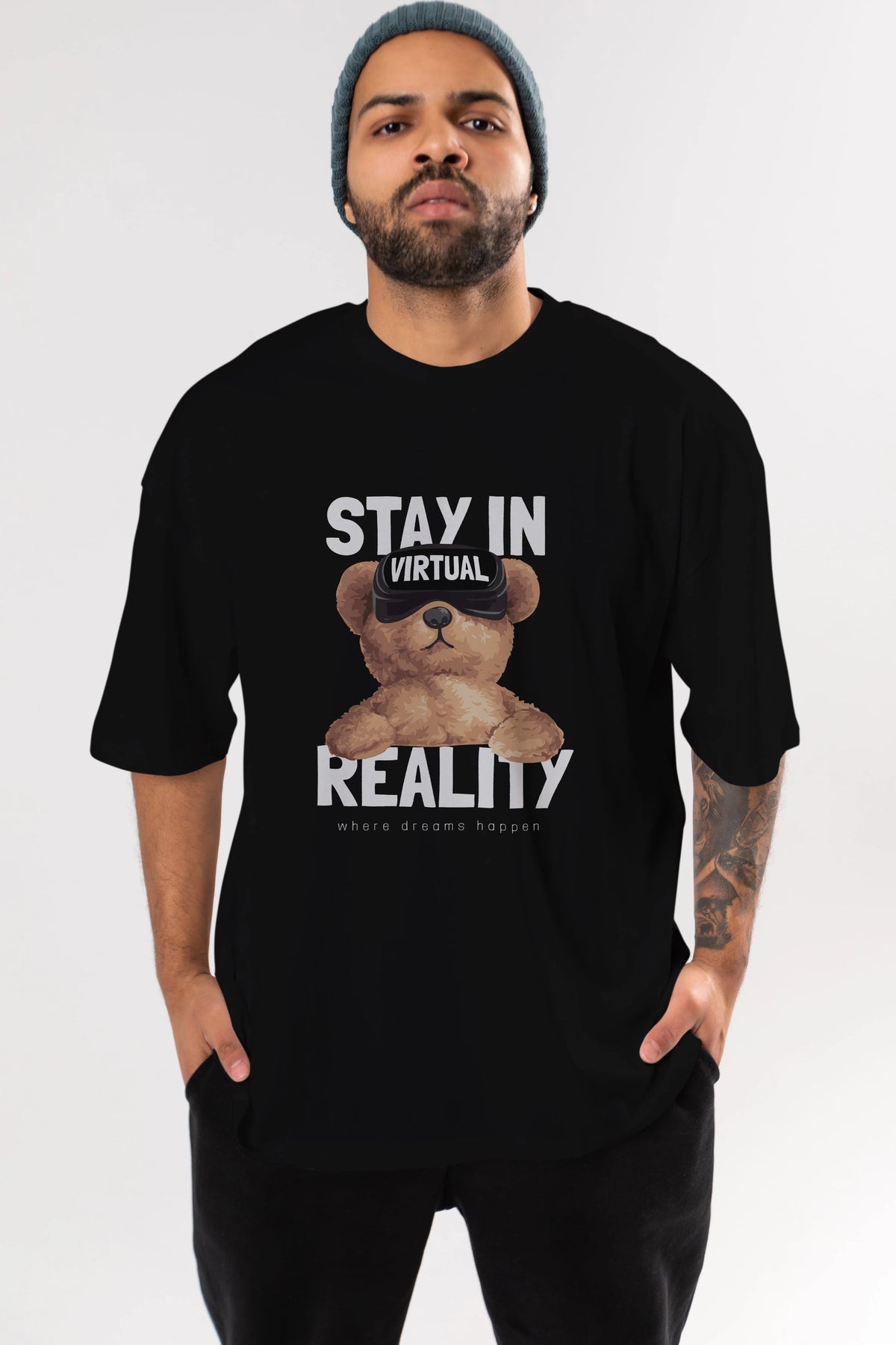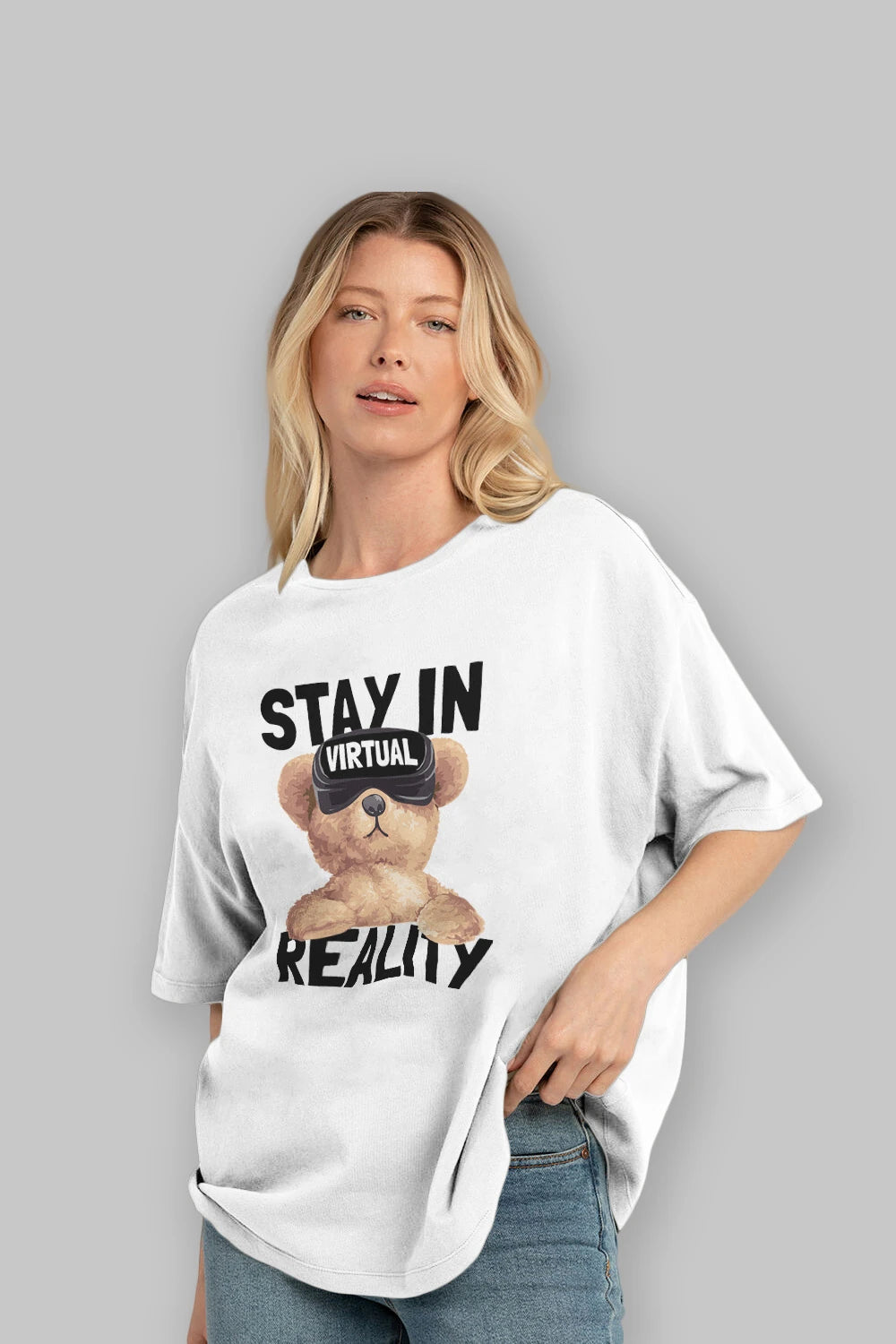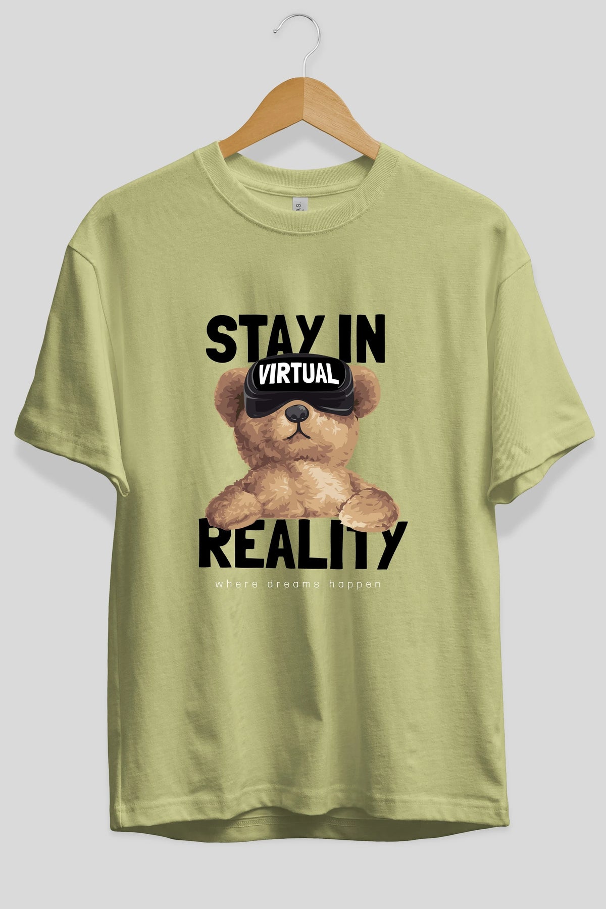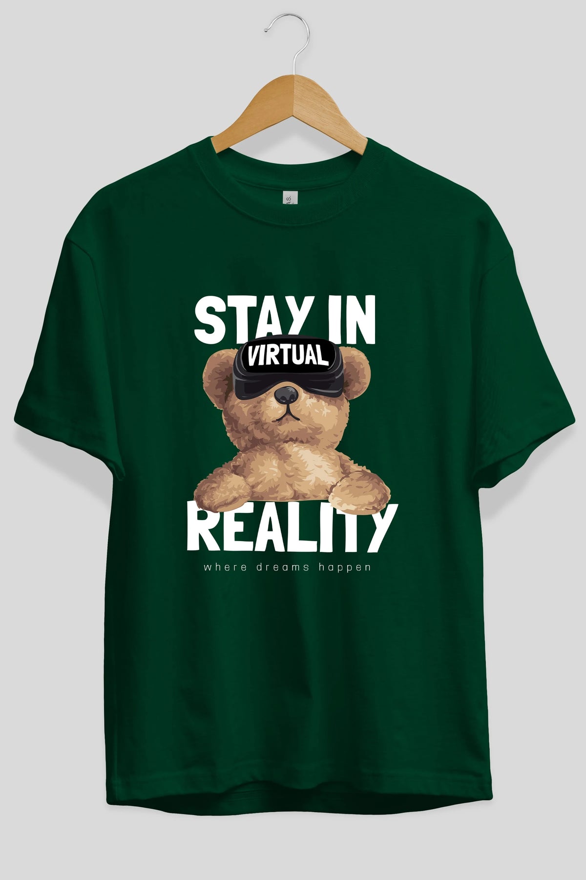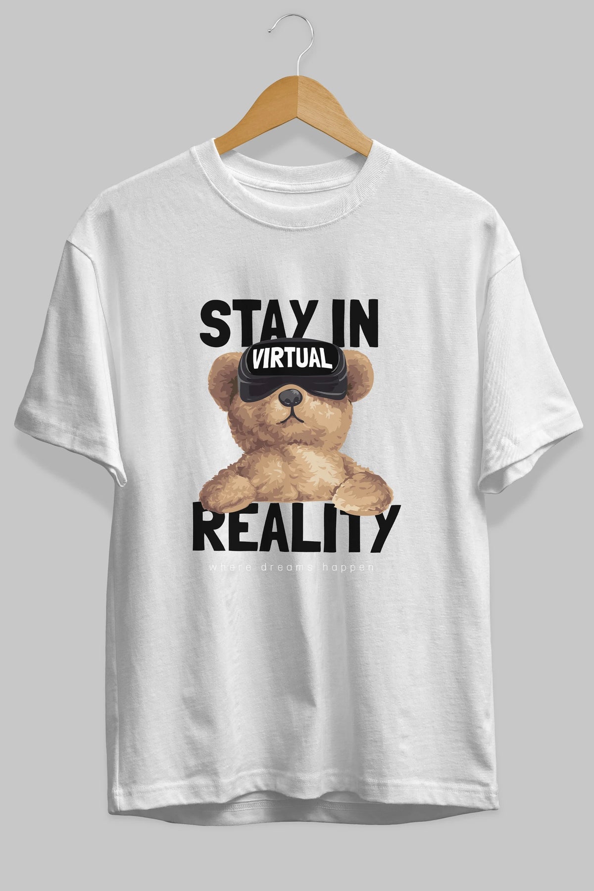 Teddy Stay In Reality Ön Baskılı Oversize t-shirt Erkek Kadın Unisex %100 Pamuk