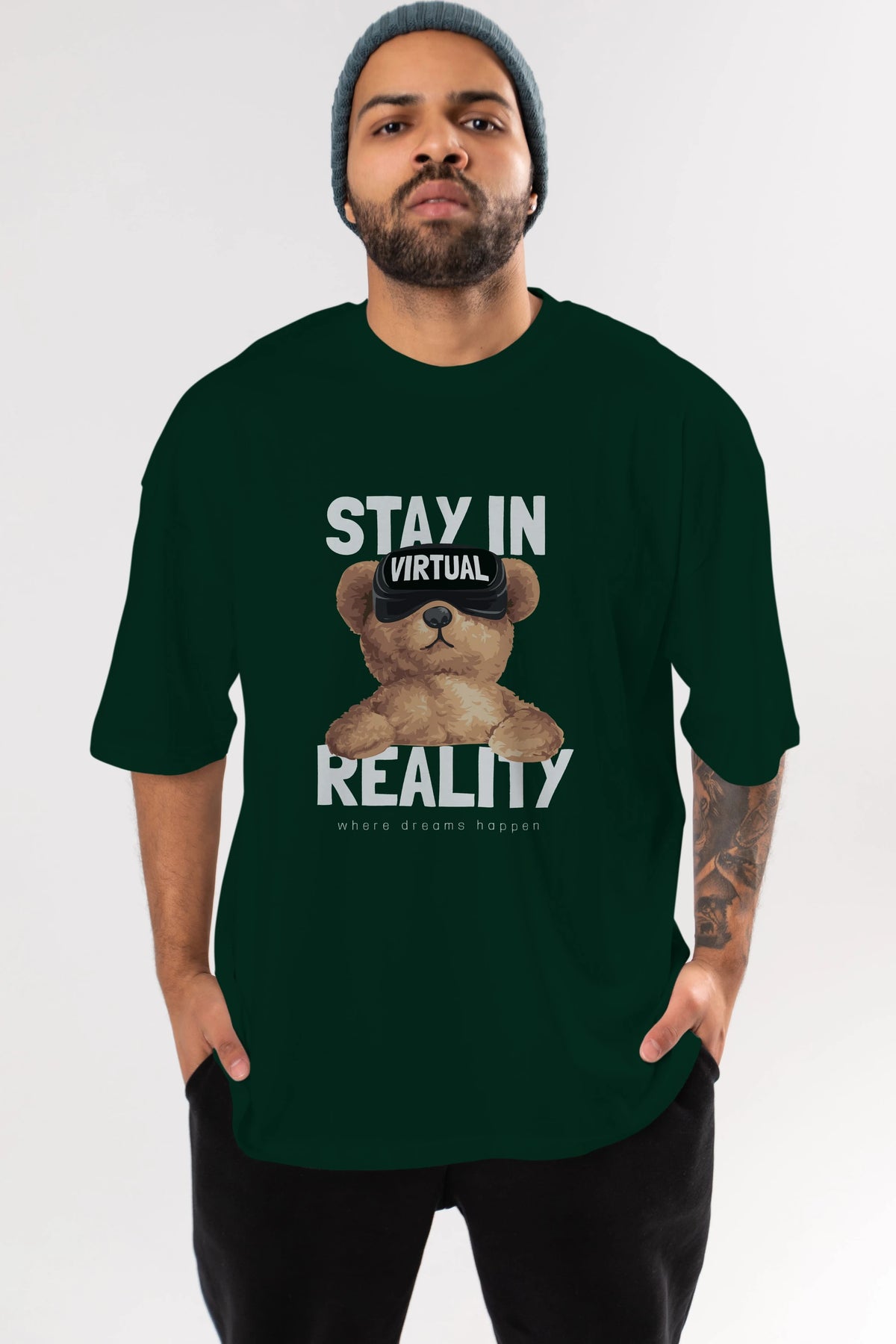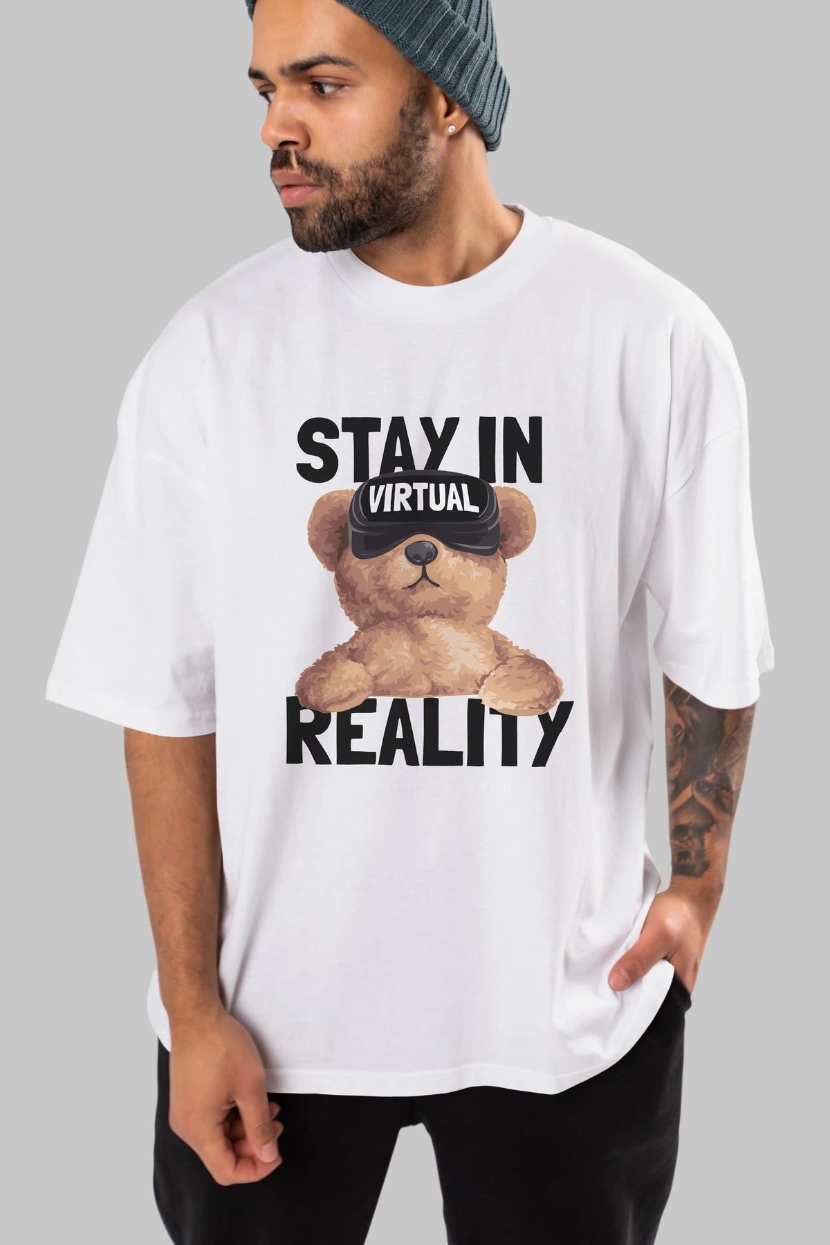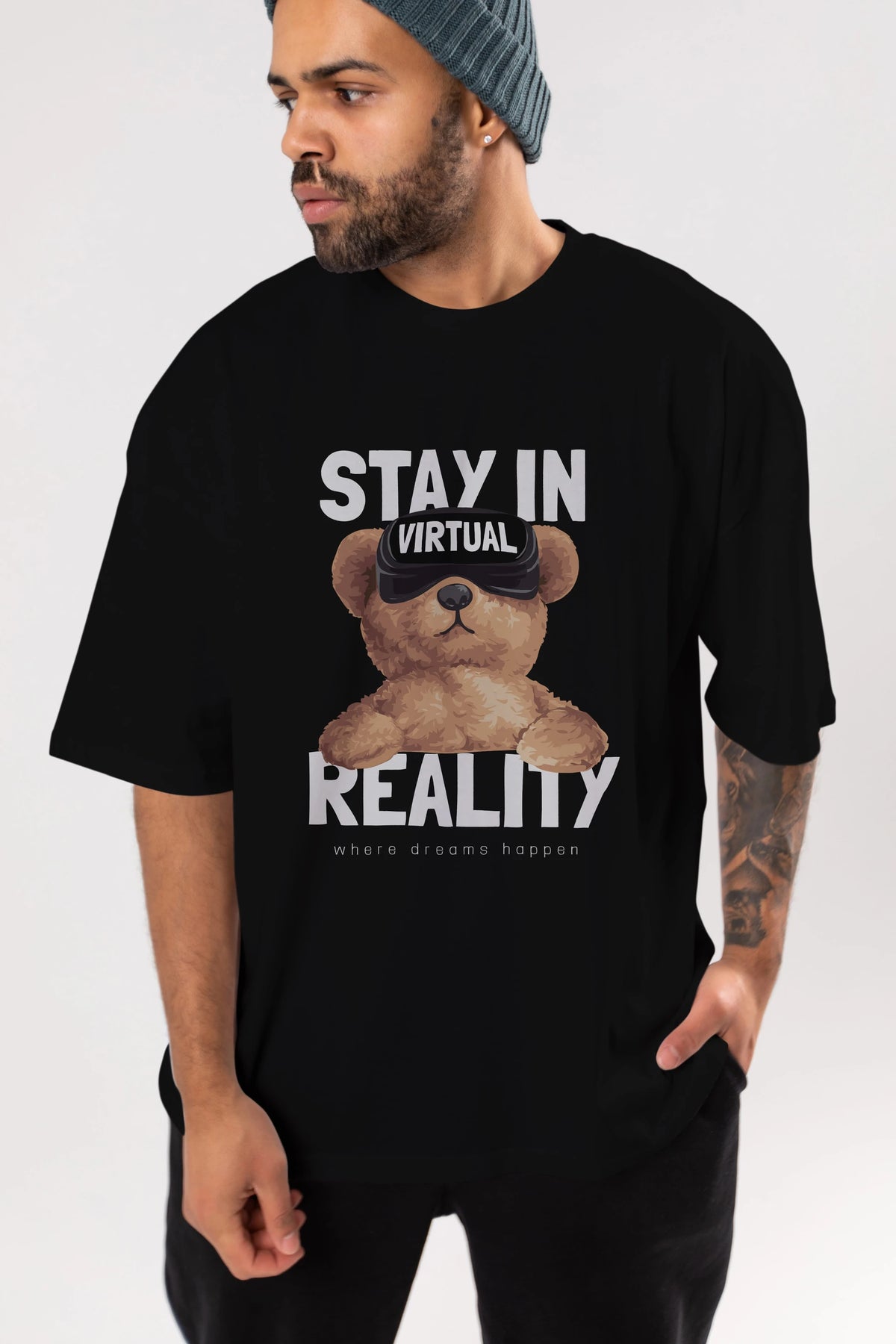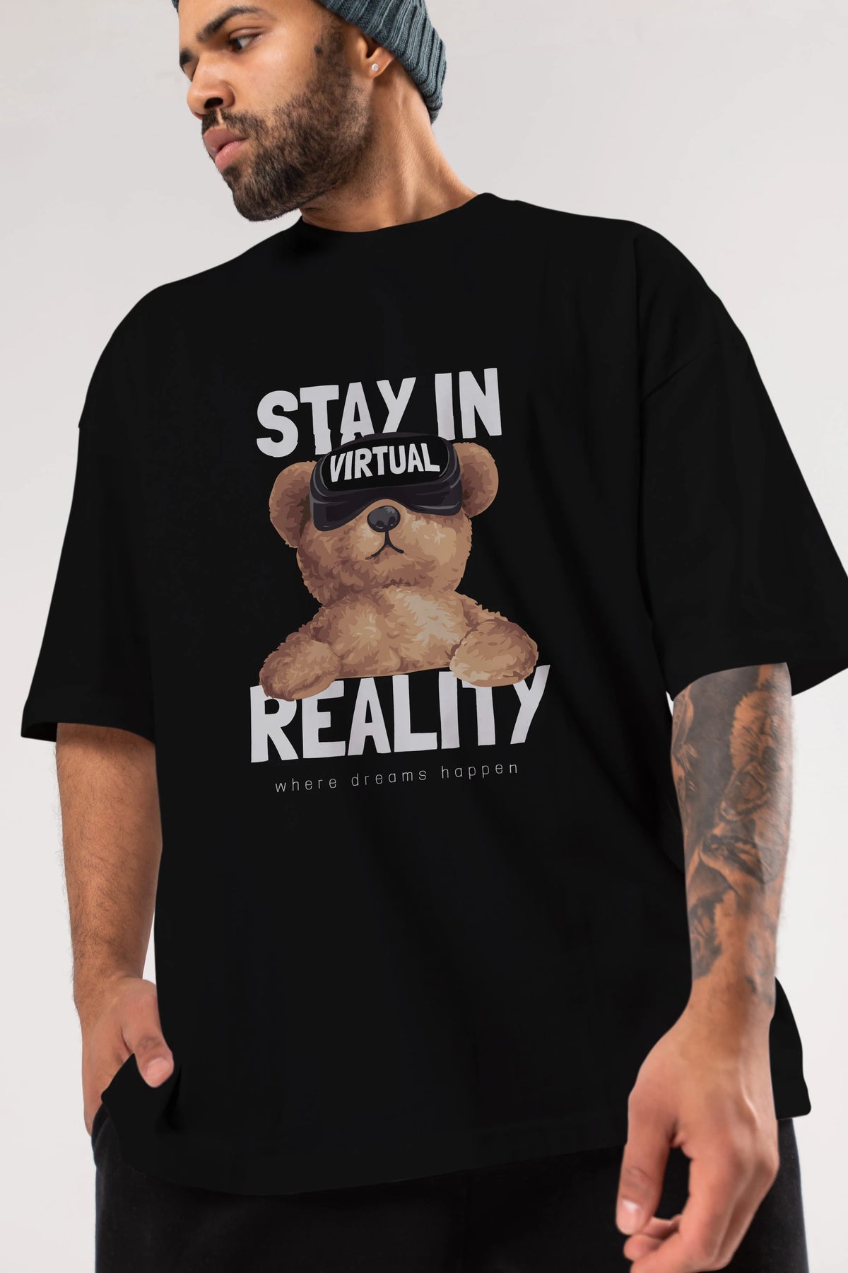 Teddy Stay In Reality Ön Baskılı Oversize t-shirt Erkek Kadın Unisex %100 Pamuk