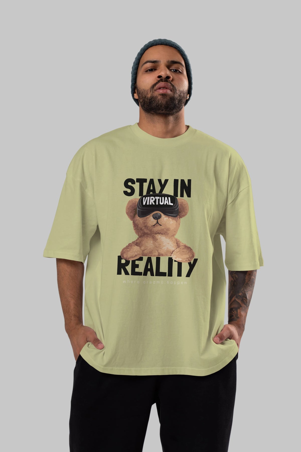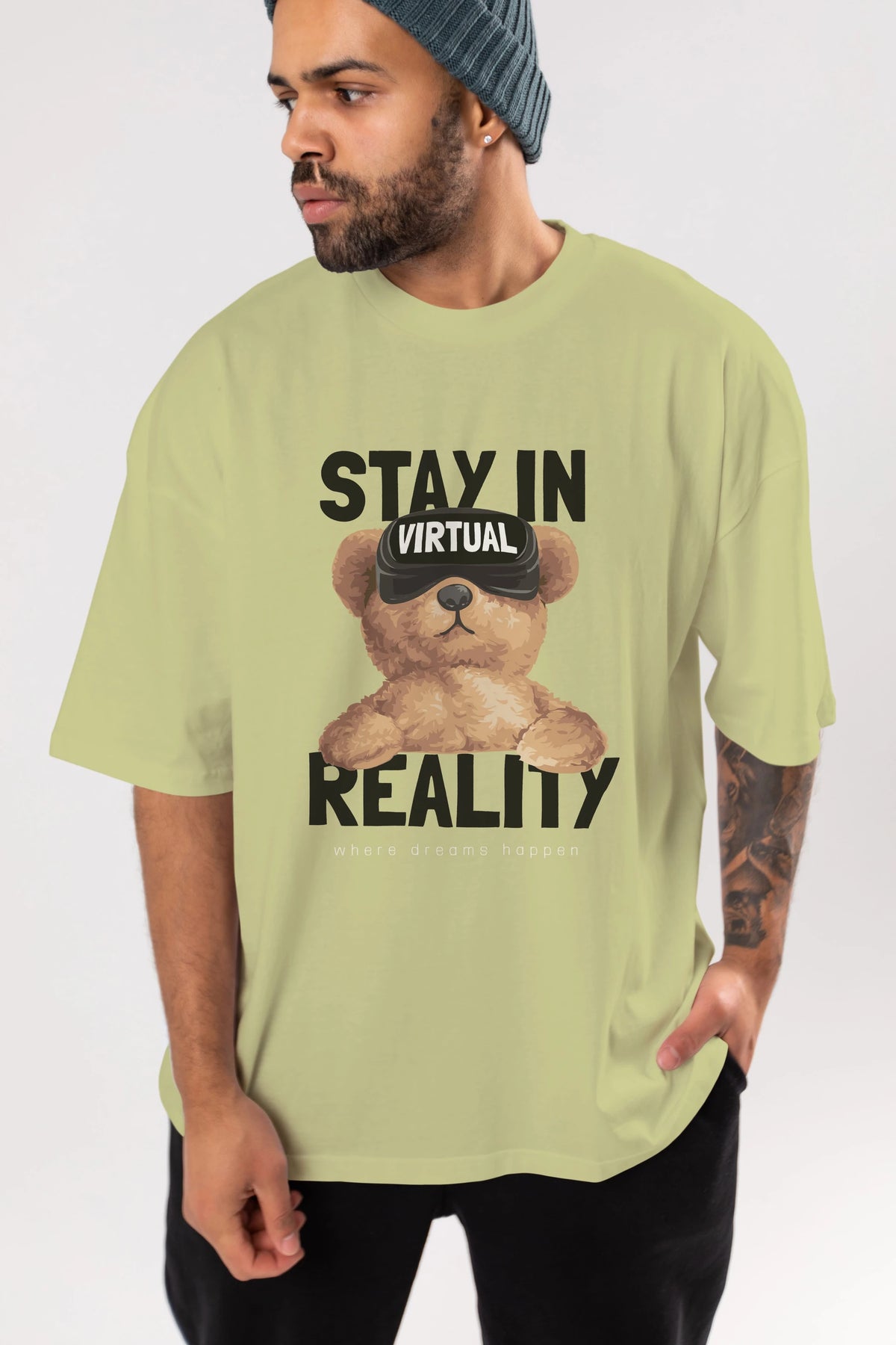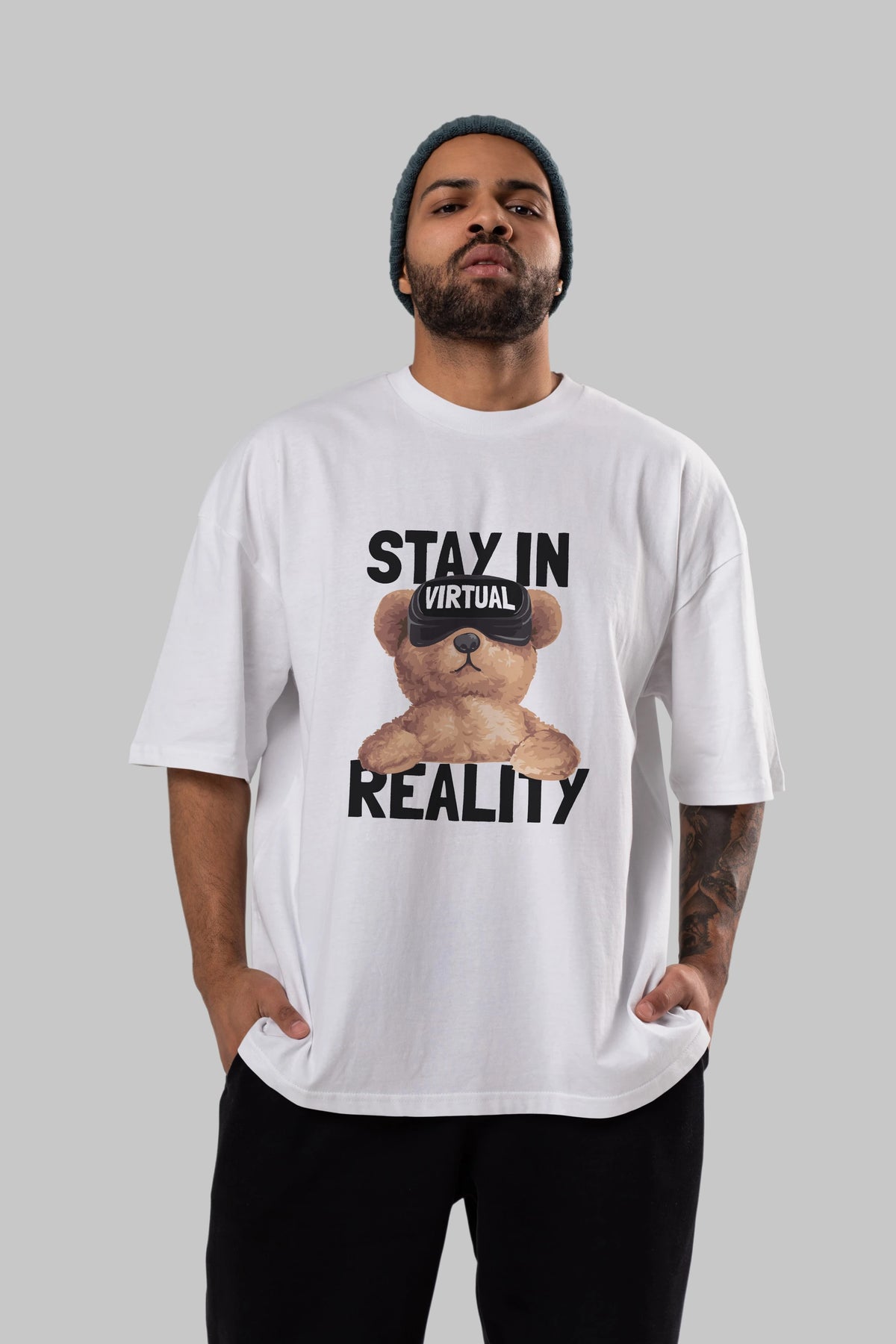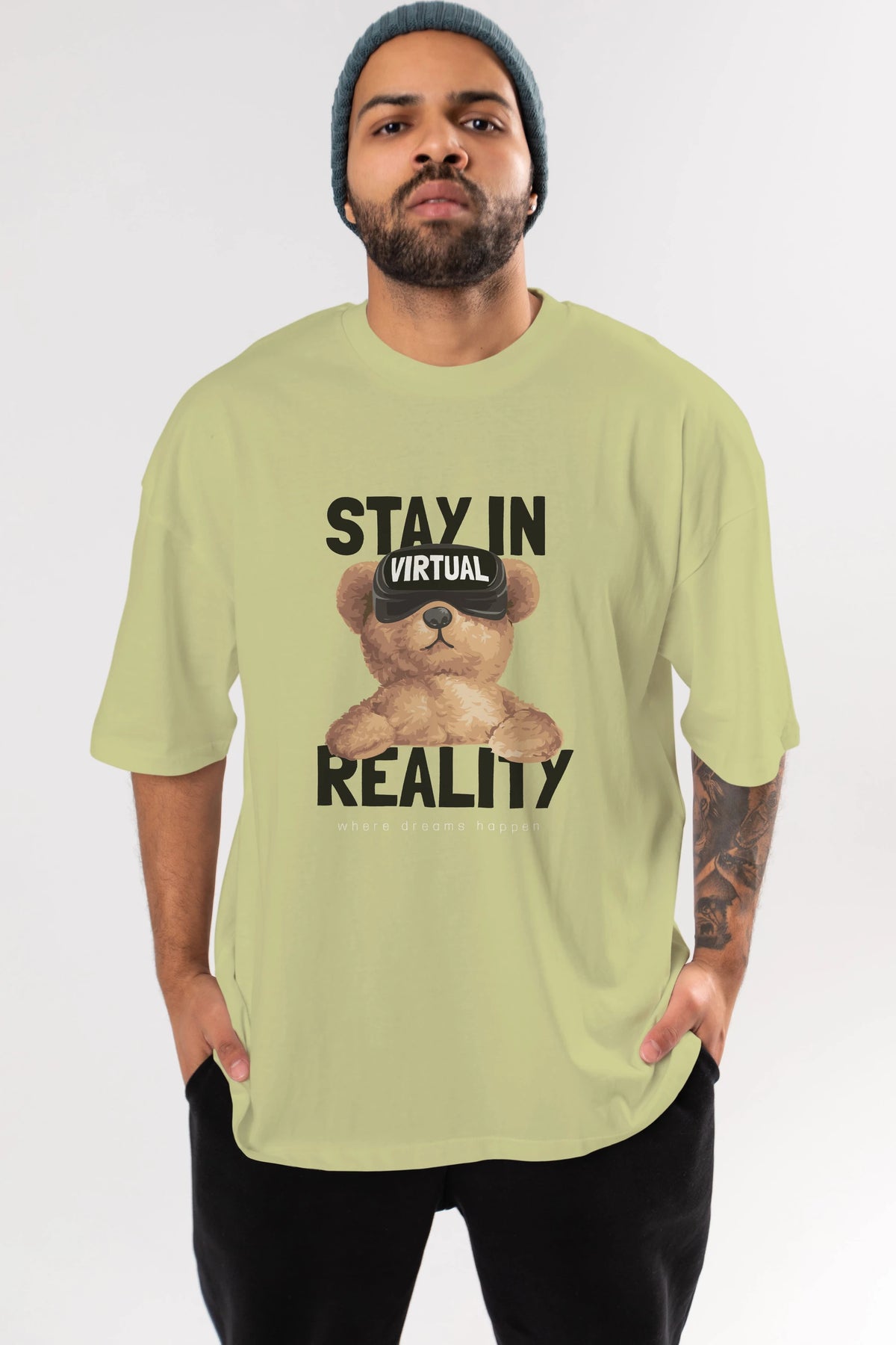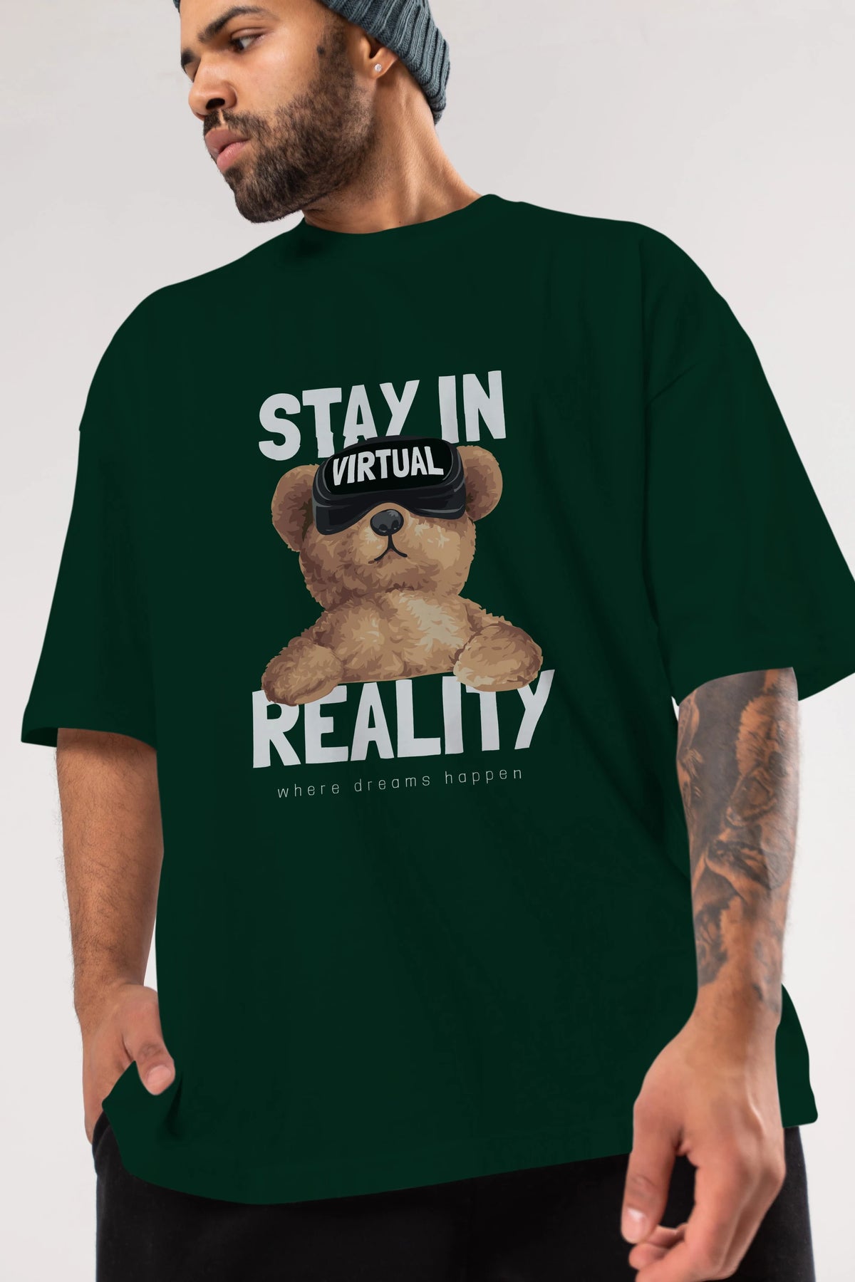 Teddy Stay In Reality Ön Baskılı Oversize t-shirt Erkek Kadın Unisex %100 Pamuk