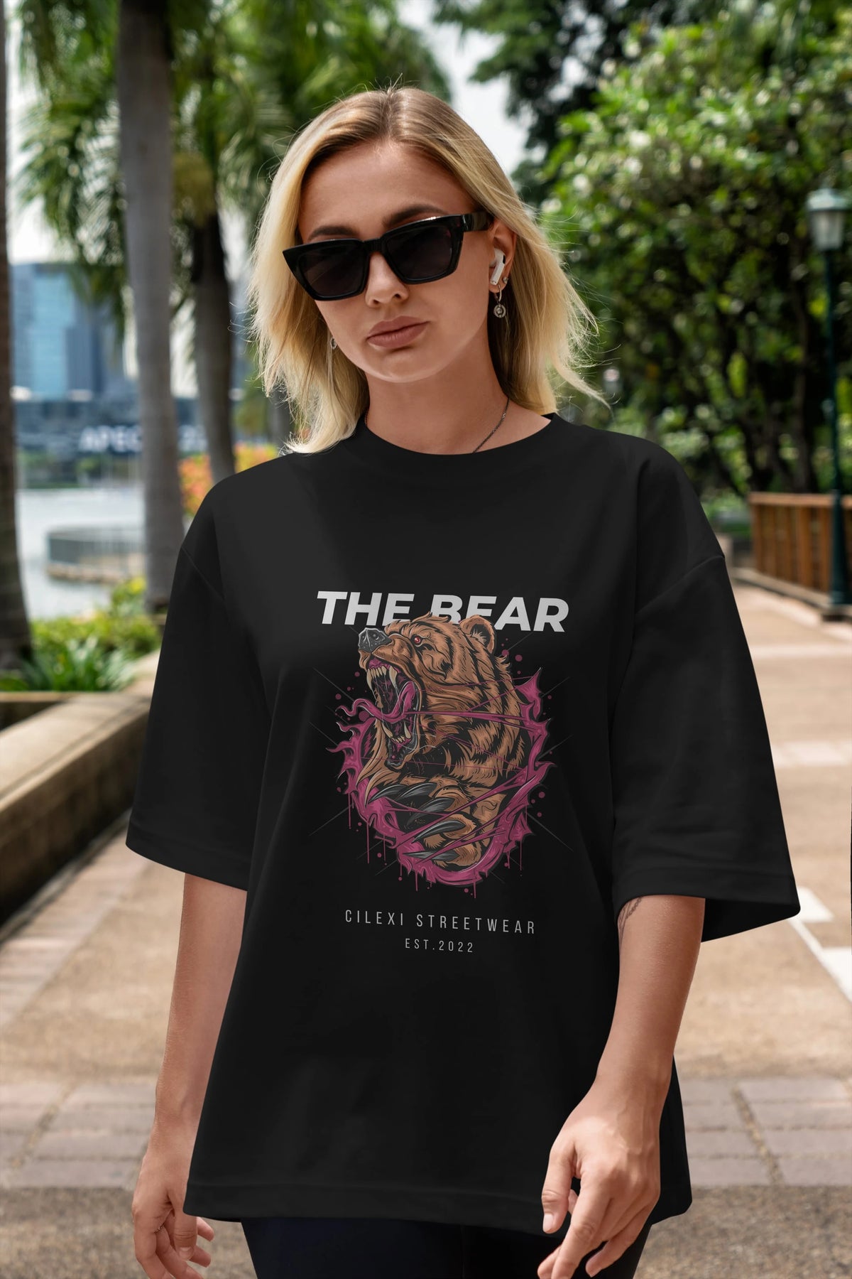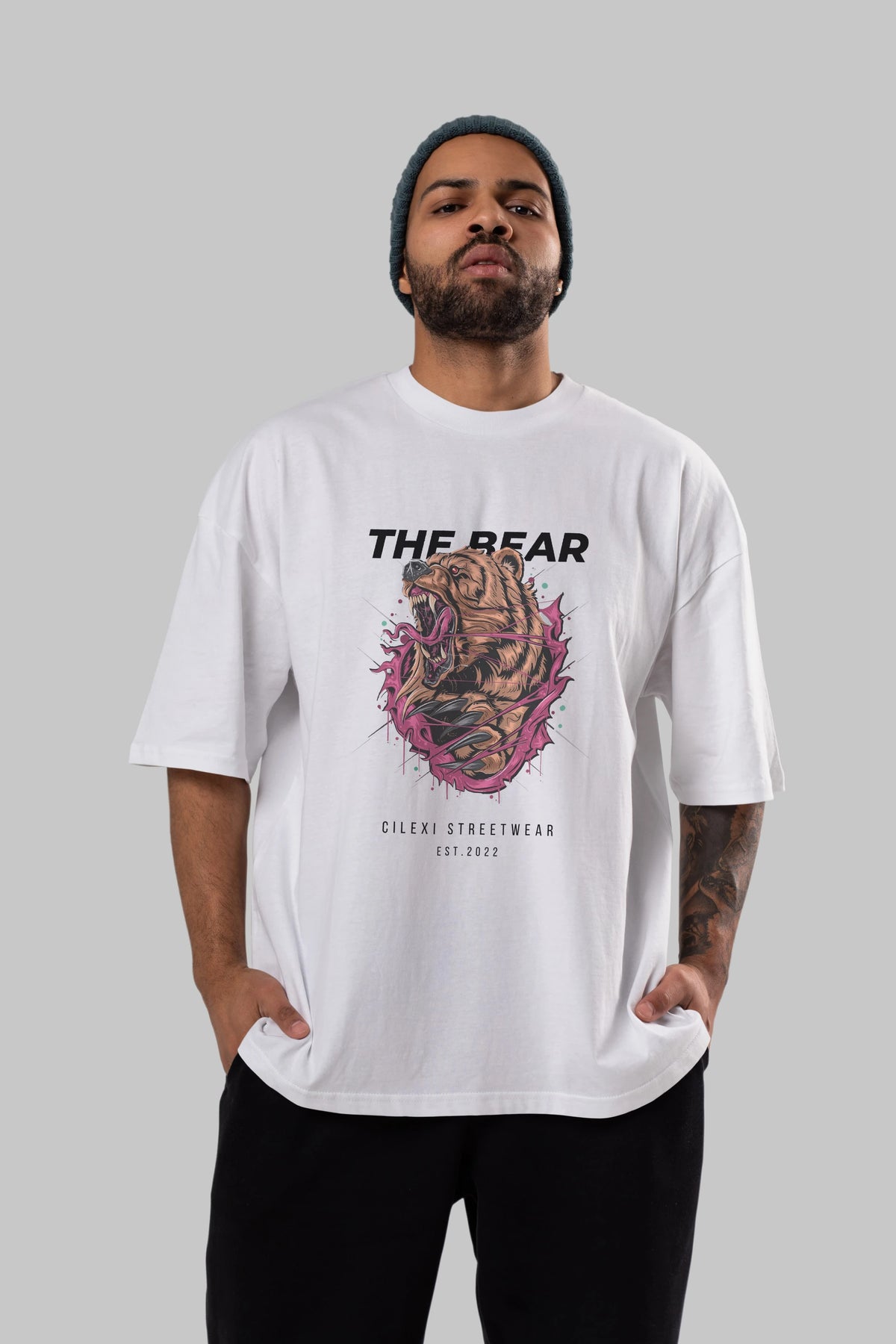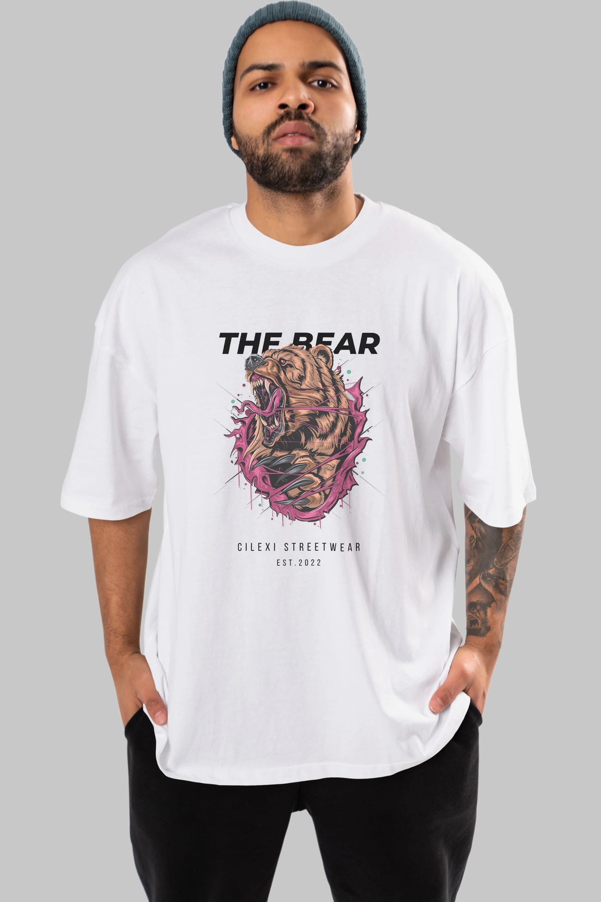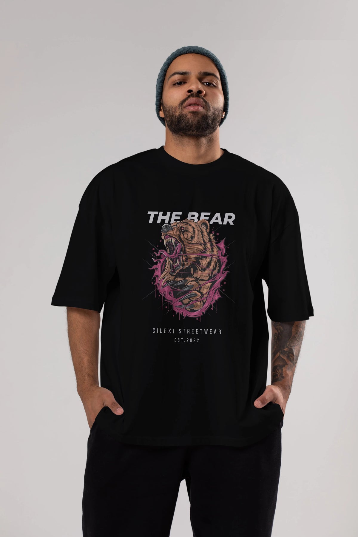 The Bear Ön Baskılı Oversize t-shirt Erkek Kadın Unisex %100 Pamuk