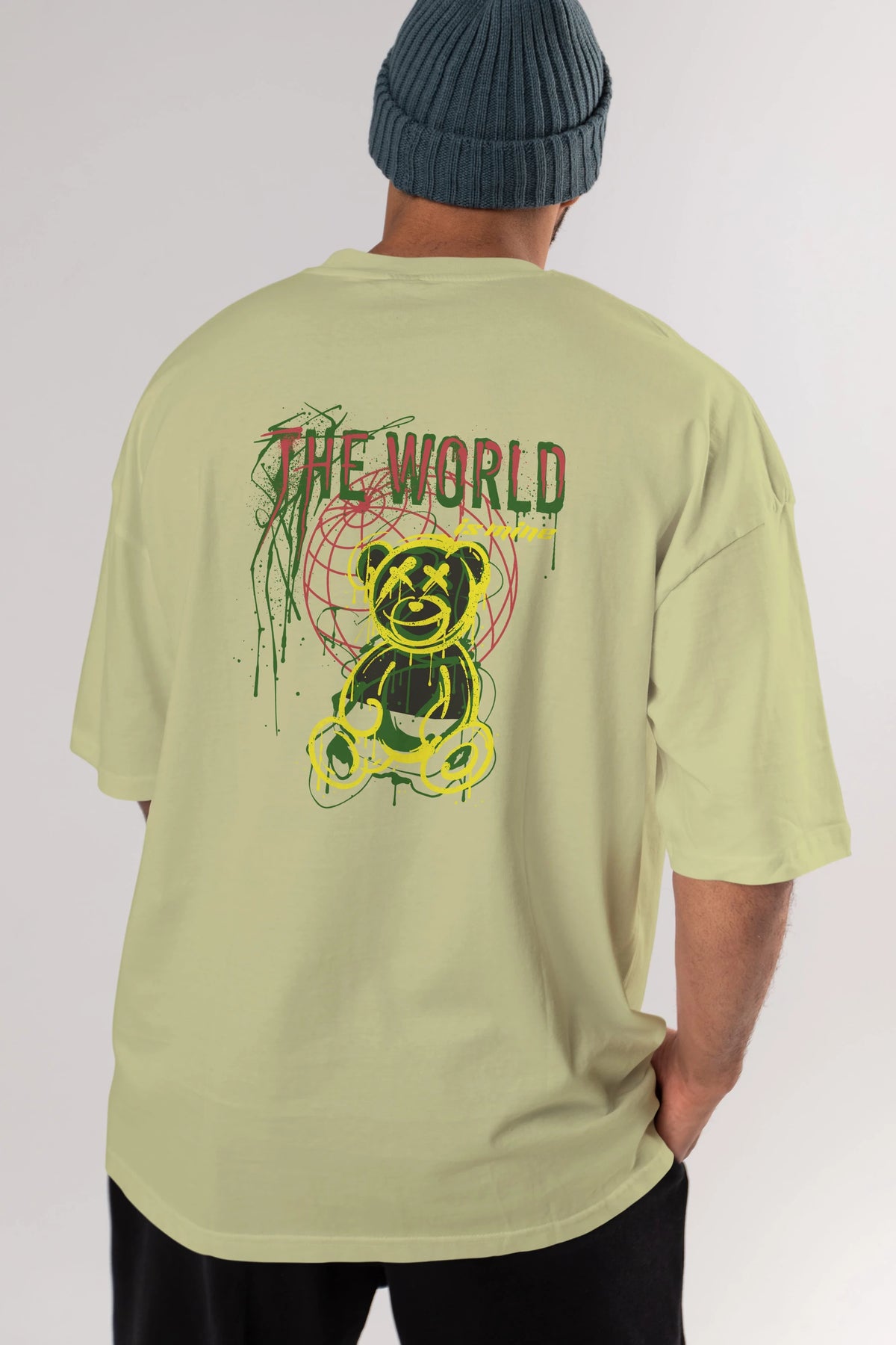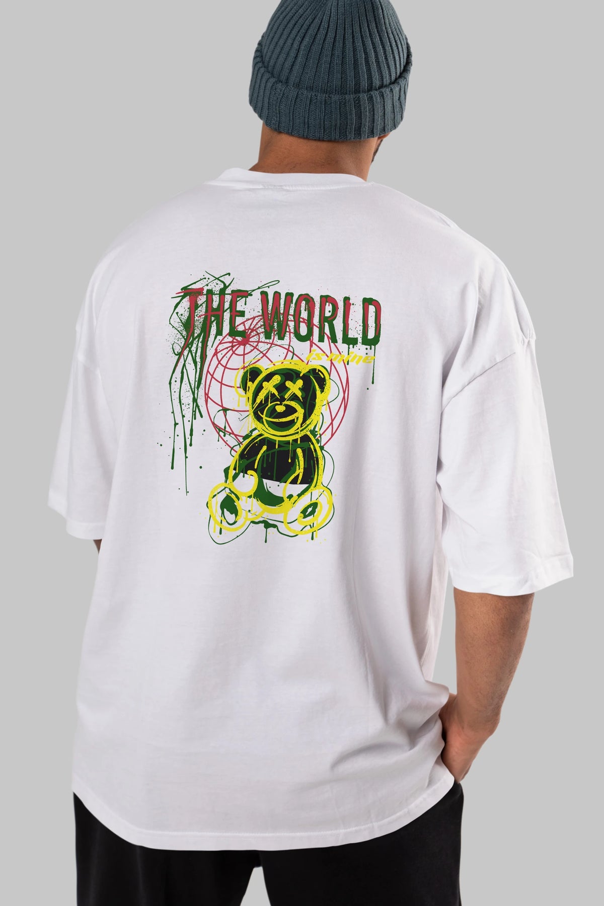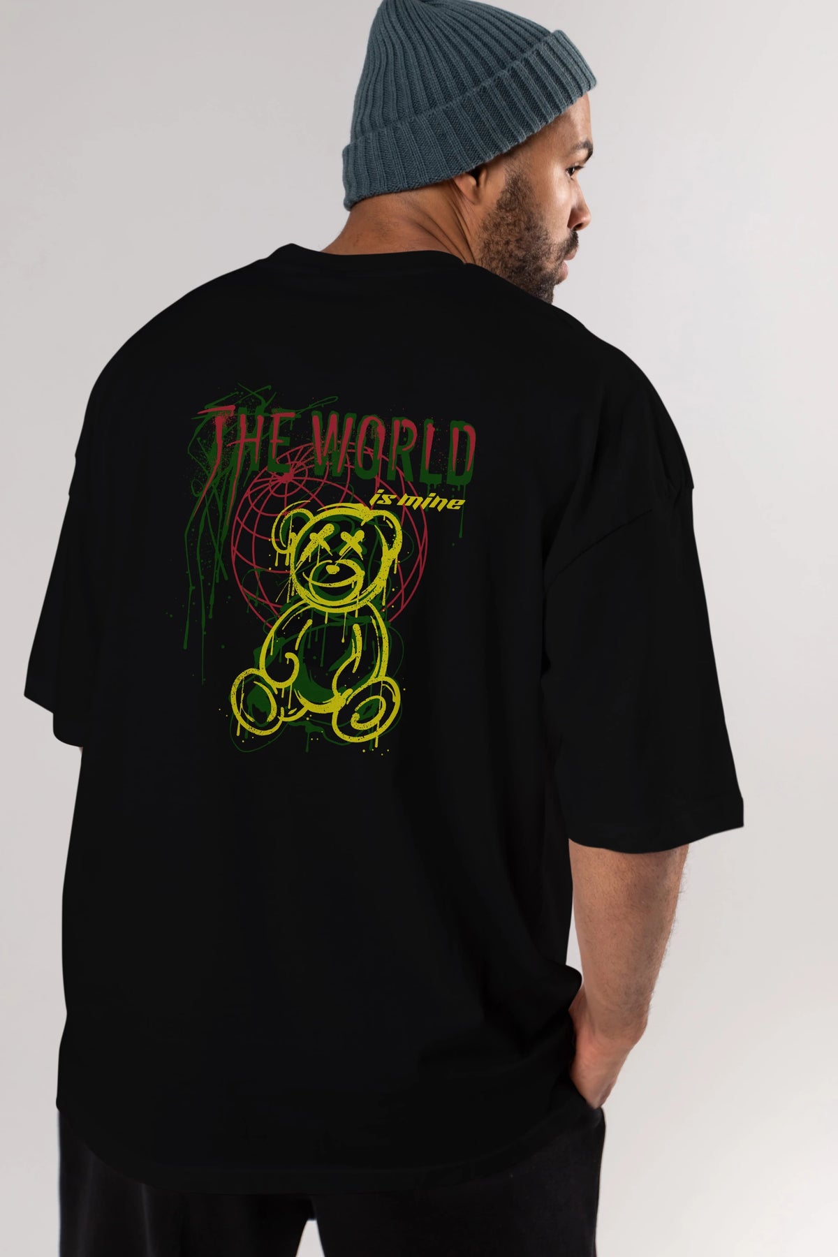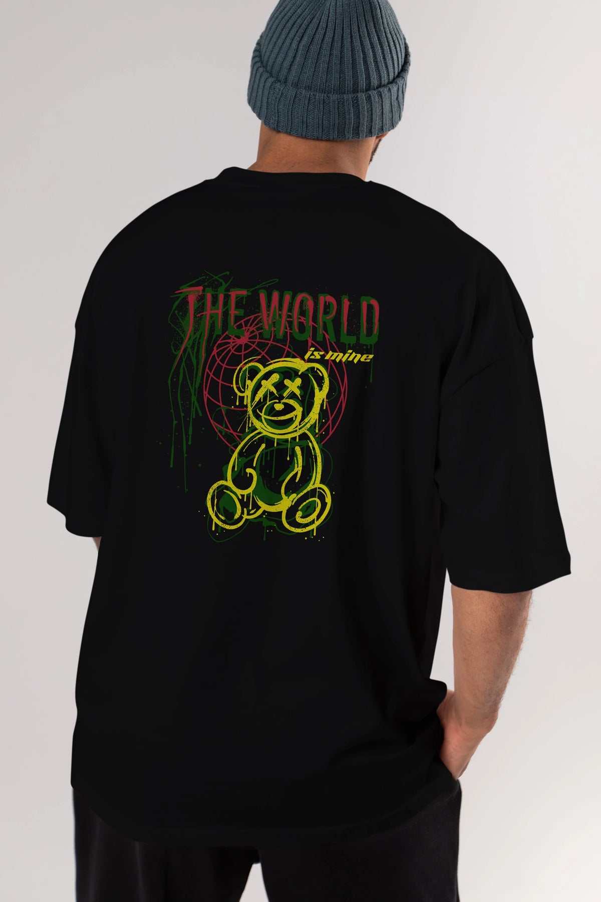 The World is Mine Bear Arka Baskılı Oversize t-shirt Erkek Kadın Unisex