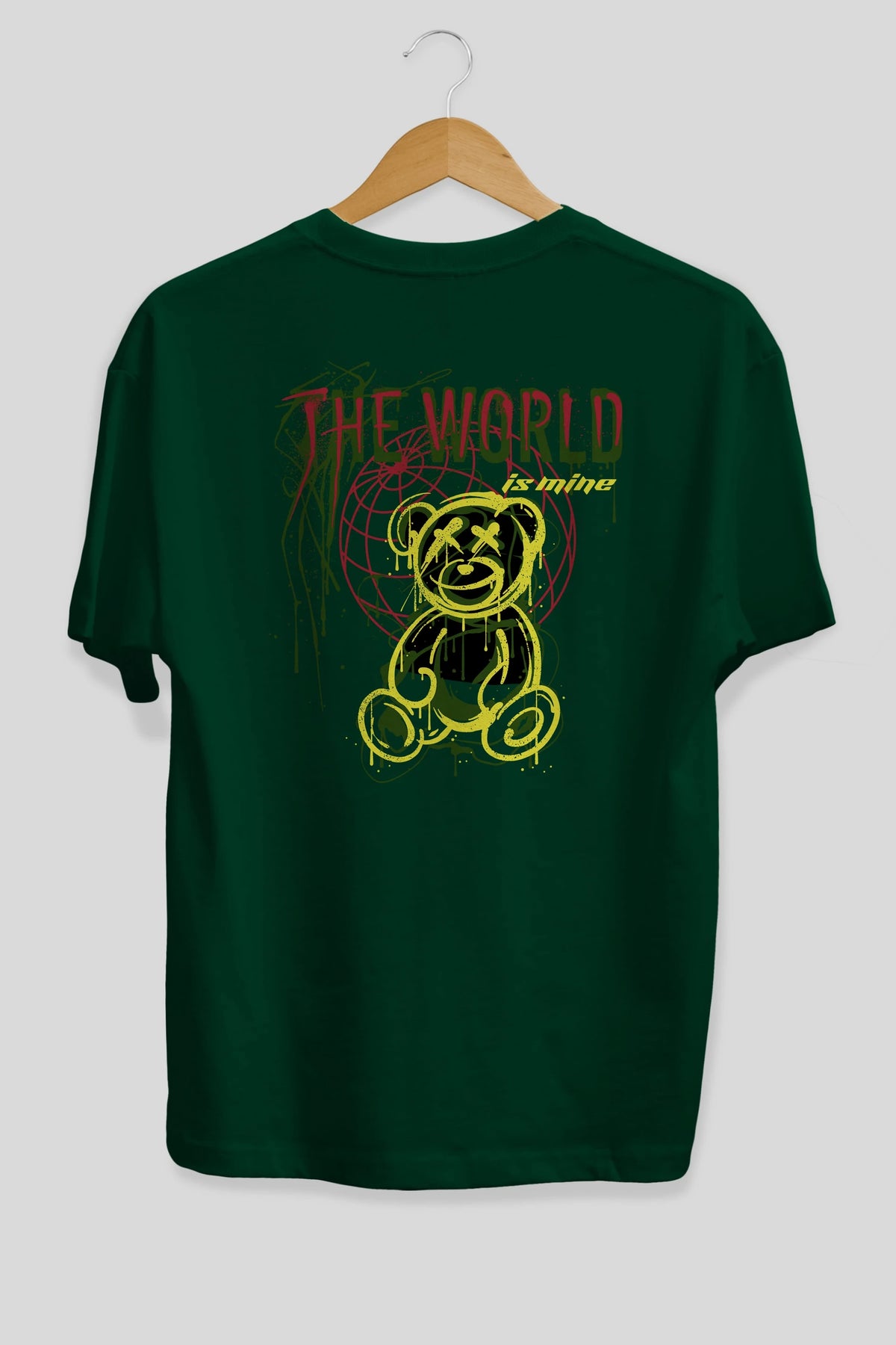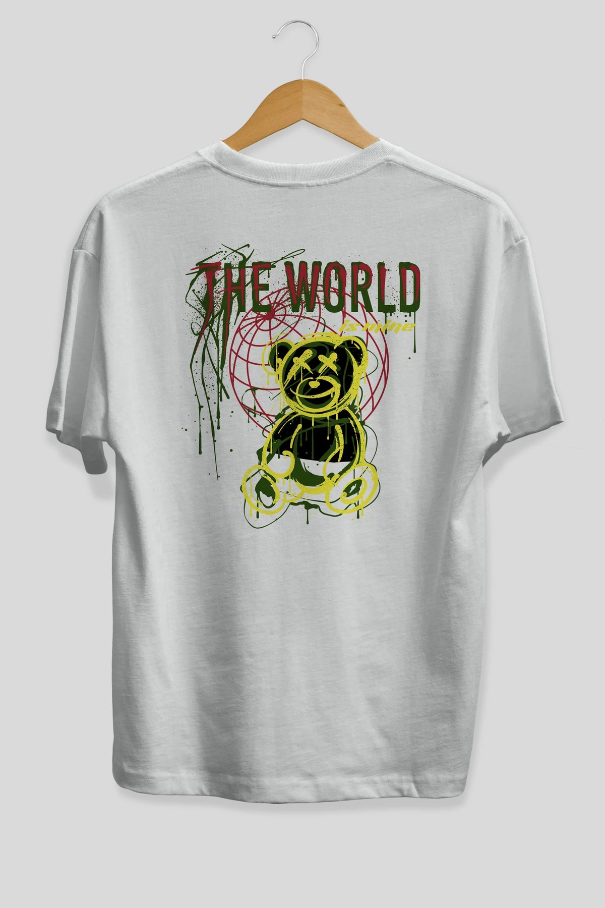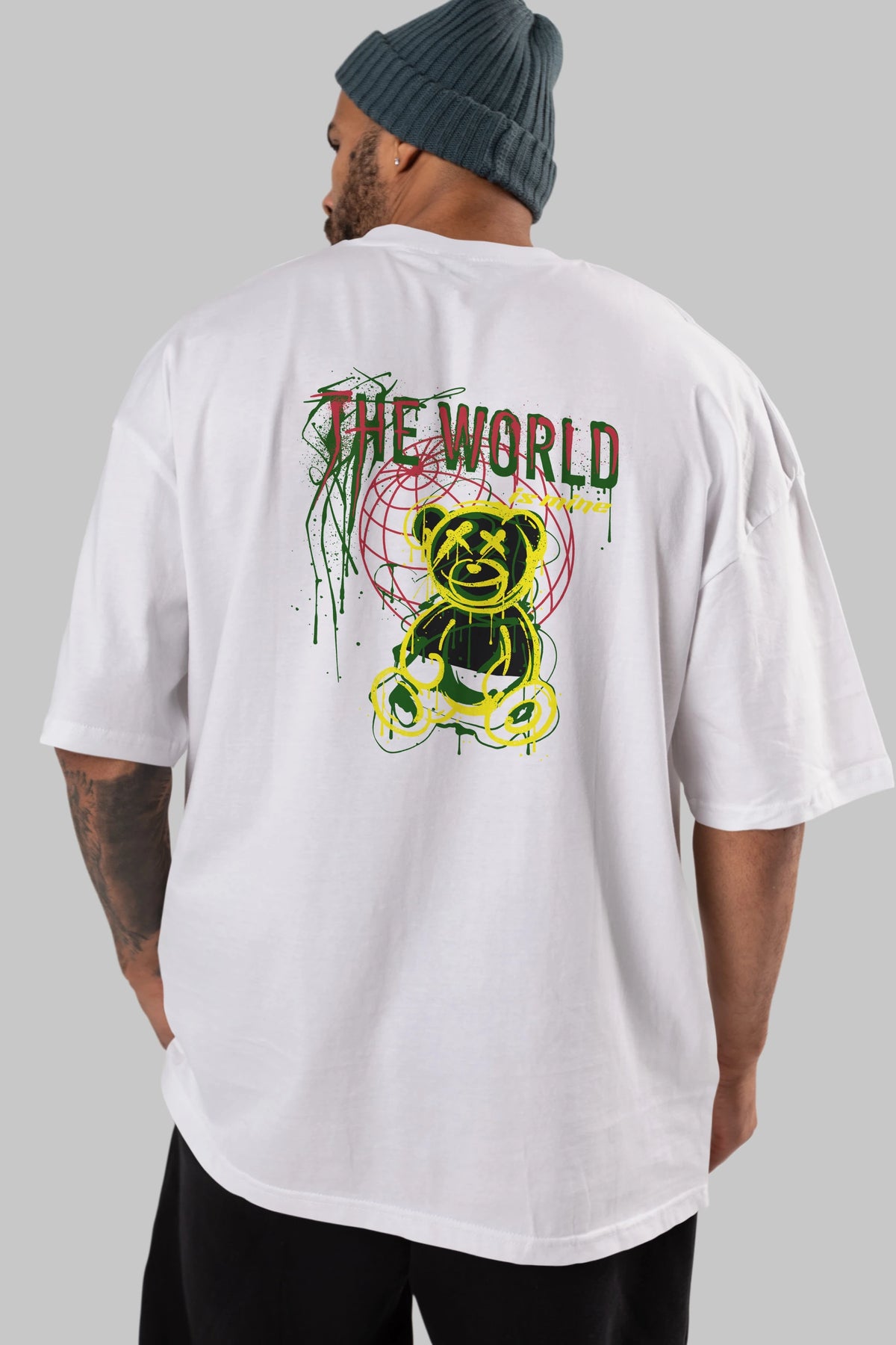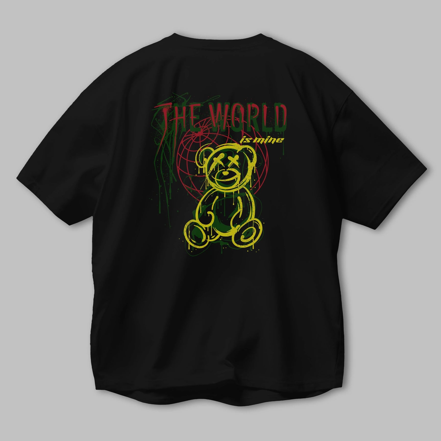 The World is Mine Bear Arka Baskılı Oversize t-shirt Erkek Kadın Unisex