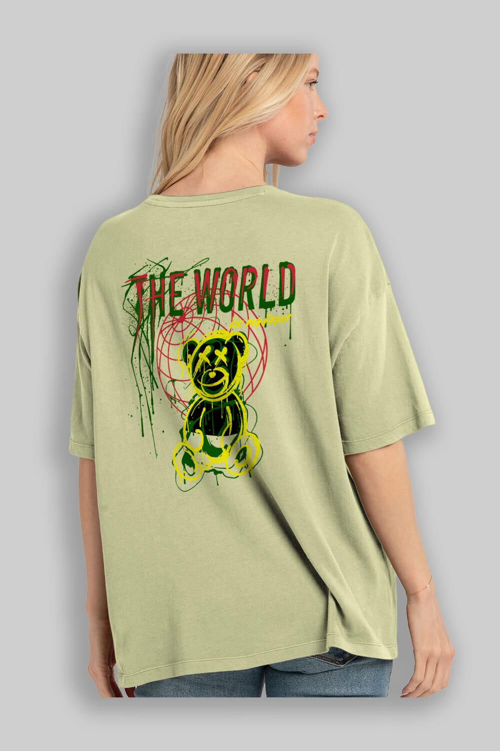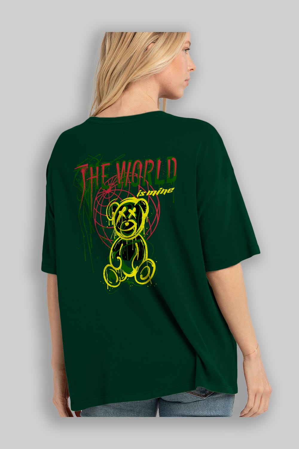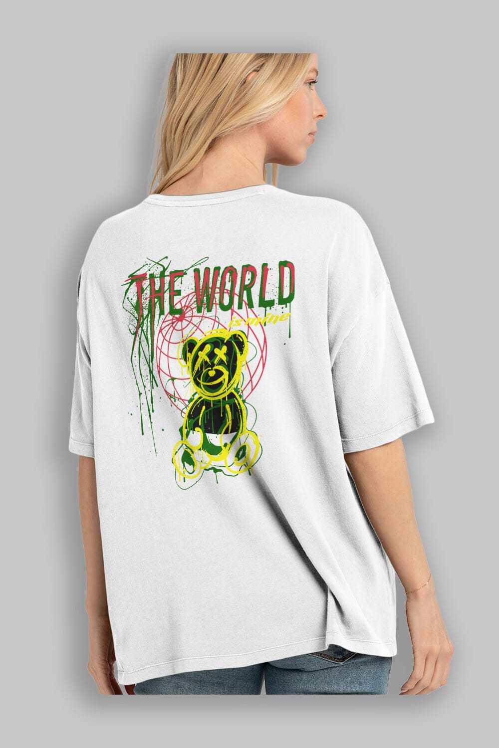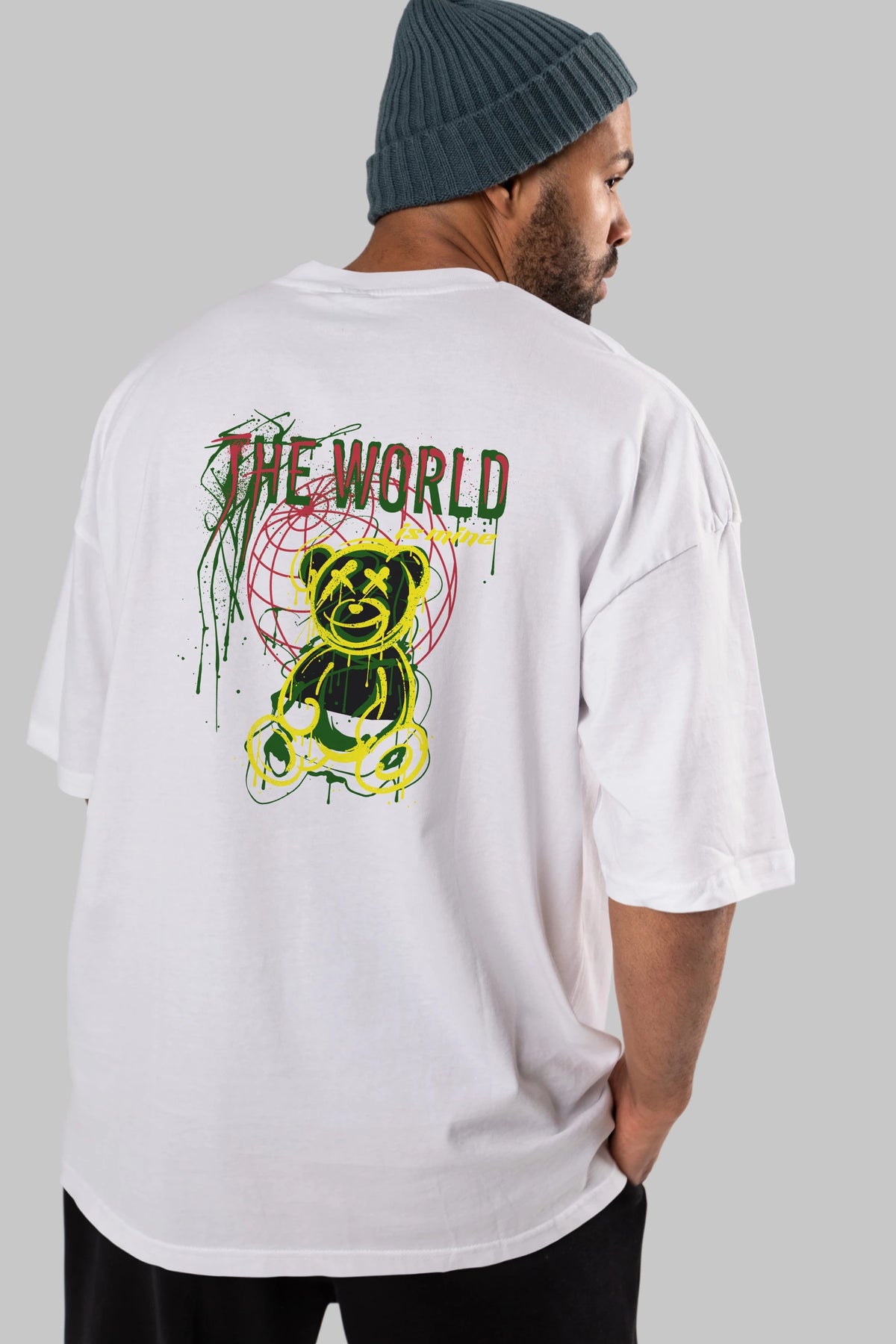 The World is Mine Bear Arka Baskılı Oversize t-shirt Erkek Kadın Unisex
