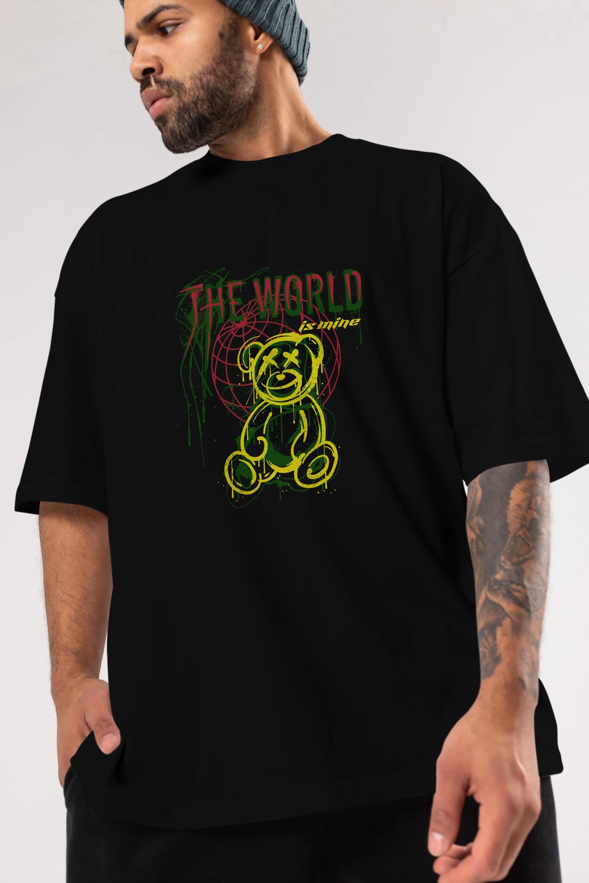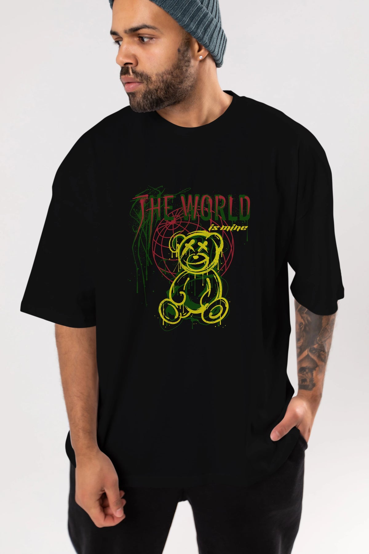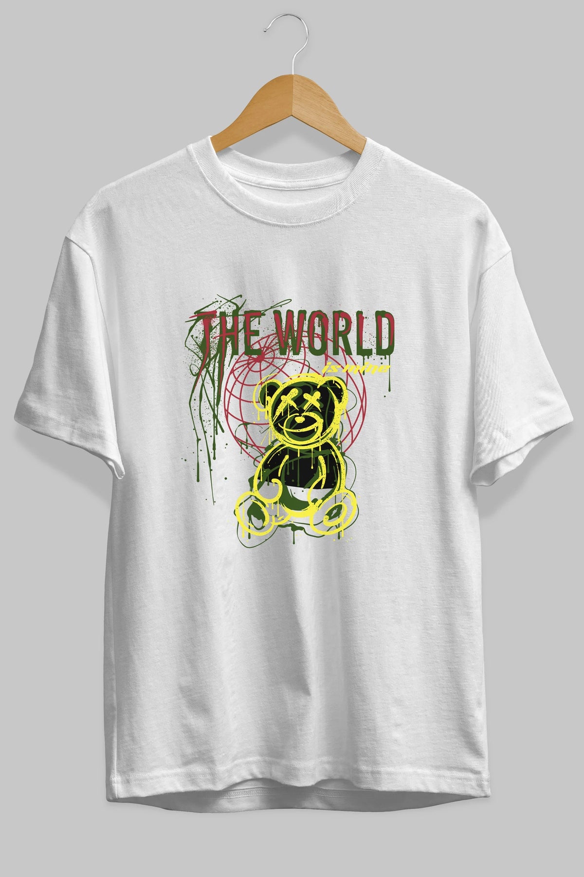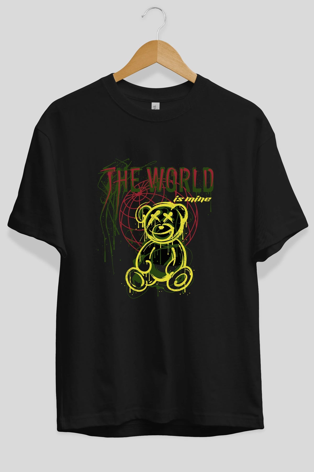 The World is Mine Bear Ön Baskılı Oversize t-shirt Erkek Kadın Unisex