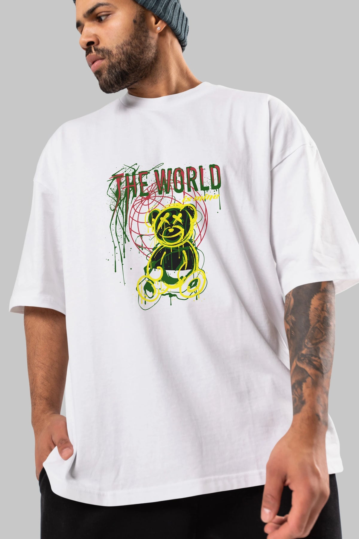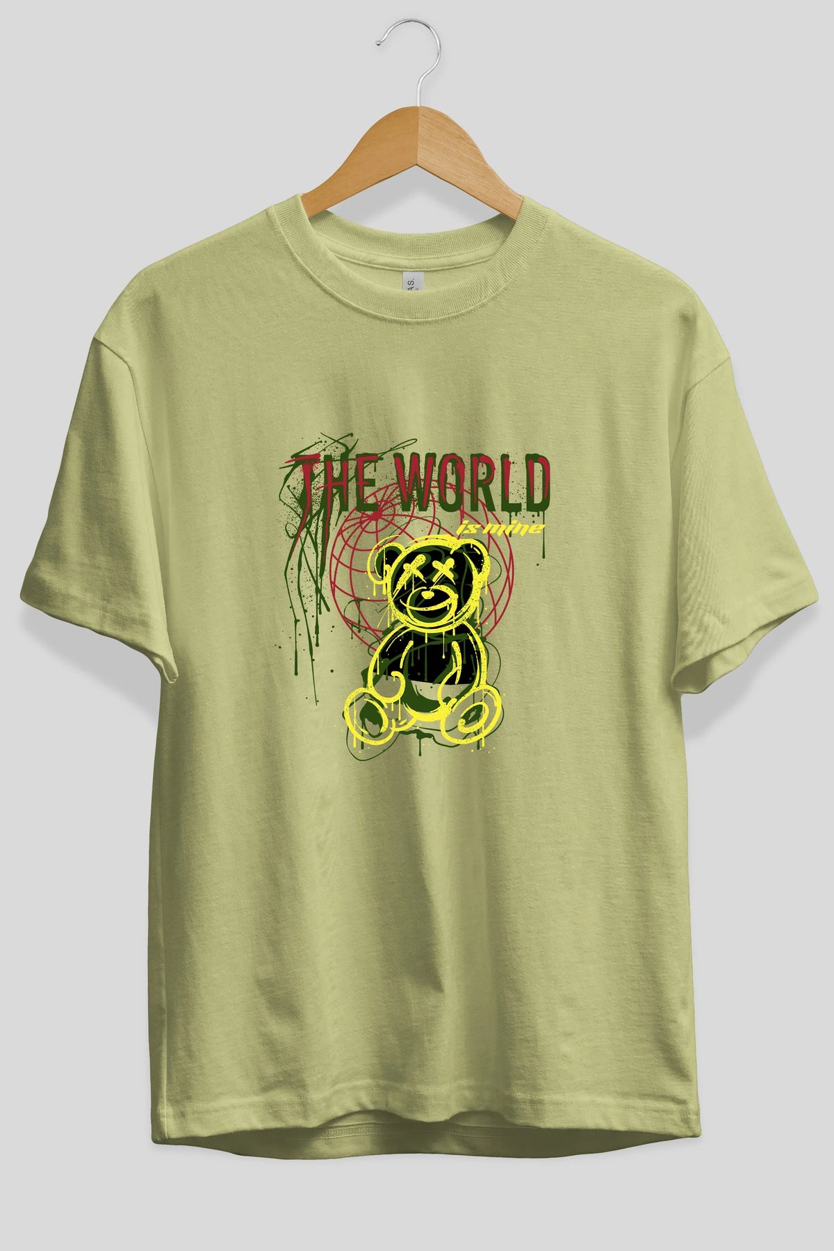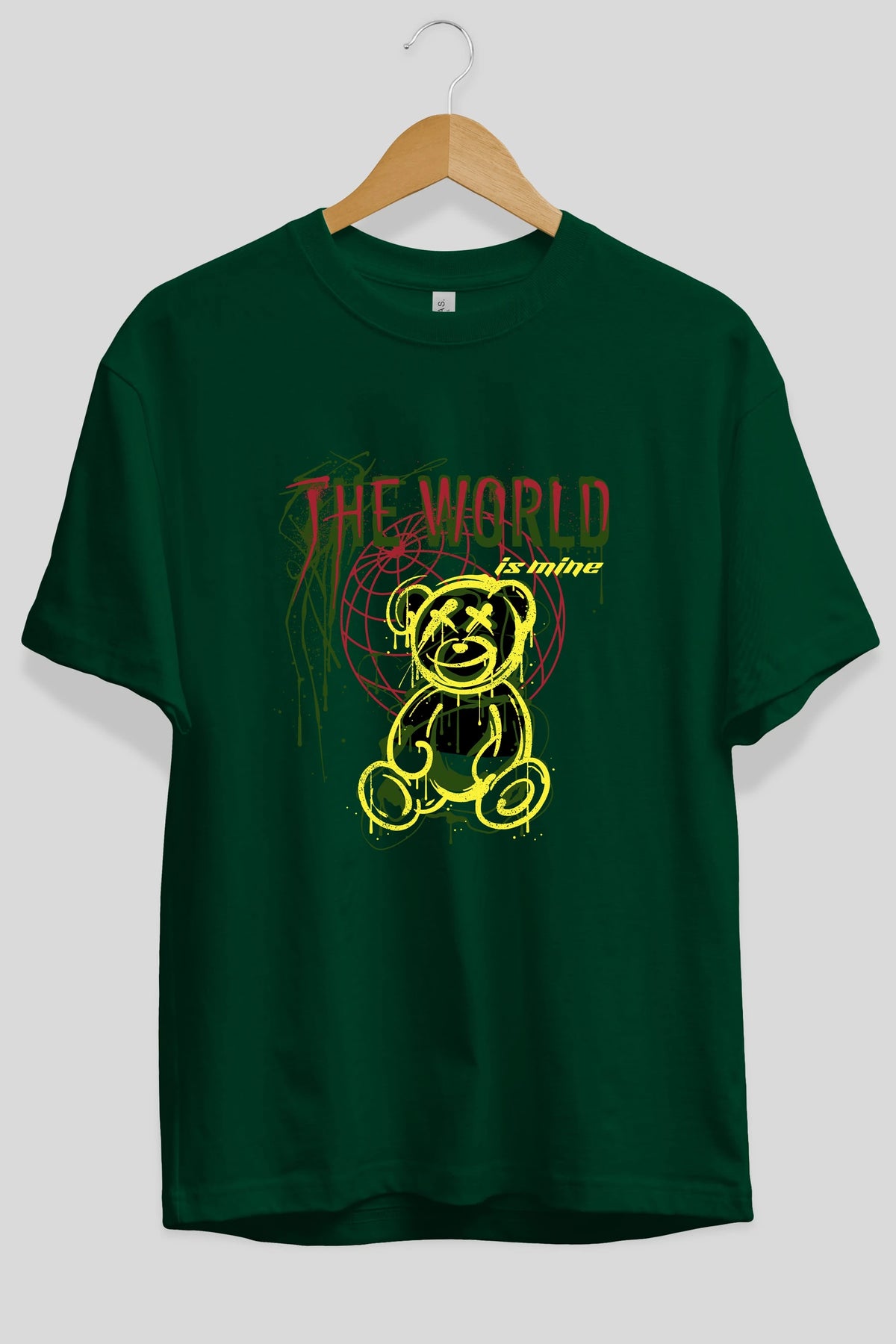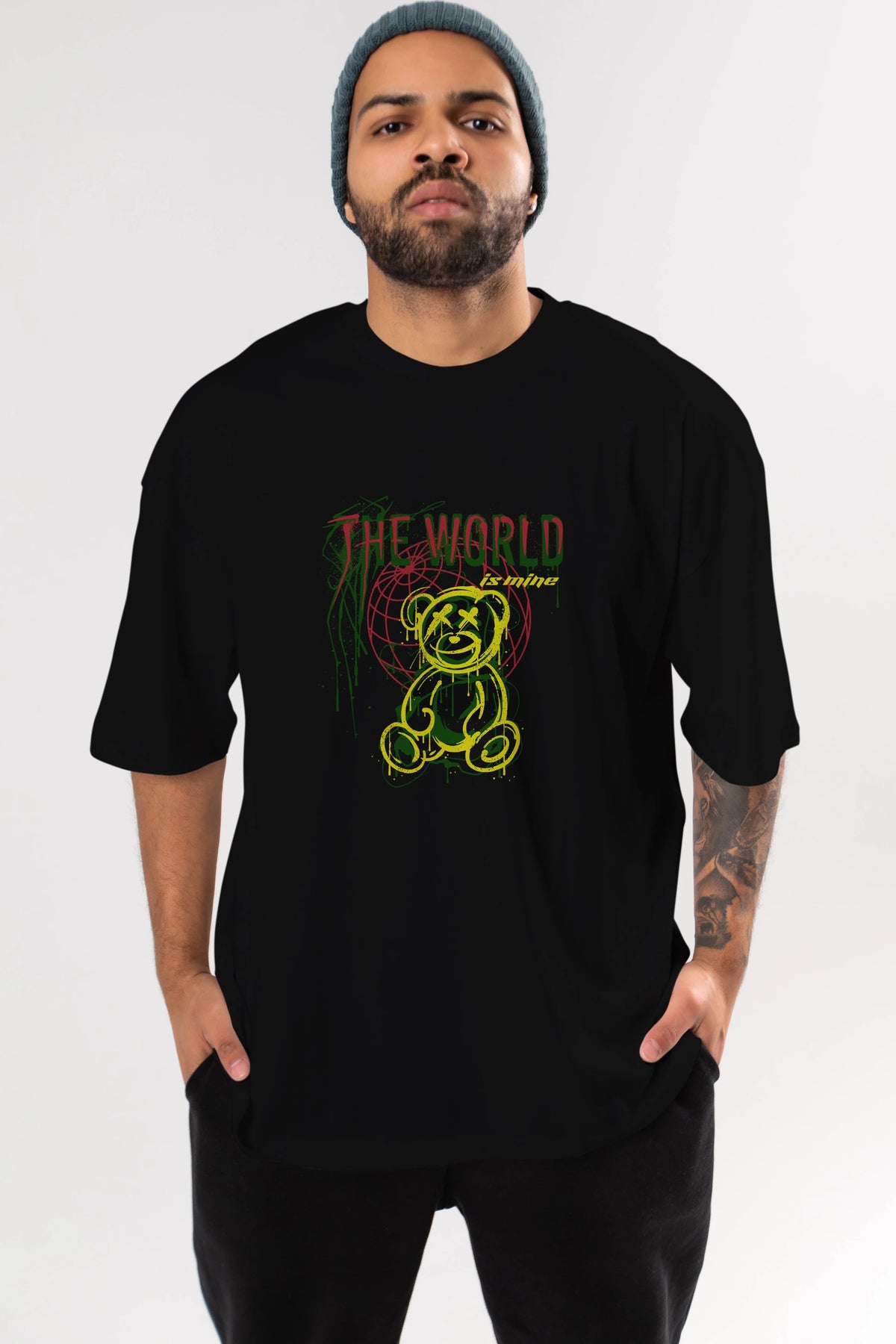 The World is Mine Bear Ön Baskılı Oversize t-shirt Erkek Kadın Unisex