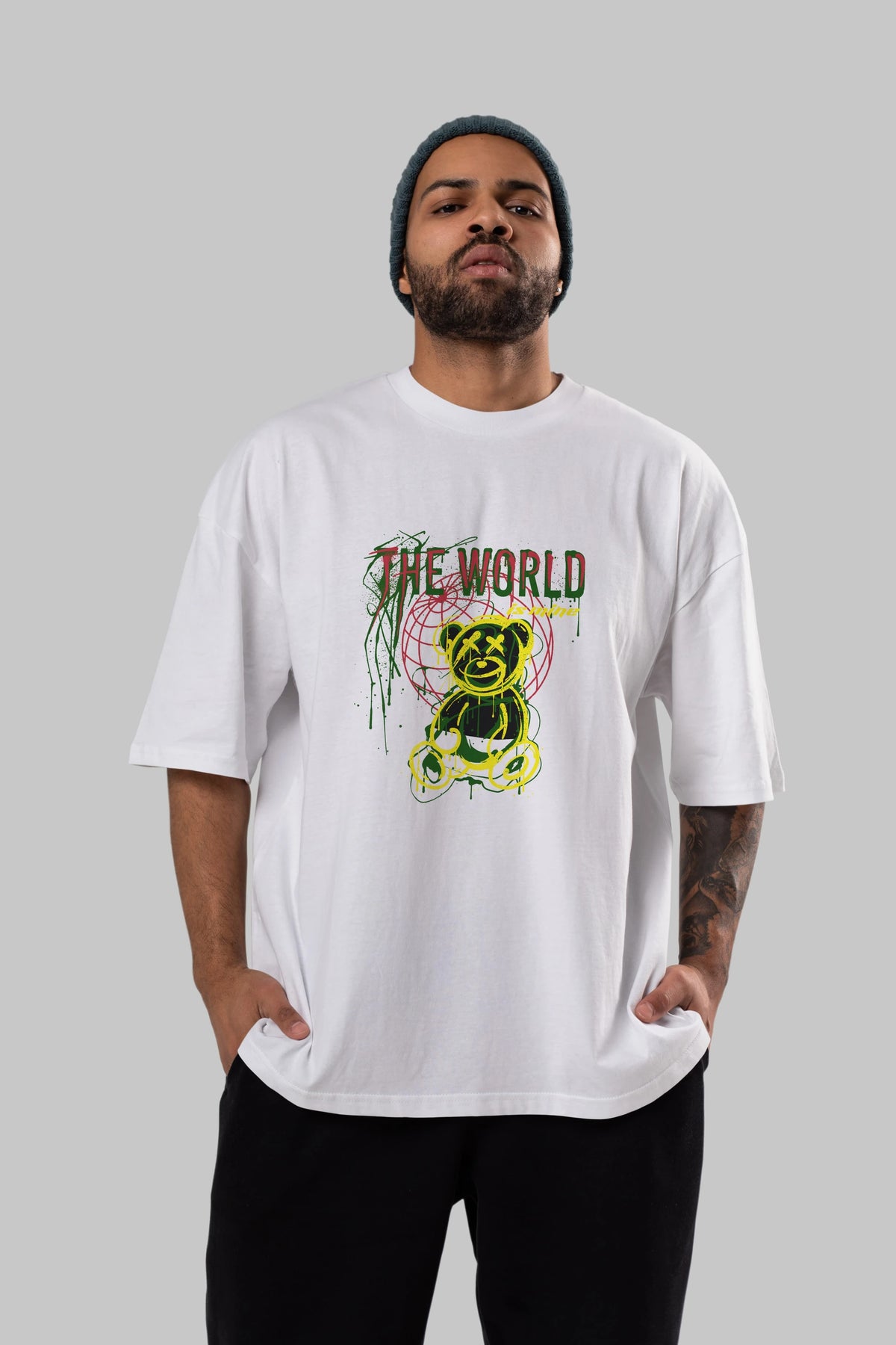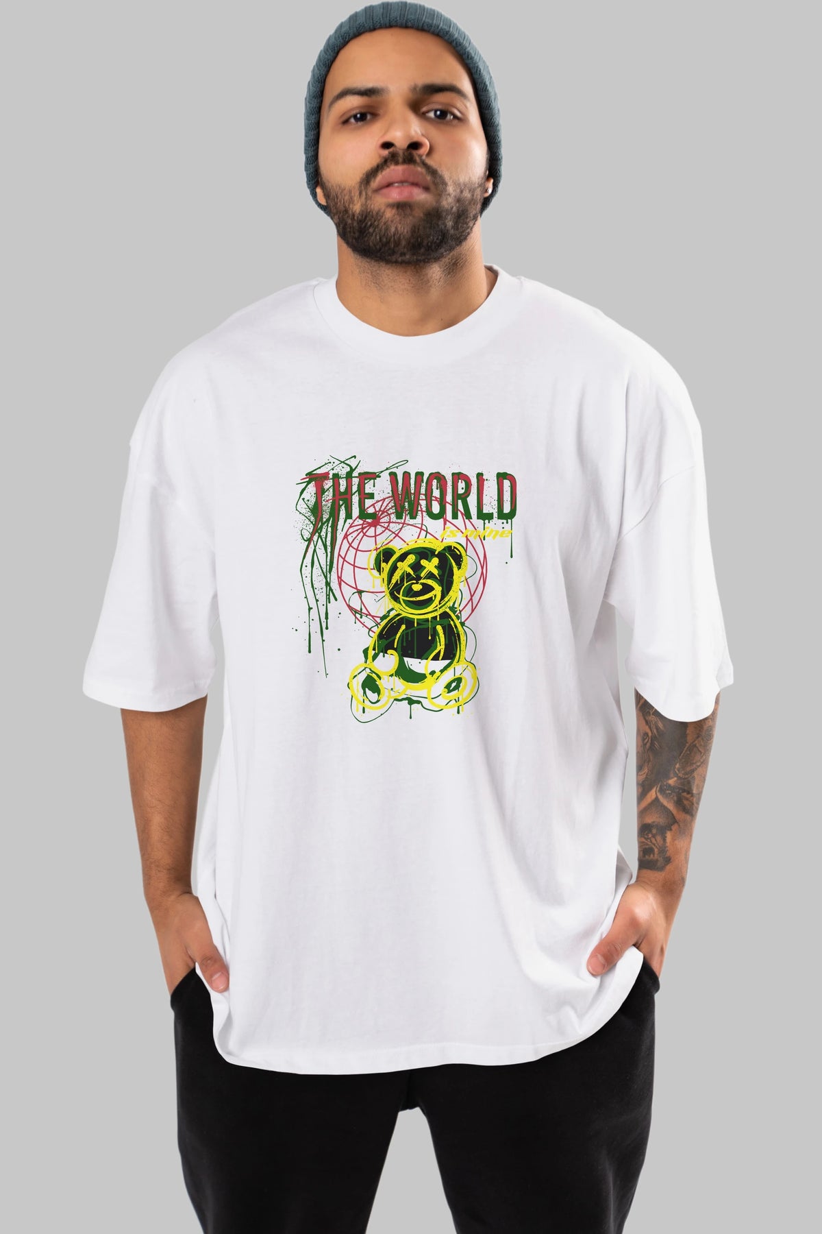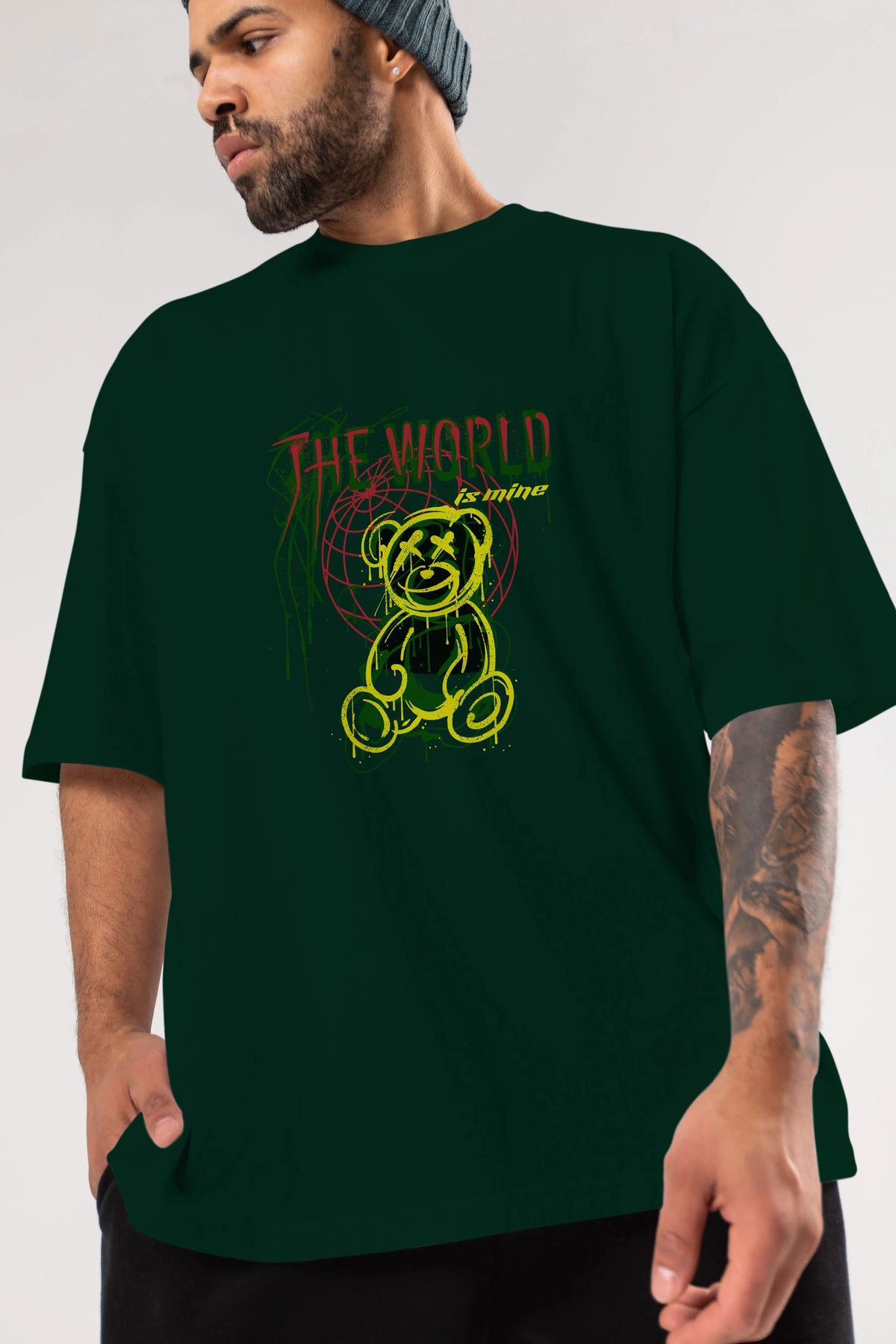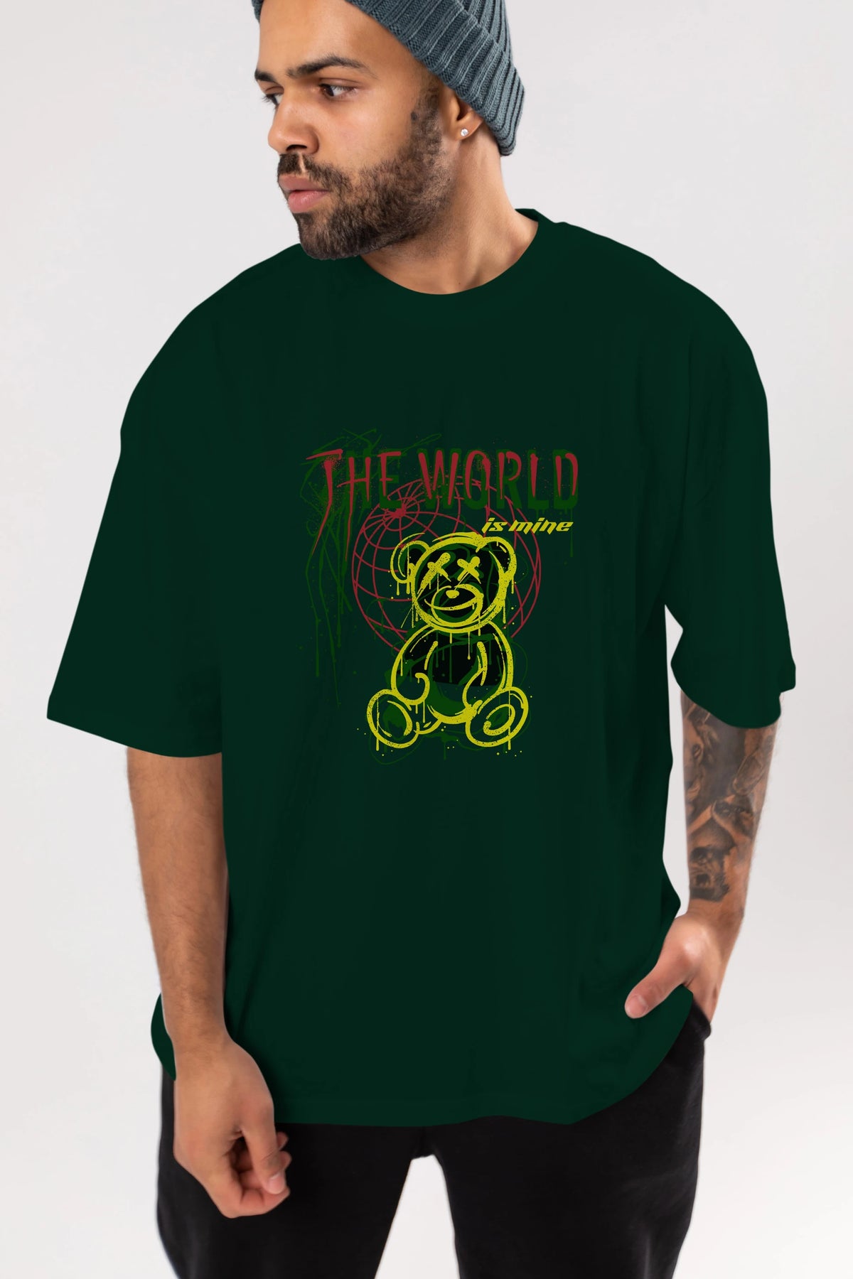 The World is Mine Bear Ön Baskılı Oversize t-shirt Erkek Kadın Unisex