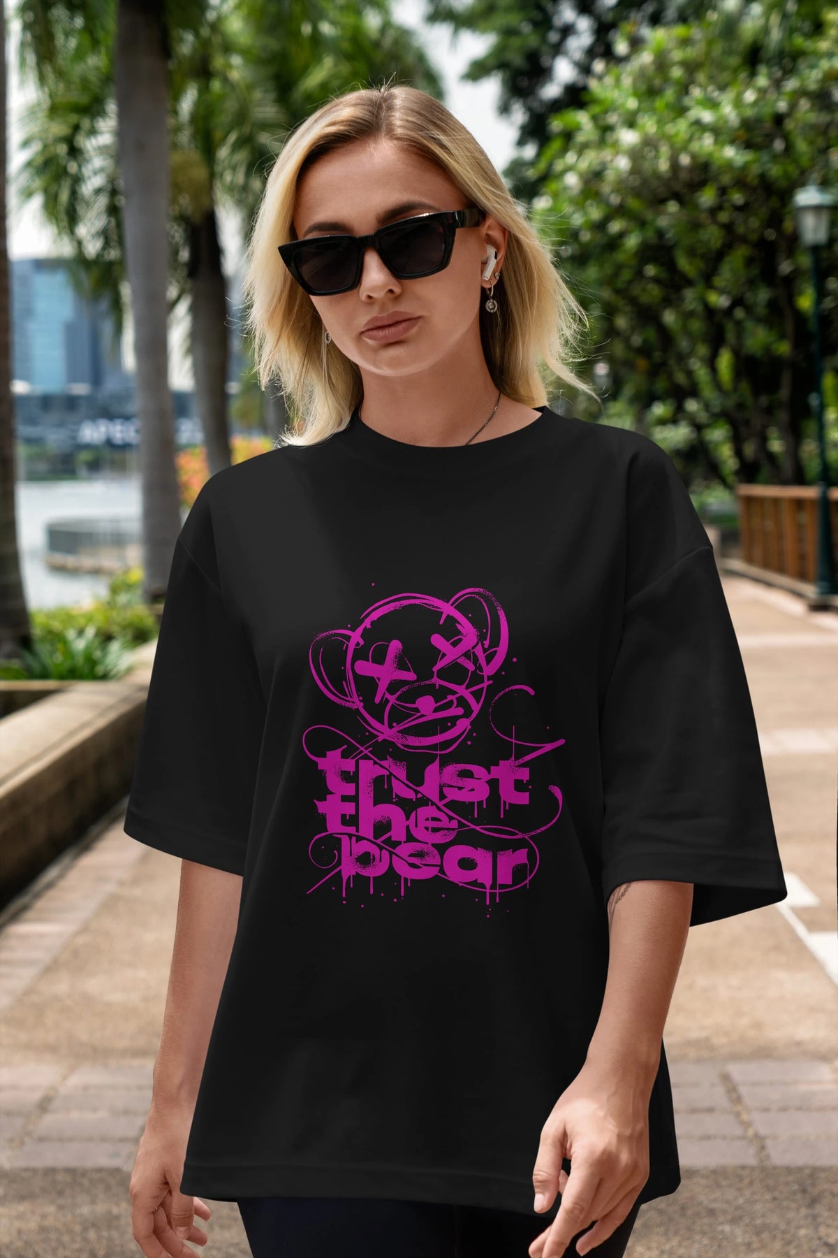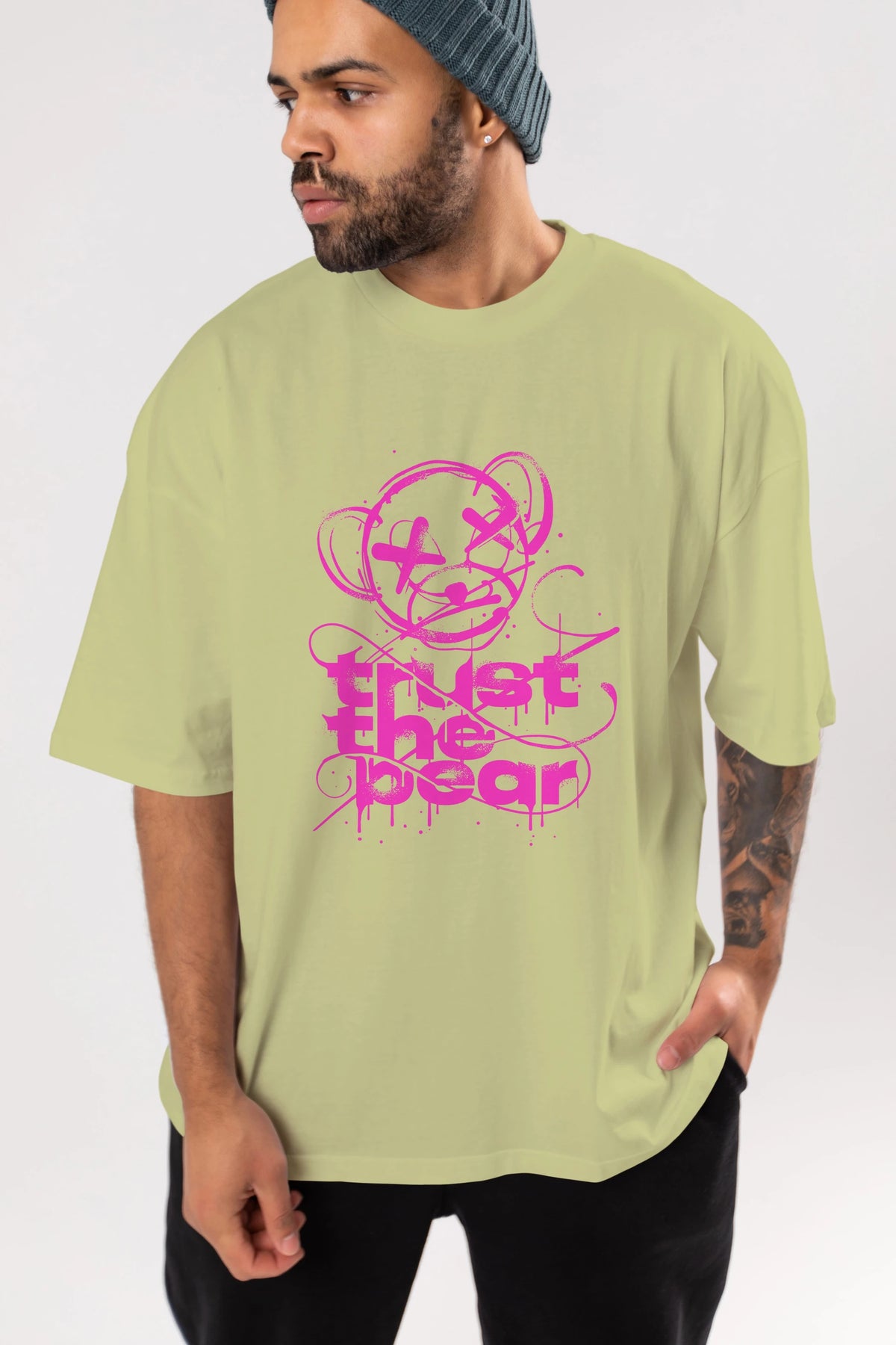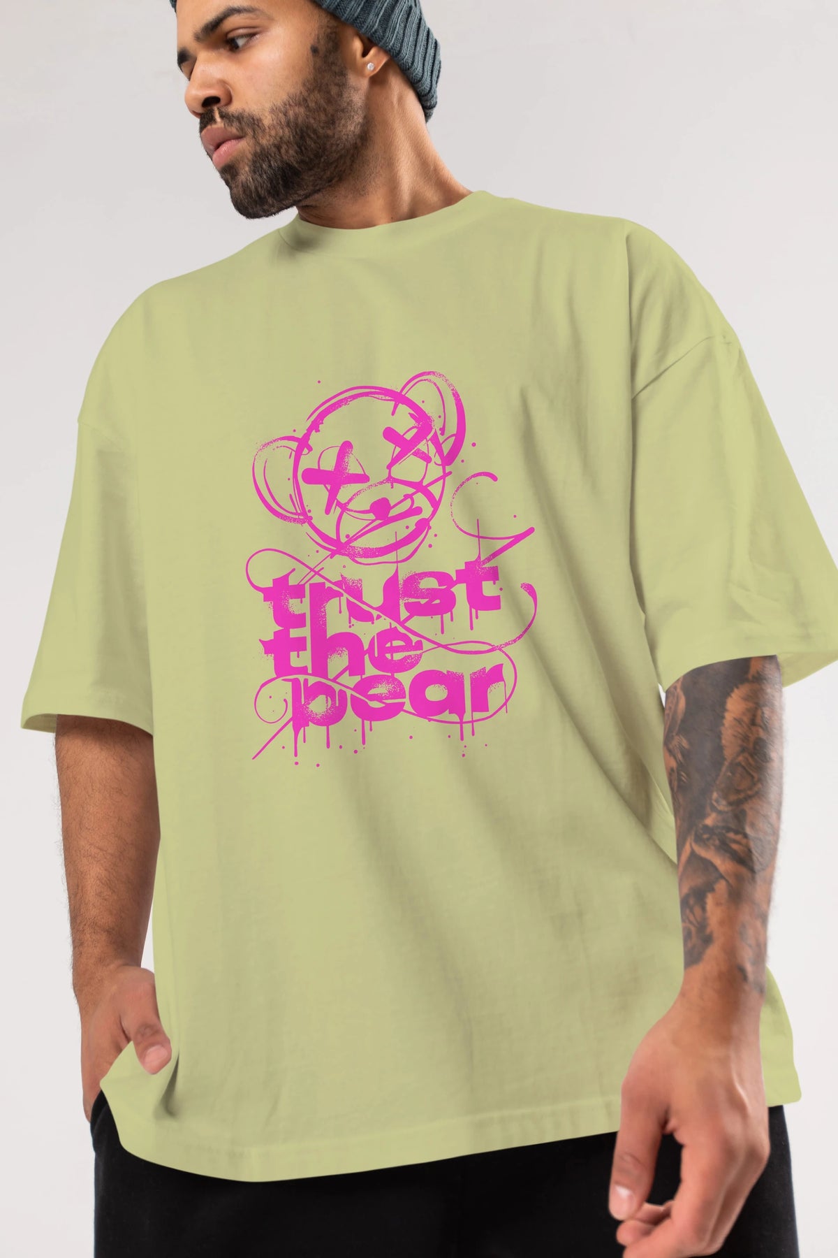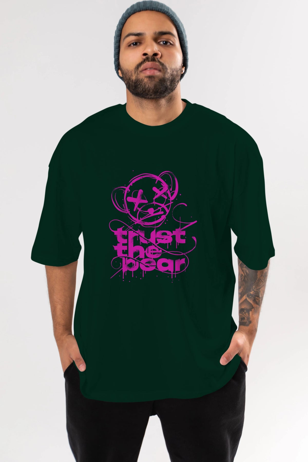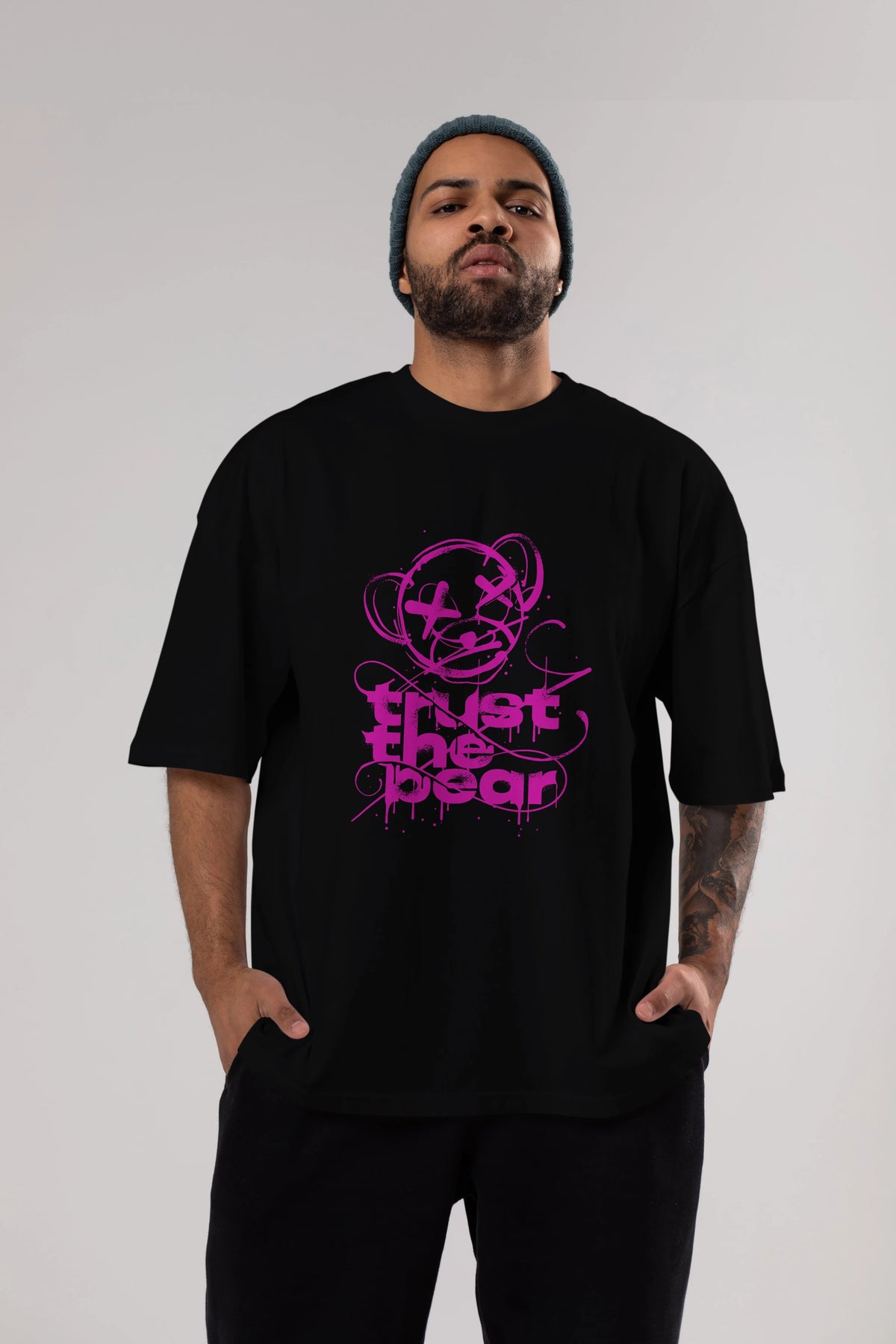 Trust The Bear 2 Ön Baskılı Oversize t-shirt Erkek Kadın Unisex