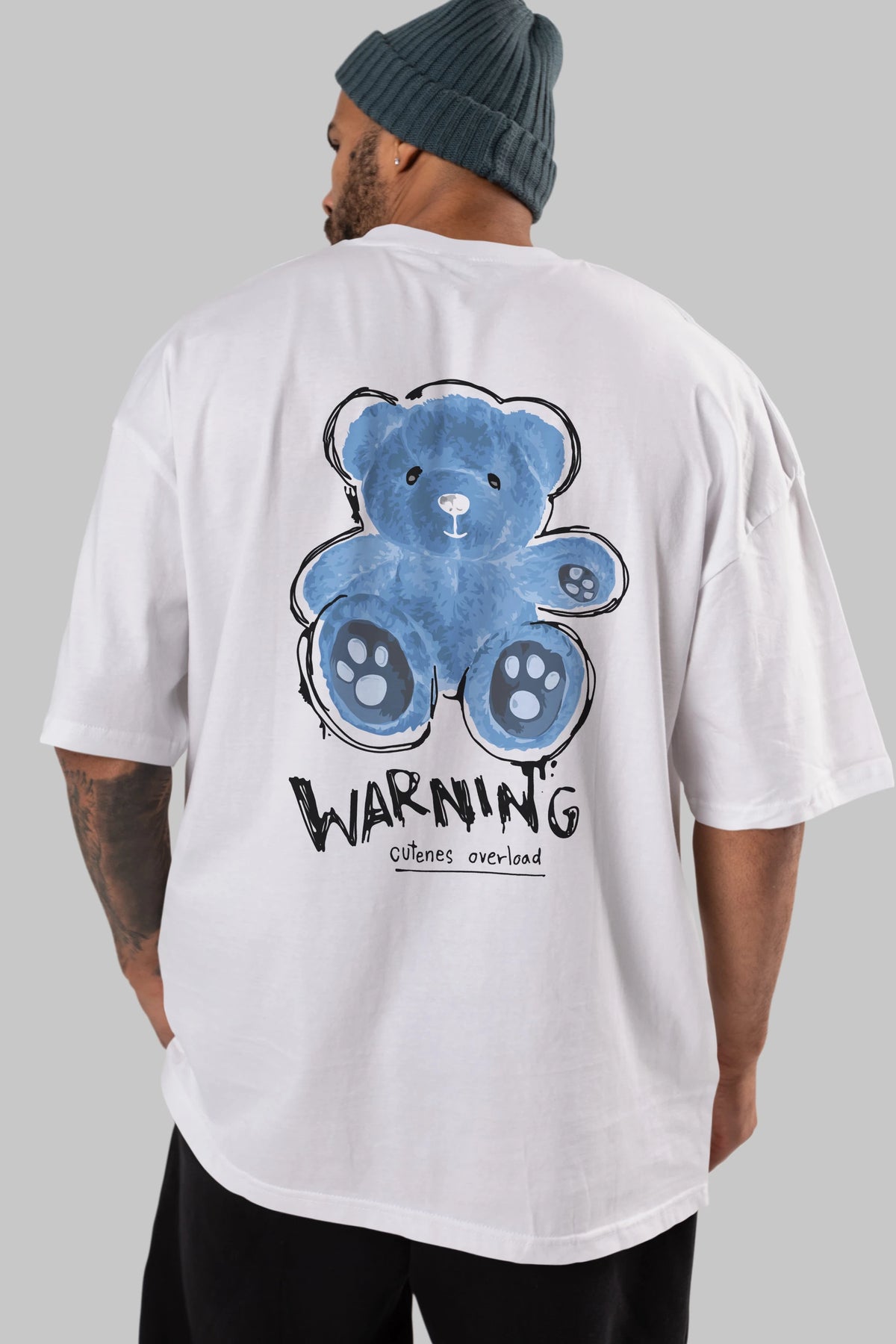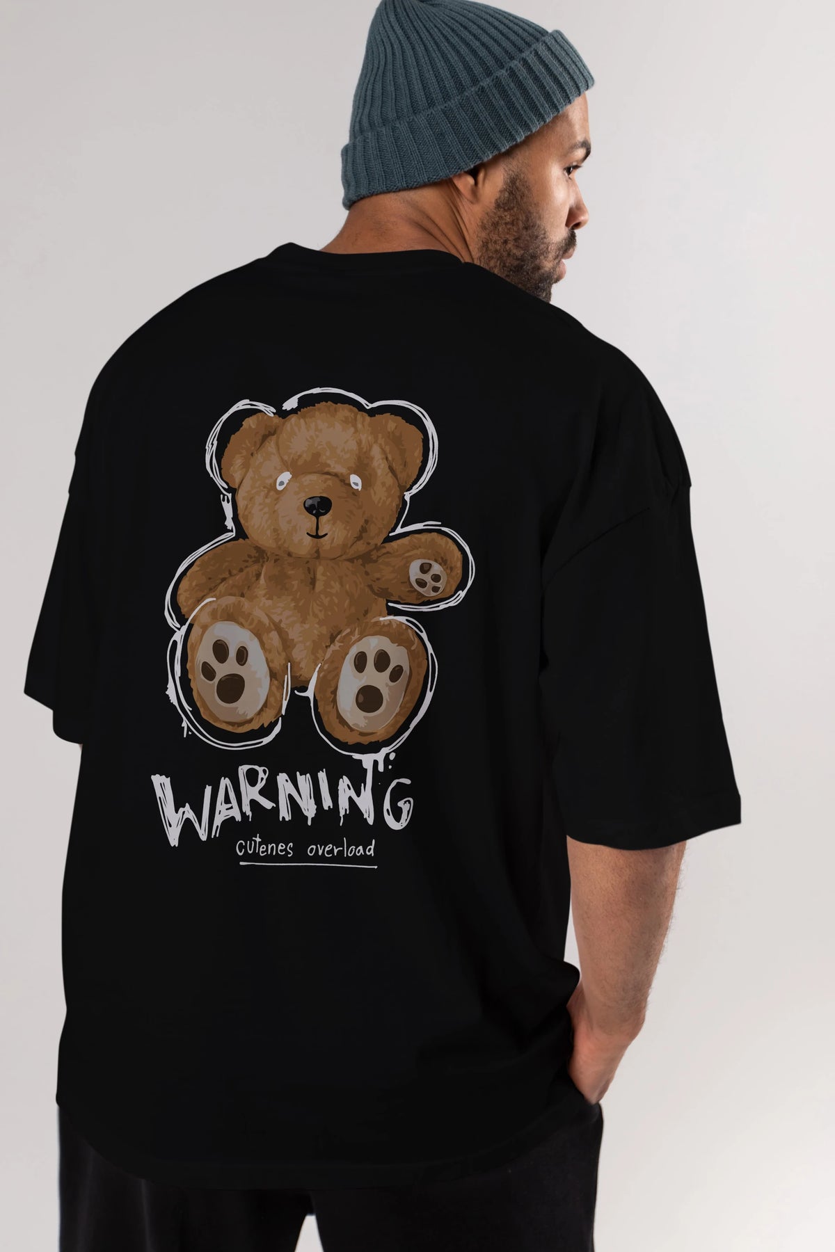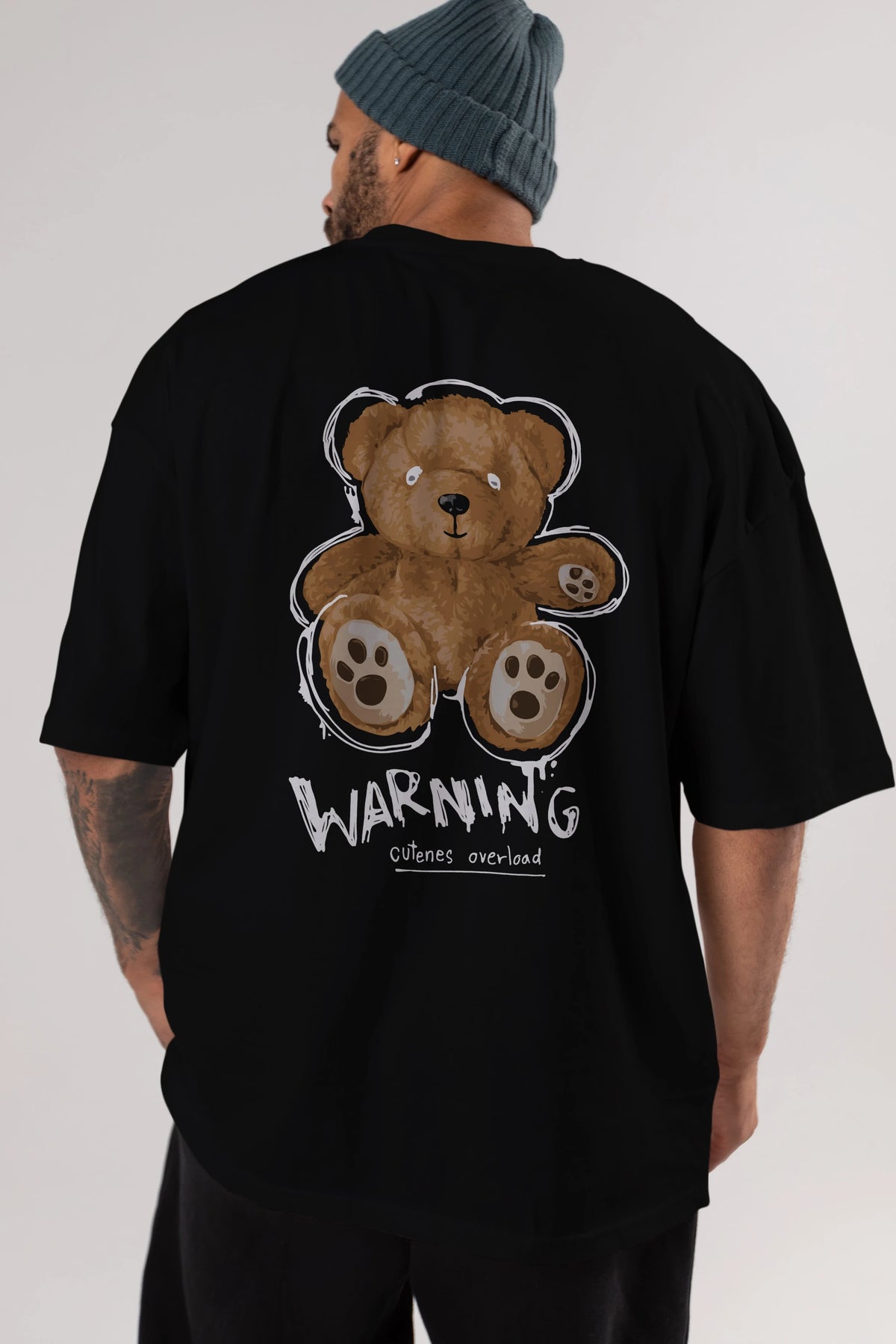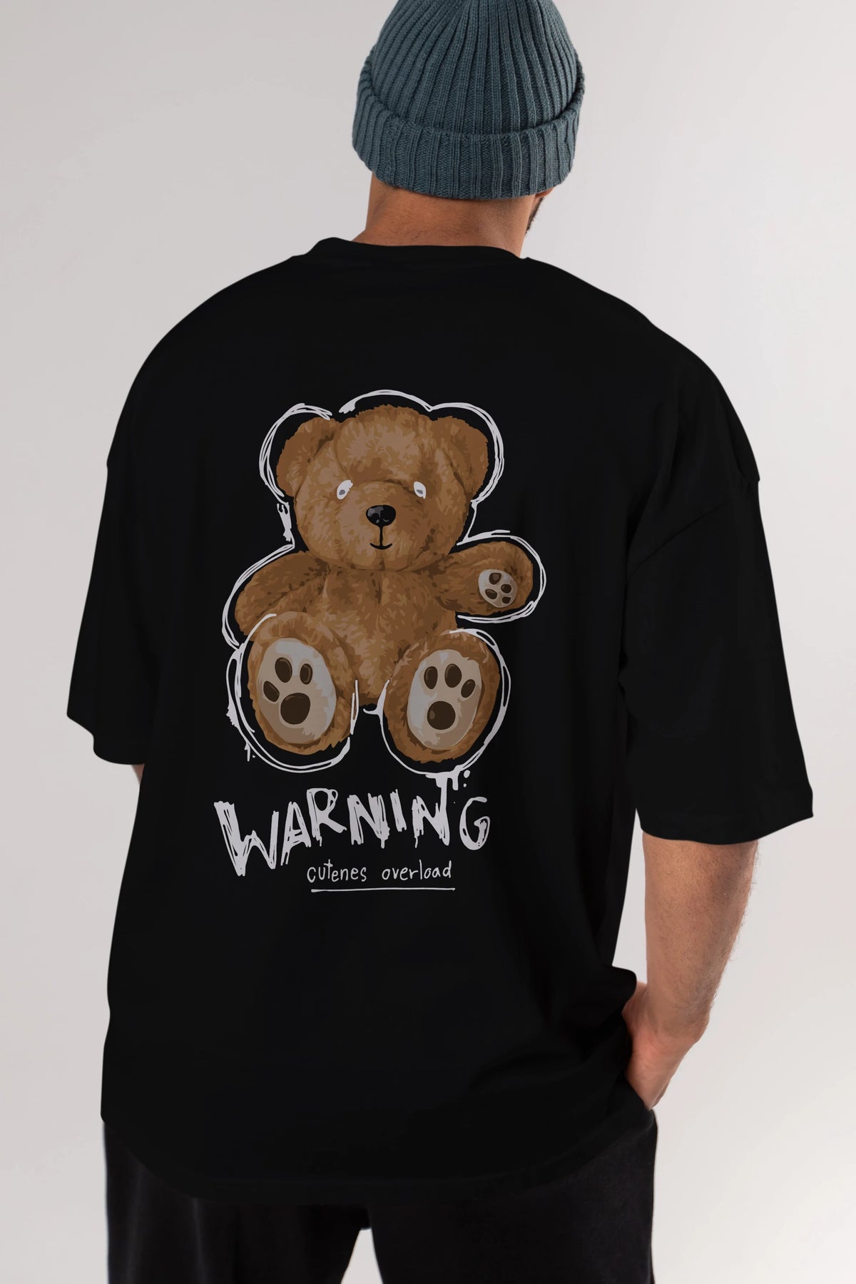 Warning Cuteness Bear Arka Baskılı Oversize t-shirt Erkek Kadın Unisex