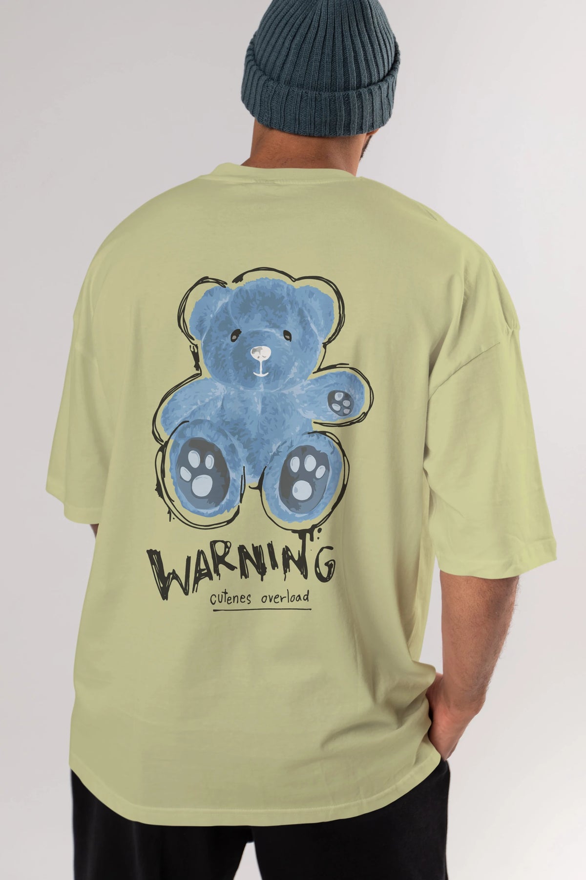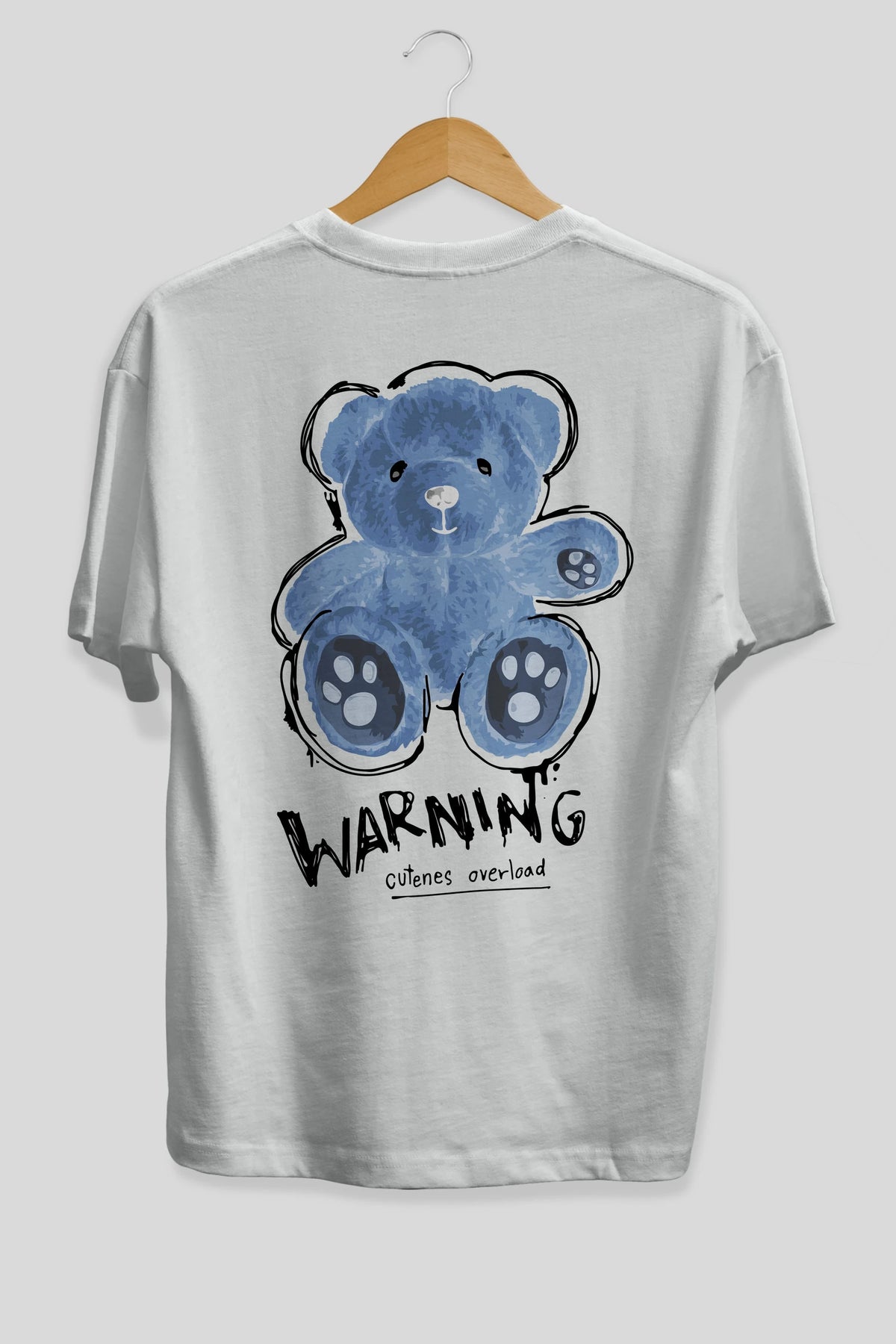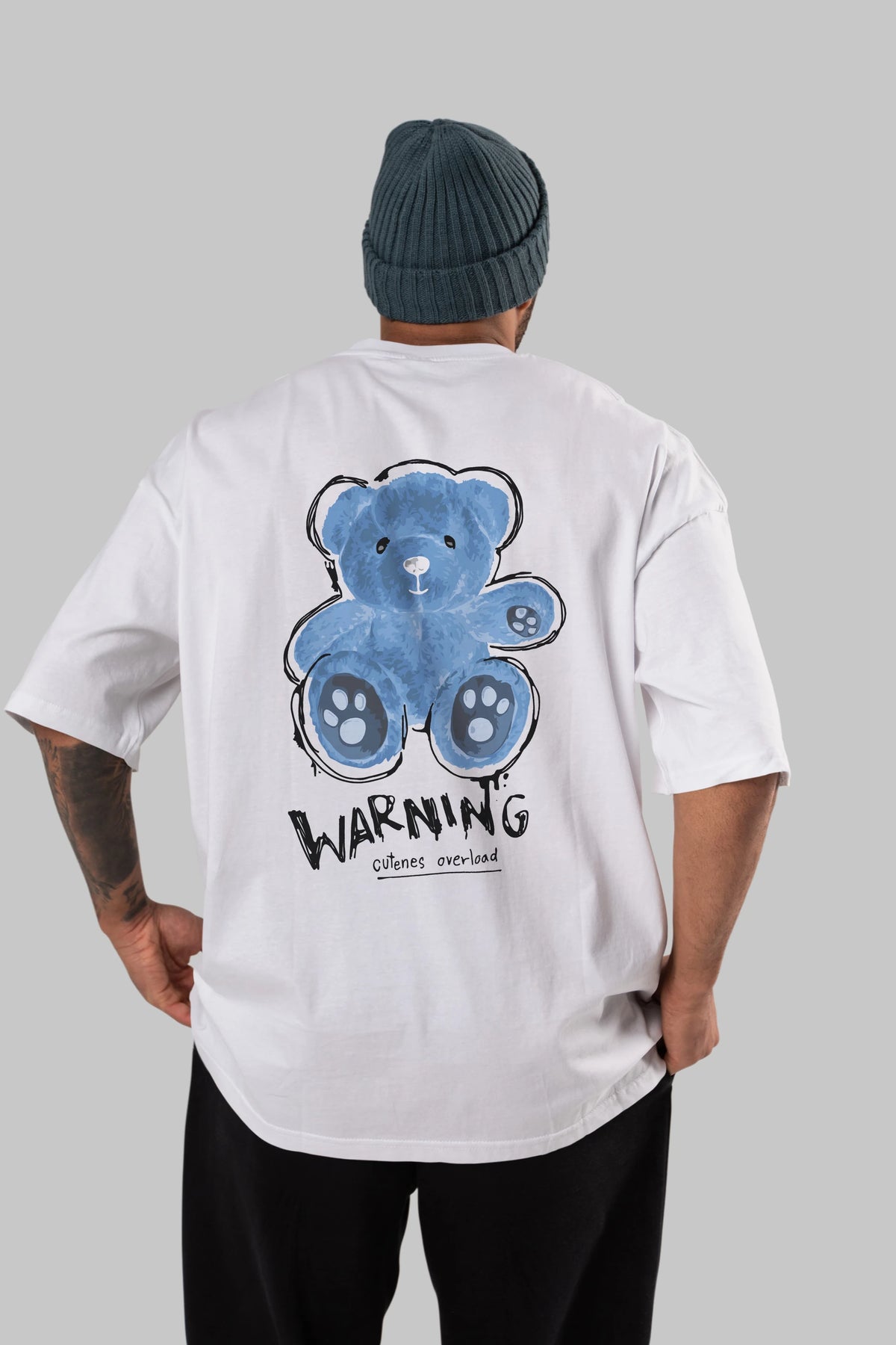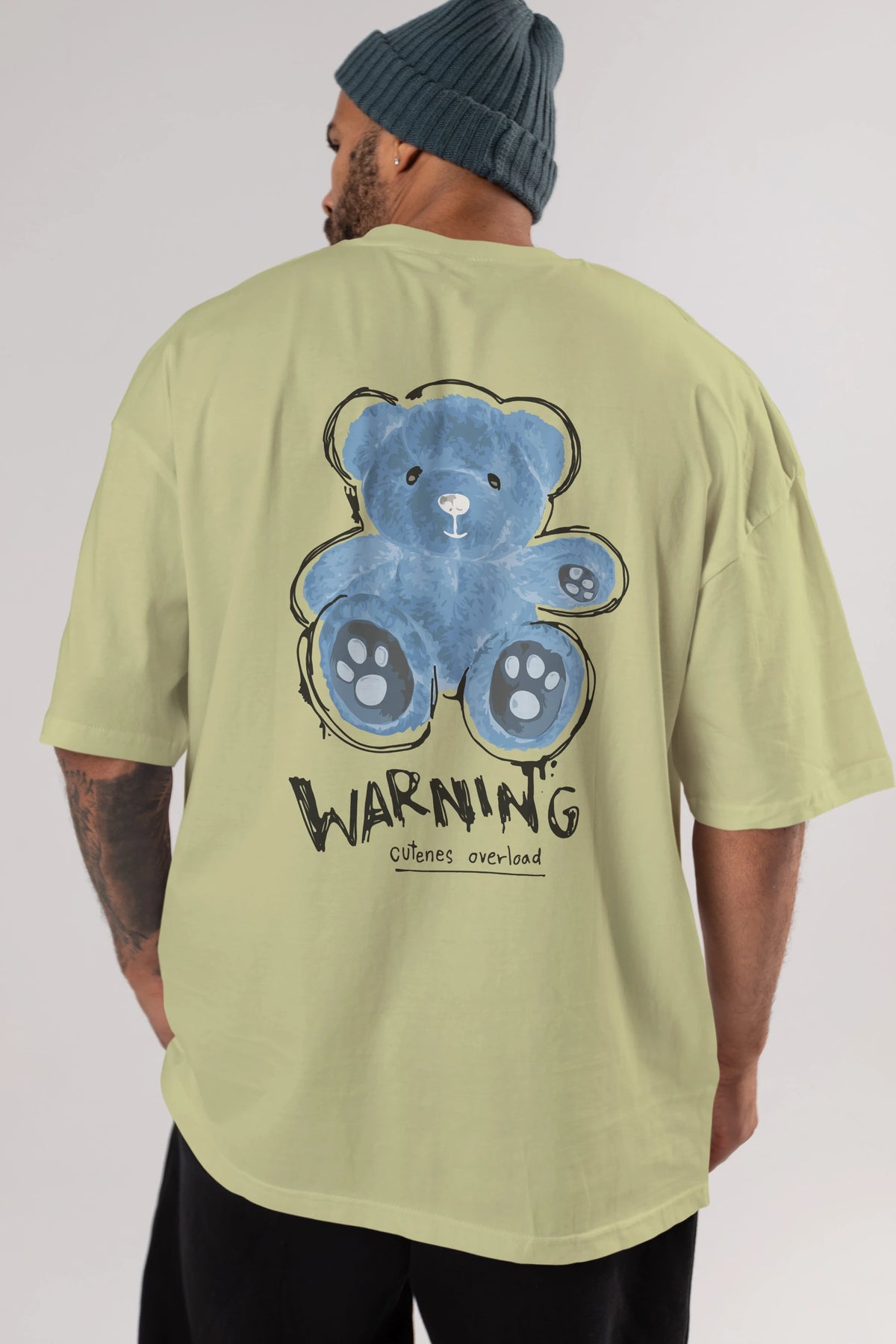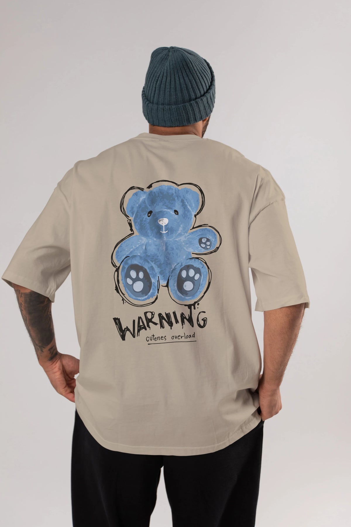 Warning Cuteness Bear Arka Baskılı Oversize t-shirt Erkek Kadın Unisex