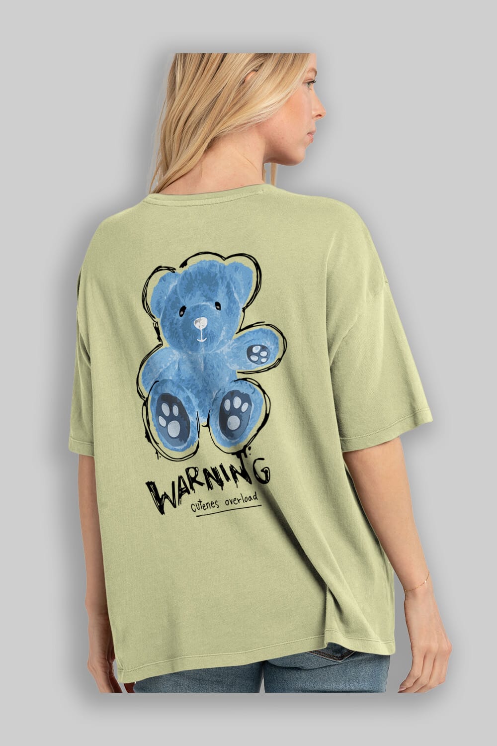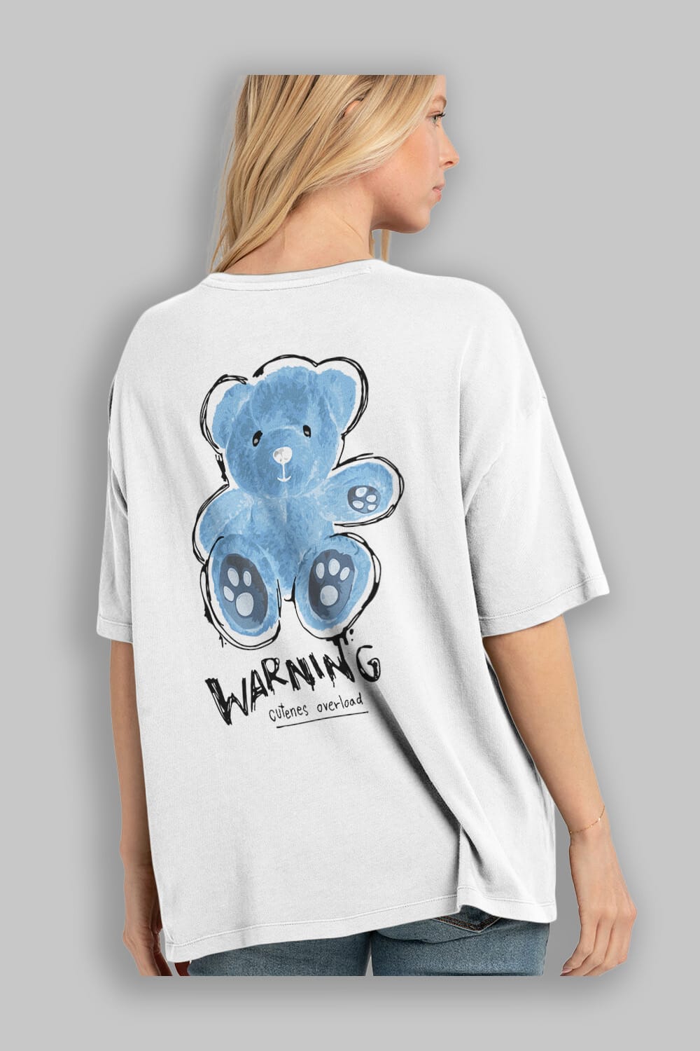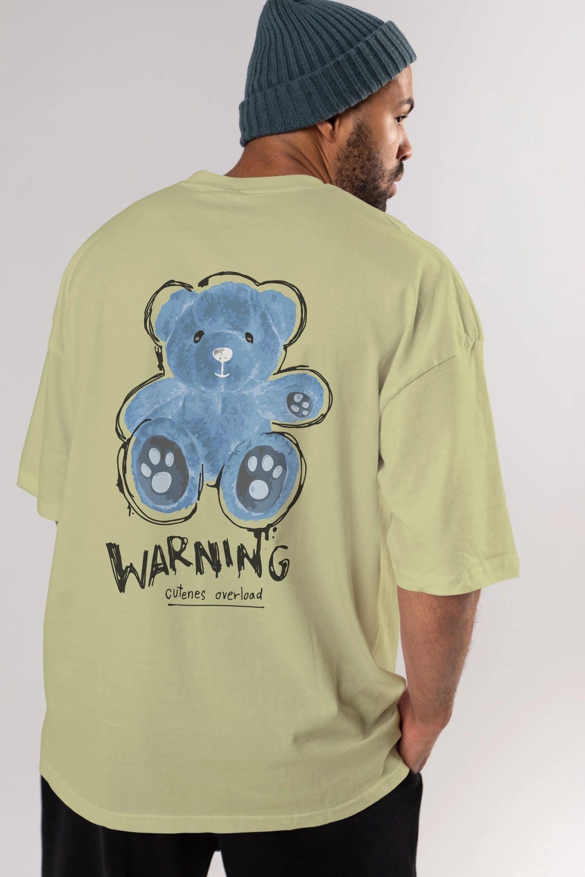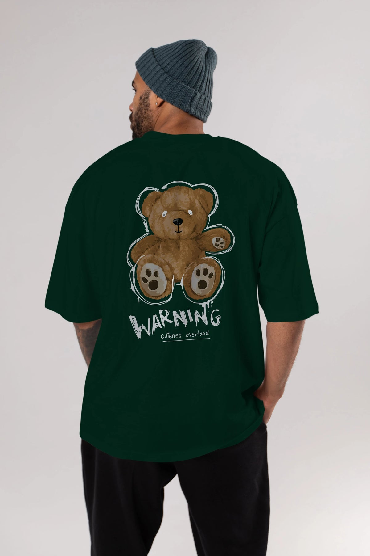 Warning Cuteness Bear Arka Baskılı Oversize t-shirt Erkek Kadın Unisex