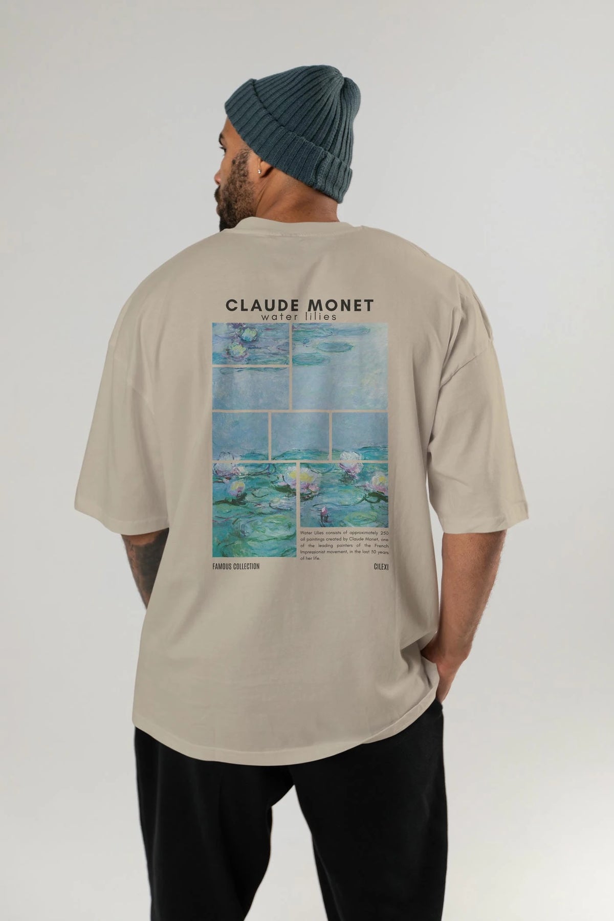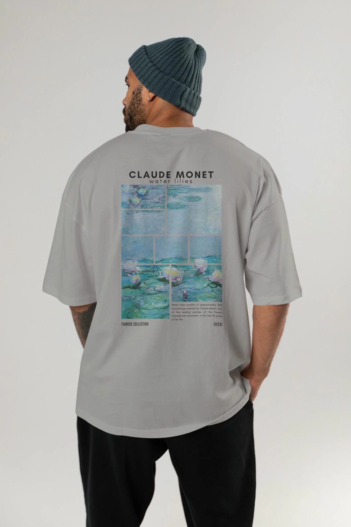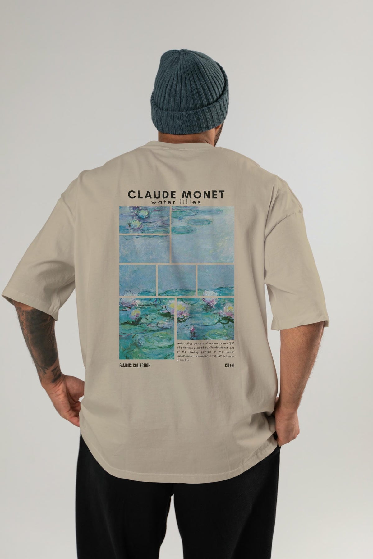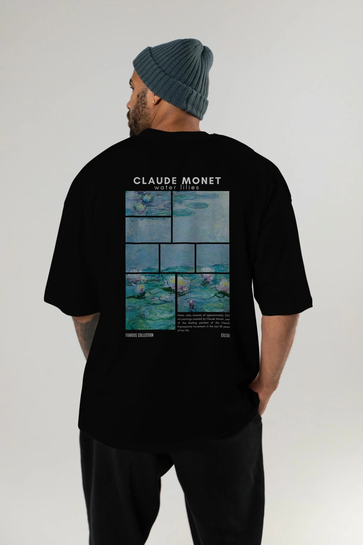 Claude Monet Arka Baskılı Oversize t-shirt Erkek Kadın Bisiklet Yaka Pamuk tişort