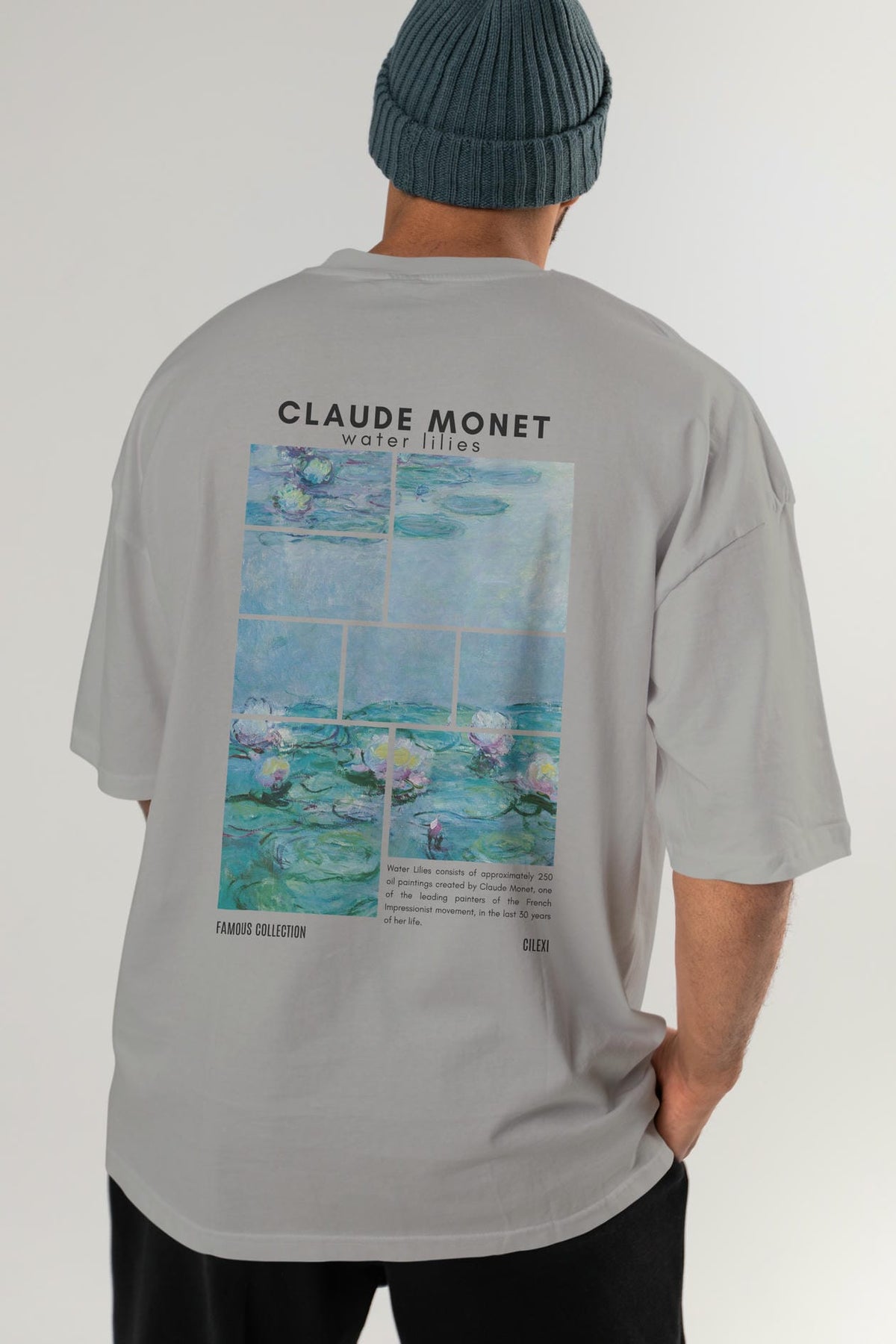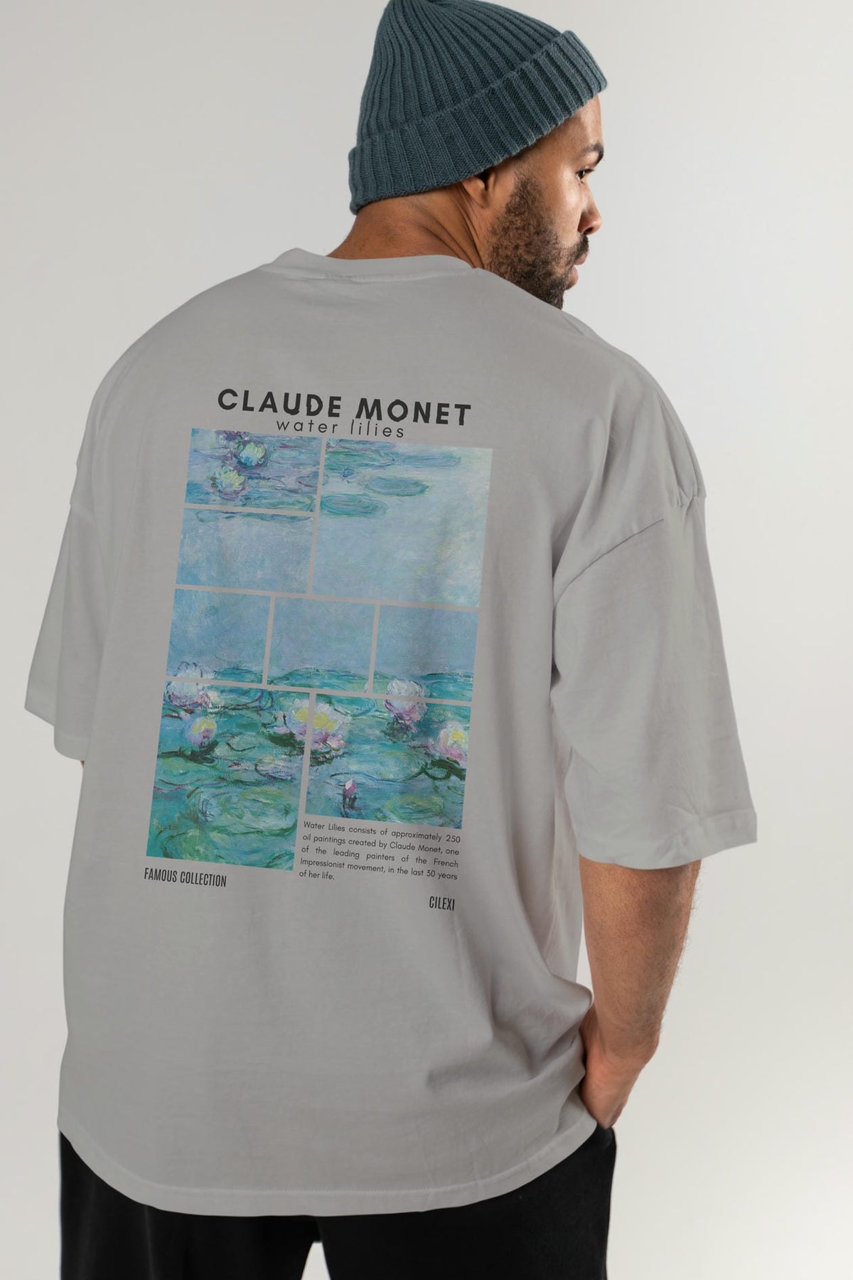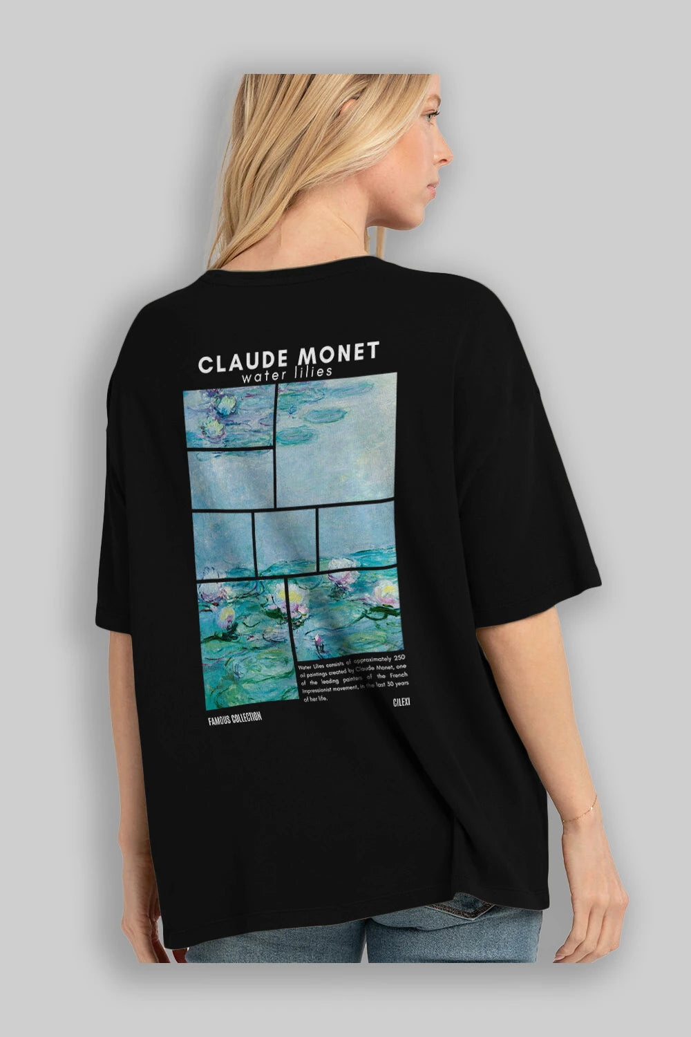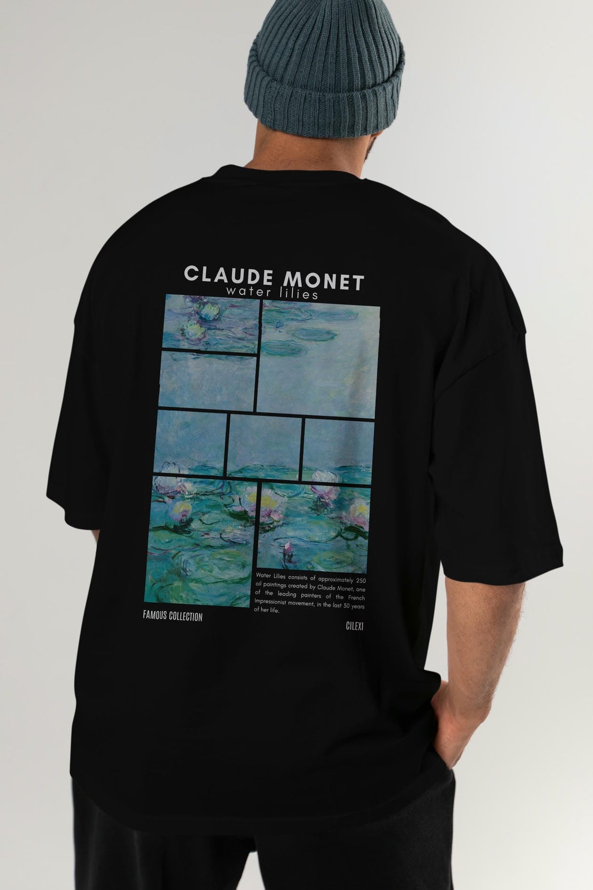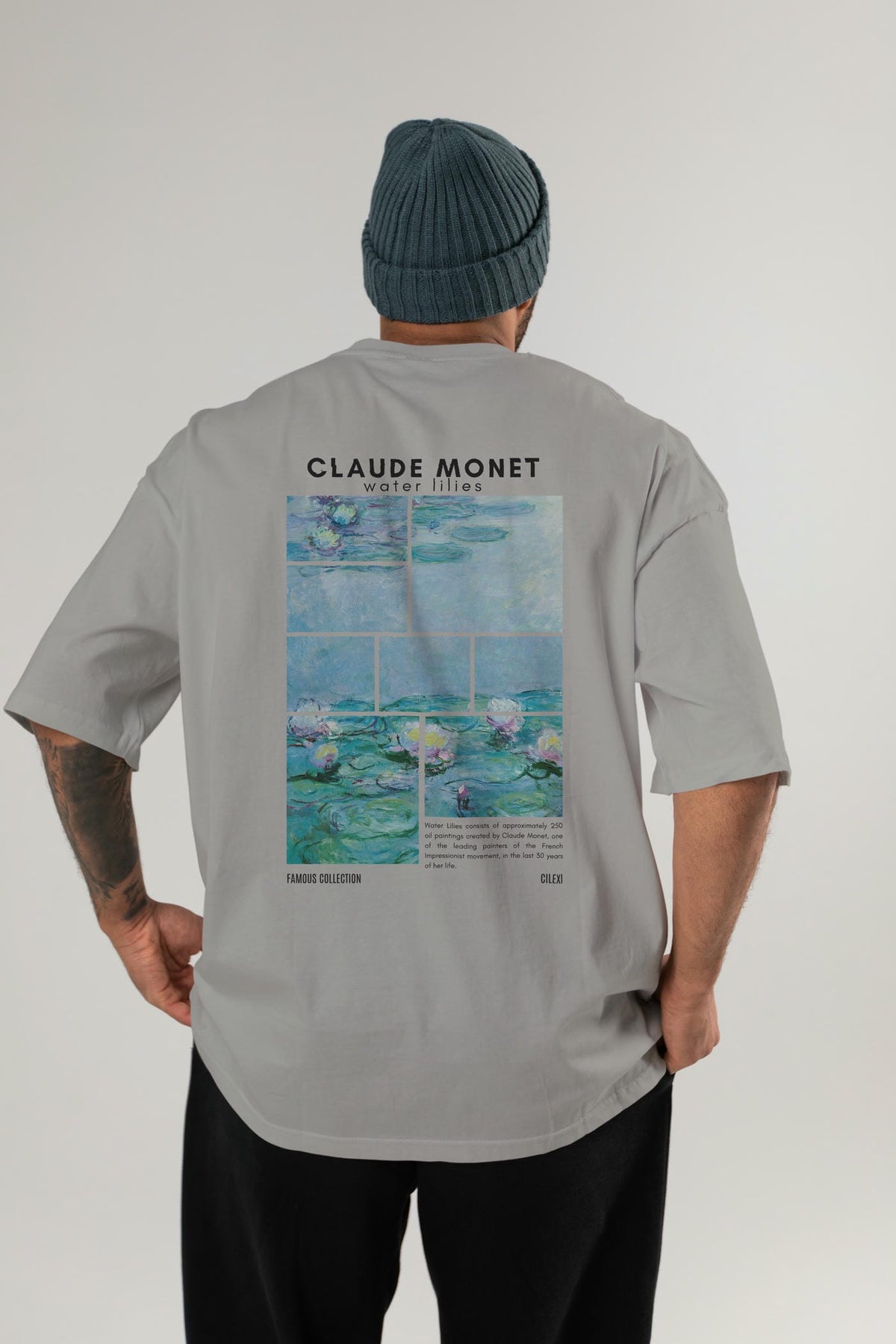 Claude Monet Arka Baskılı Oversize t-shirt Erkek Kadın Bisiklet Yaka Pamuk tişort