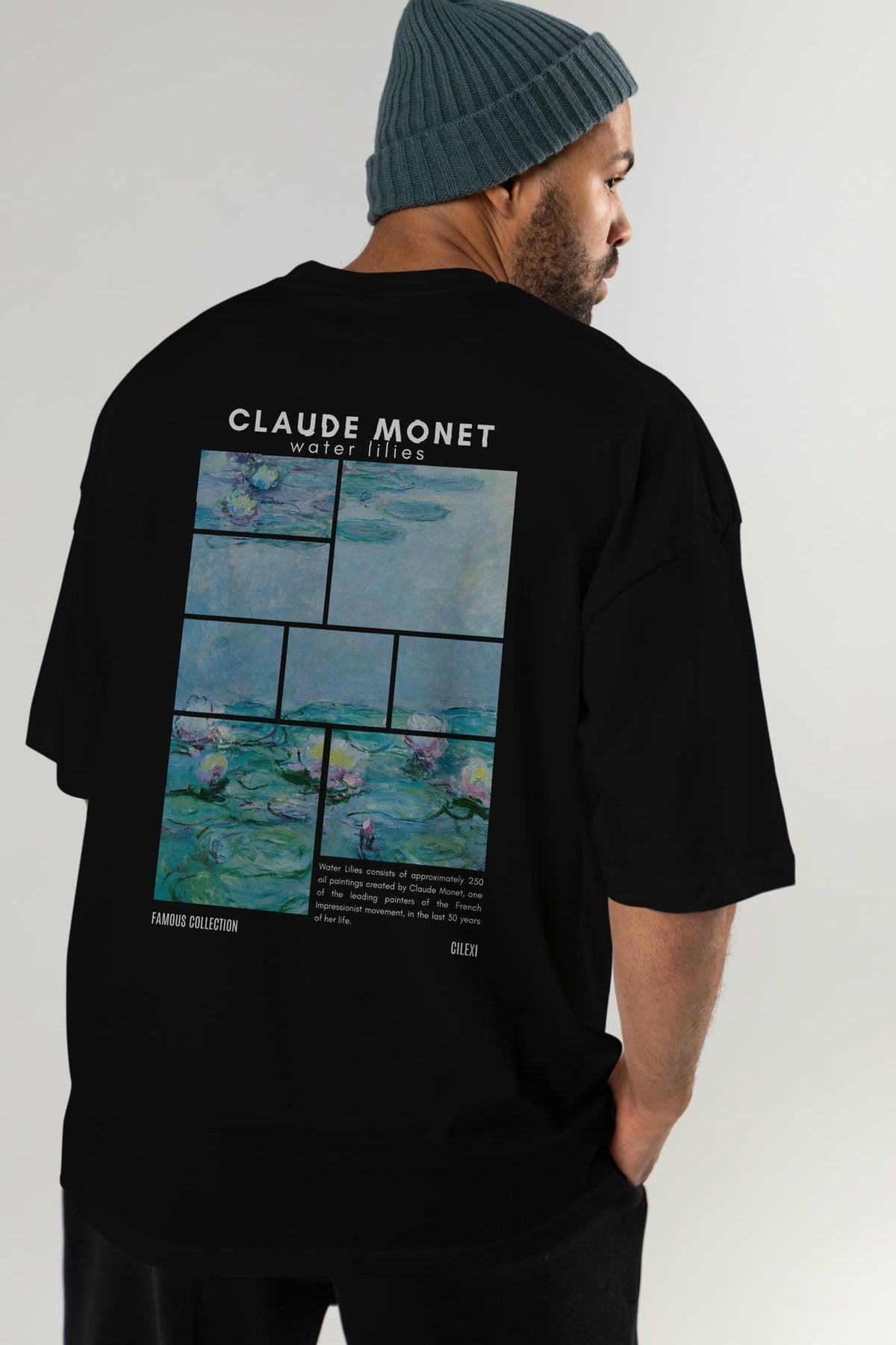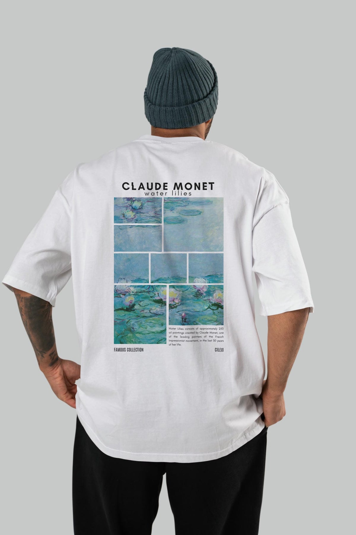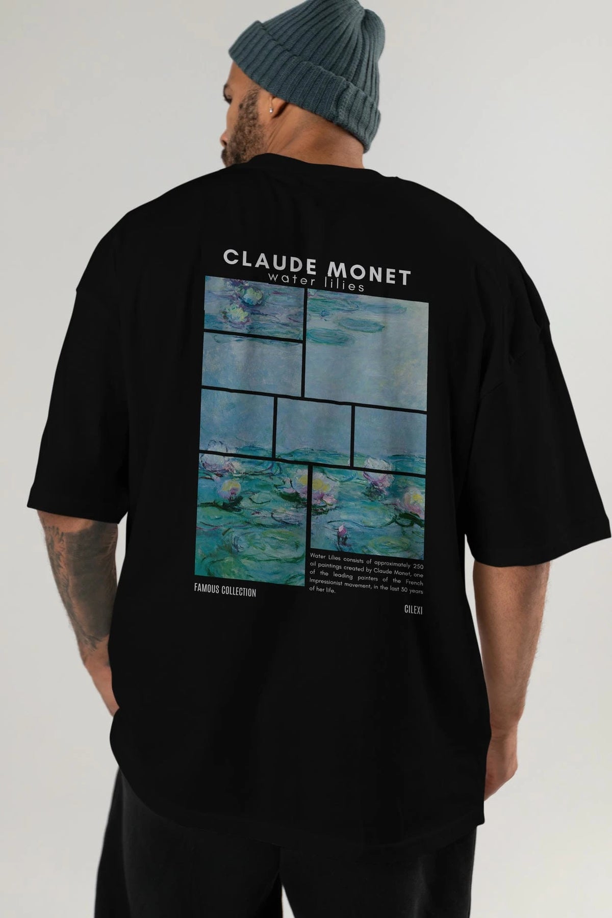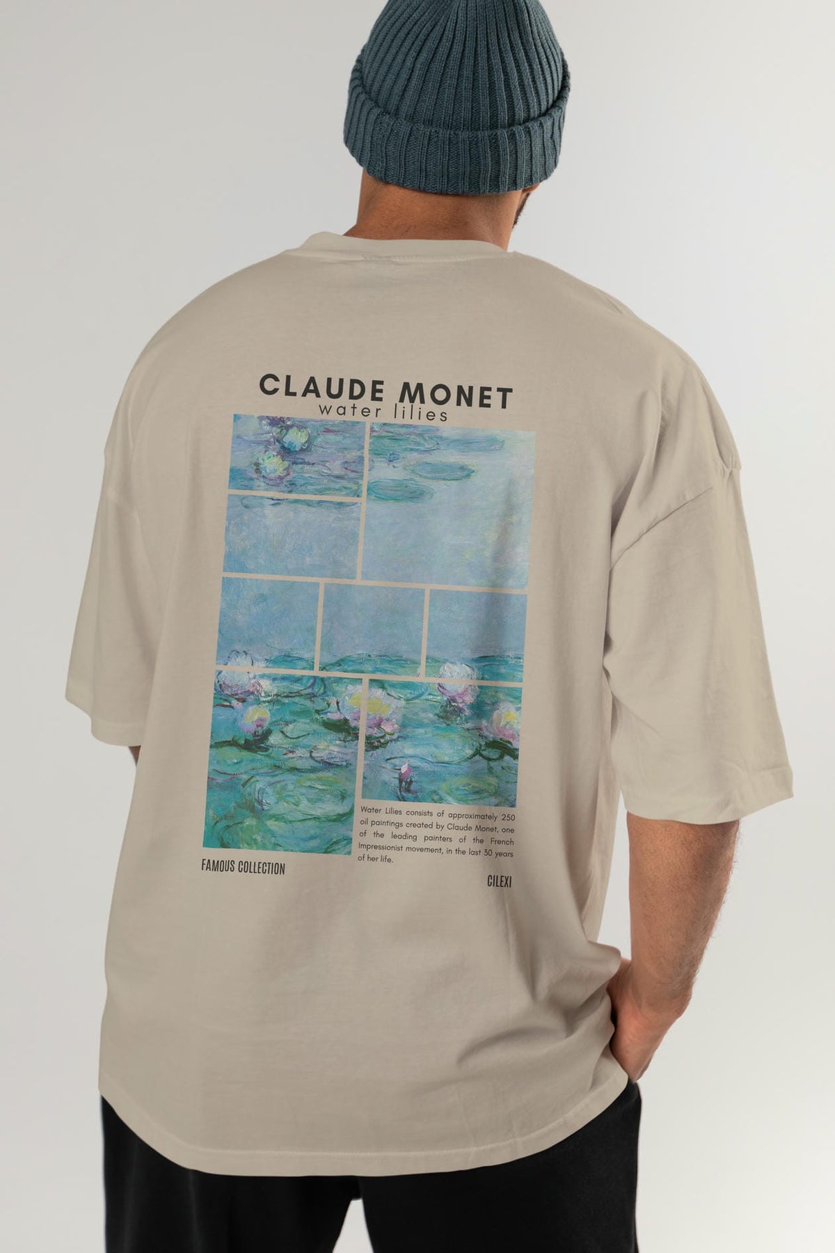 Claude Monet Arka Baskılı Oversize t-shirt Erkek Kadın Bisiklet Yaka Pamuk tişort