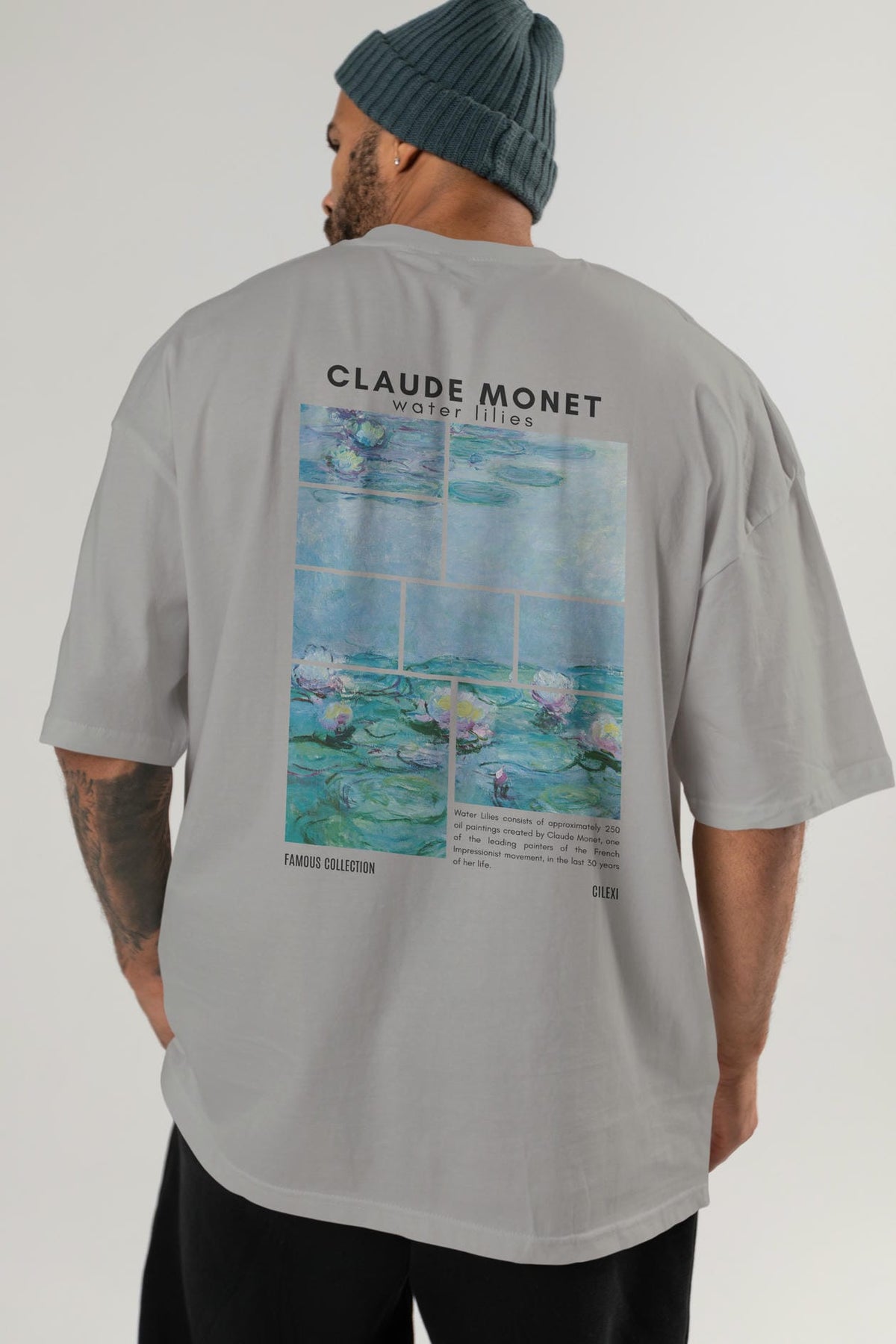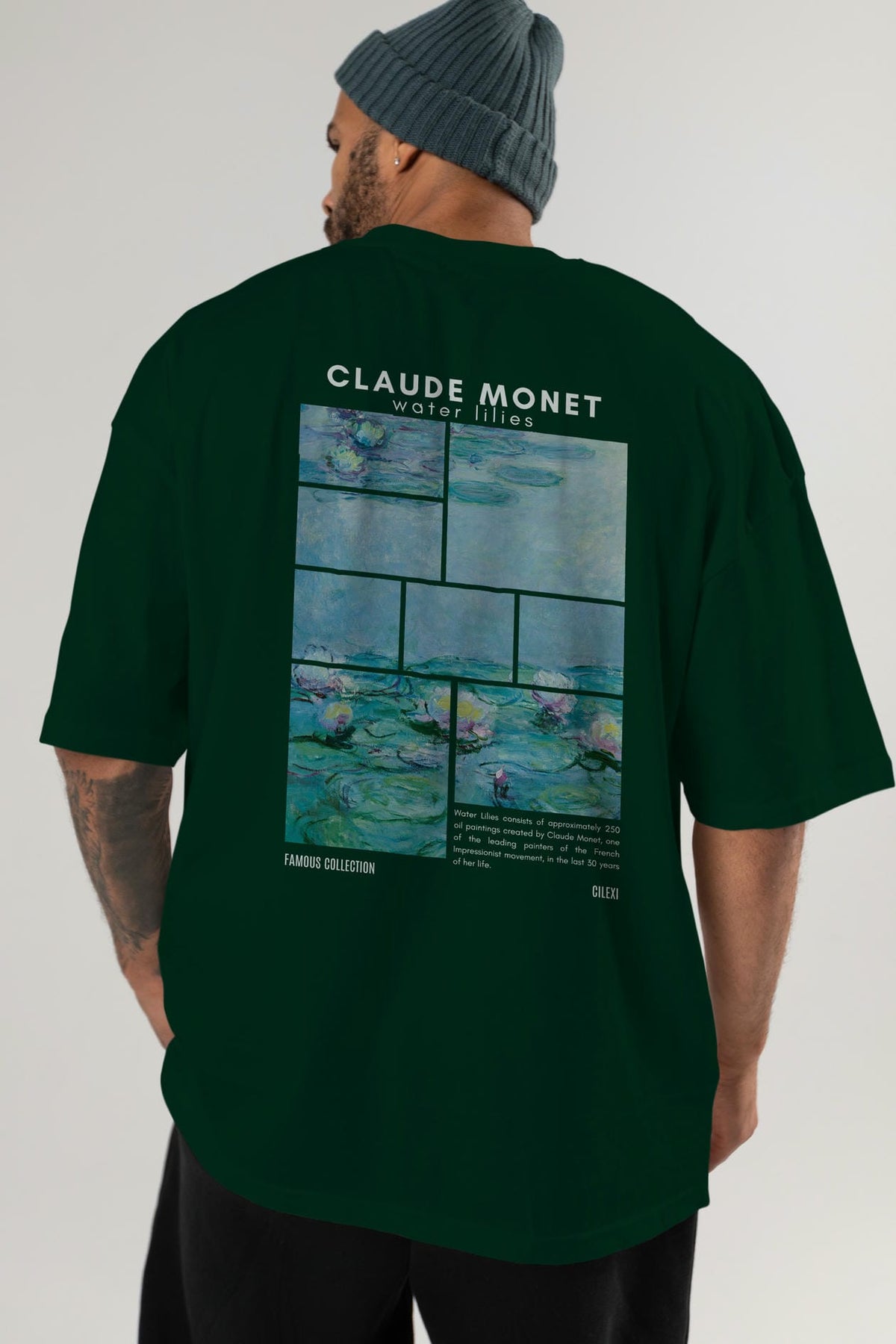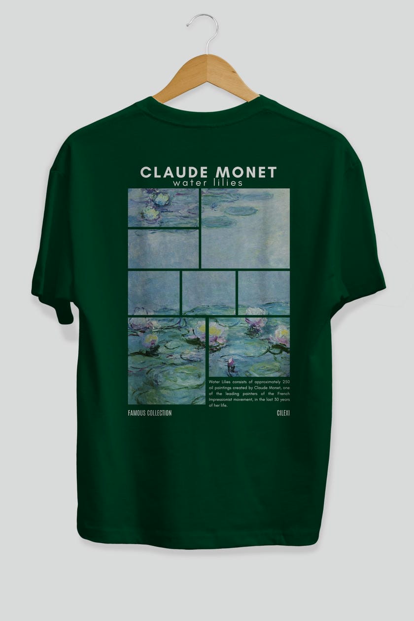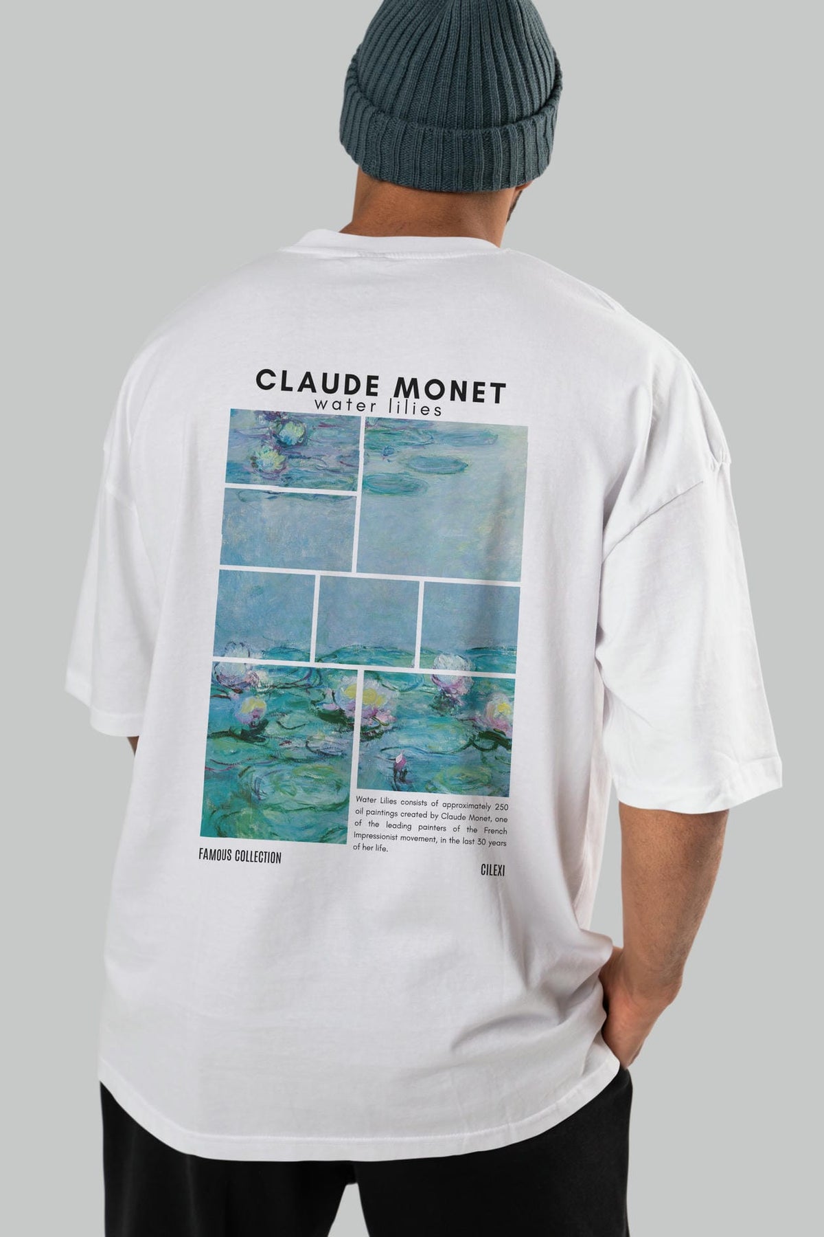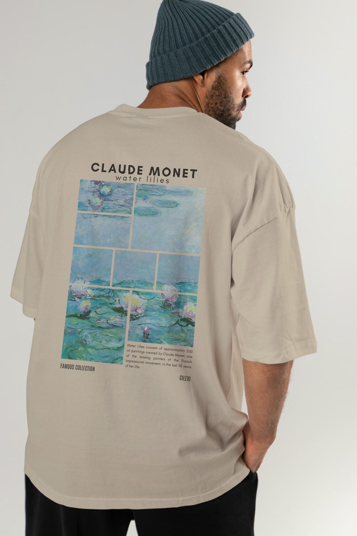 Claude Monet Arka Baskılı Oversize t-shirt Erkek Kadın Bisiklet Yaka Pamuk tişort