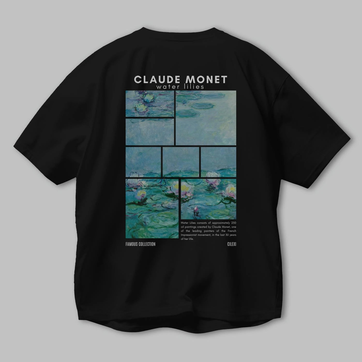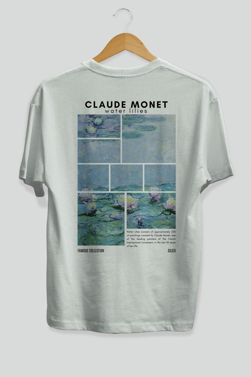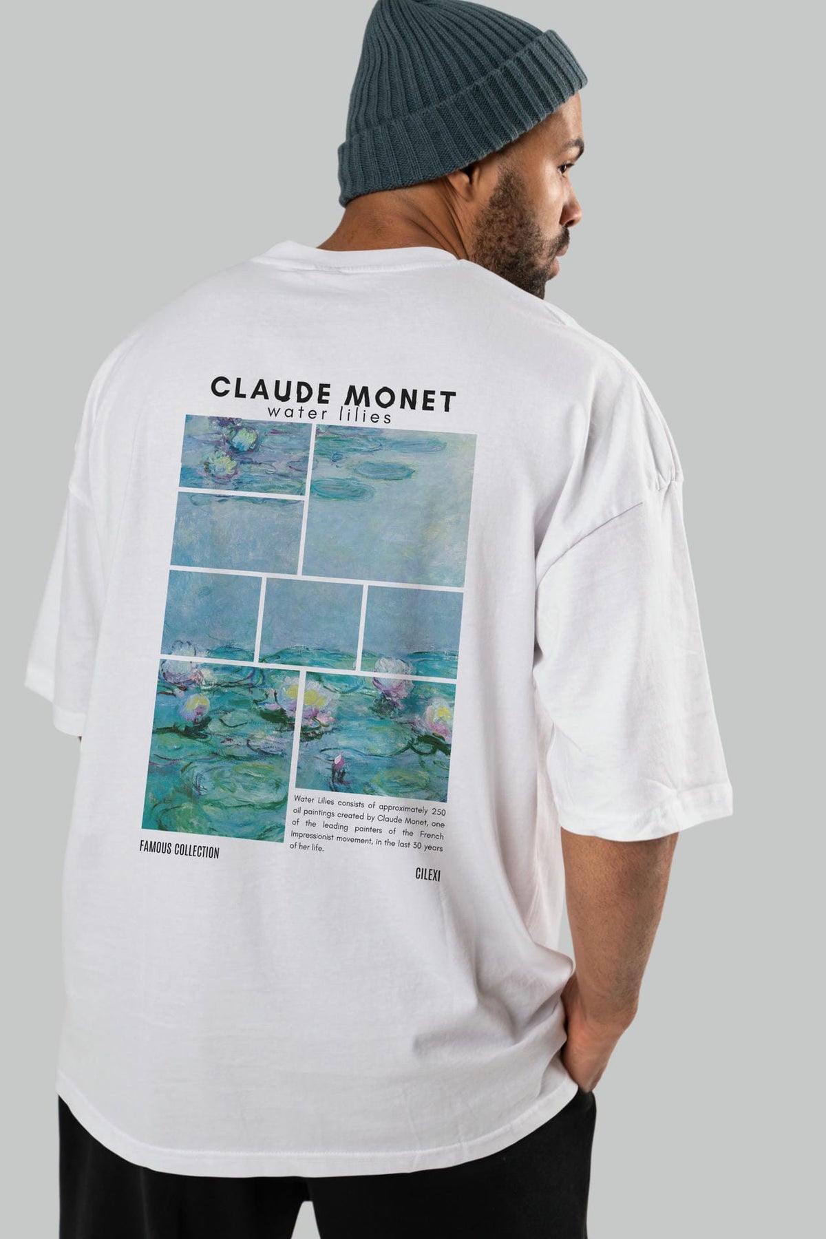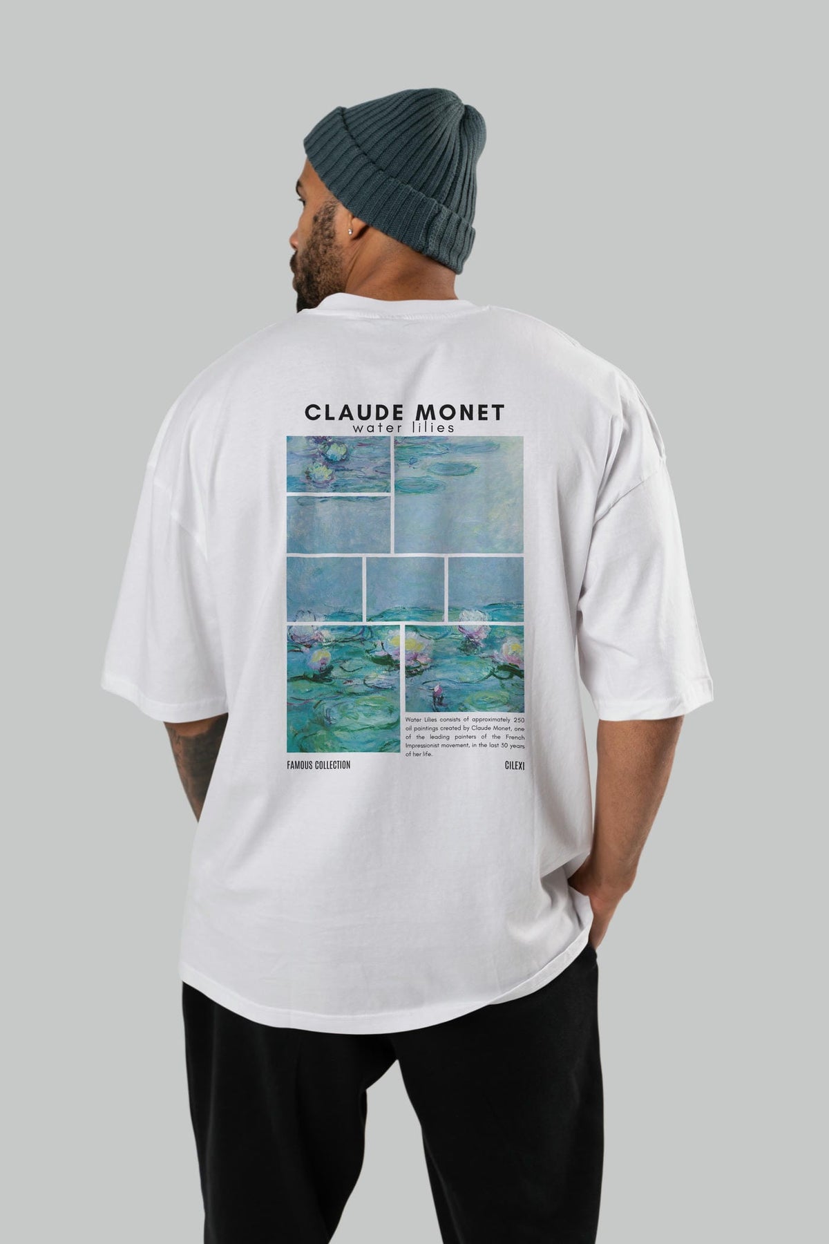 Claude Monet Arka Baskılı Oversize t-shirt Erkek Kadın Bisiklet Yaka Pamuk tişort