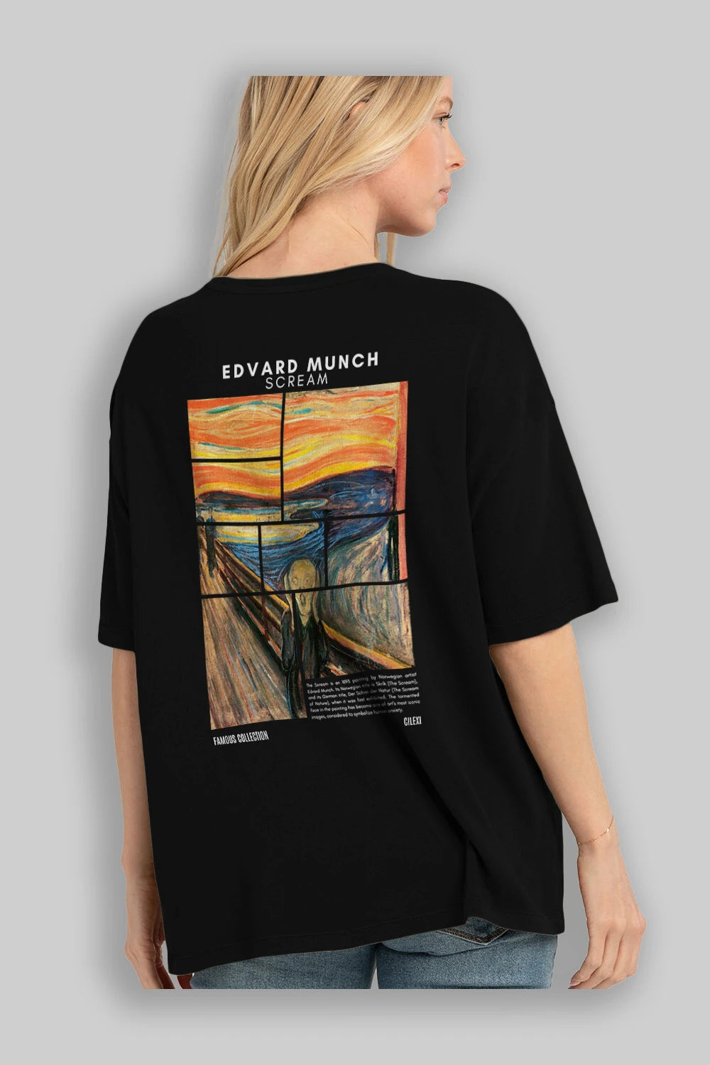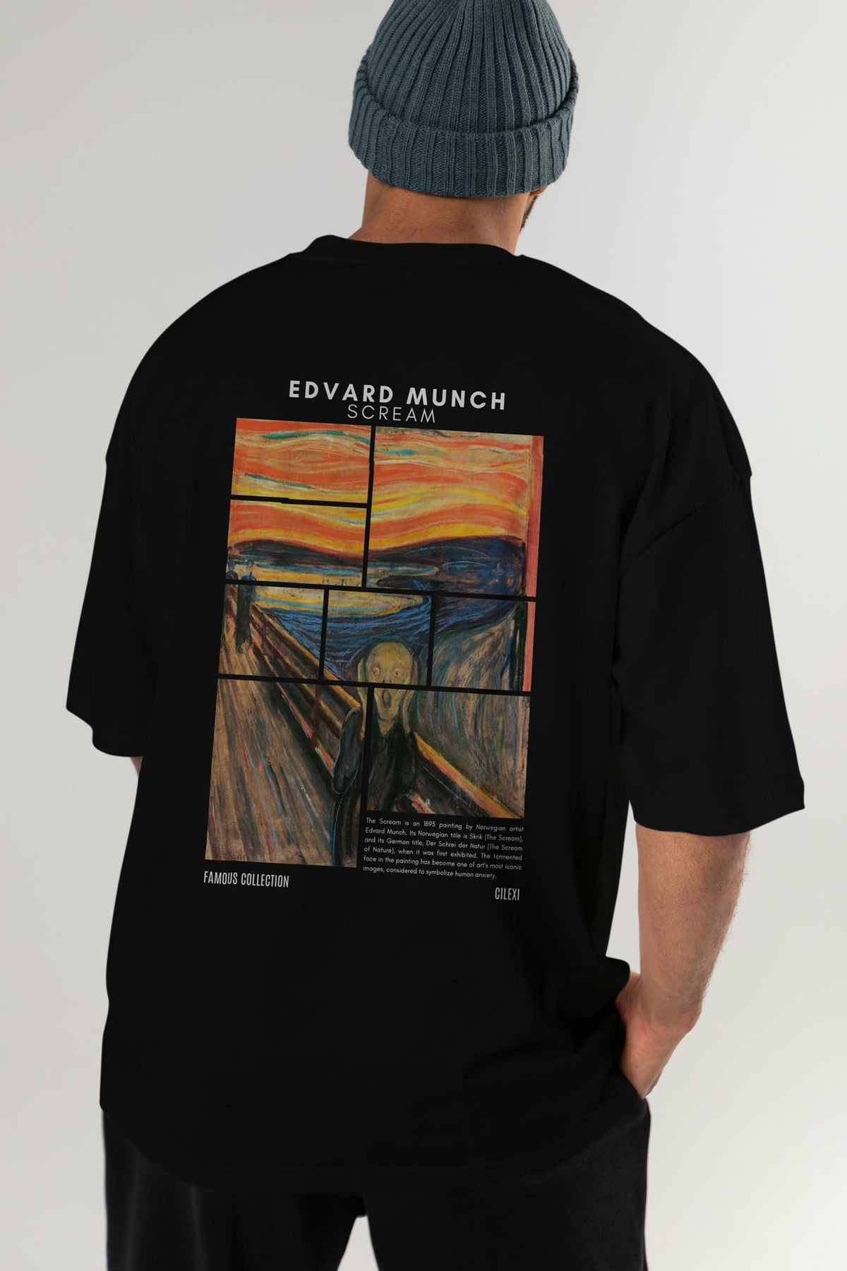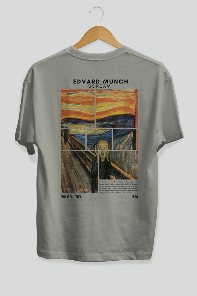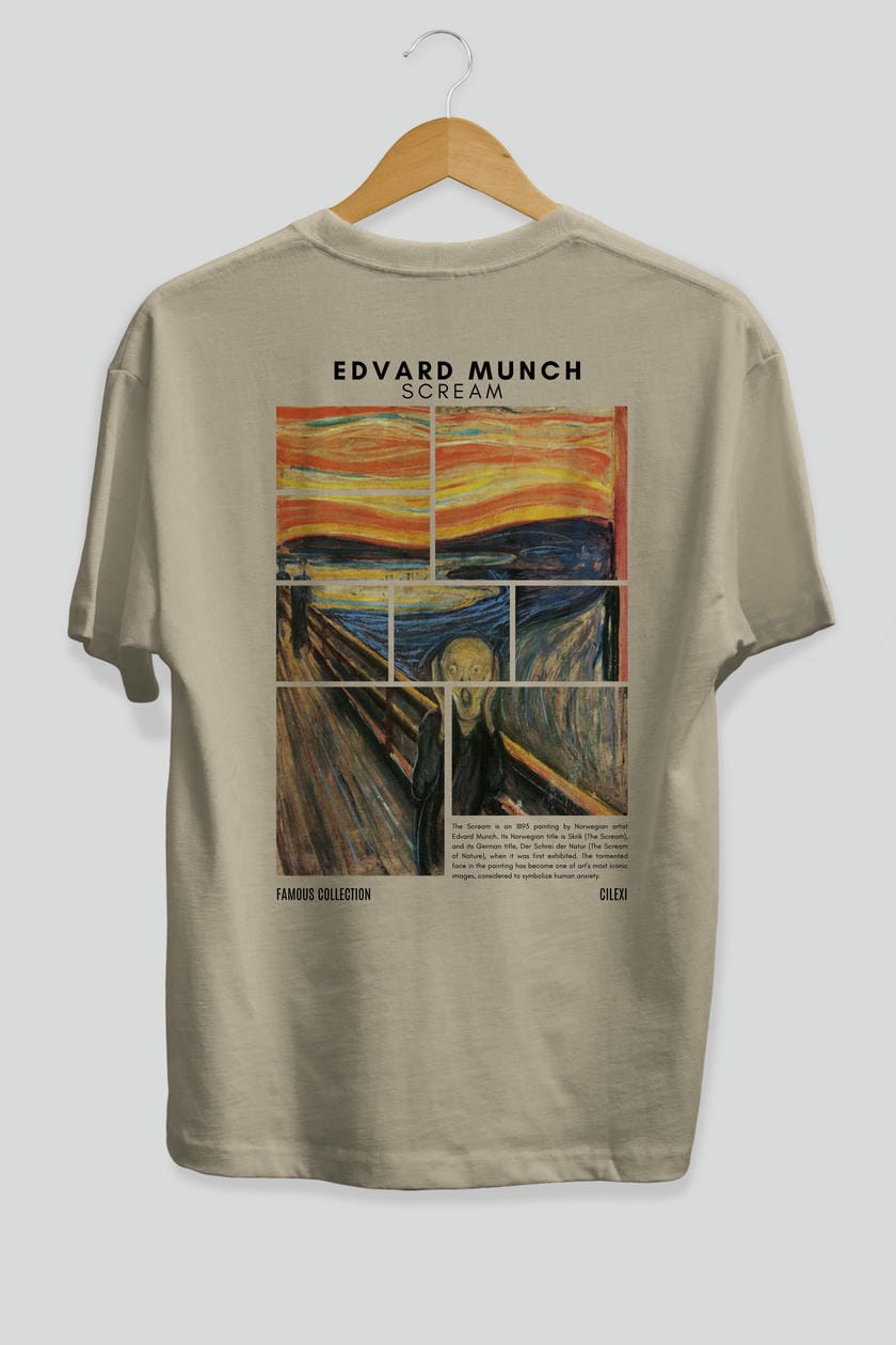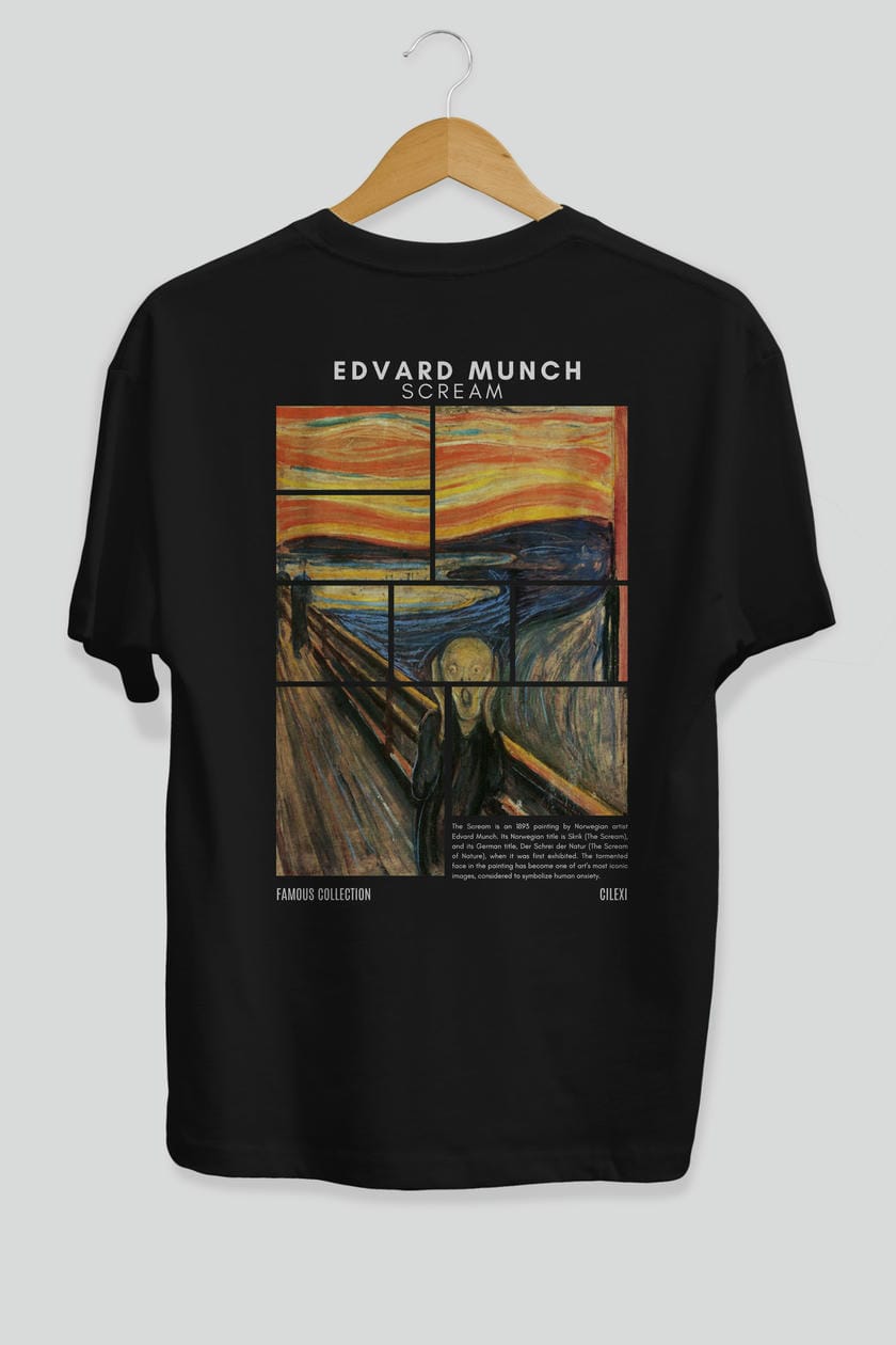 Edvard Munch Scream Arka Baskılı Oversize t-shirt Erkek Kadın Bisiklet Yaka Pamuk tişort