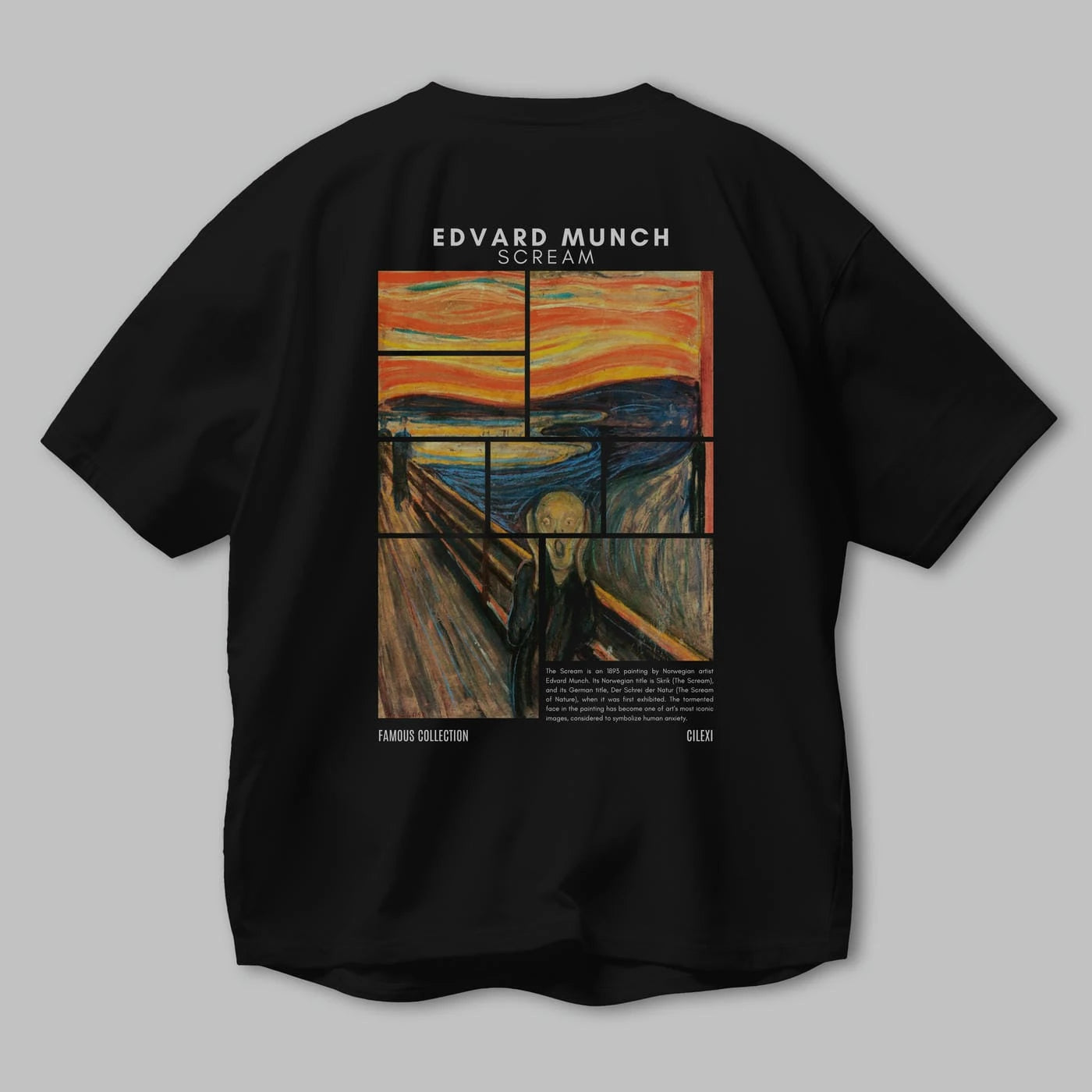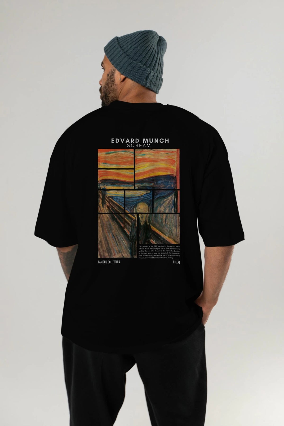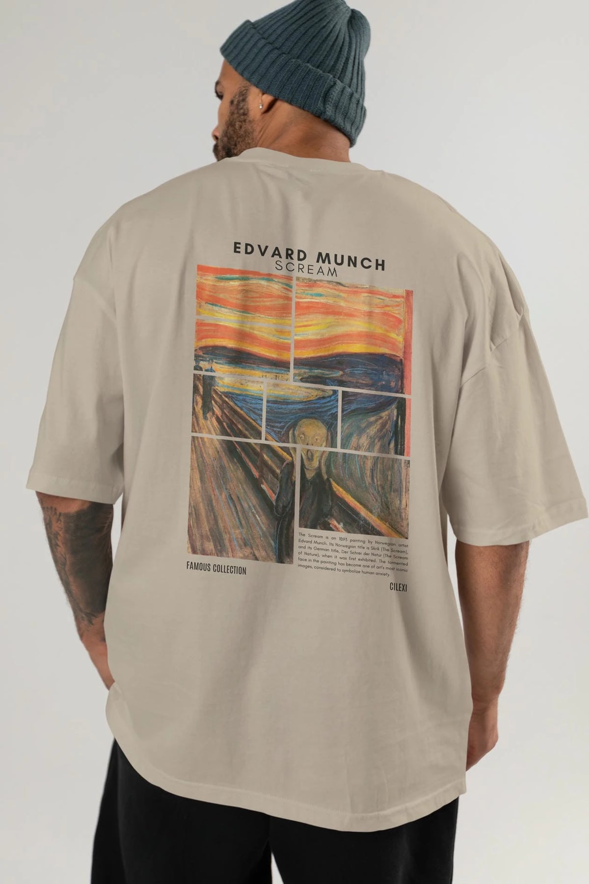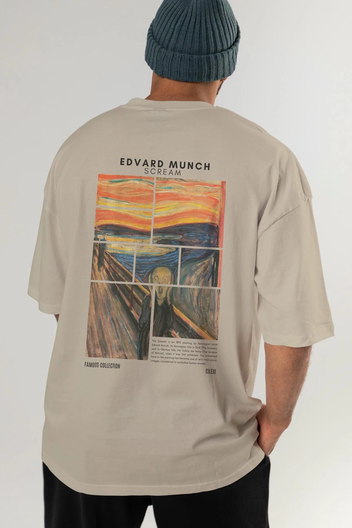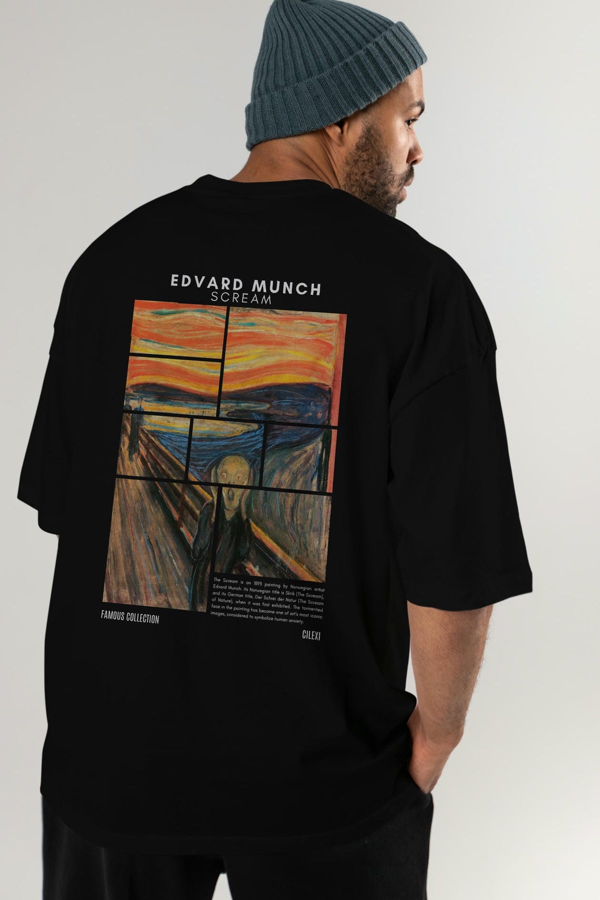 Edvard Munch Scream Arka Baskılı Oversize t-shirt Erkek Kadın Bisiklet Yaka Pamuk tişort